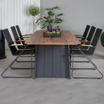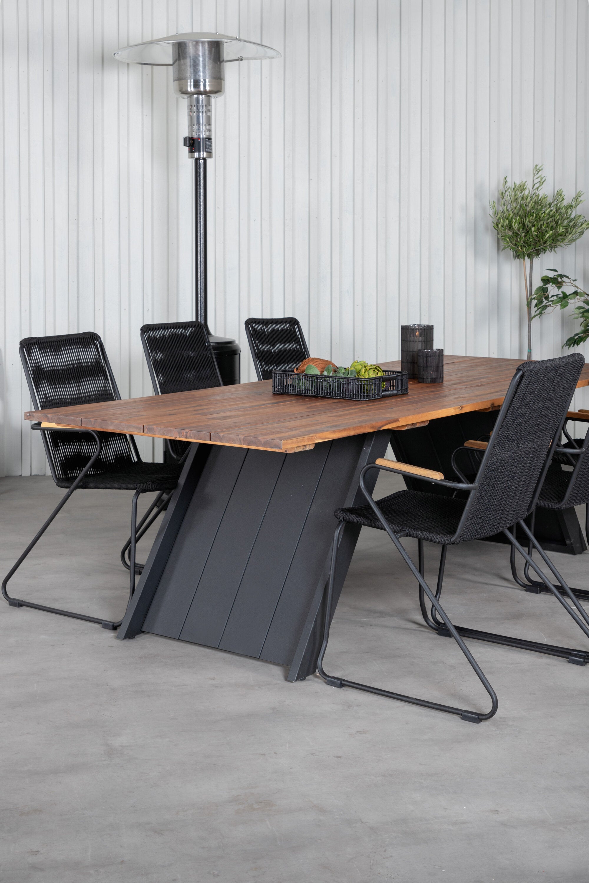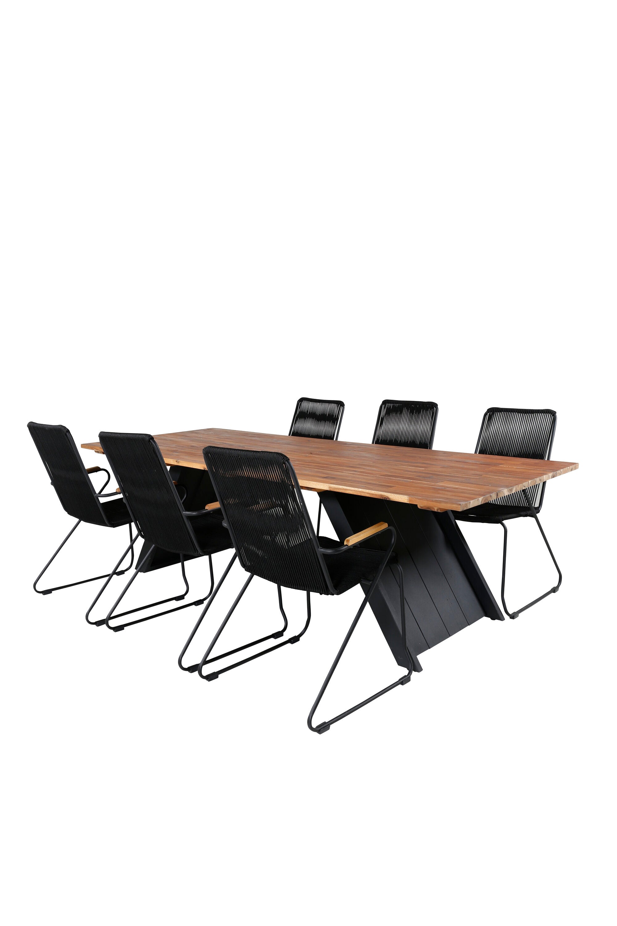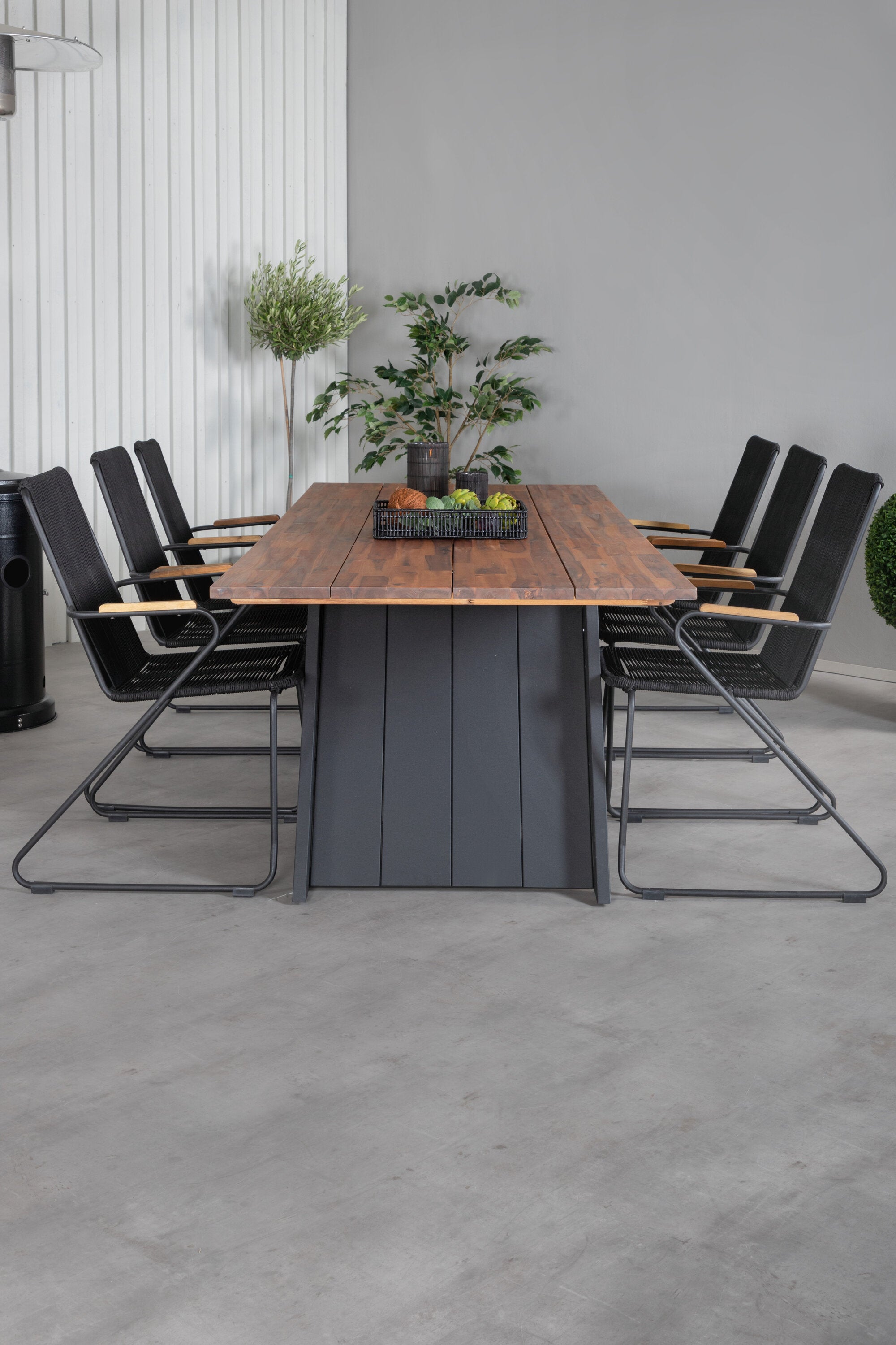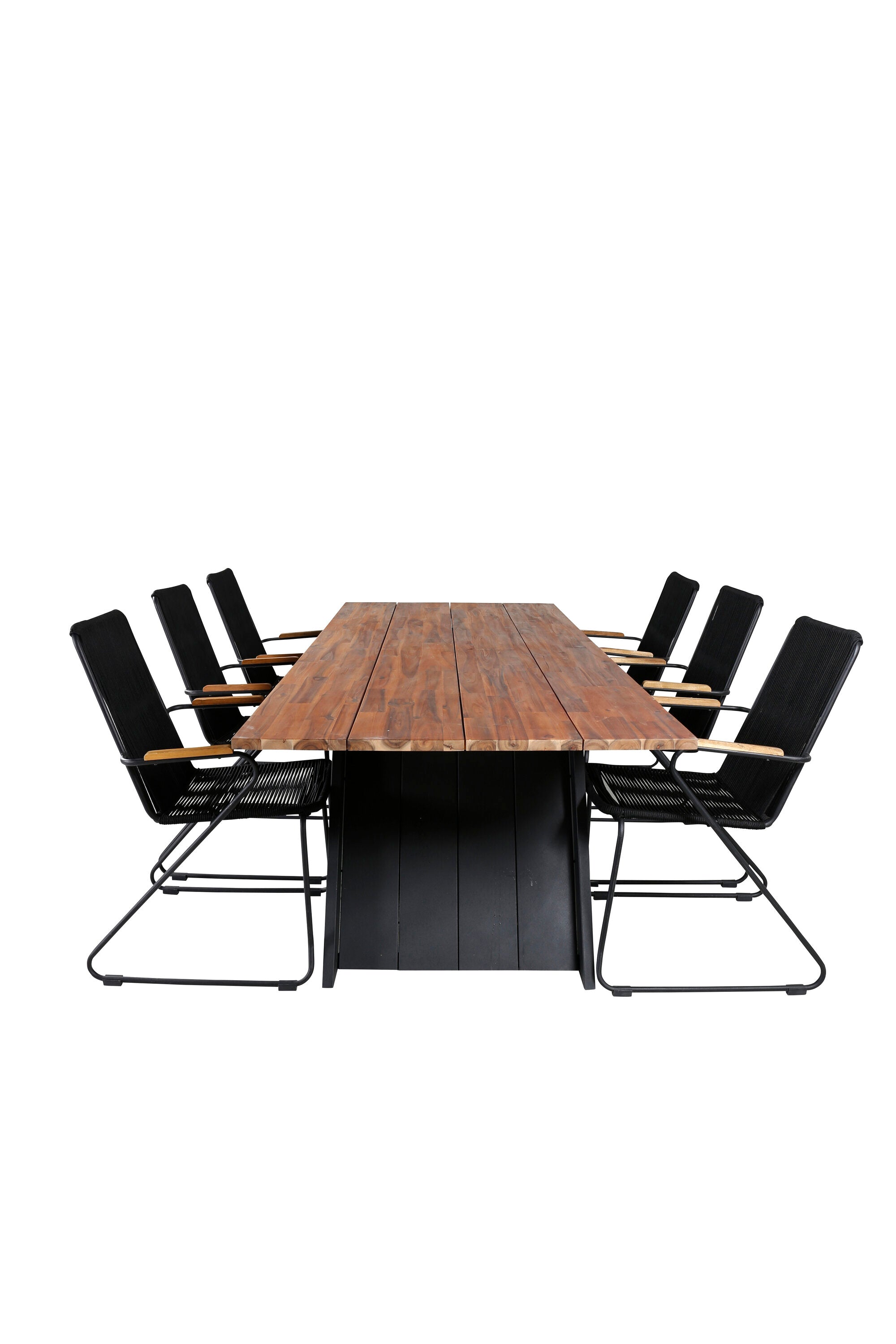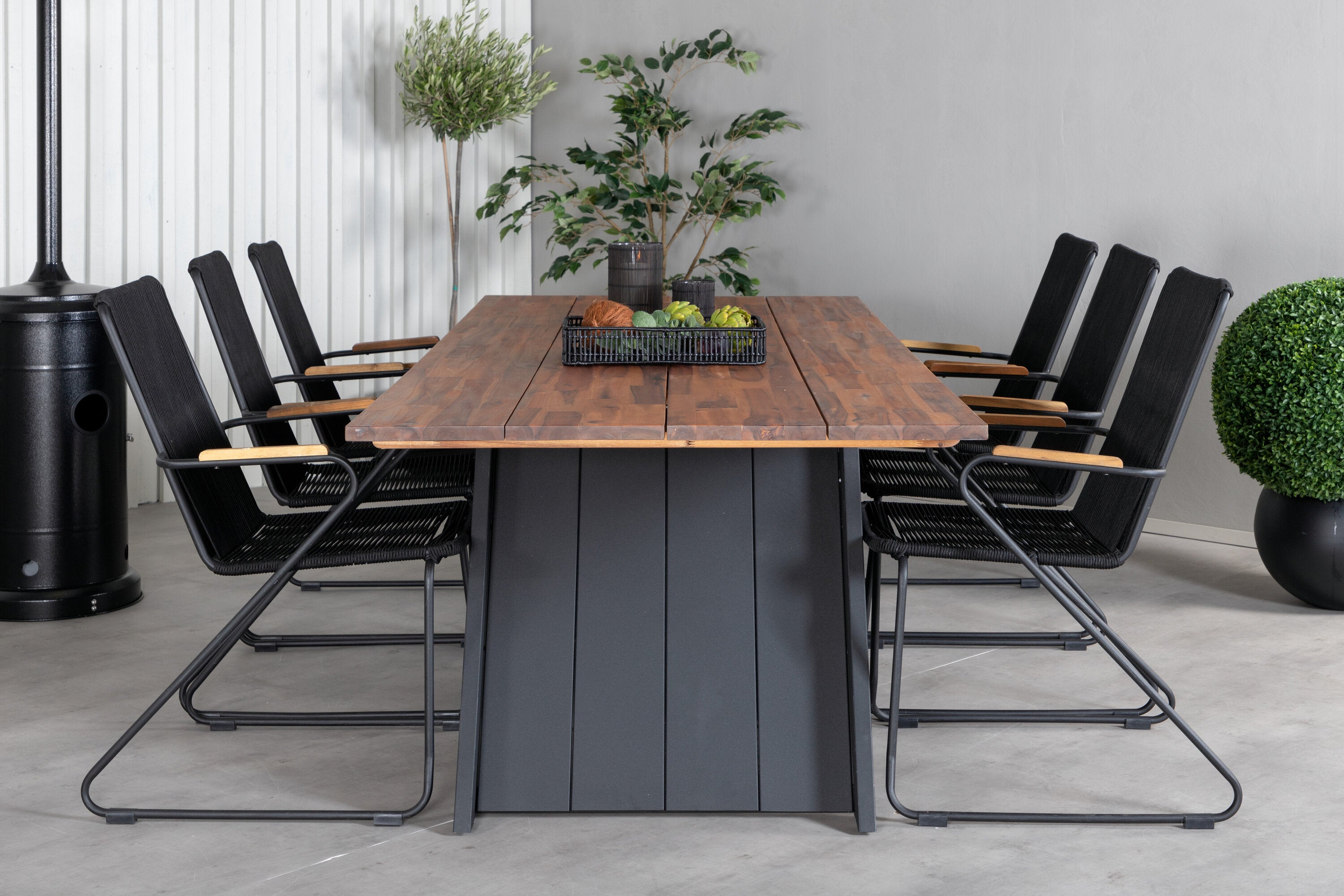 Jídelní stůl Doory - černá ocel / akátová deska v teakovém vzhledu - 250*100 cm + křeslo Bois - Black Alu / Black Lano / Acacia_6