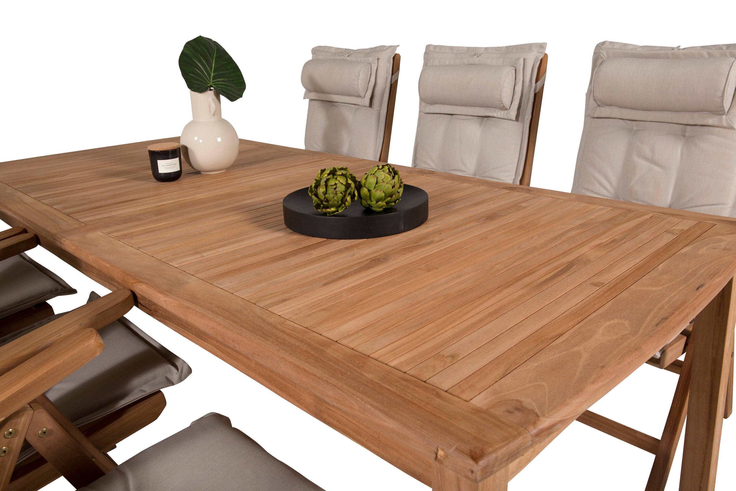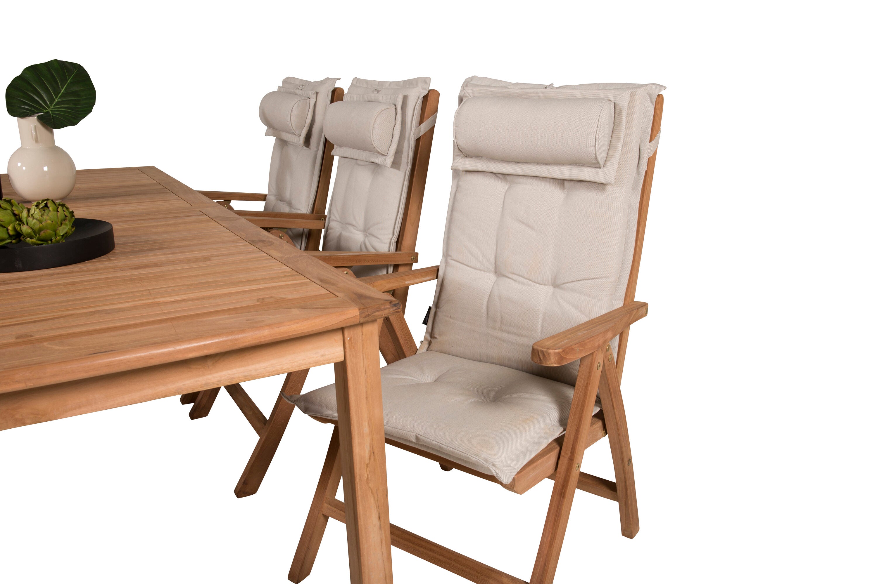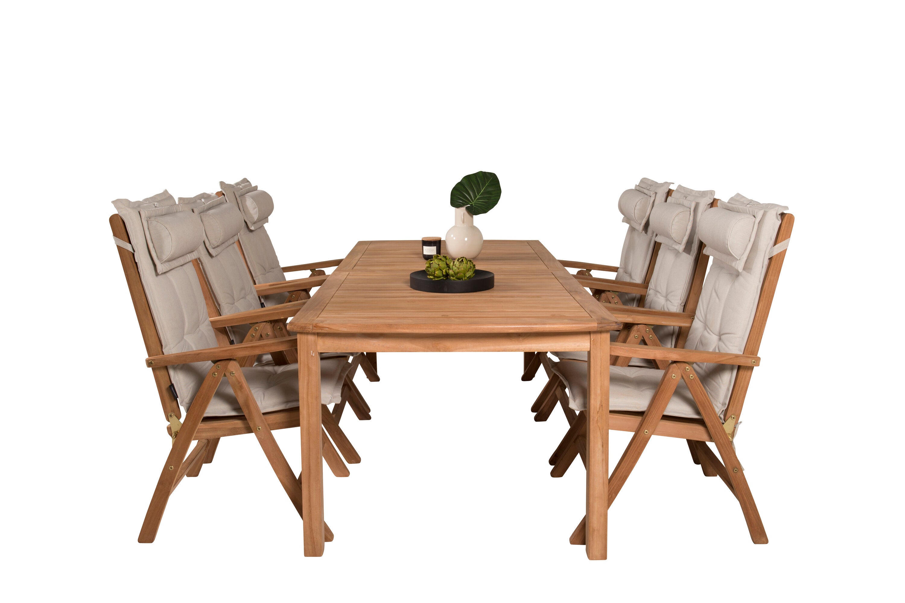 Jídelní stůl Kenya 220*100*H76 - Teak+Keňa 5-polohová skládací židle - Teak_6