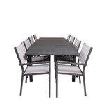 Jídelní stůl Marbella spolu s jídelními židlemi Copacabana vám poskytne skupinu jídel, která se hodí na každou terasu nebo terasu. Stůl je rozkládací a poskytuje příležitosti pro větší pozvánky na večeři!