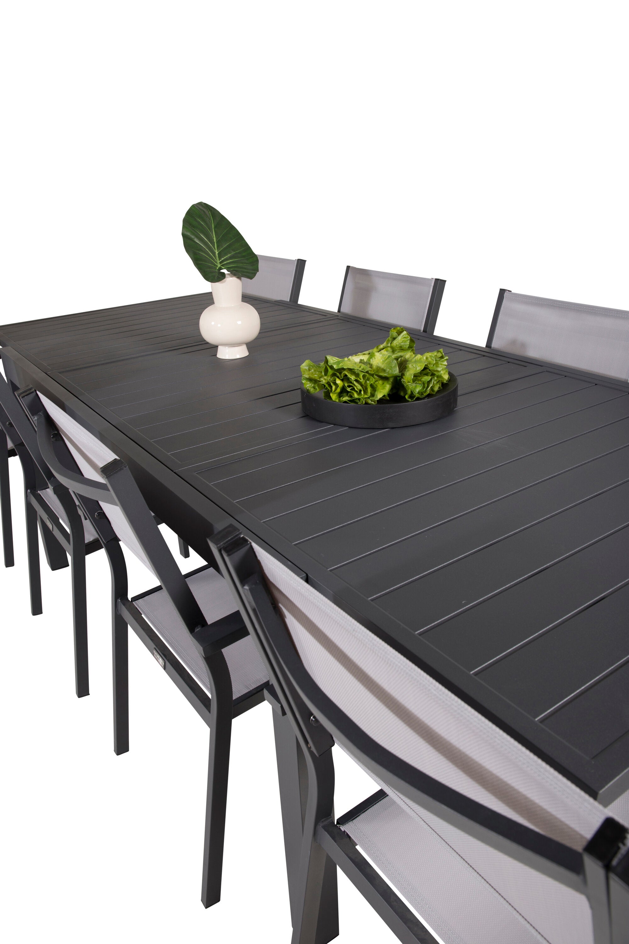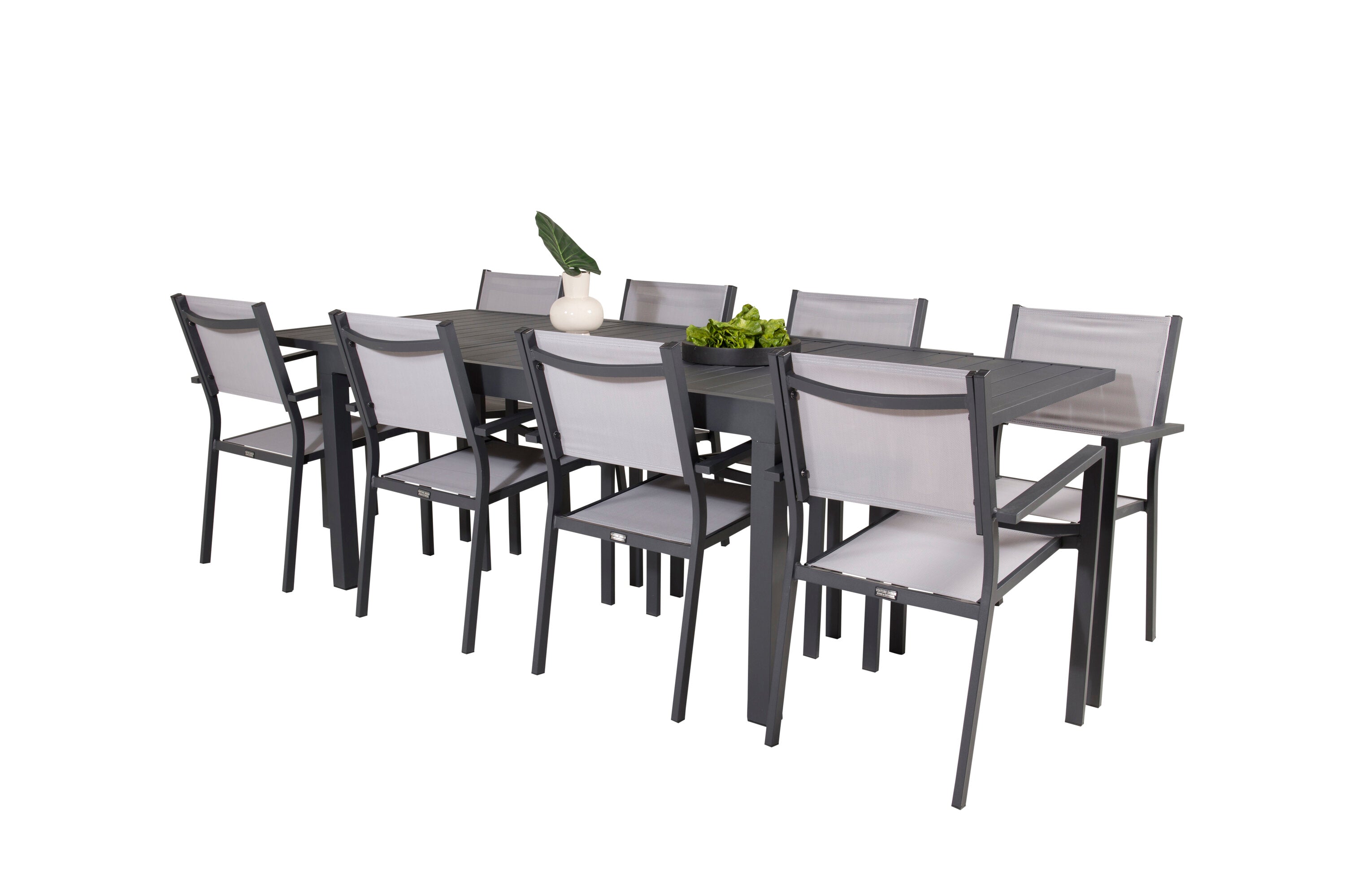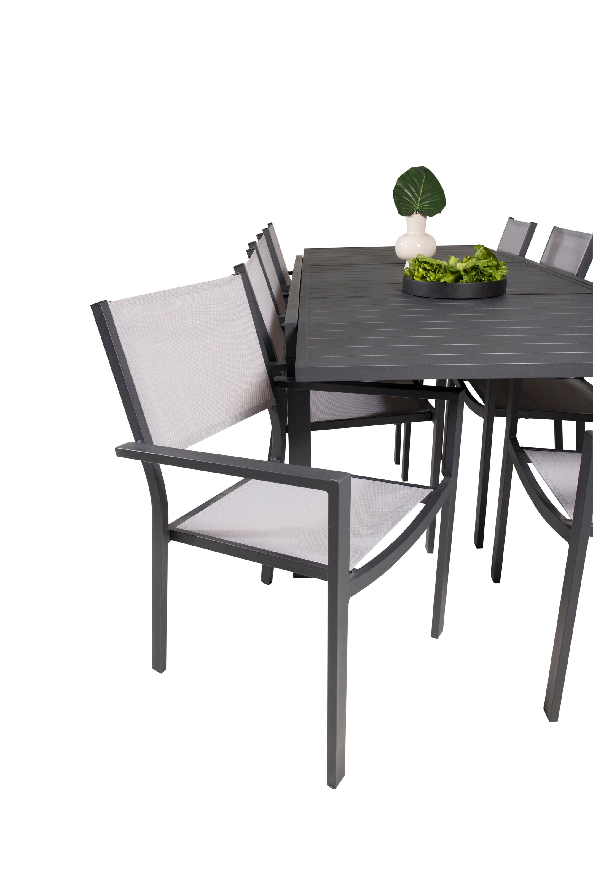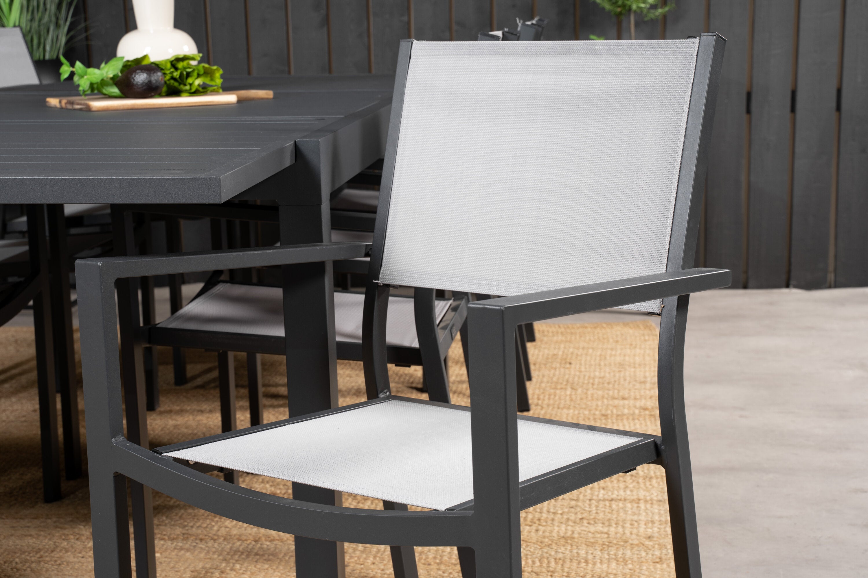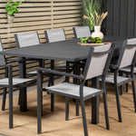Jídelní stůl Marbella 160/240*100*H75 - Černá + křeslo Copacabana (stohovatelné) - Černá Alu / šedá Textilene_8