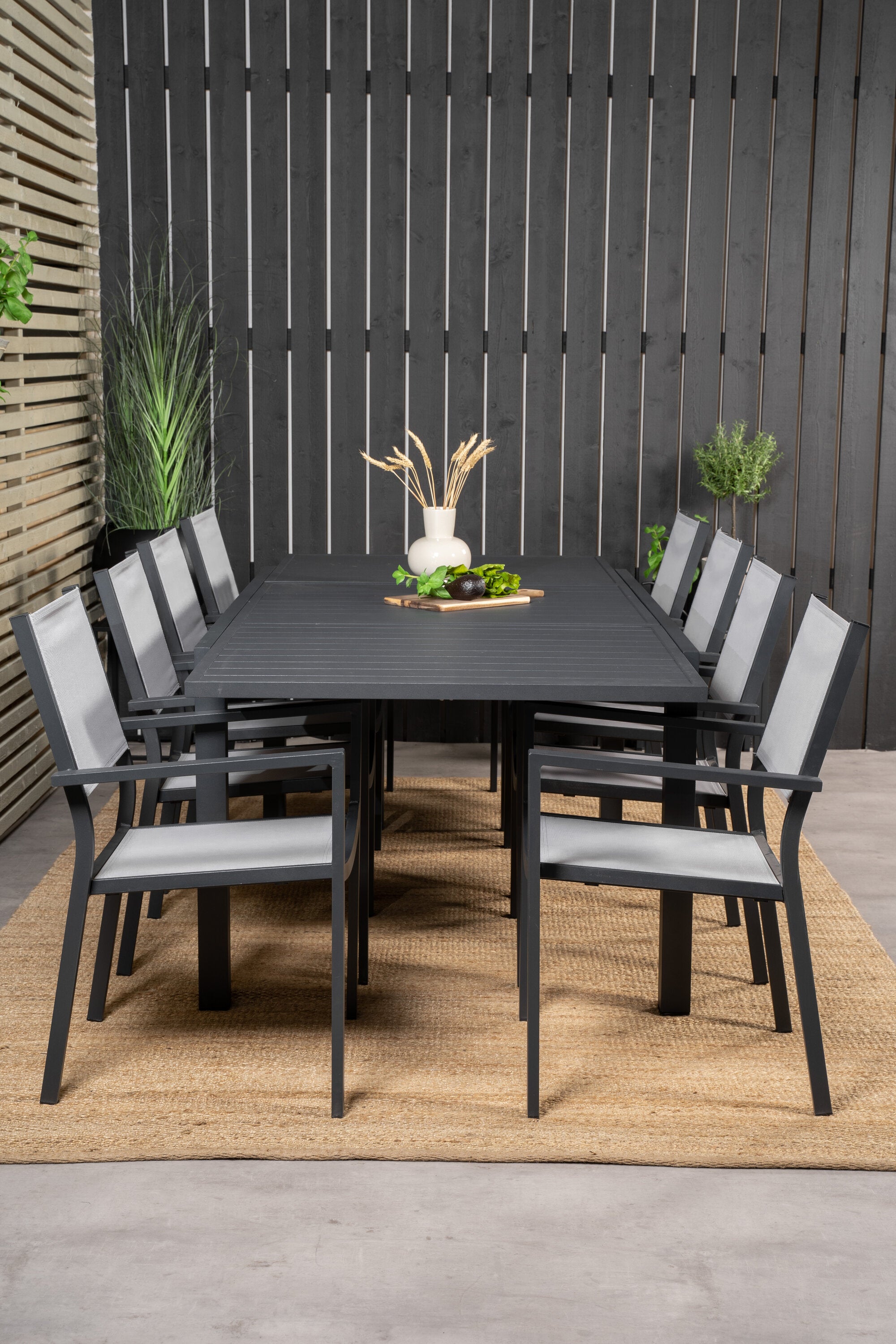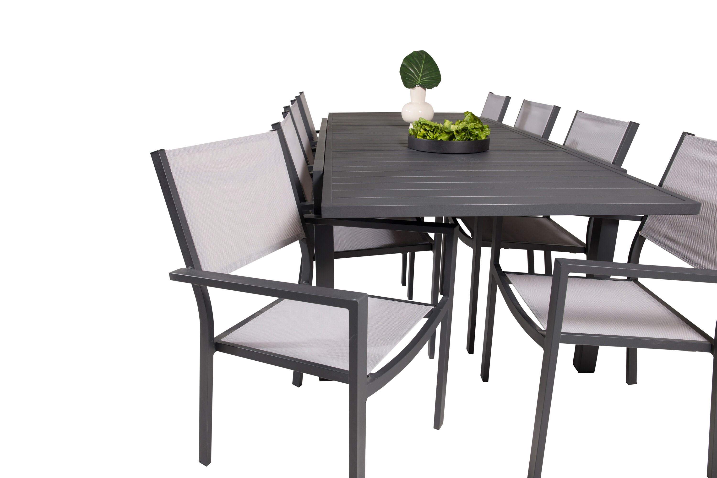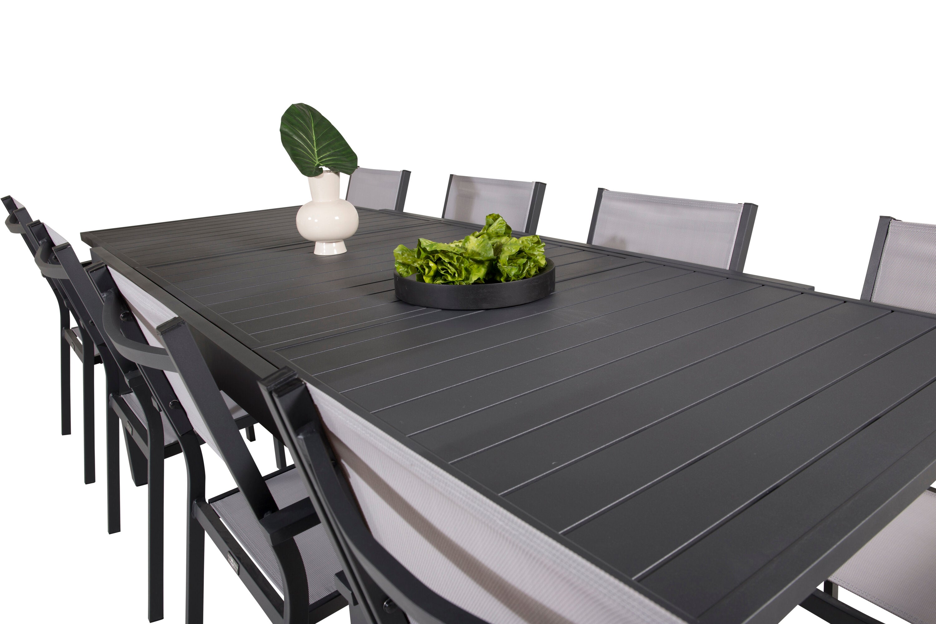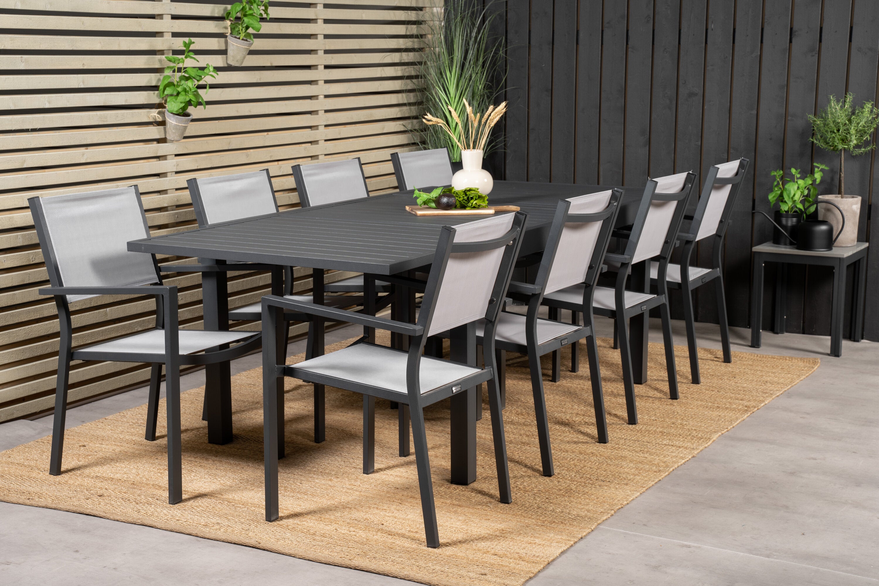 Jídelní stůl Marbella 160/240*100*H75 - Černá + křeslo Copacabana (stohovatelné) - Černá Alu / šedá Textilene_8