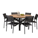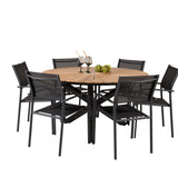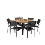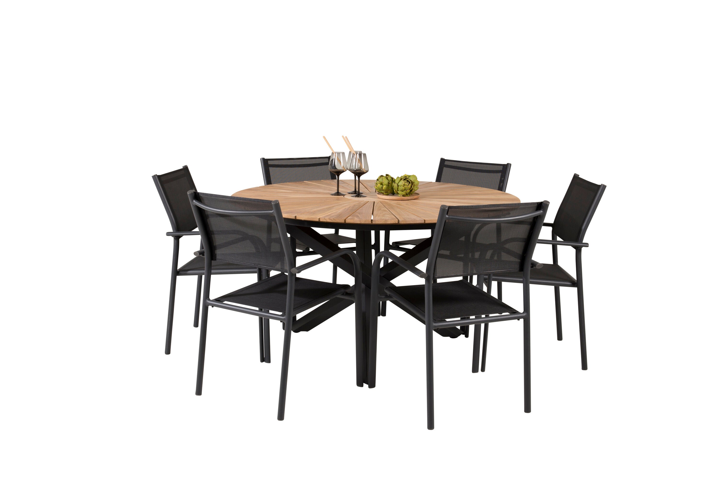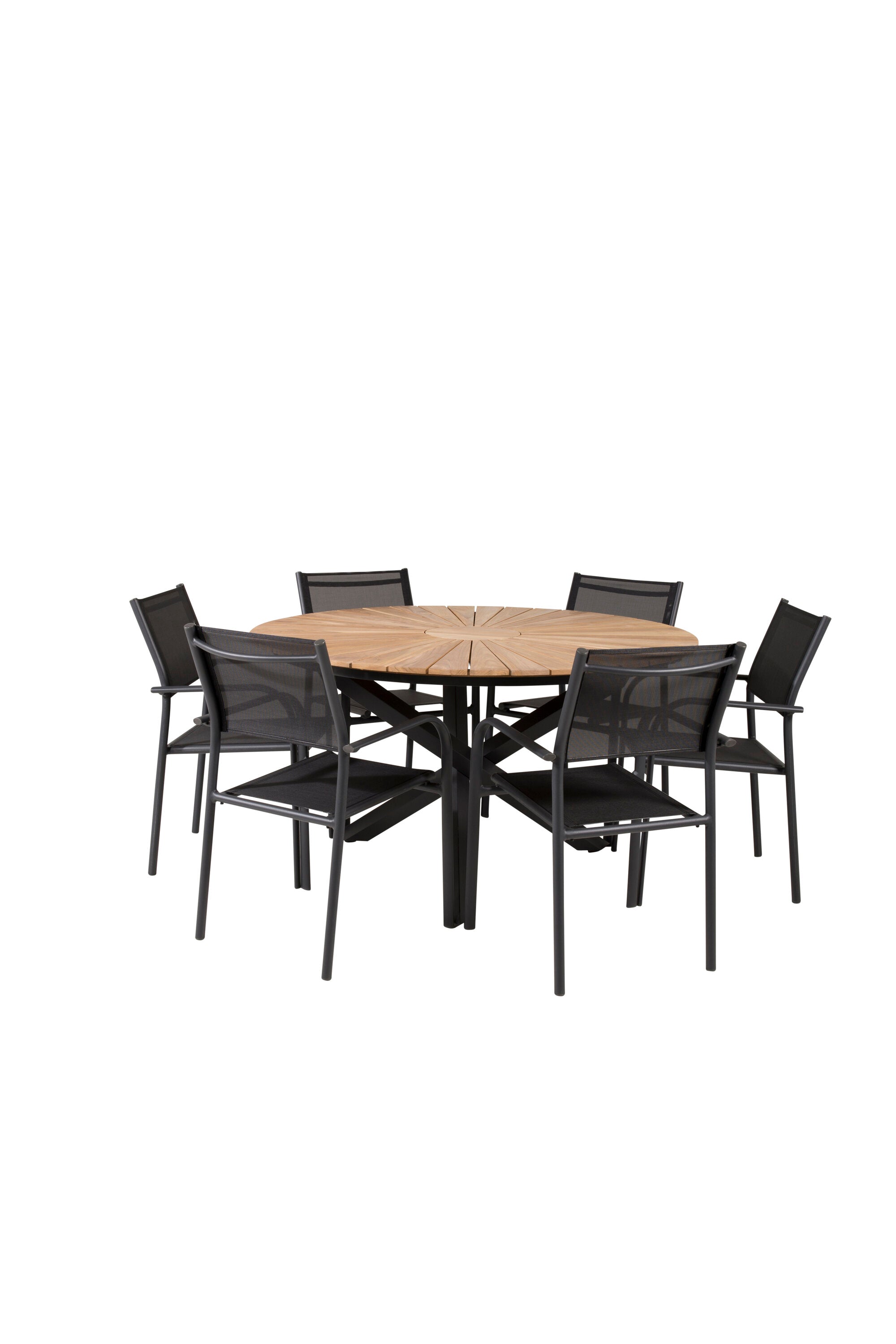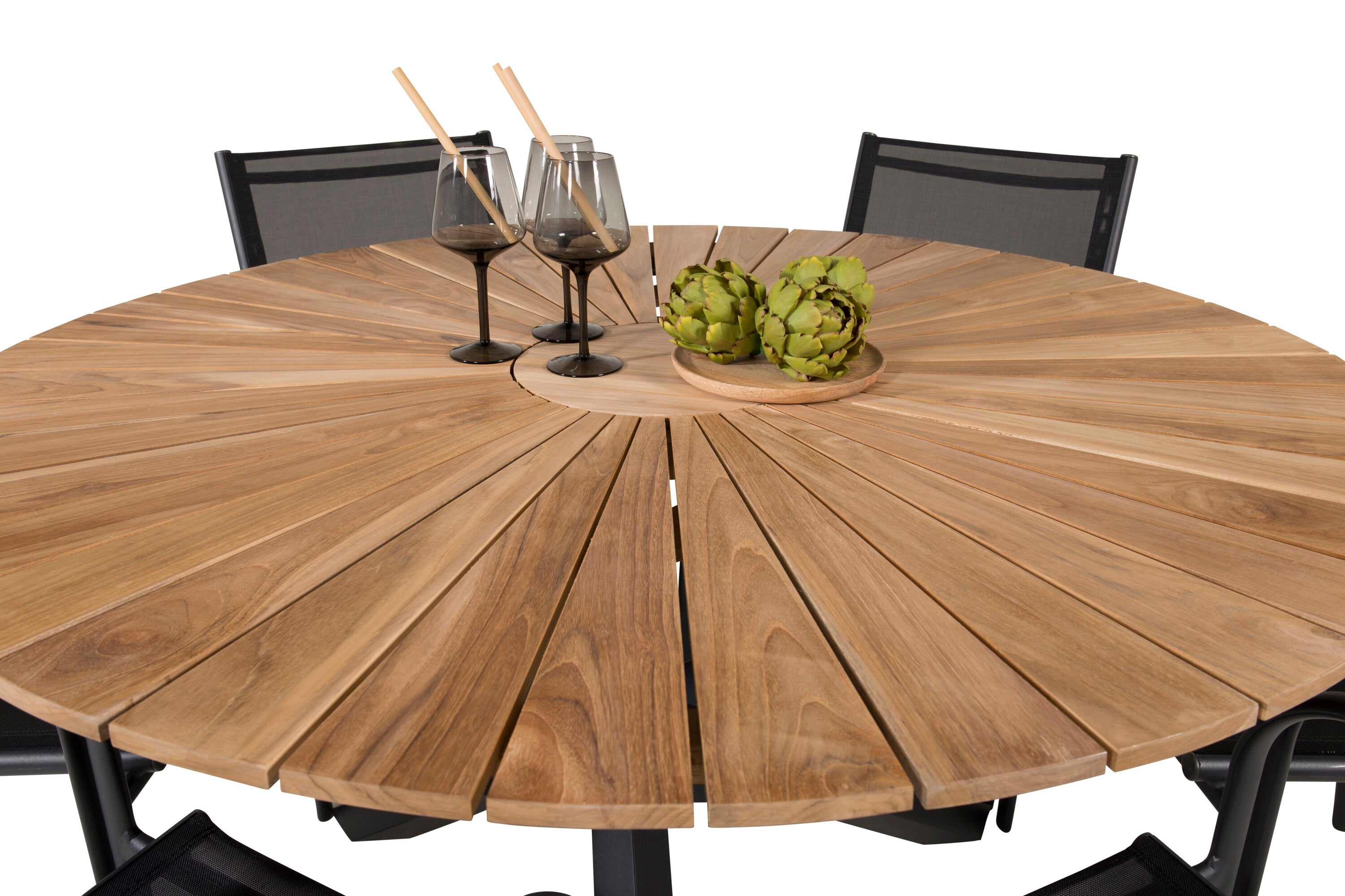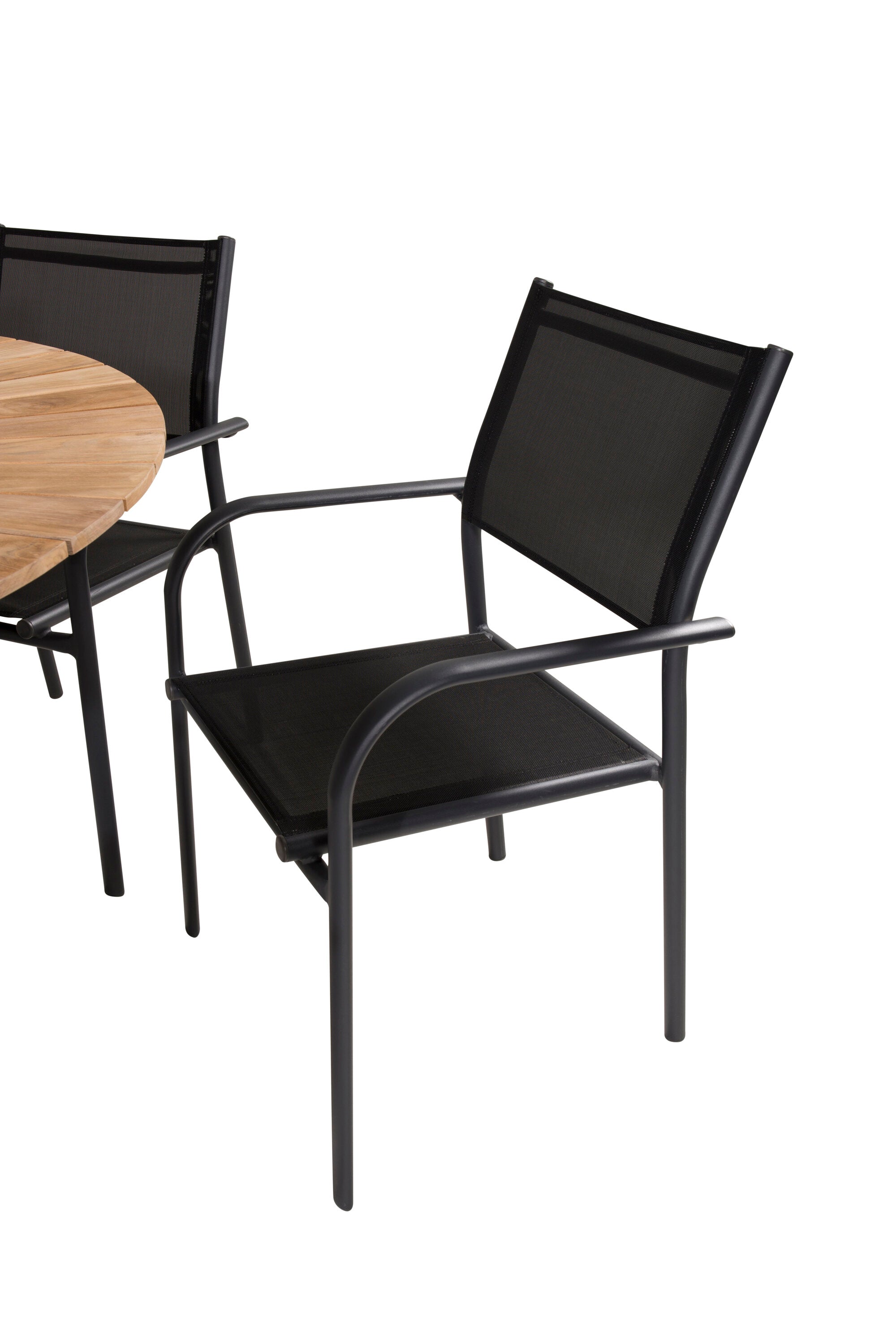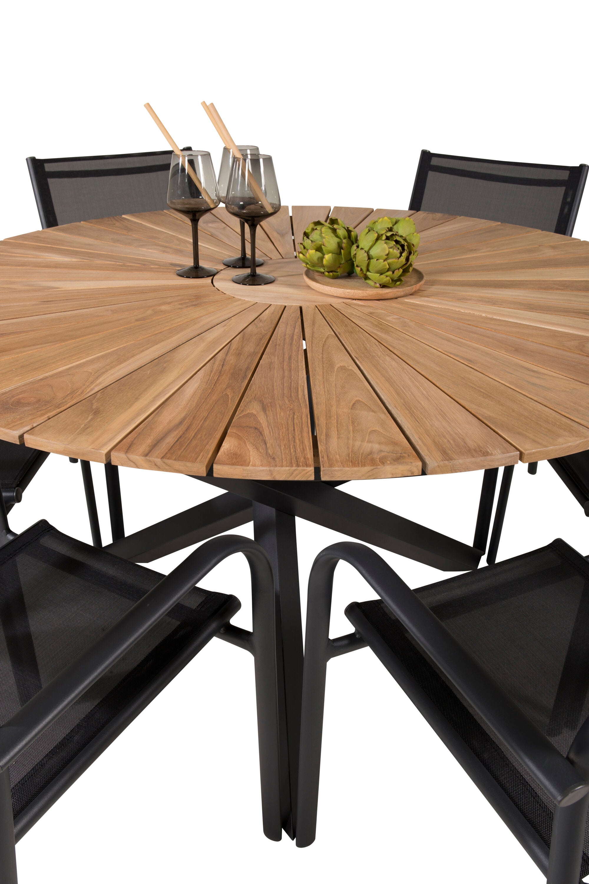 Jídelní stůl Mexico ø140 – Černá / Teak+Santorini křeslo (stohovatelné) – Černá