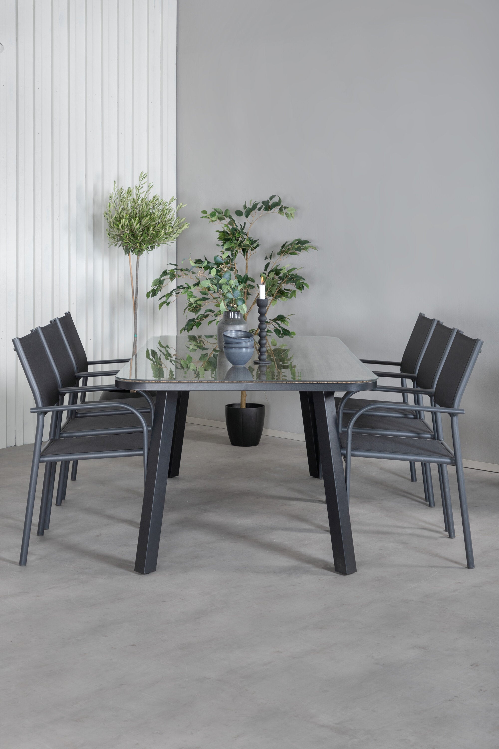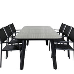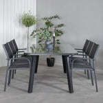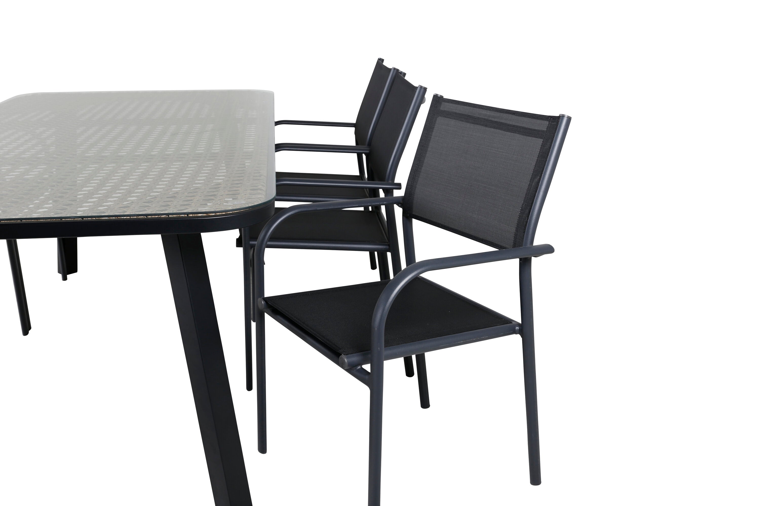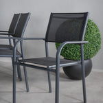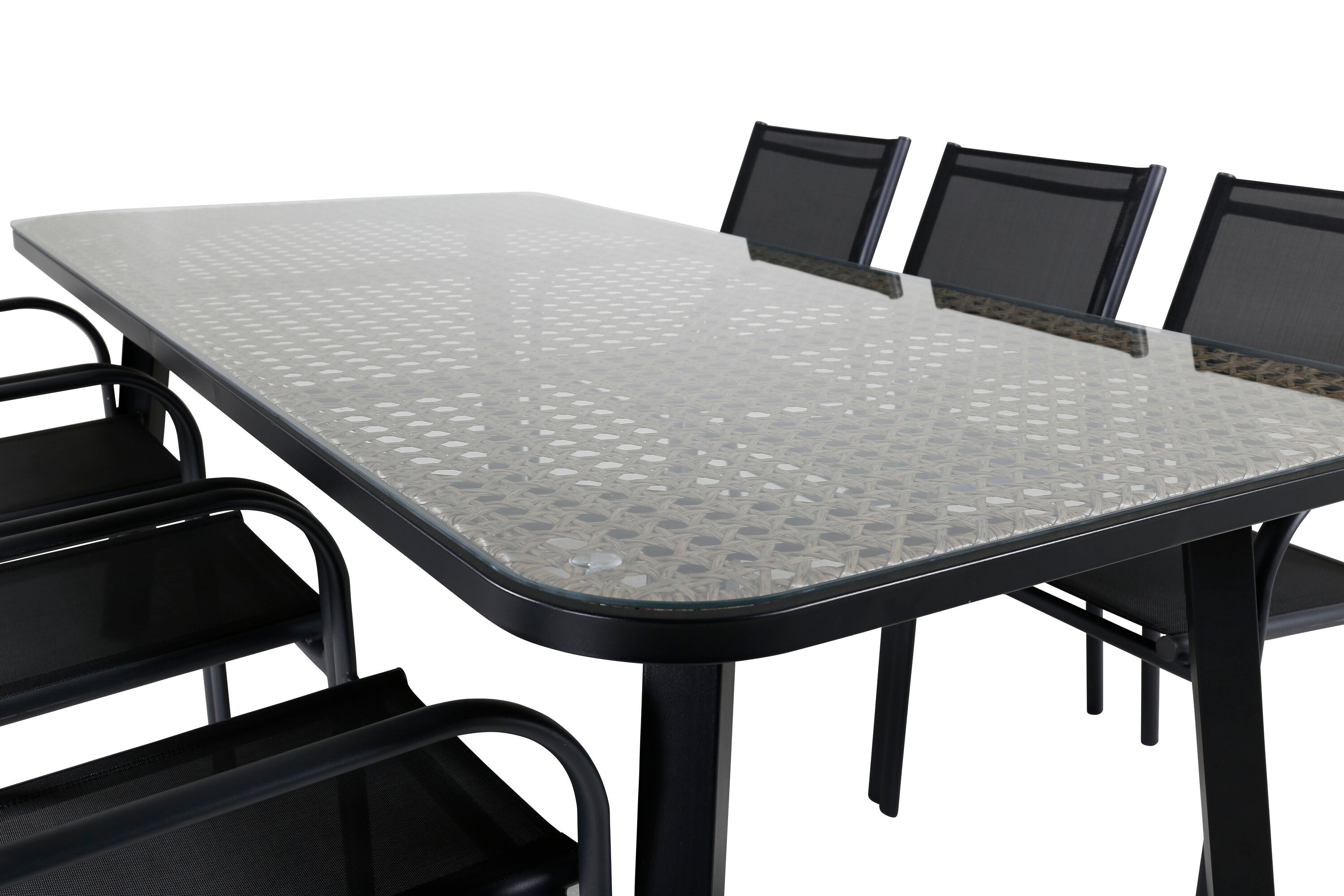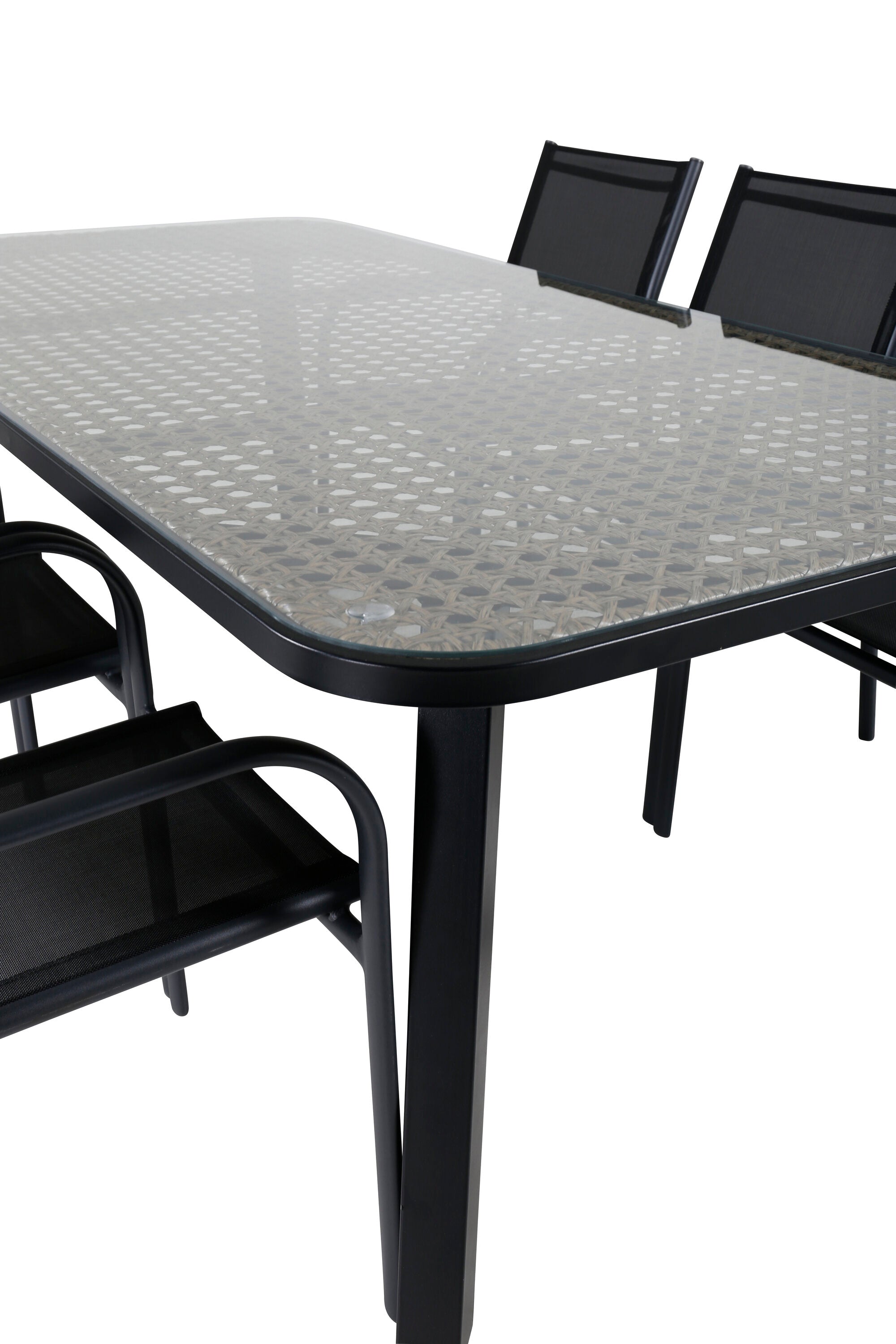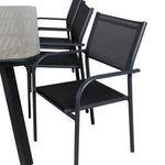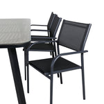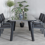 Jídelní stůl Paola - černá ocel / přírodní proutí - 200*100 + křeslo Santorini (stohovatelné) - černá alu / černá textilie_6
