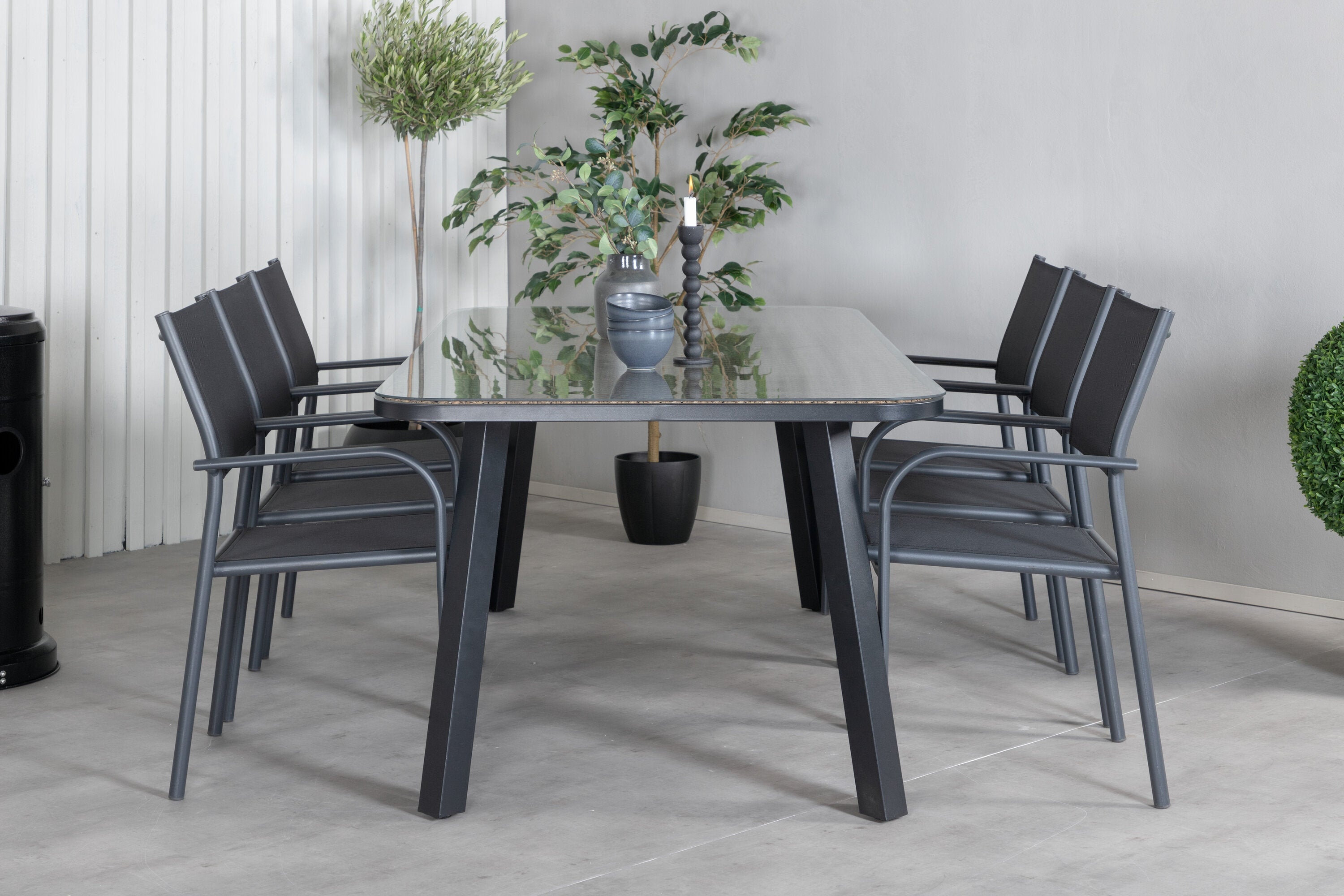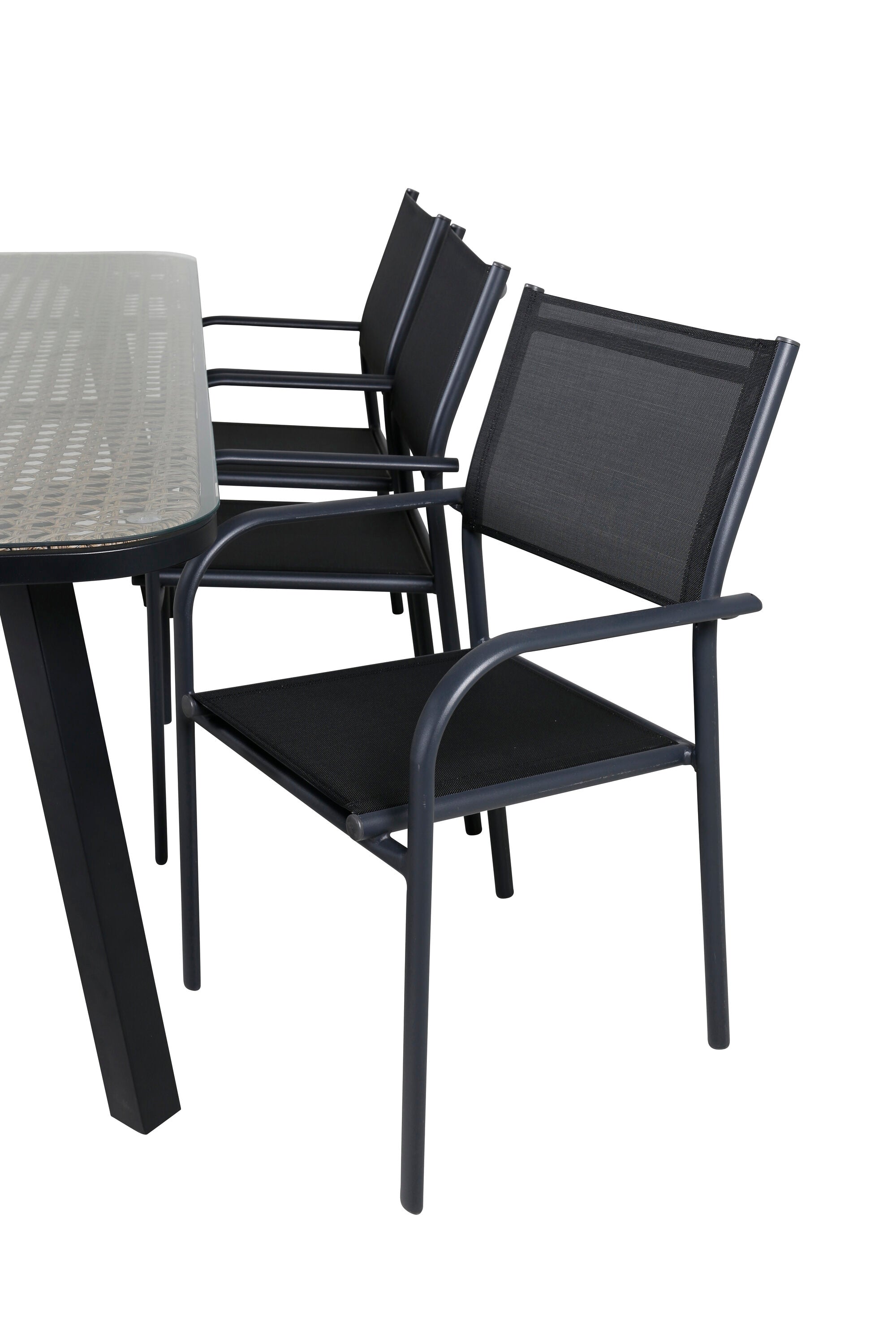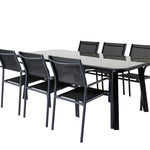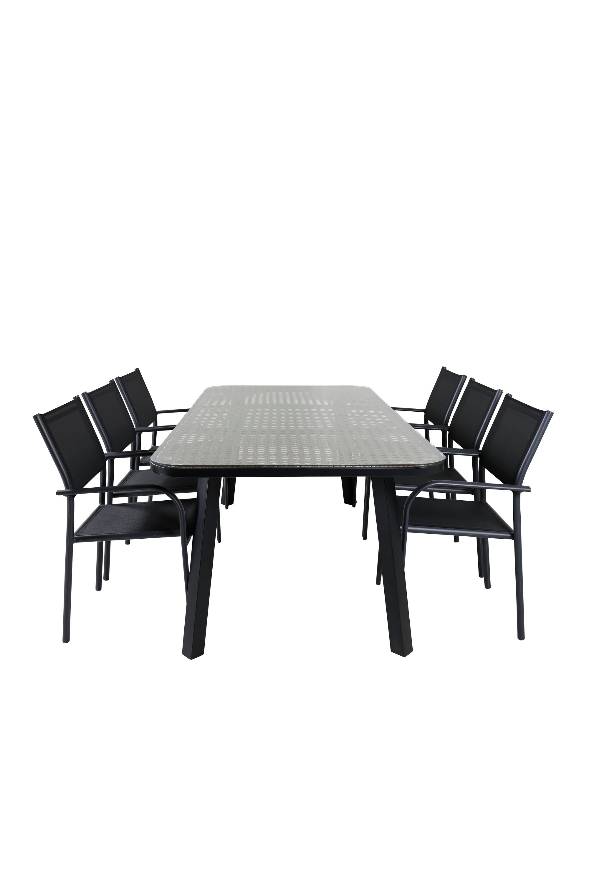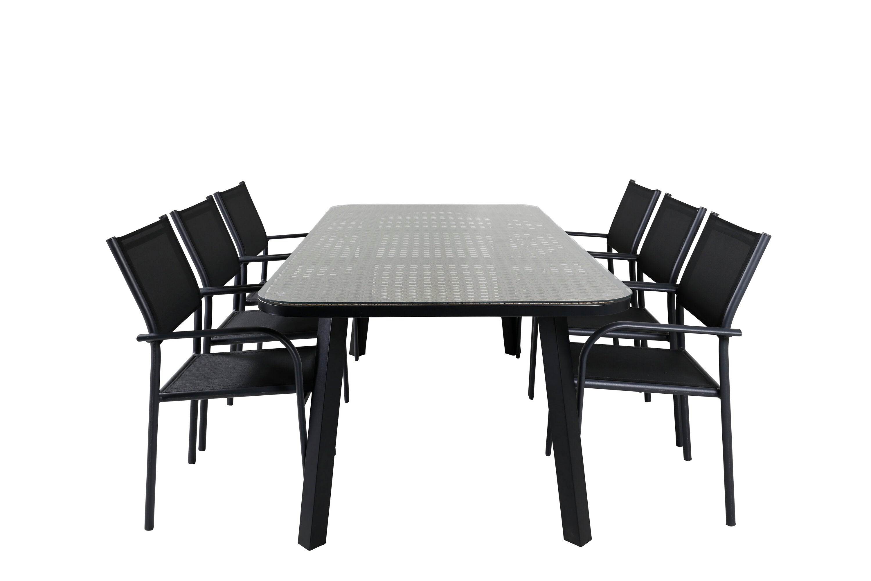 Jídelní stůl Paola - černá ocel / přírodní proutí - 200*100 + křeslo Santorini (stohovatelné) - černá alu / černá textilie_6