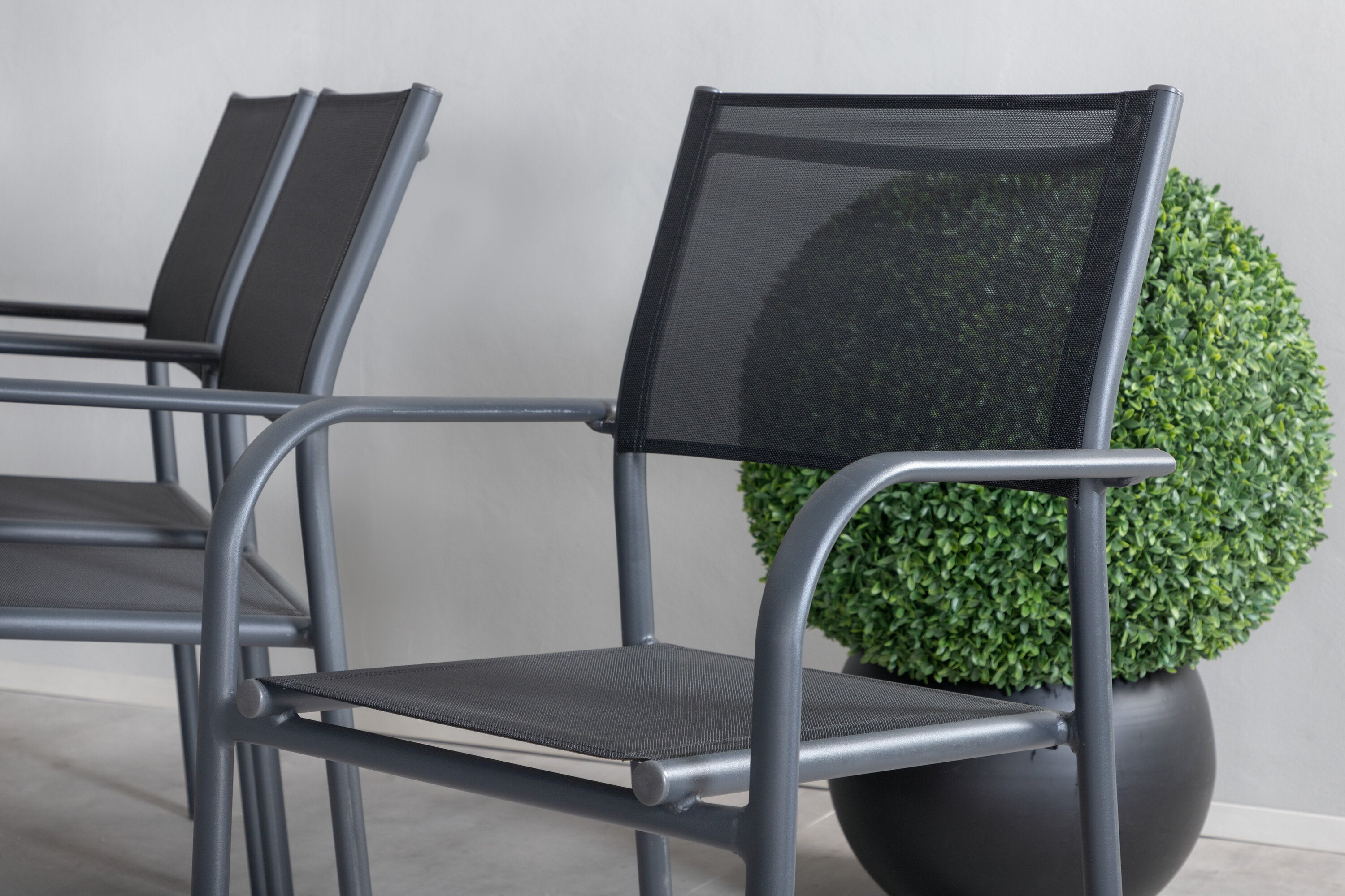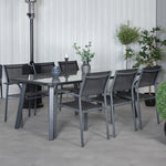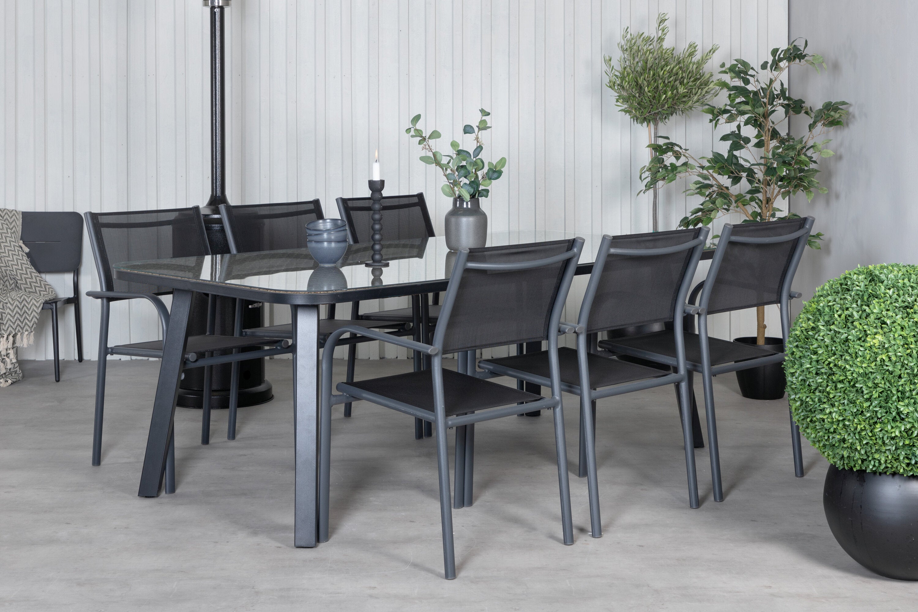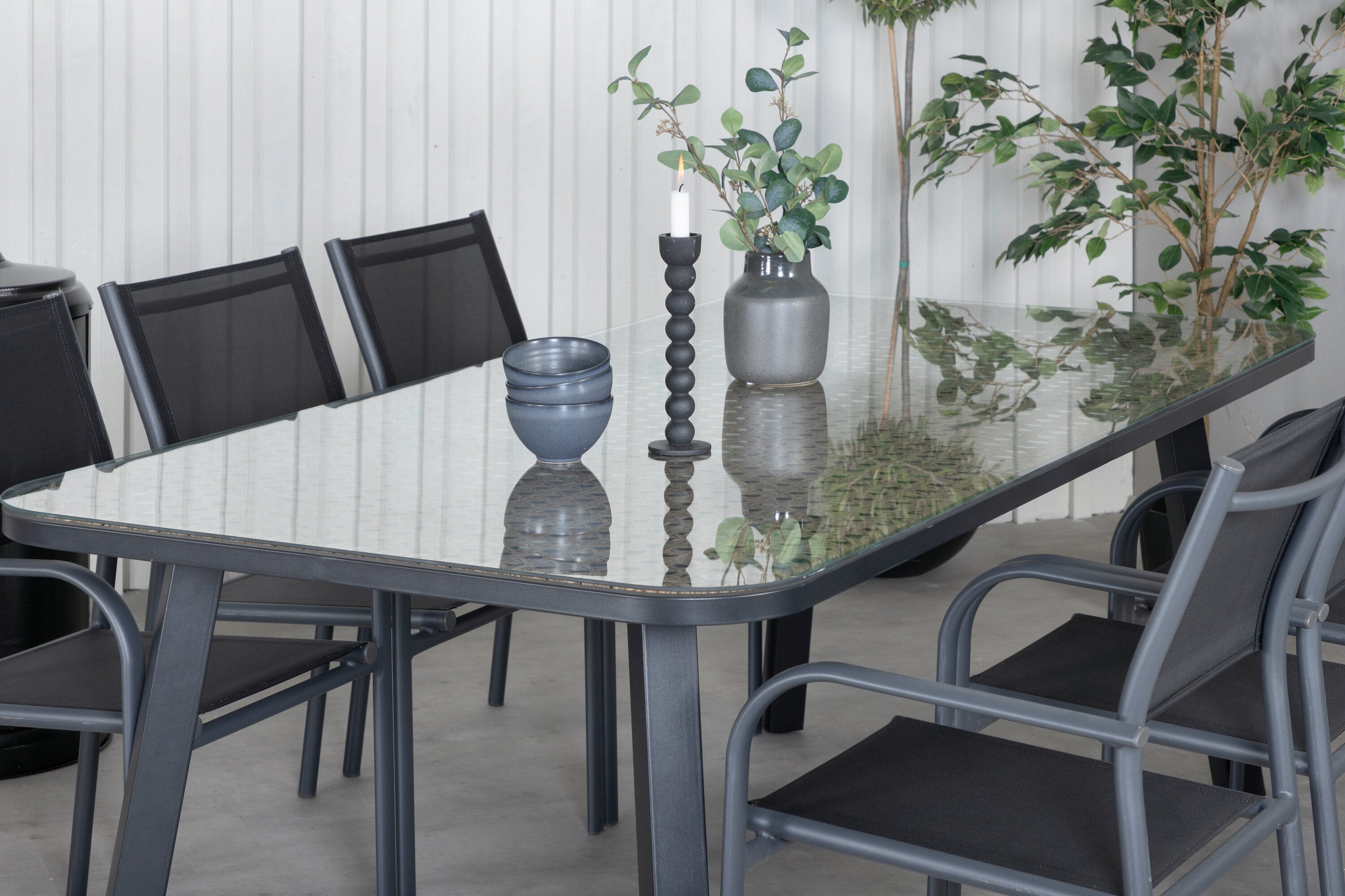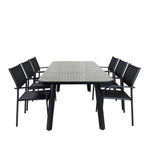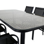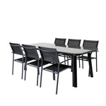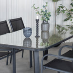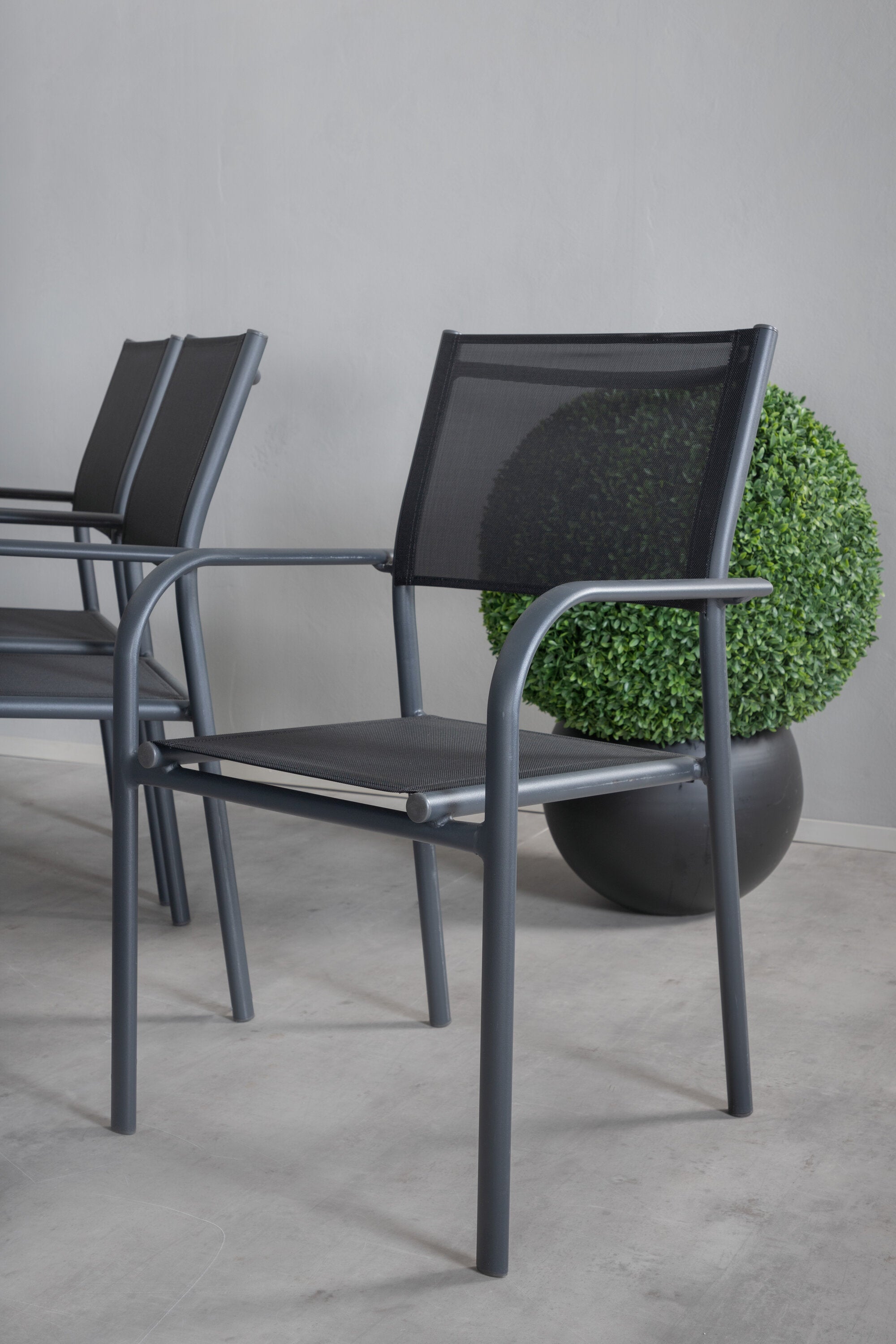 Jídelní stůl Paola - černá ocel / přírodní proutí - 200*100 + křeslo Santorini (stohovatelné) - černá alu / černá textilie_6