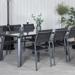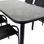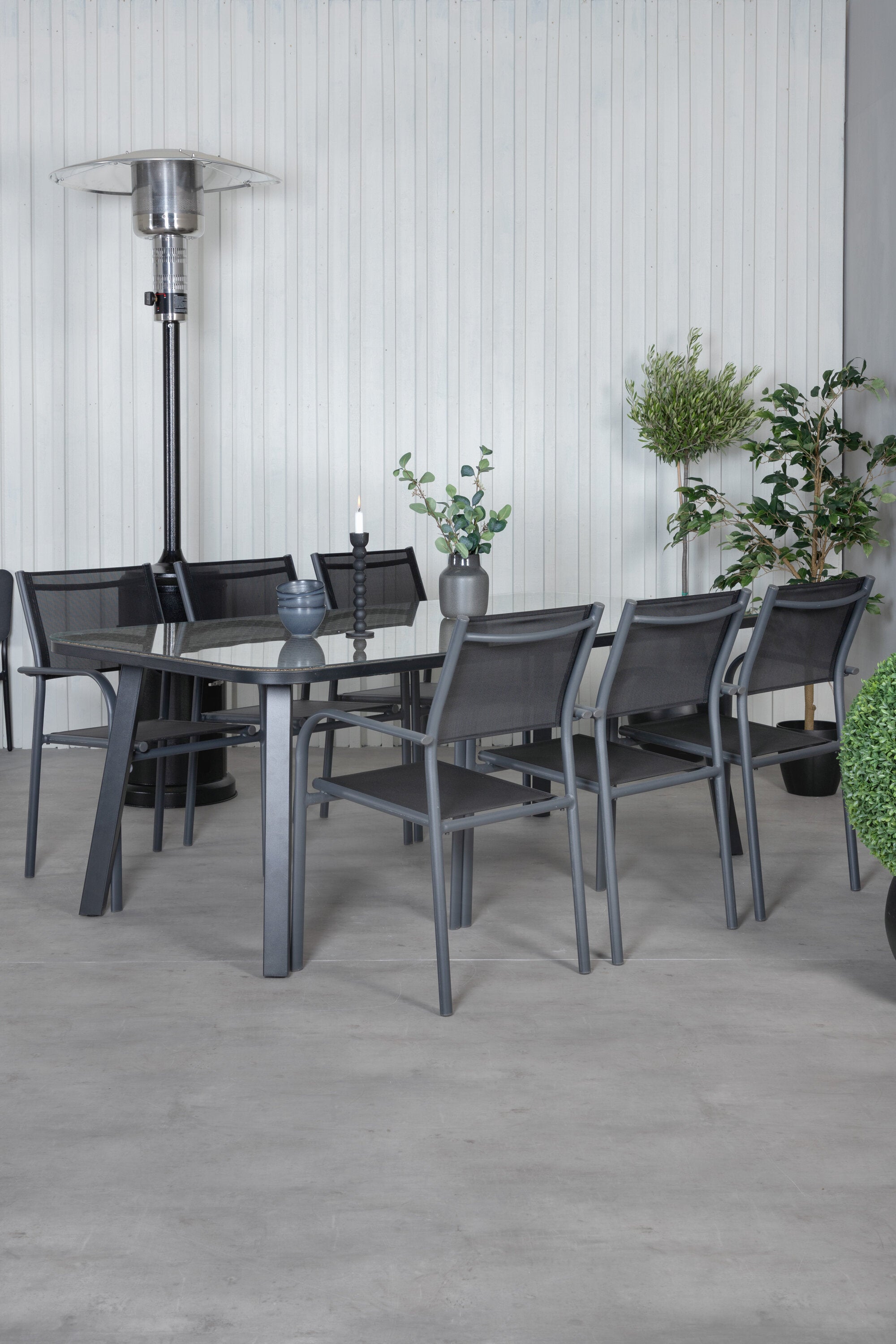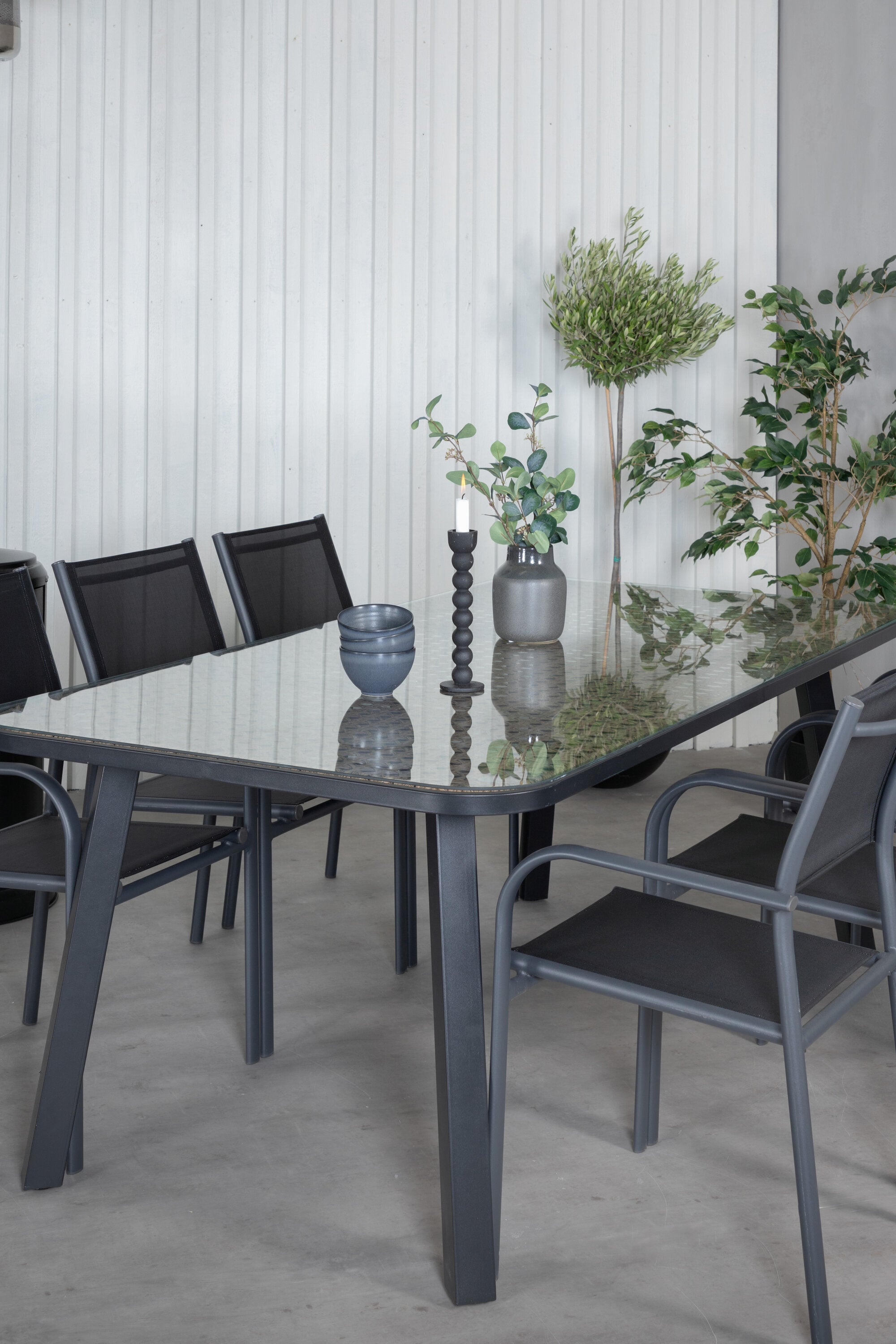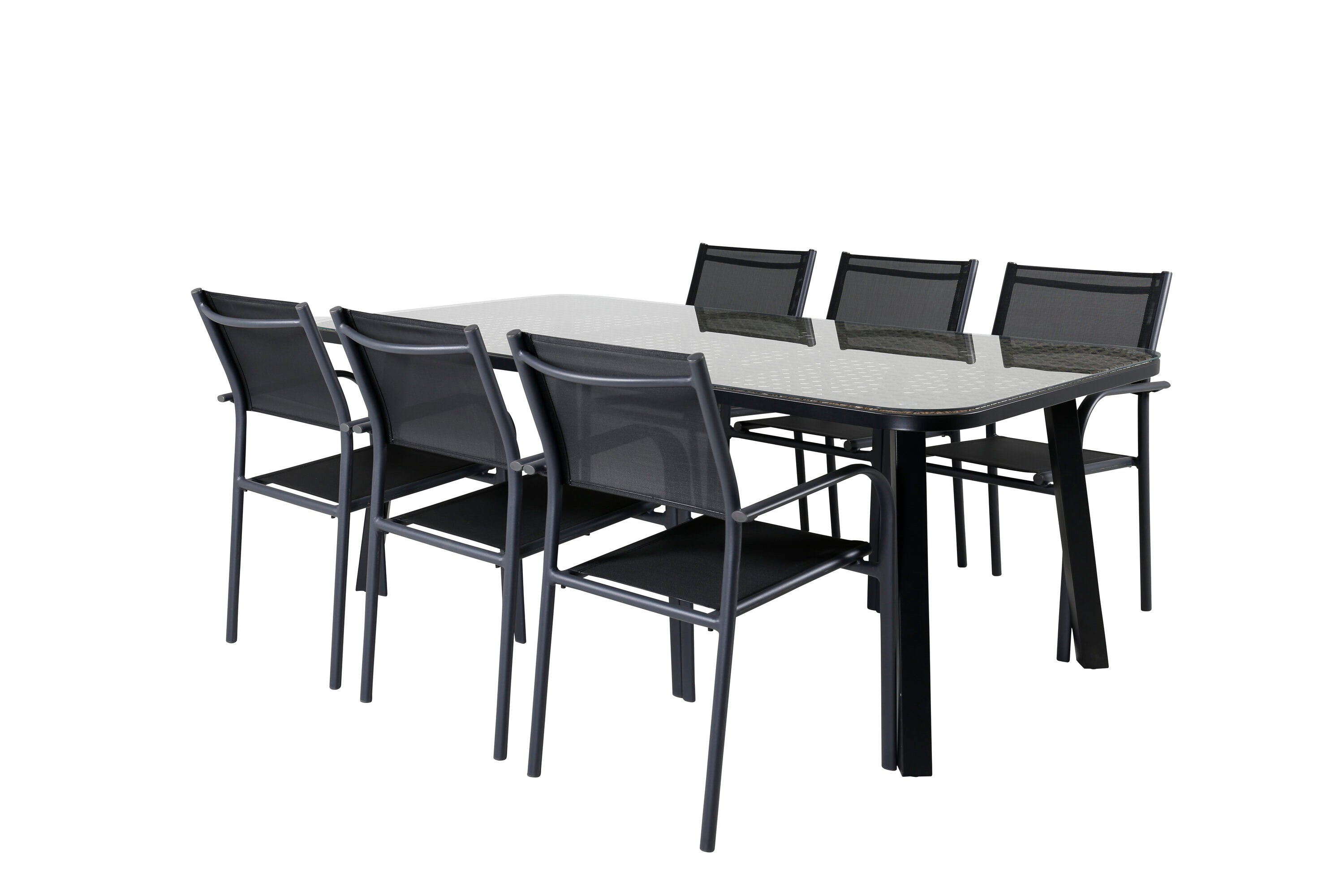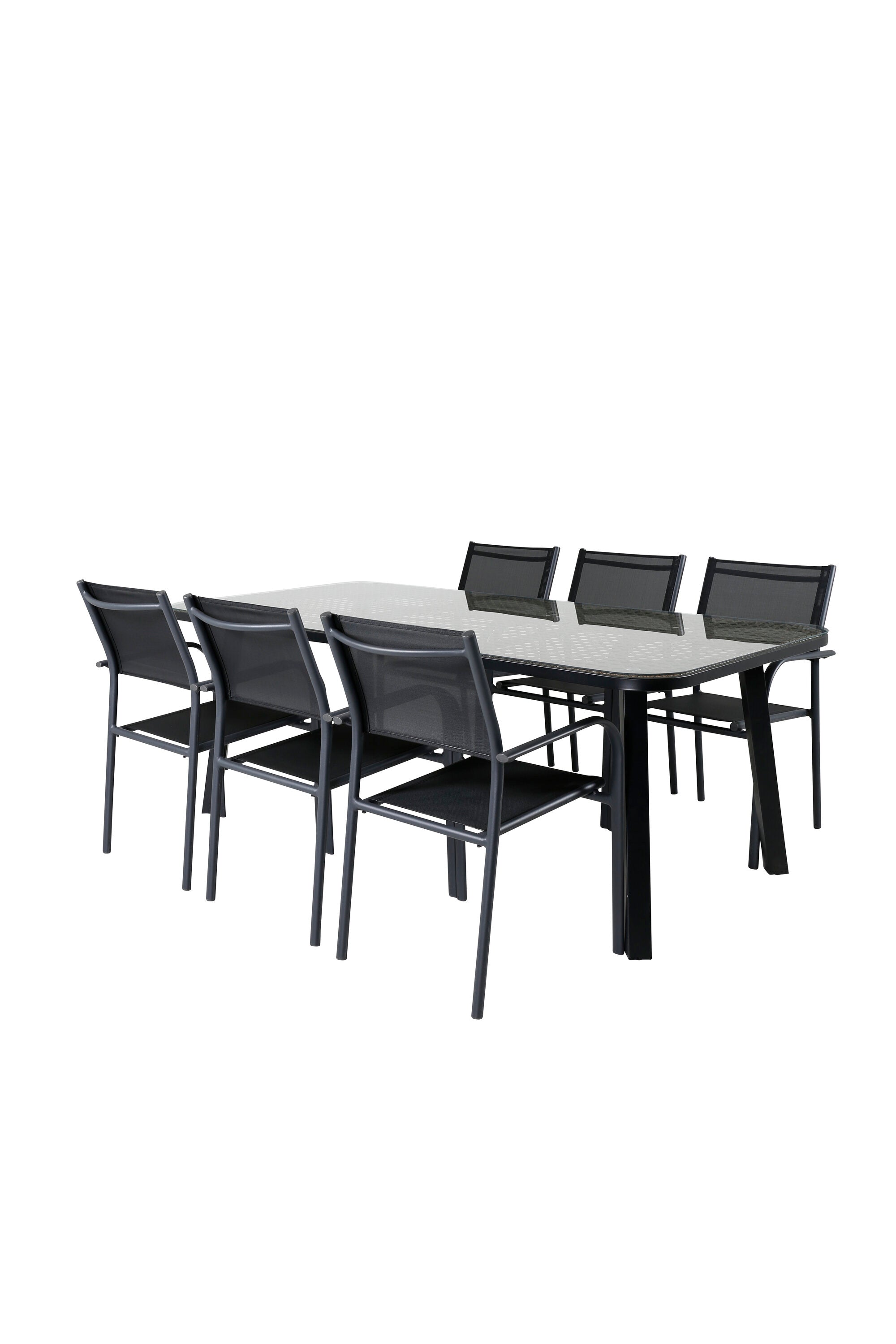 Jídelní stůl Paola - černá ocel / přírodní proutí - 200*100 + křeslo Santorini (stohovatelné) - černá alu / černá textilie_6