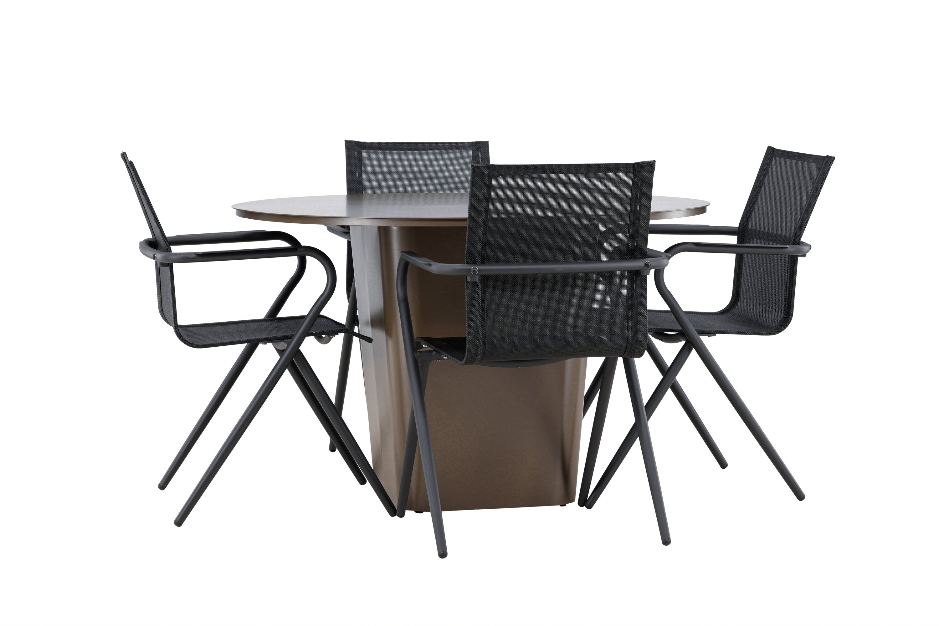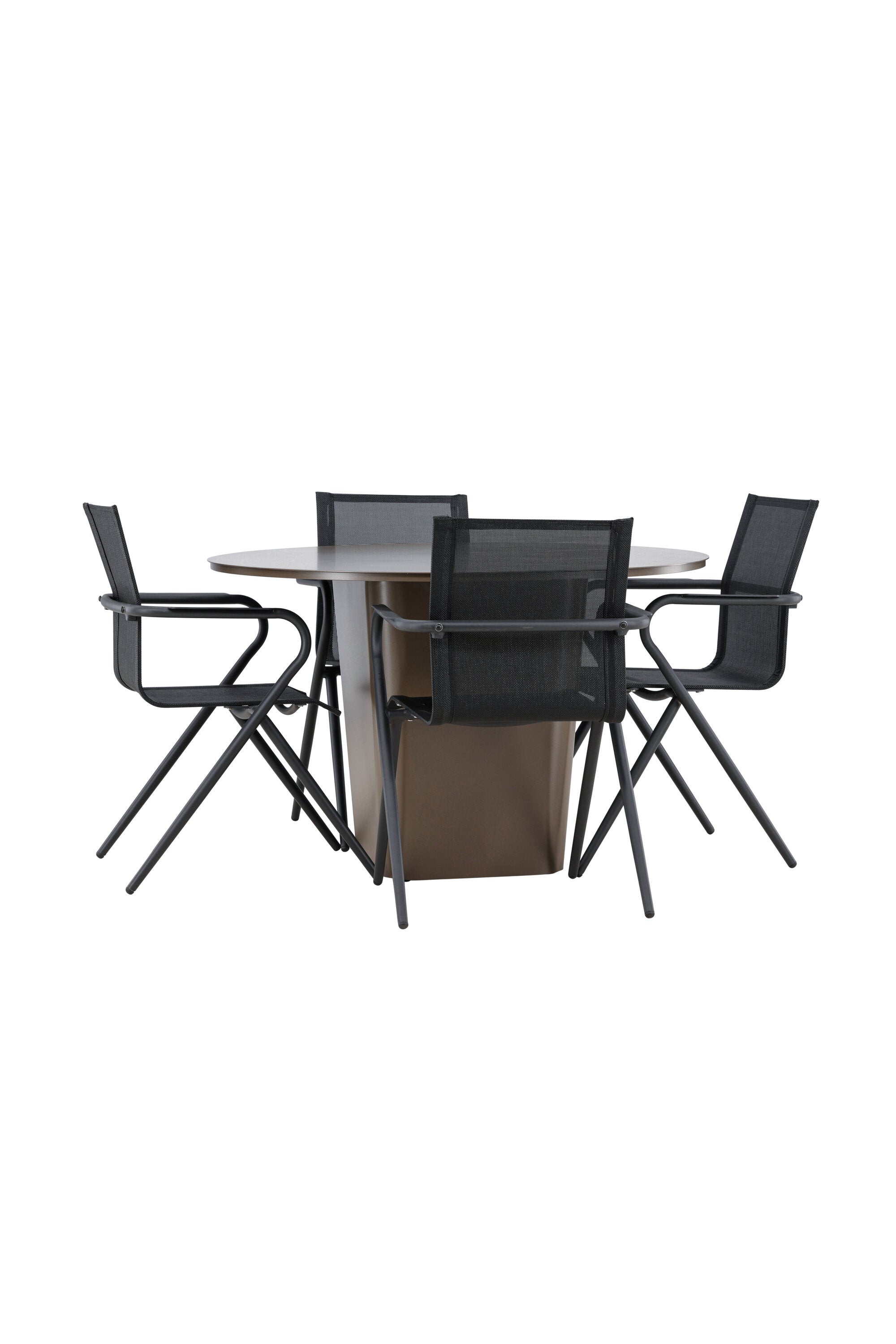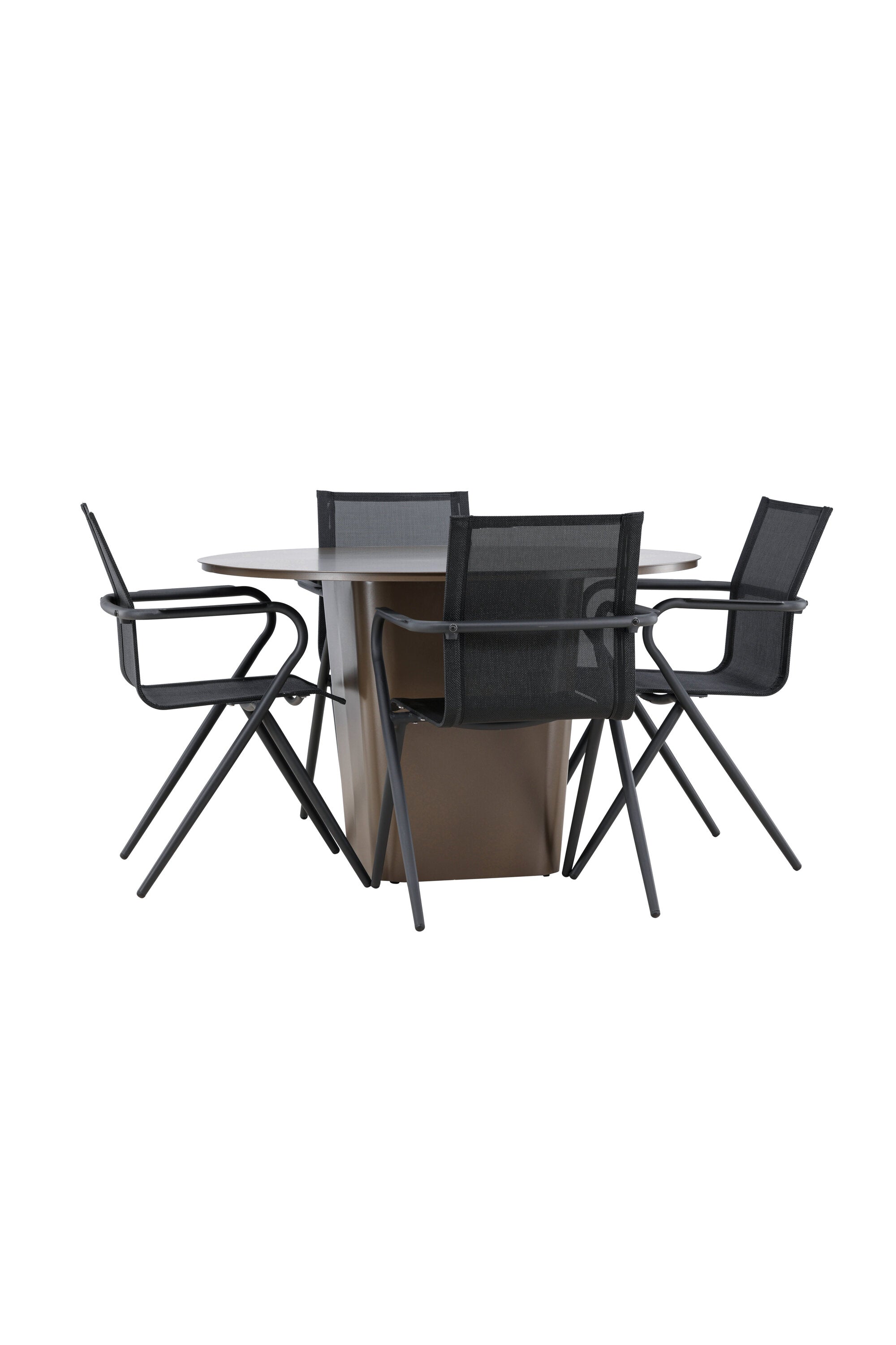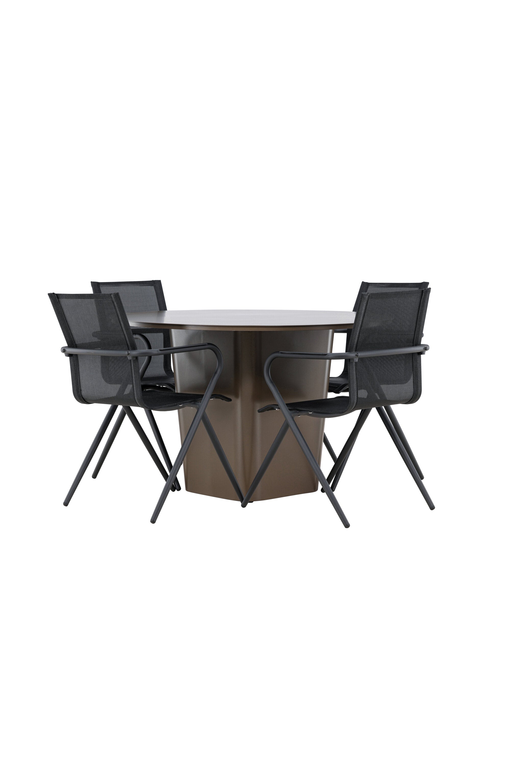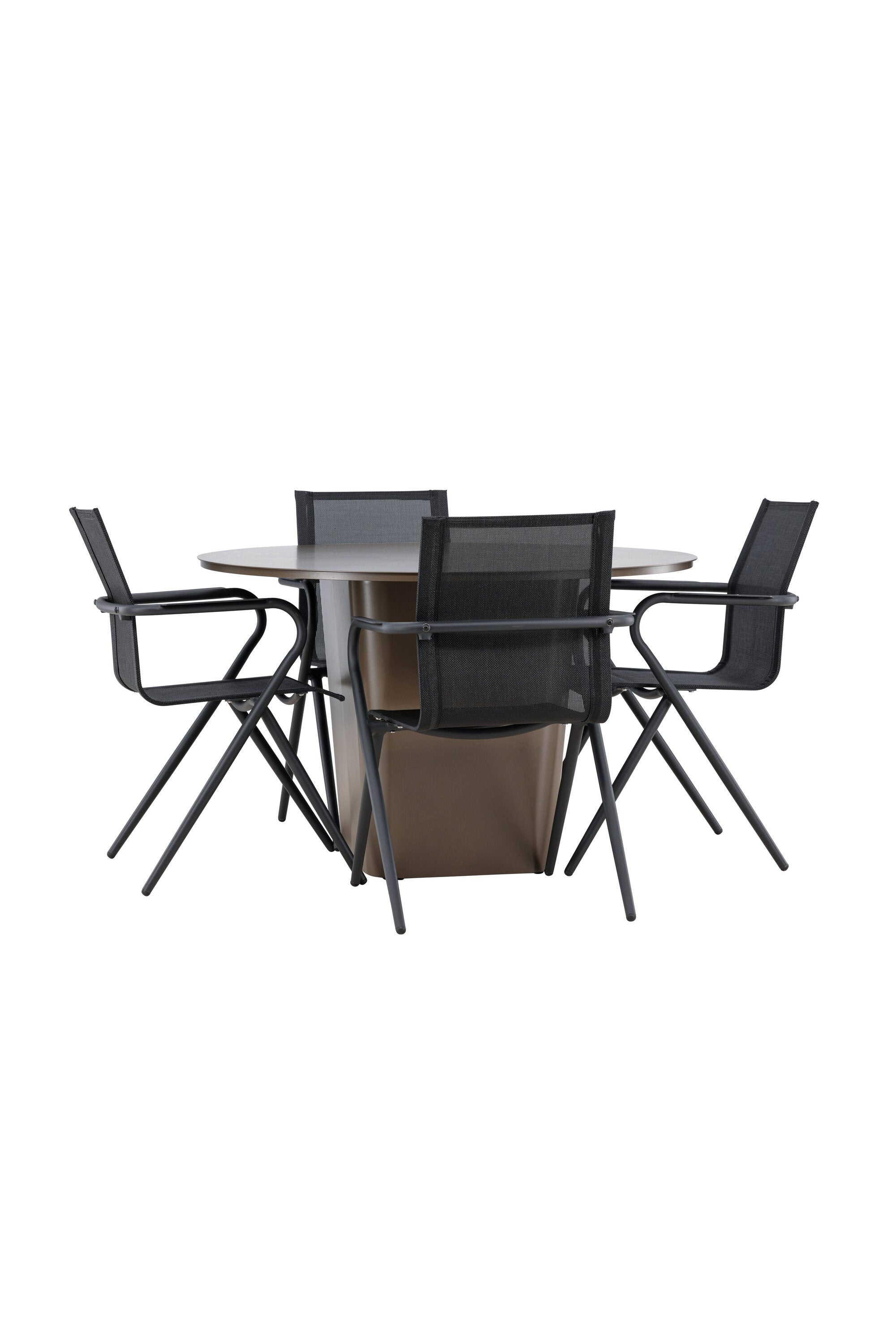Objevte perfektní jídelní set pro váš venkovní prostor s naším elegantním souborem, který se skládá ze stolu Santa a židlí Alina.