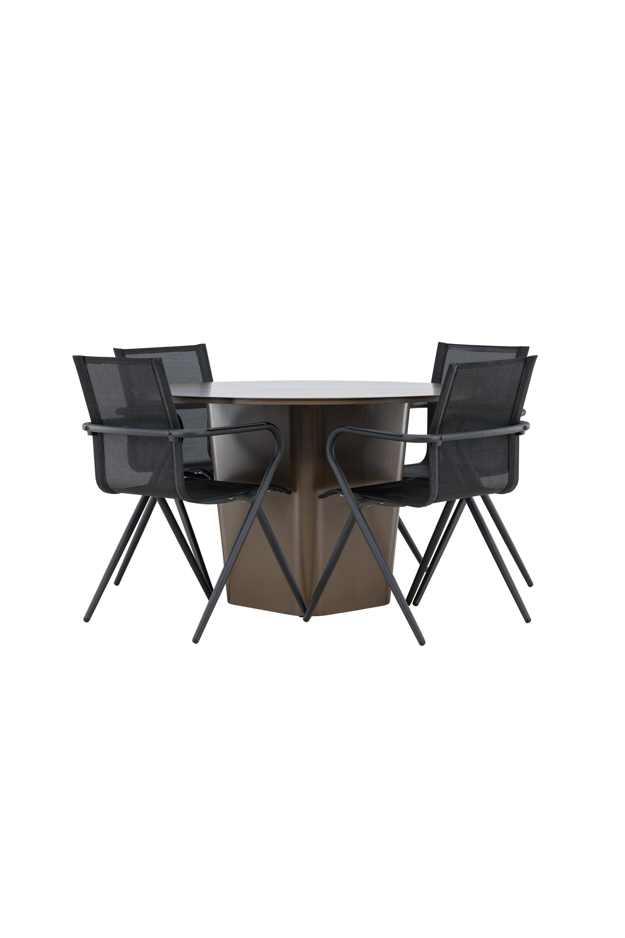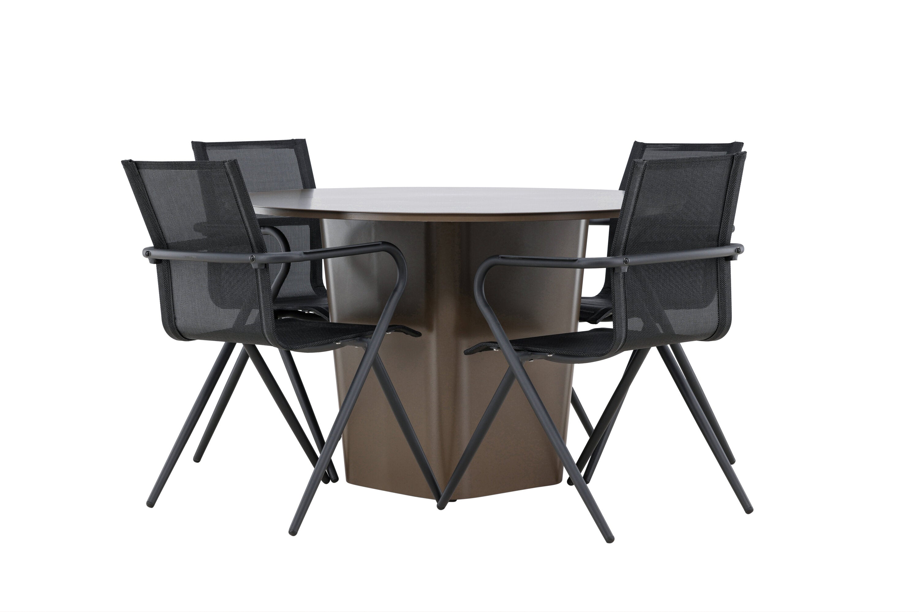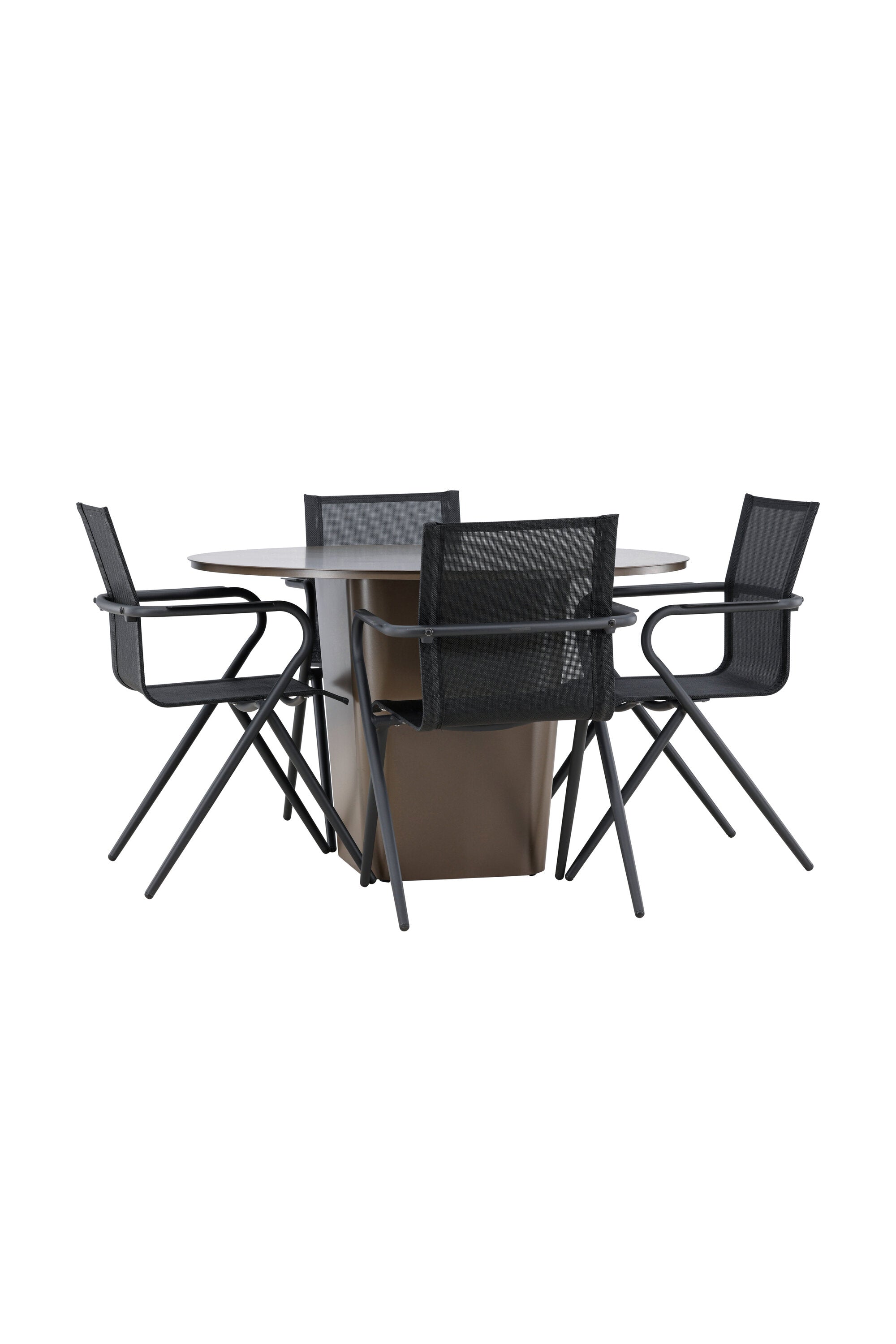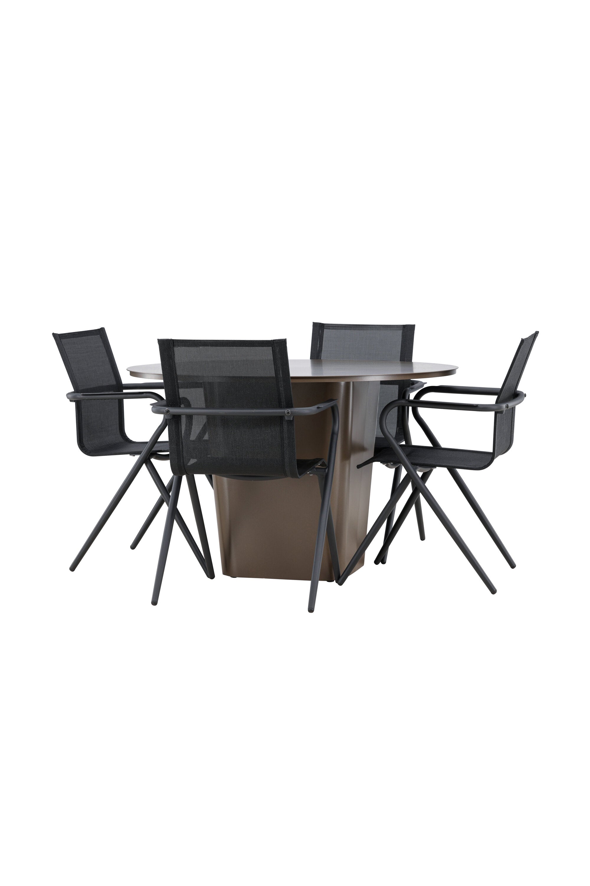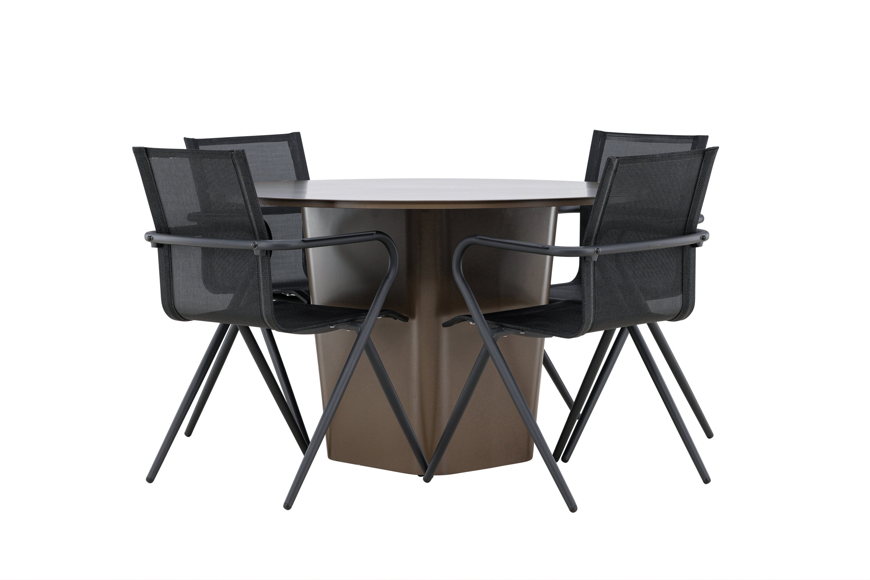 Objevte perfektní jídelní set pro váš venkovní prostor s naším elegantním souborem, který se skládá ze stolu Santa a židlí Alina.
