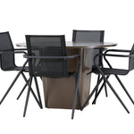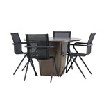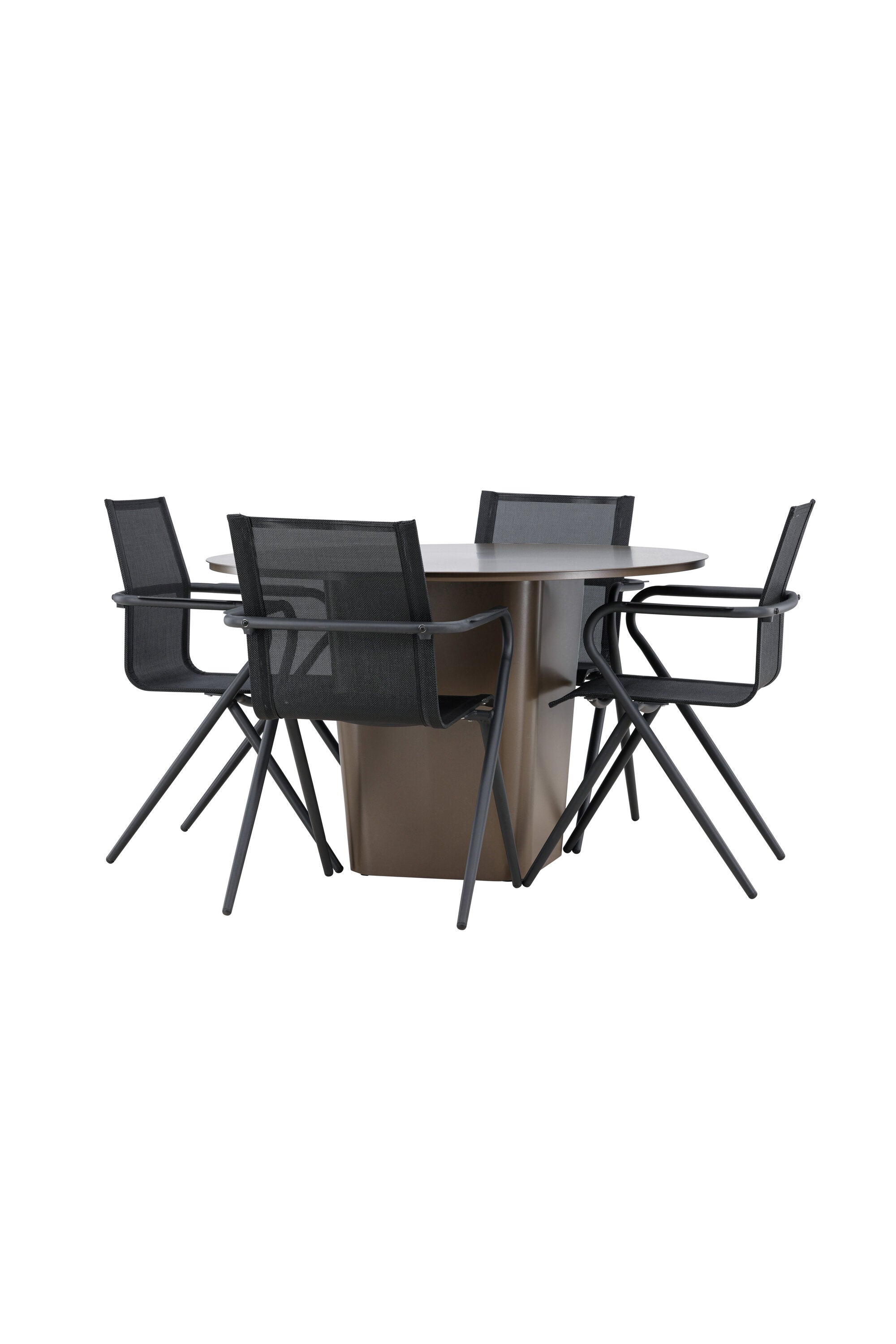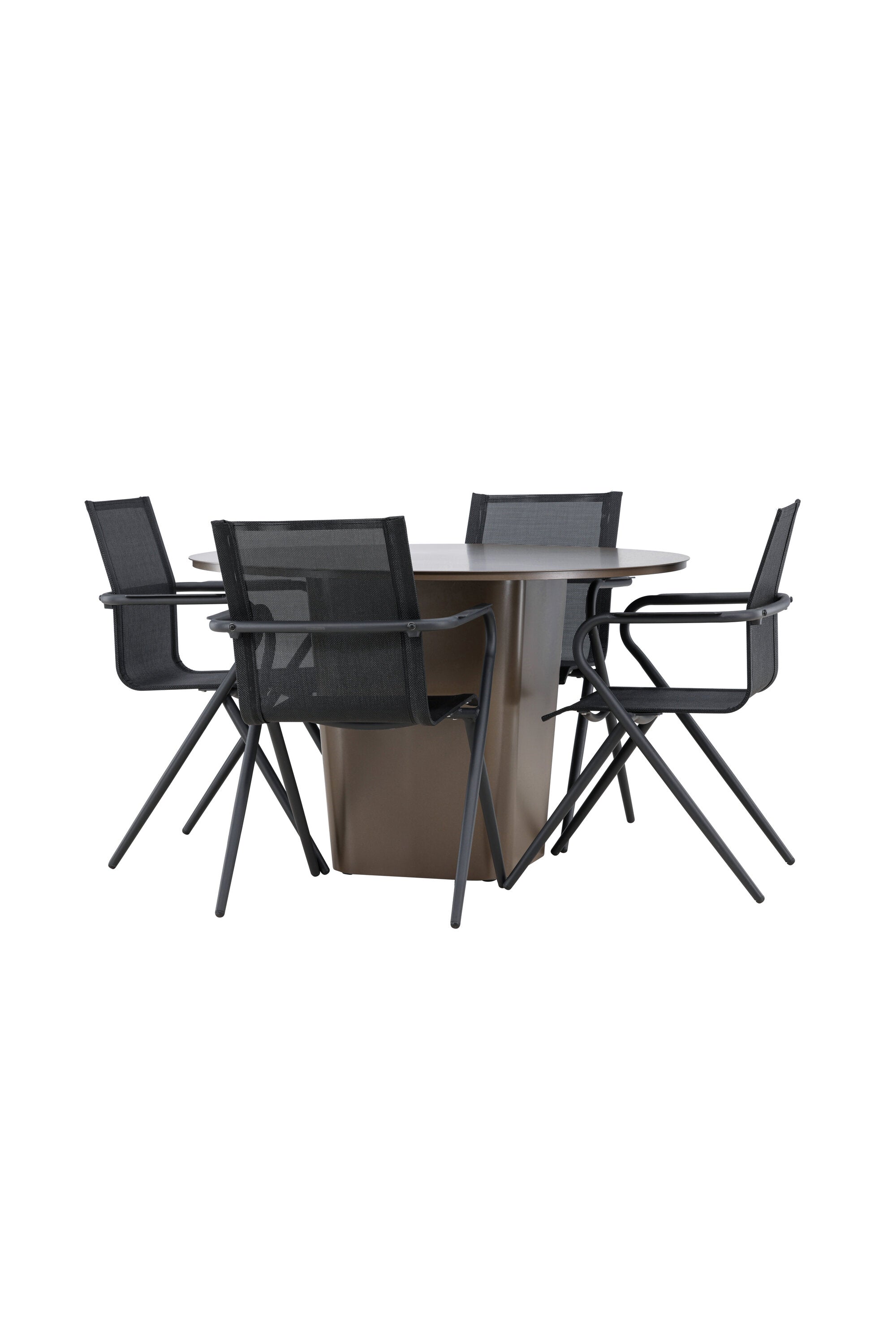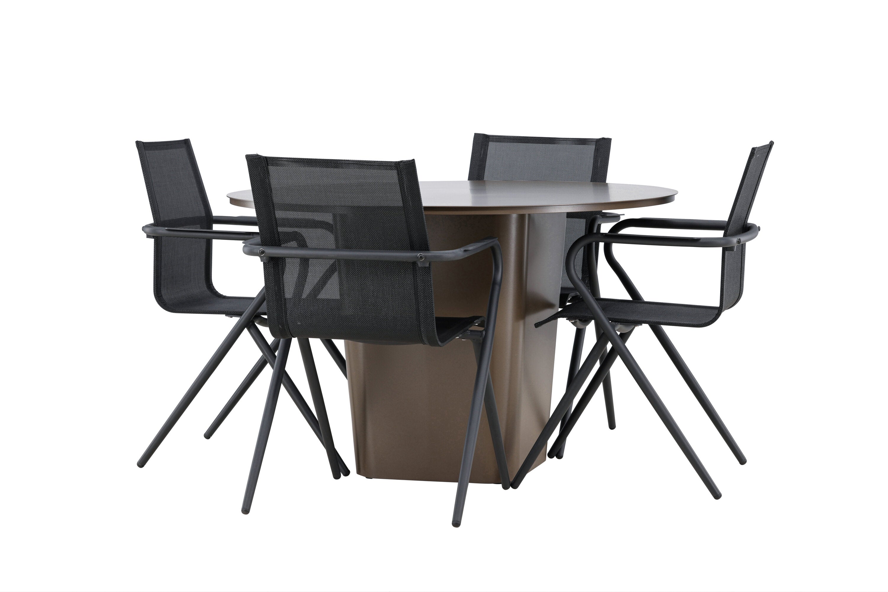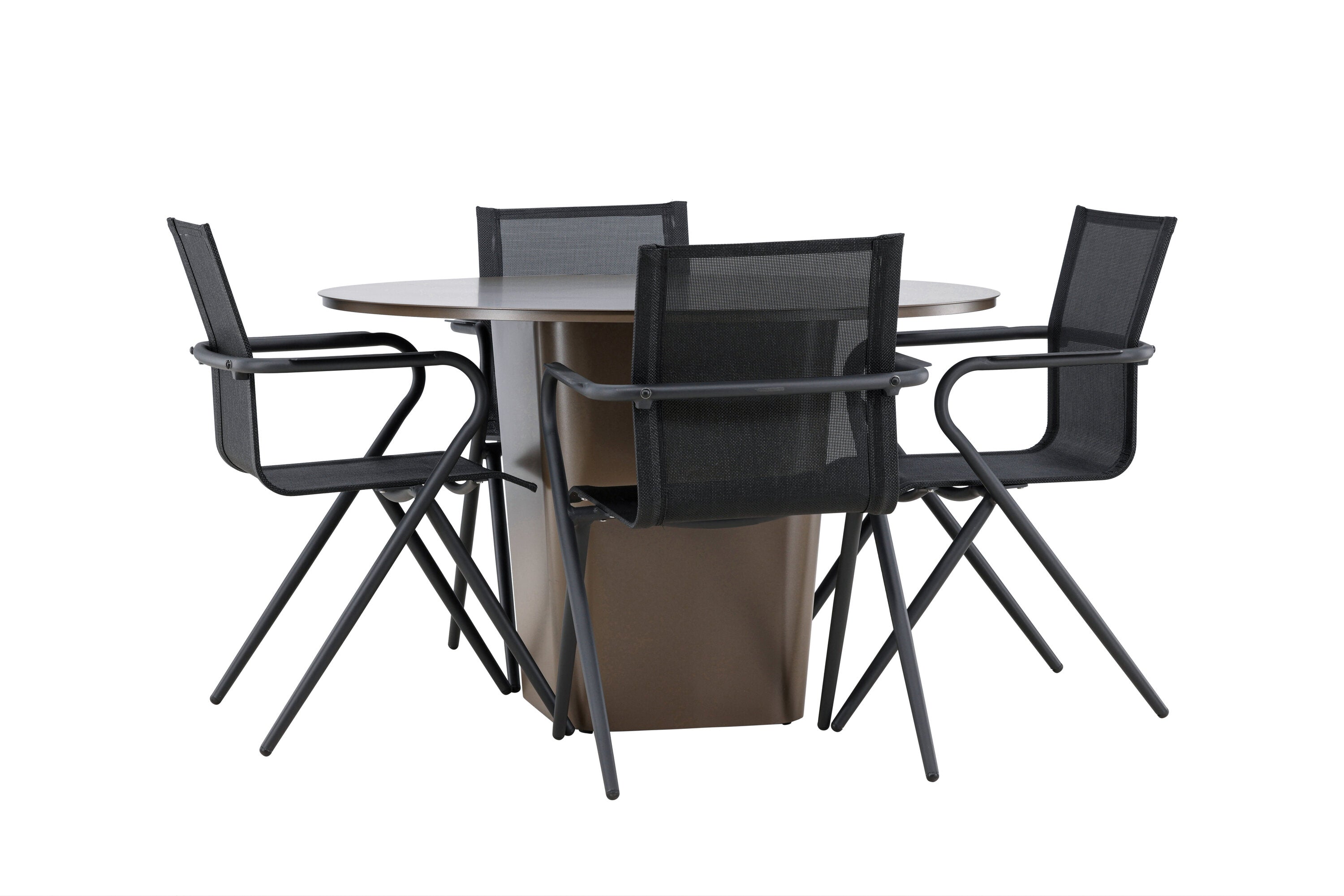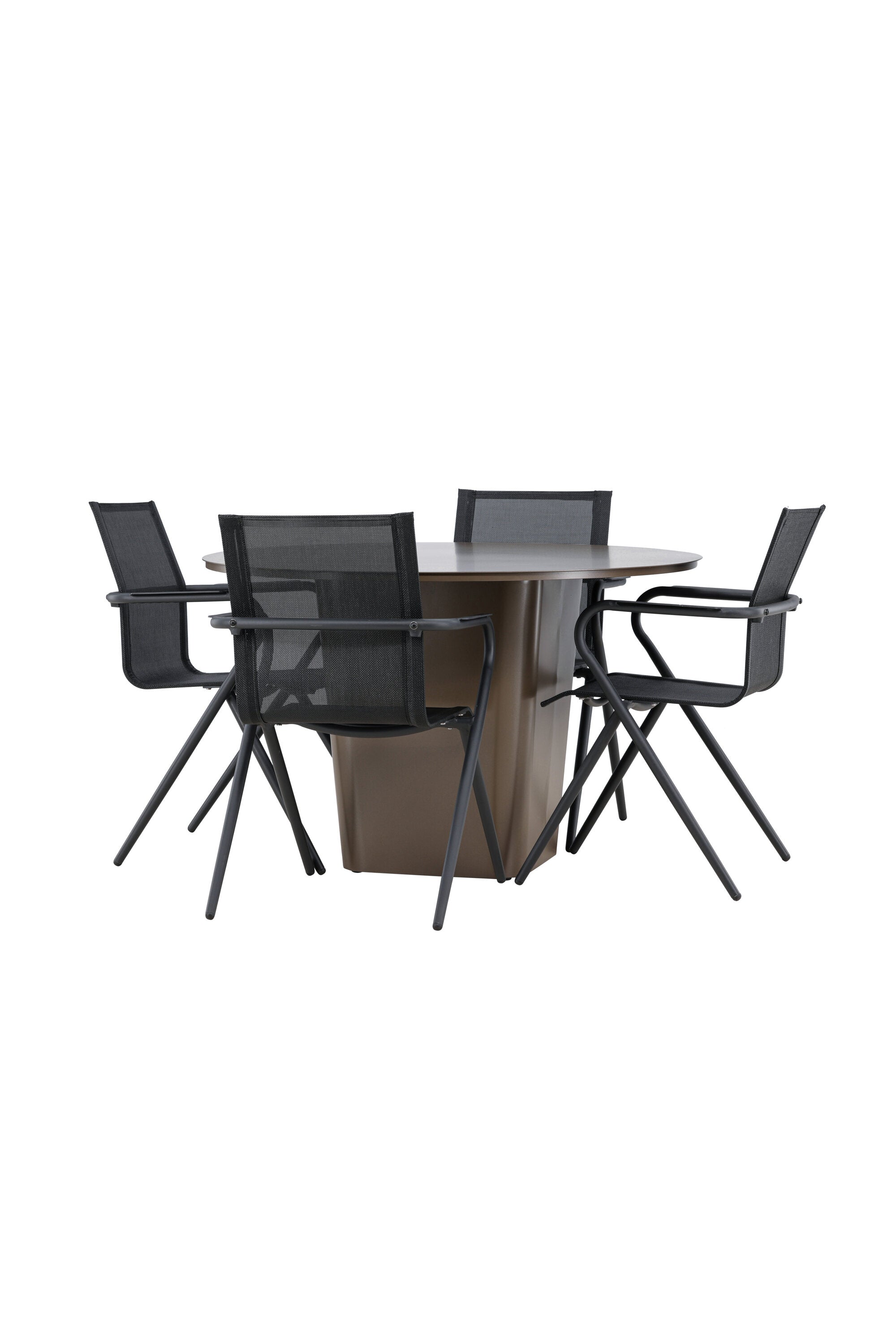 Objevte perfektní jídelní set pro váš venkovní prostor s naším elegantním souborem, který se skládá ze stolu Santa a židlí Alina.