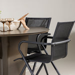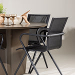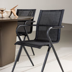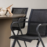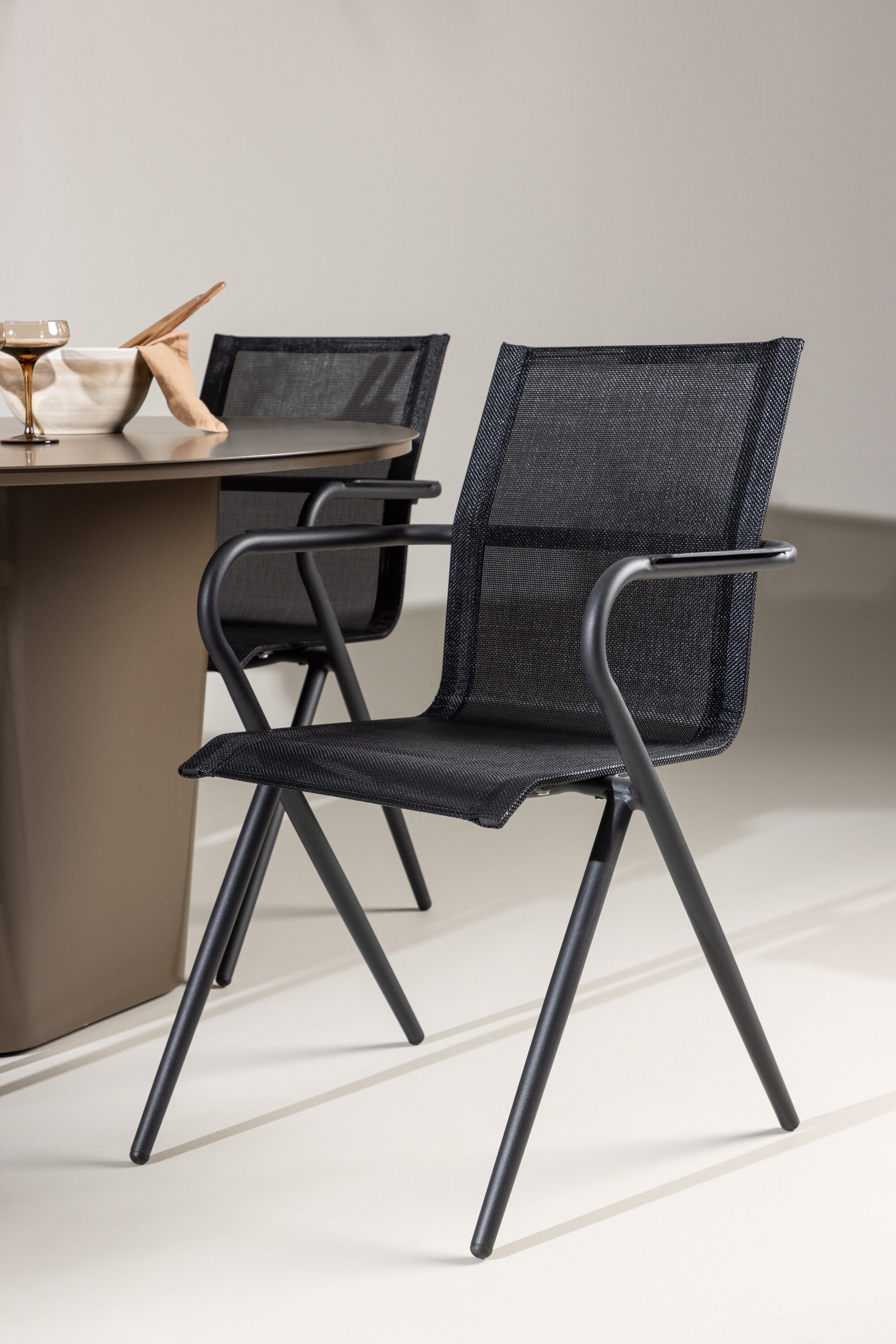 Židle Alina jsou dokonalým doplňkem ke stolu Santa. Tato židle vyrobená z hliníku v elegantní černé barvě nabízí styl a pohodlí pro vaši venkovní relaxaci. Se čtyřmi přiloženými židlemi je tato jídelní souprava ideální pro setkání rodiny a přátel pro nezapomenutelné chvíle pod širým nebem.