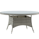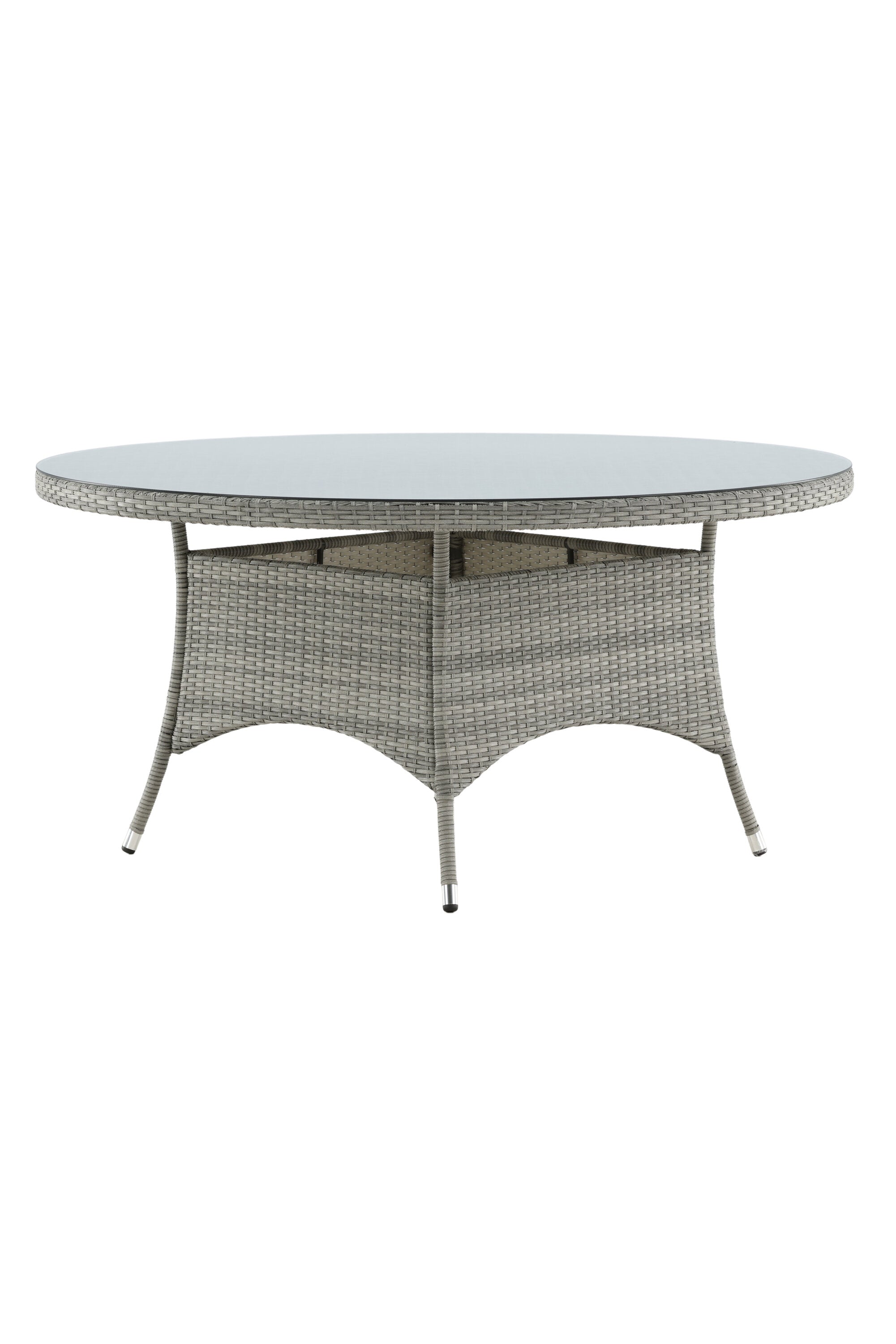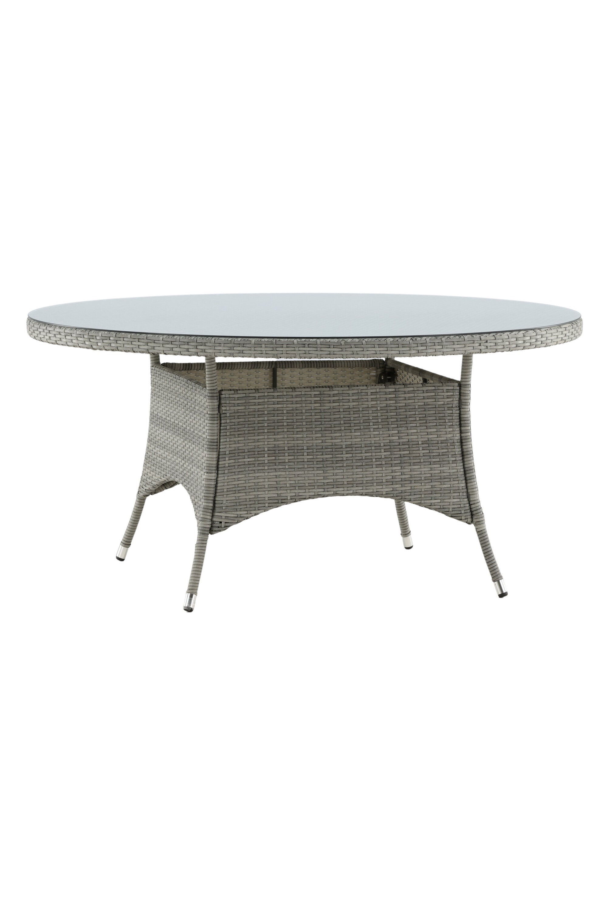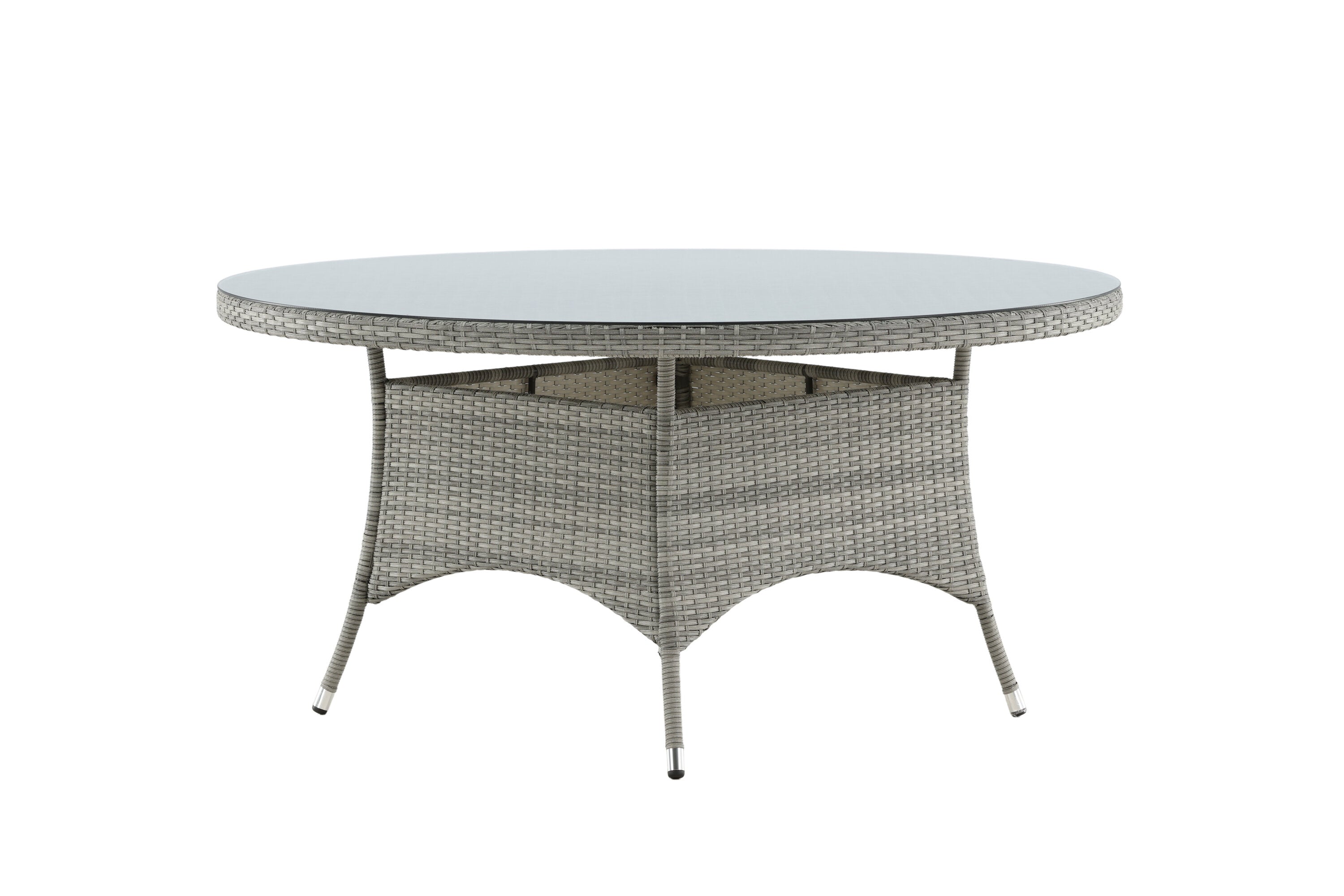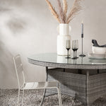 Volta je kulatý jídelní stůl s robustní konstrukcí, který působí odolným a okouzlujícím dojmem! Deska stolu je vyrobena ze stylového skla a podnož z odolného šedého ratanu. Postavte ho v zimní zahradě nebo na terase