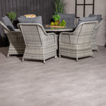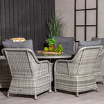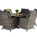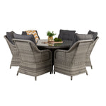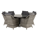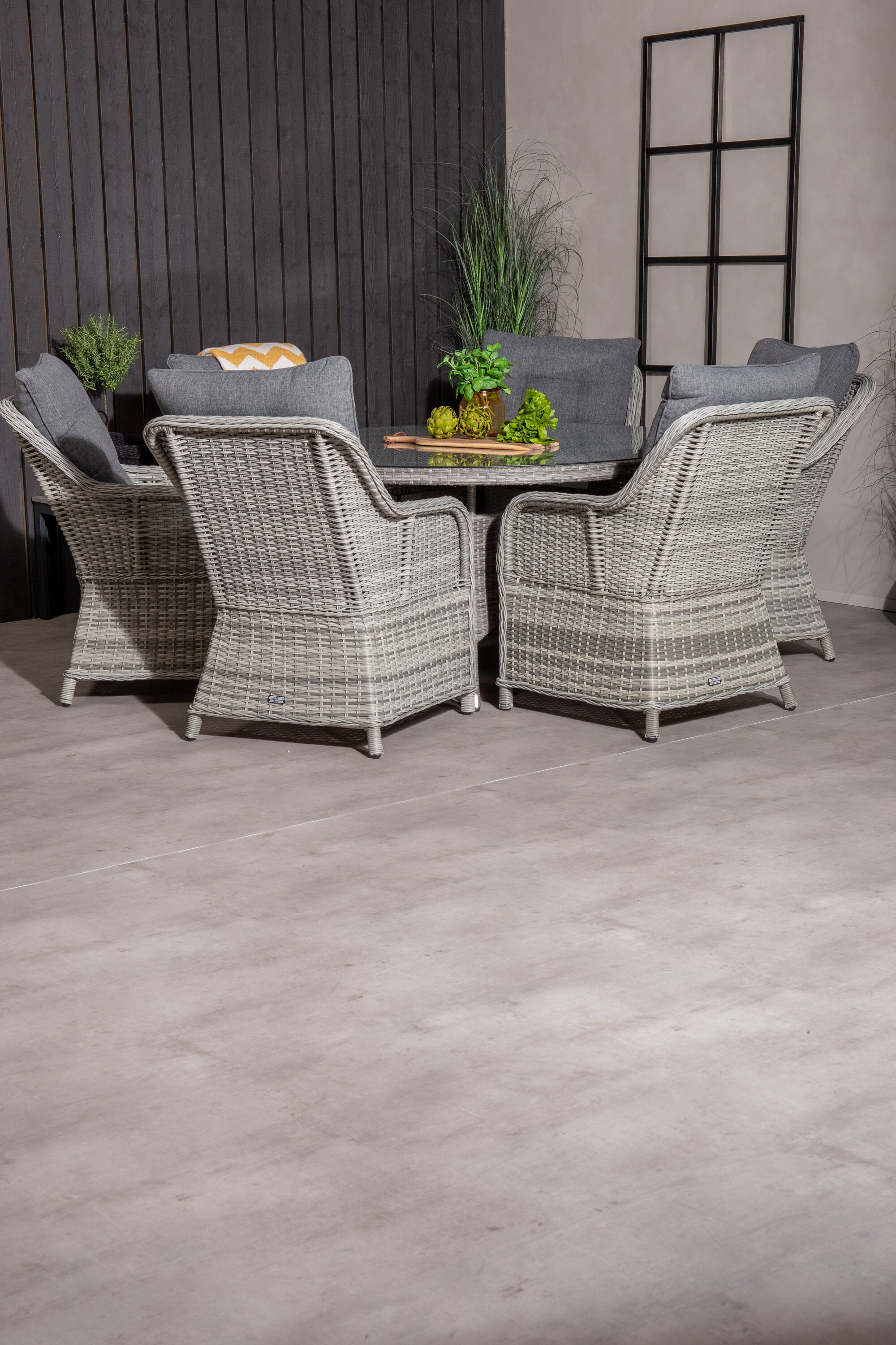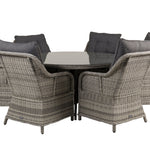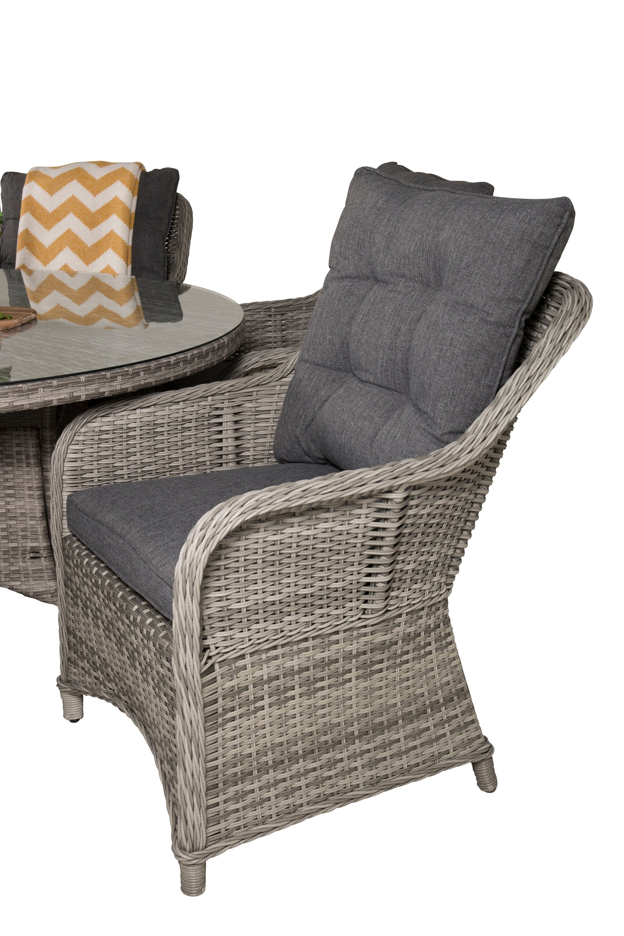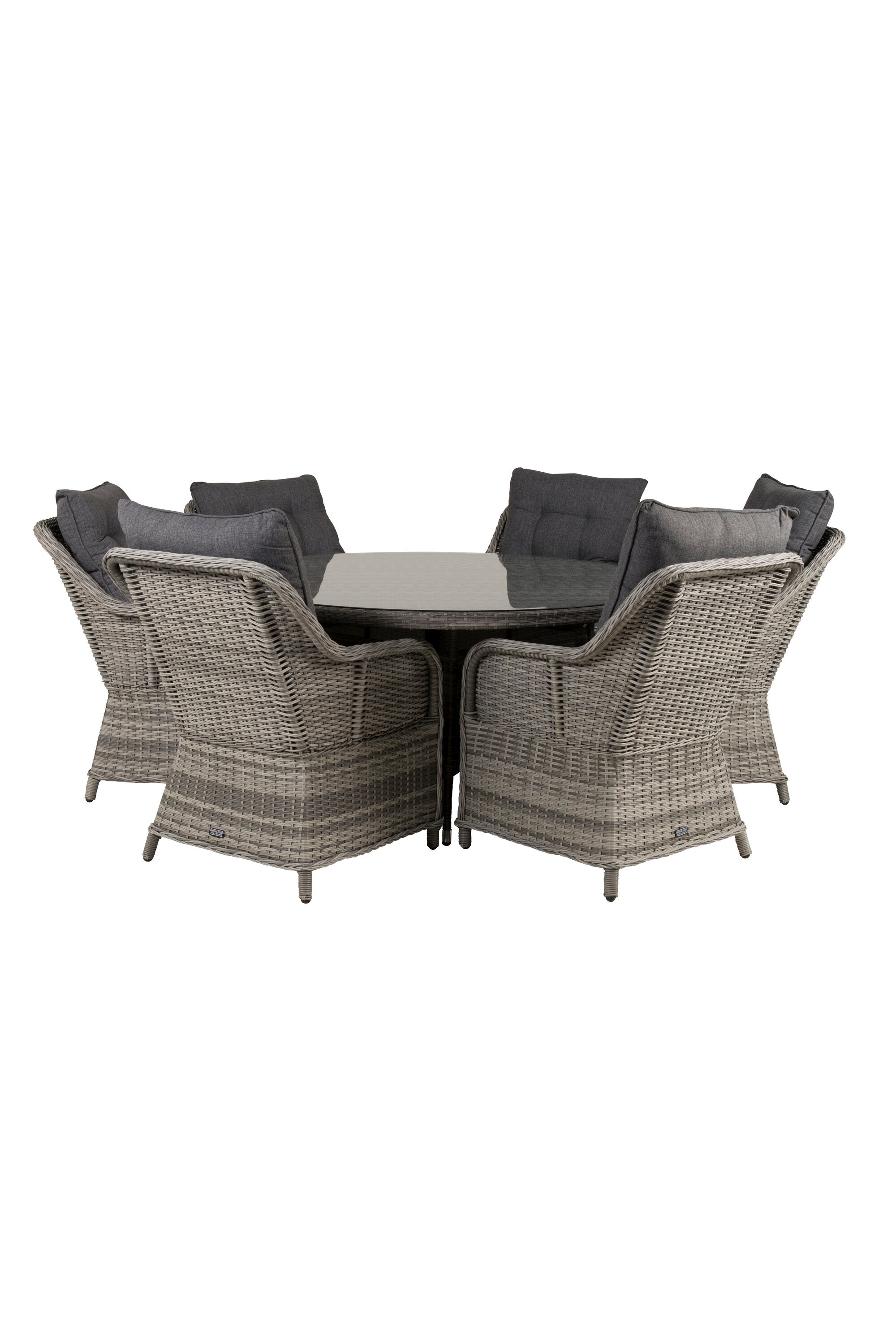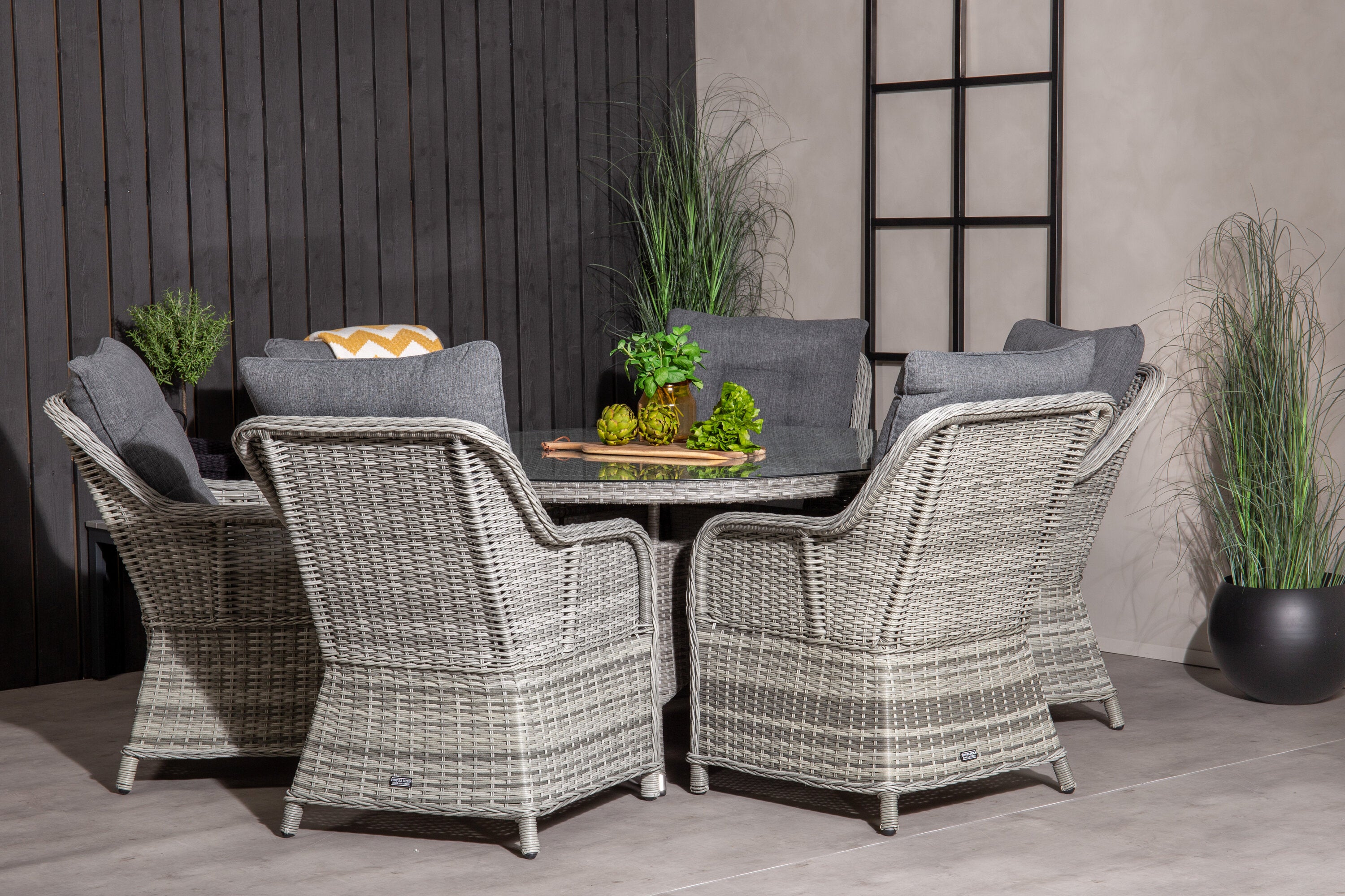 Kulaté skupiny potravin poskytují skvělý rodinný pocit a pospolitost! Jídelní stůl Volta spolu s našimi robustními umělými křesly Vikelund vám dává pompézní skupinu jídel, která stojí v čase!