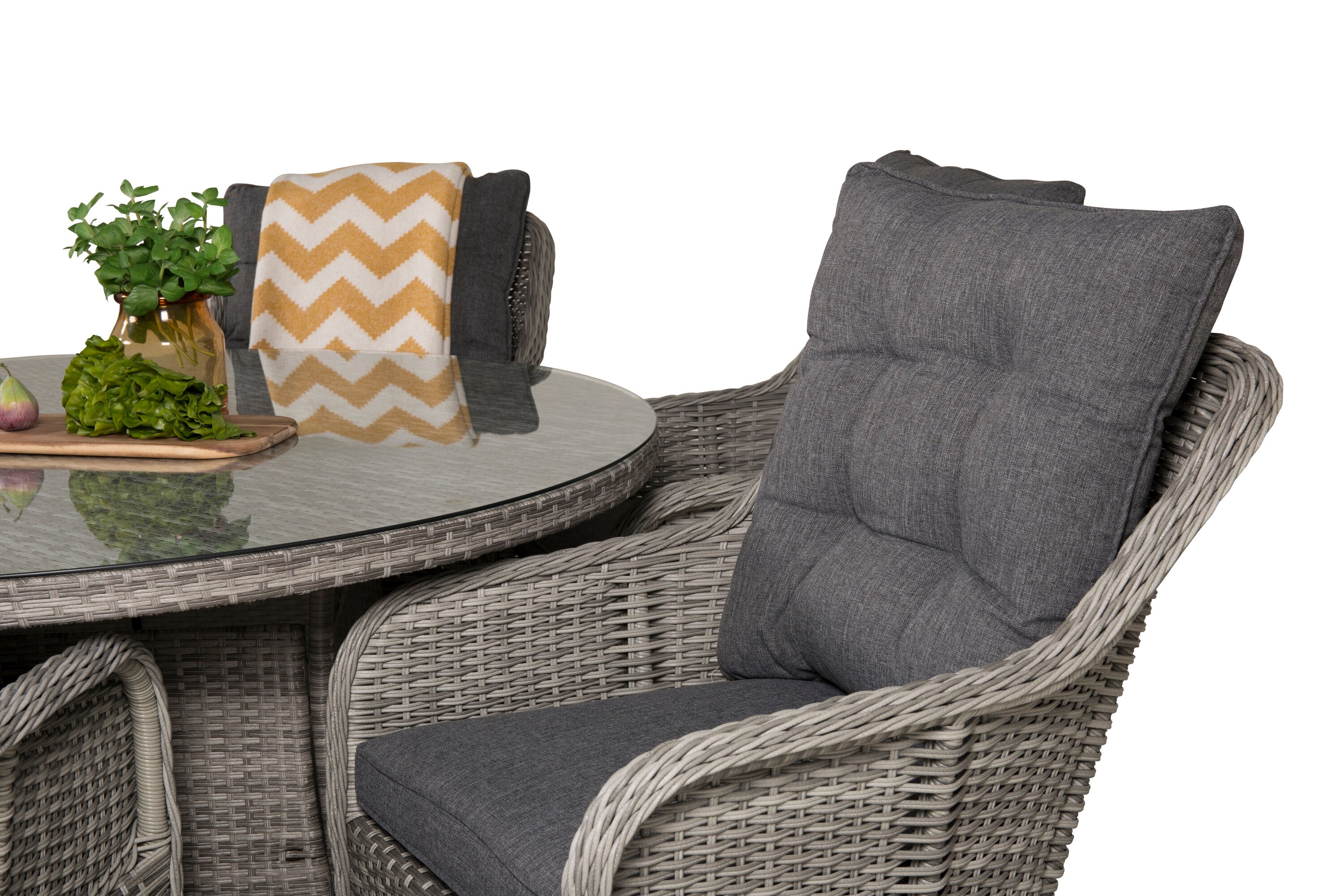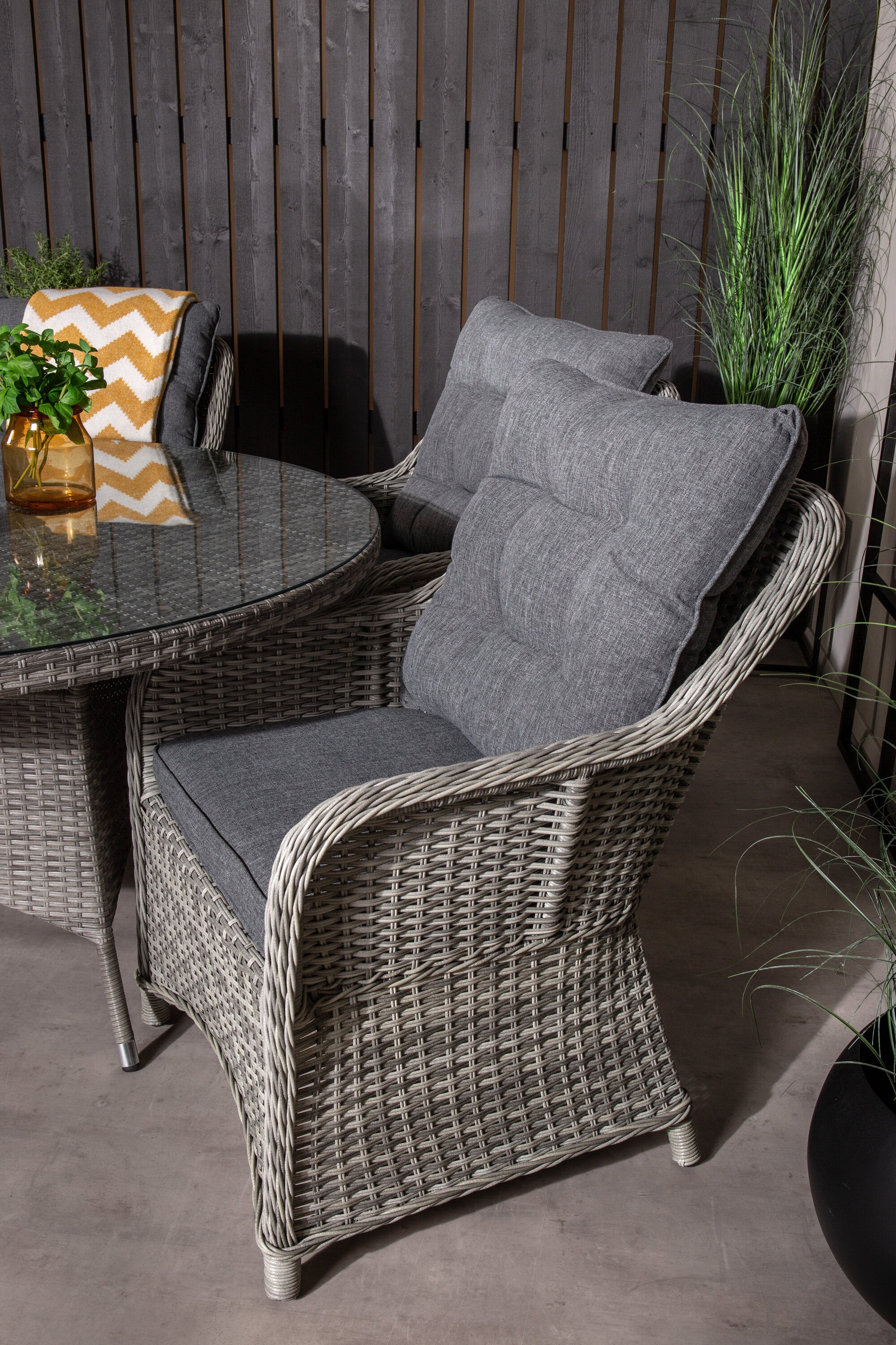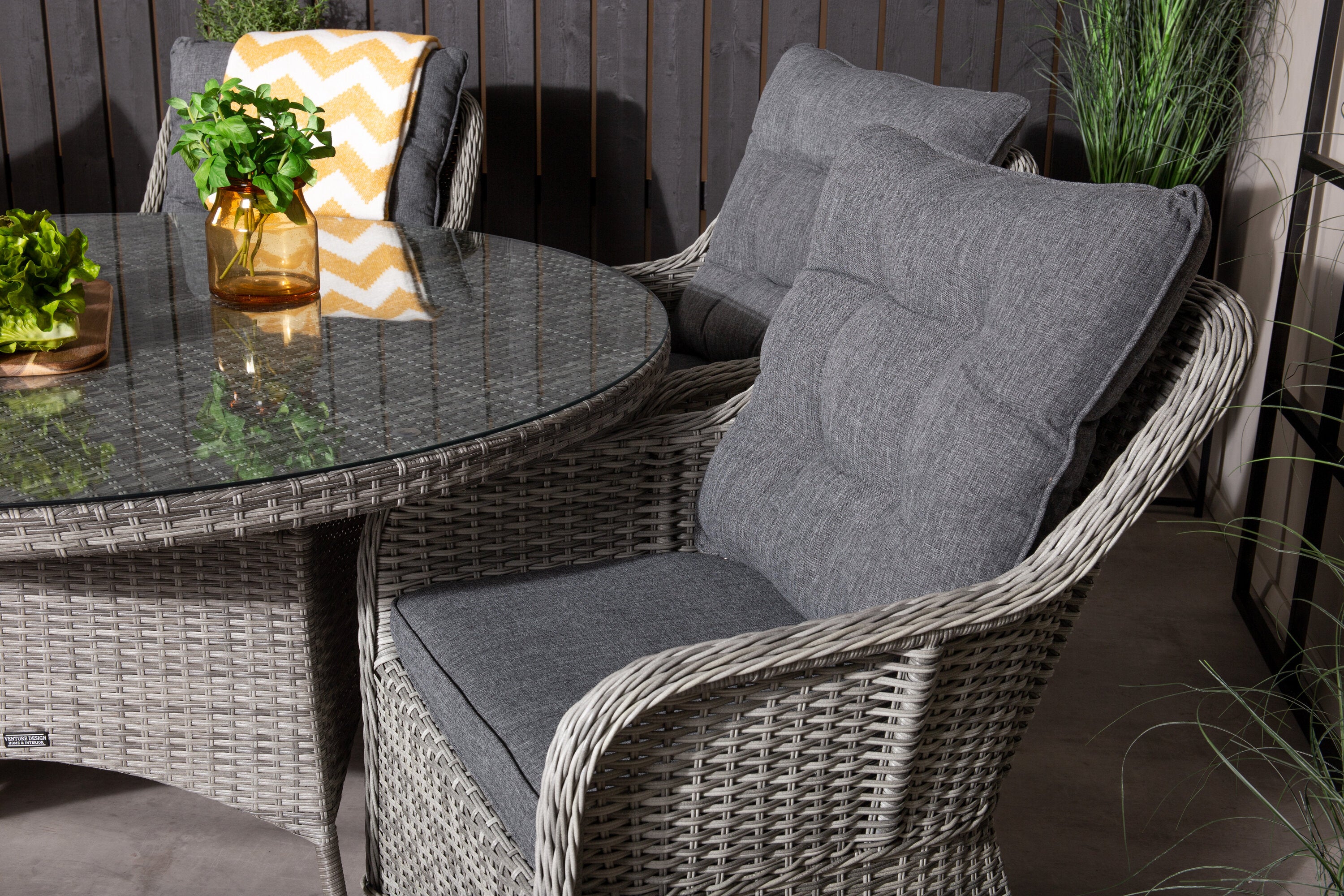 Jídelní stůl Volta - Šedý - ø150+Křeslo Vikelund - Šedý / Šedý polštář_6