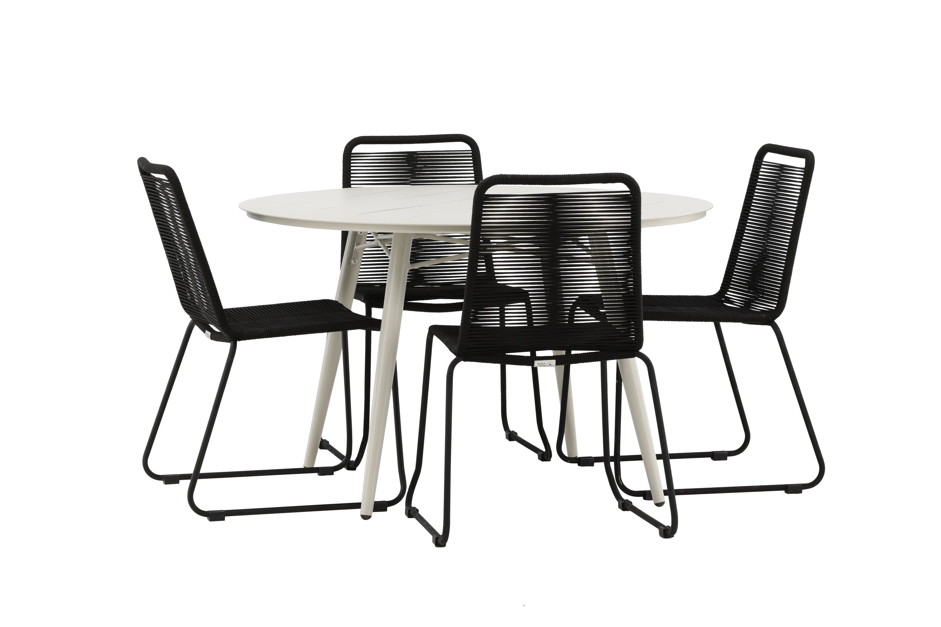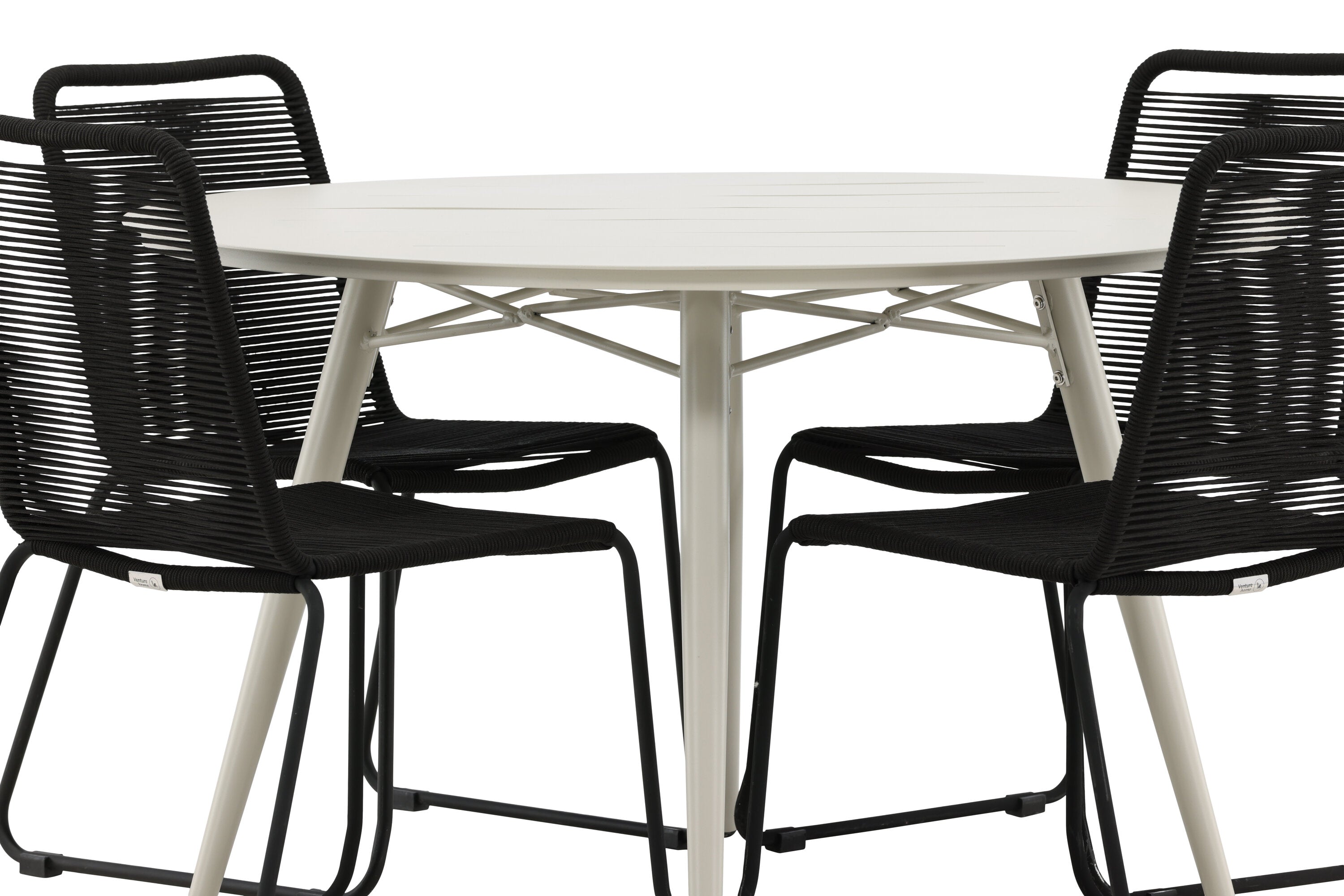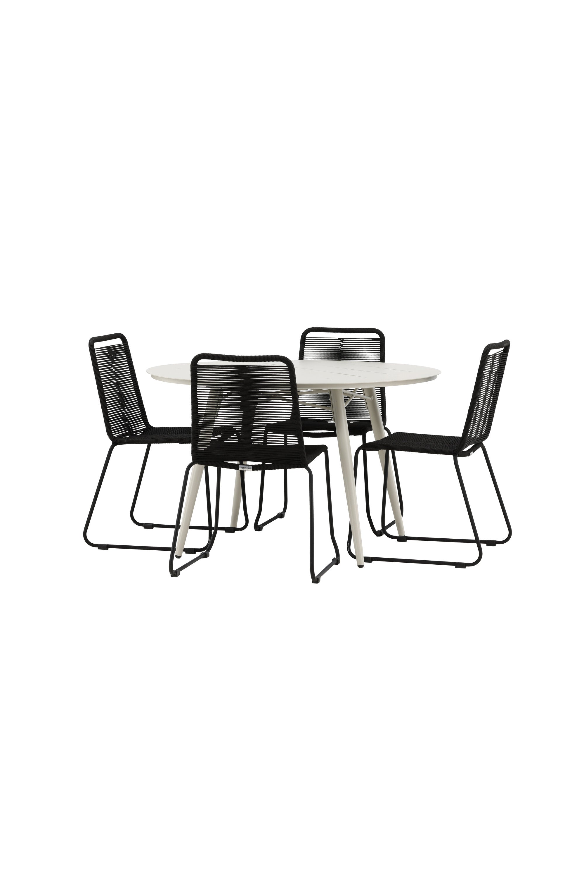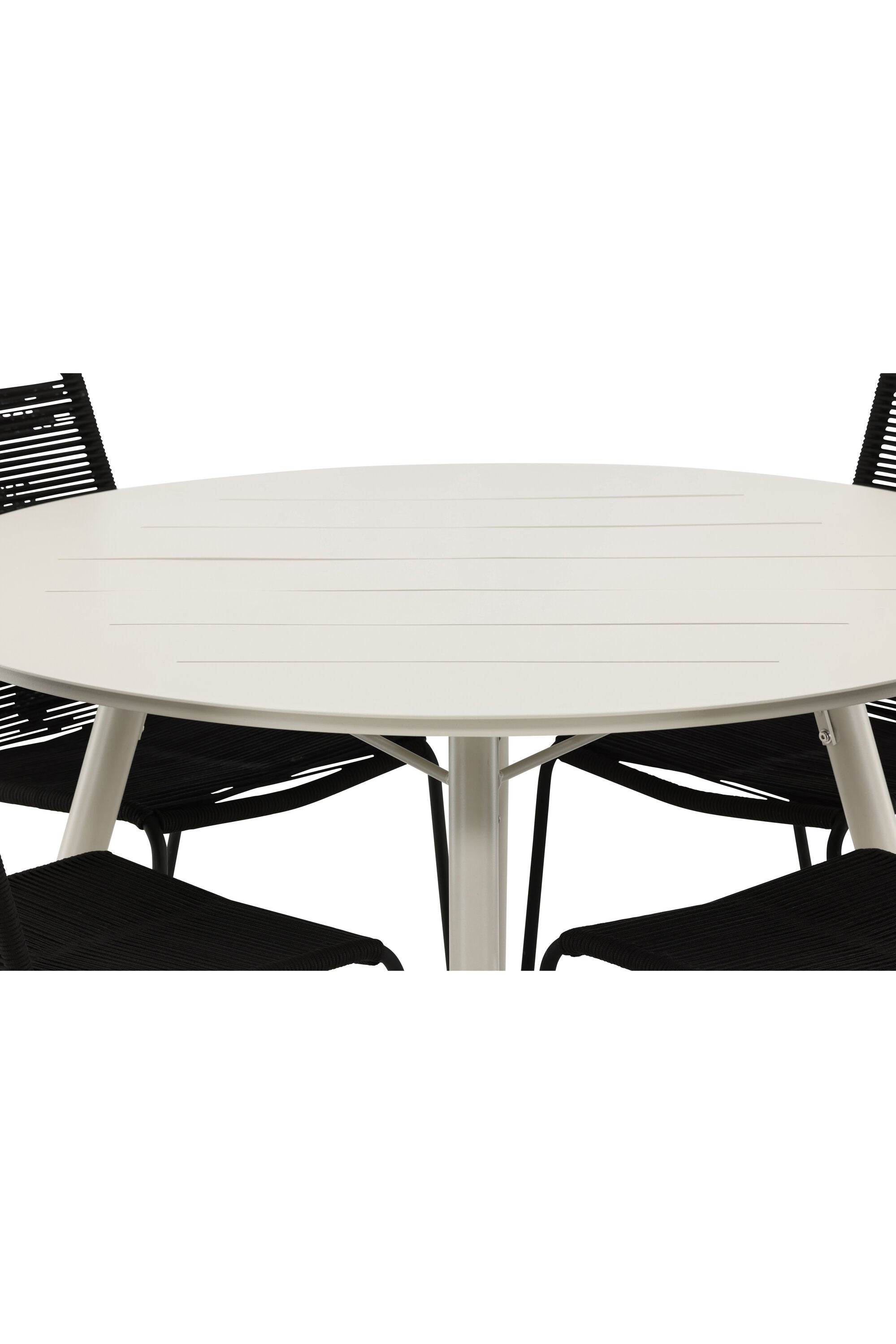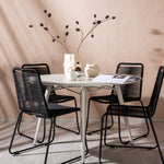 Lina Jídelní stůl - Béžový - Kulatý 120 cm _1+ Lindos Stohovací židle - Black Alu / Black Rope _4