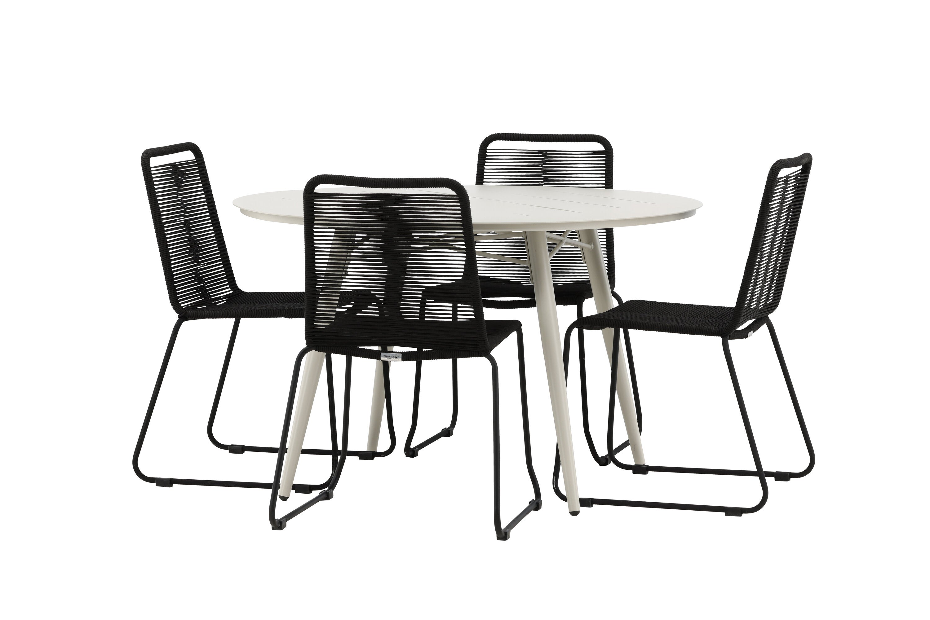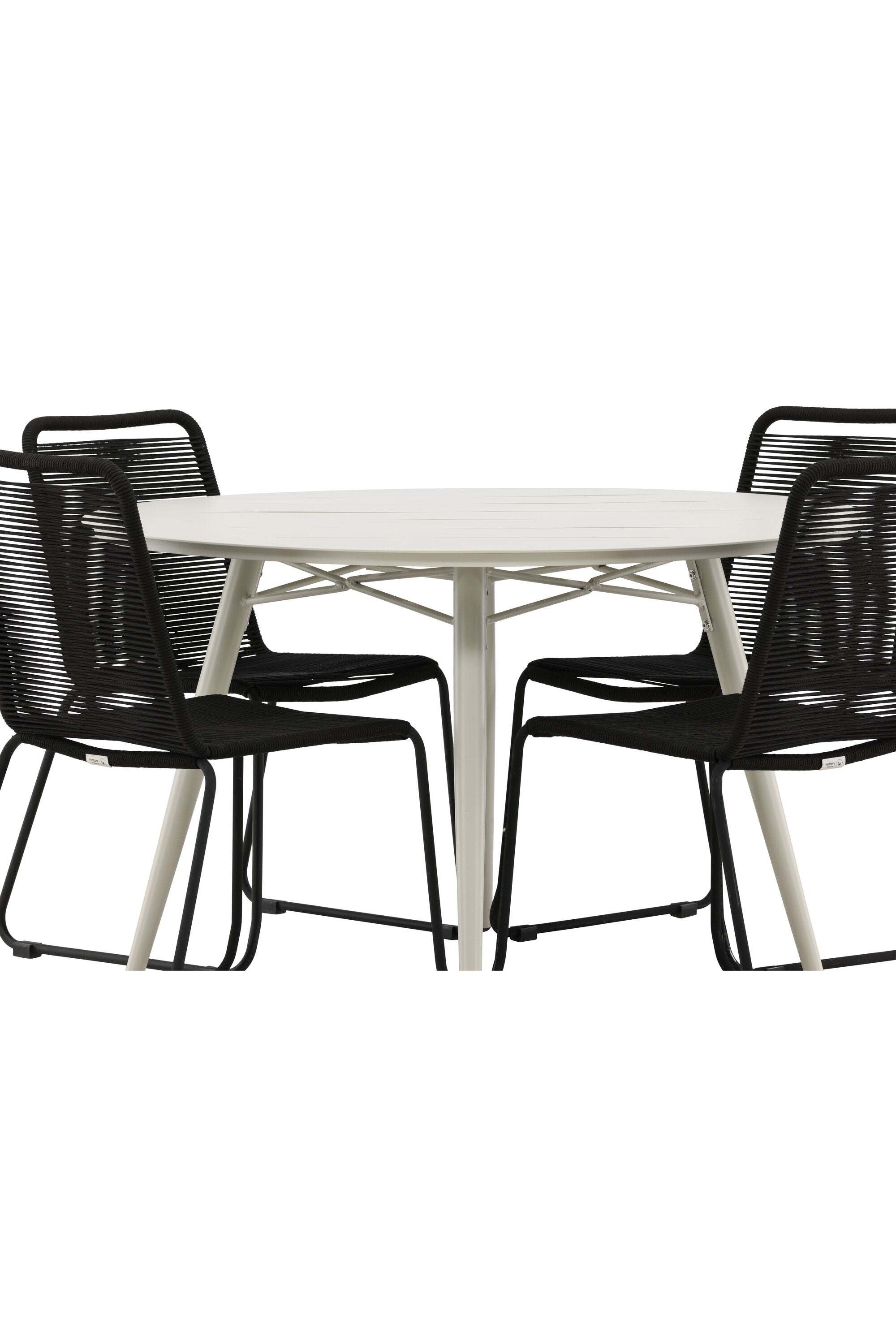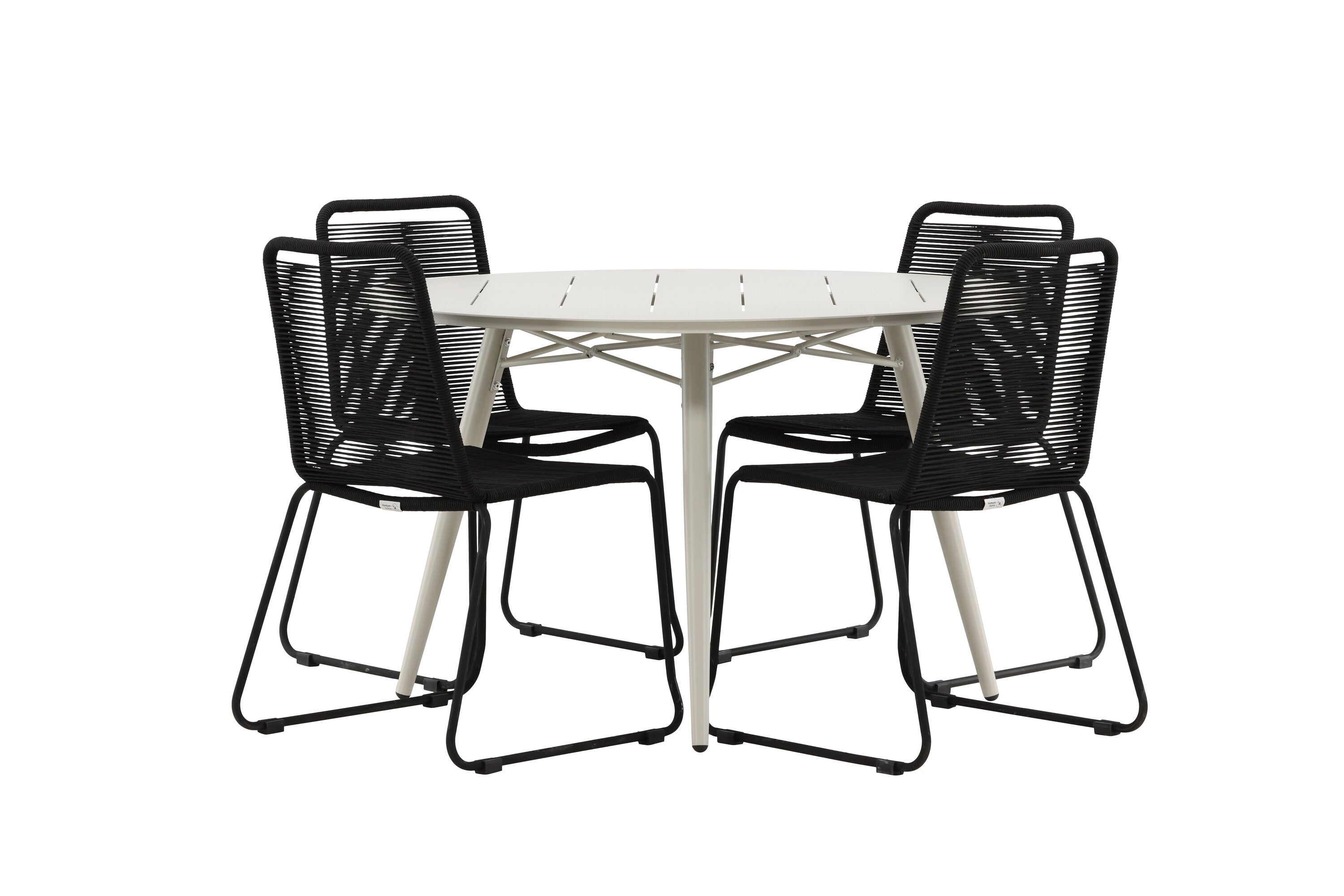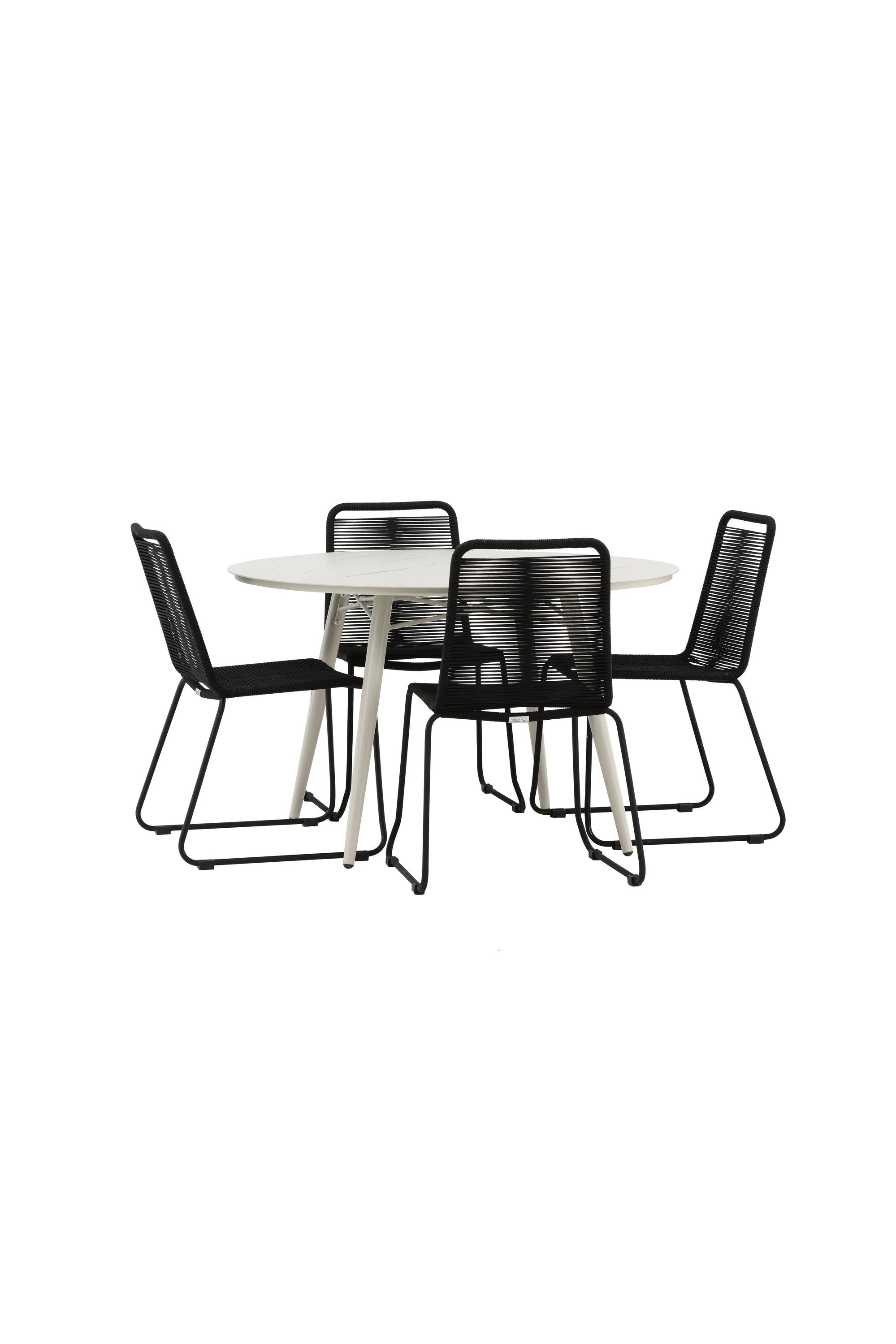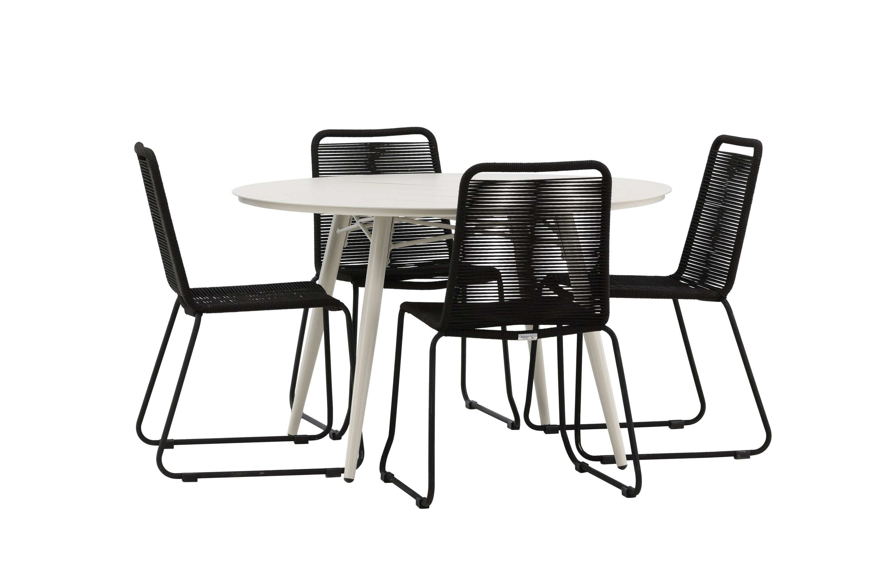 Lina Jídelní stůl - Béžový - Kulatý 120 cm _1+ Lindos Stohovací židle - Black Alu / Black Rope _4