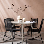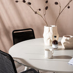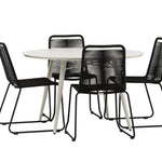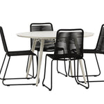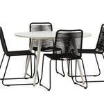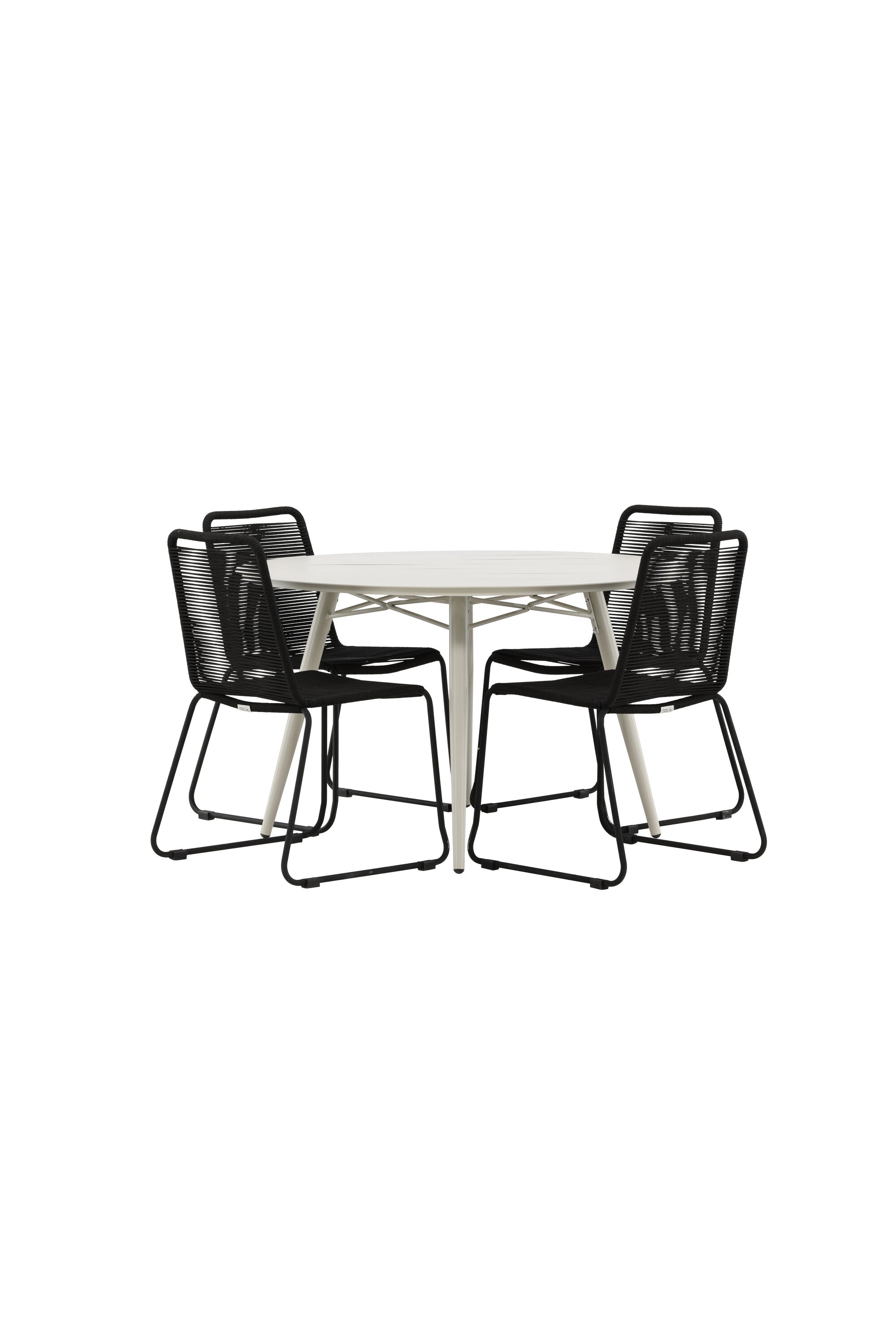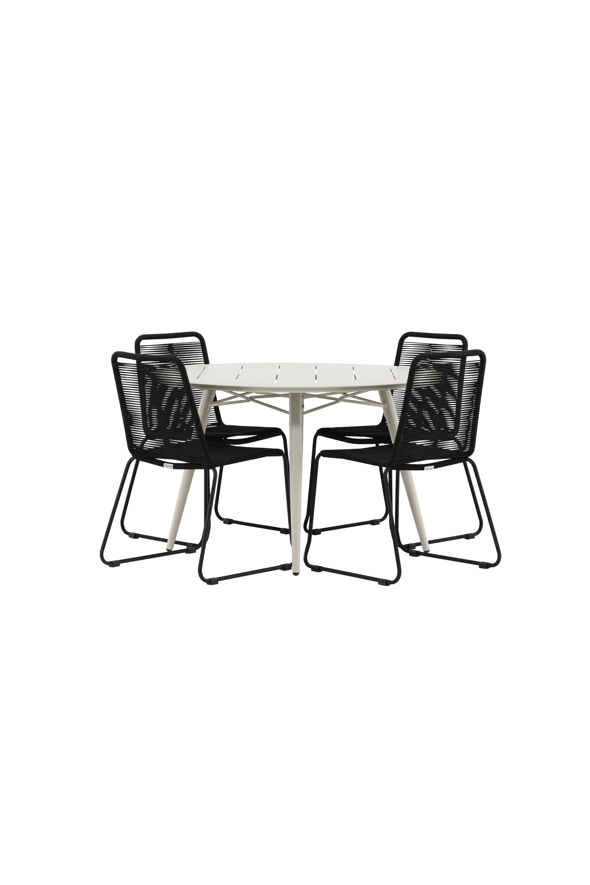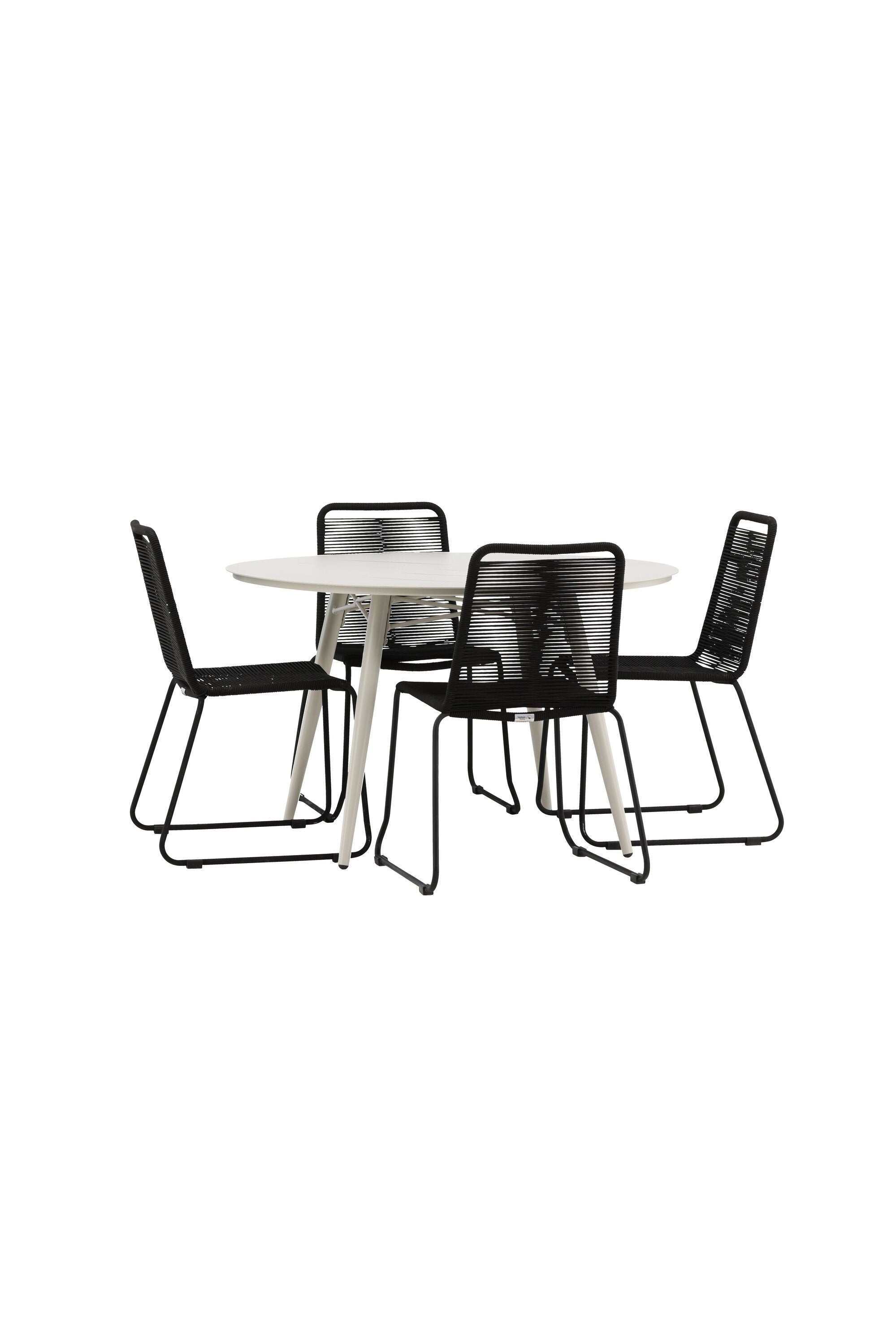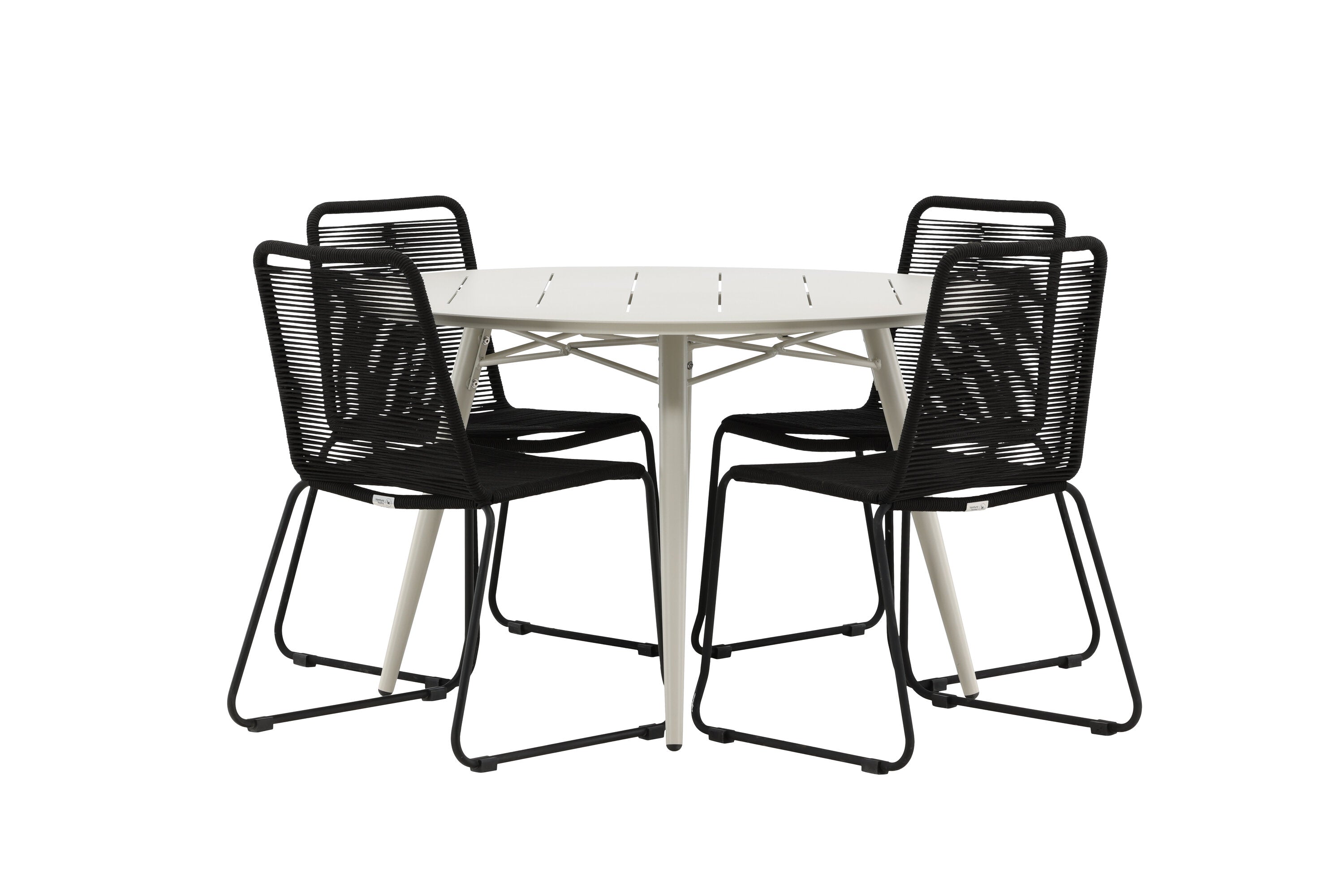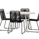 Lina Jídelní stůl - Béžový - Kulatý 120 cm _1+ Lindos Stohovací židle - Black Alu / Black Rope _4