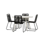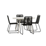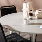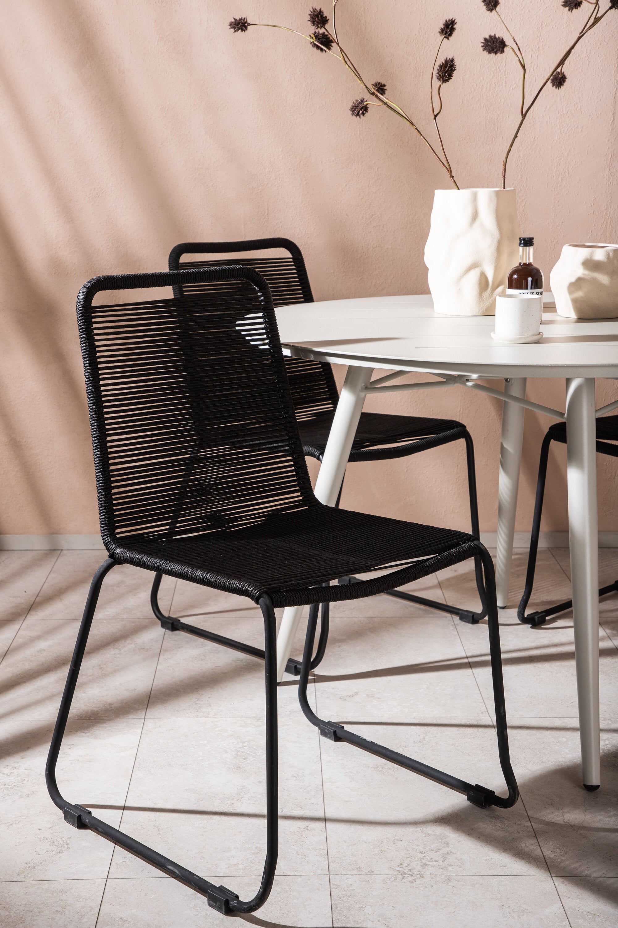 Je to zápas - moderní barevná shoda, která ve venkovním prostoru vytváří módní dojem. Stůl Lina má minimalistický design v bílé/béžové oceli, s obdélníkovou deskou stolu a měkkými zaoblenými hranami. Nohy stolu se snadno rozšiřují a působí stabilním dojmem. Rozměry: 200x90 cm. Zde společně s trendy jídelními židlemi ze série Lindos. Židle mají úzké nohy z černého hliníku a sedák z odolného černého lana. Zařiďte nádvoří příjemně a vytvořte poutač, který zaujme!