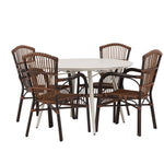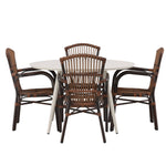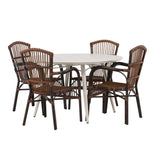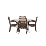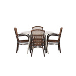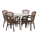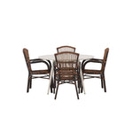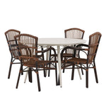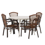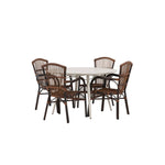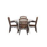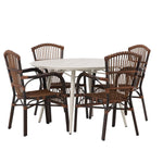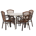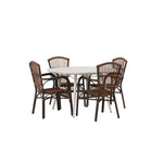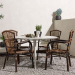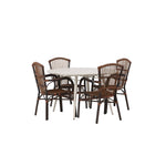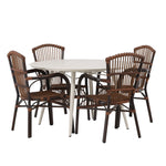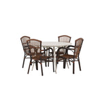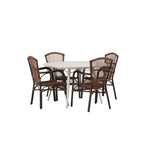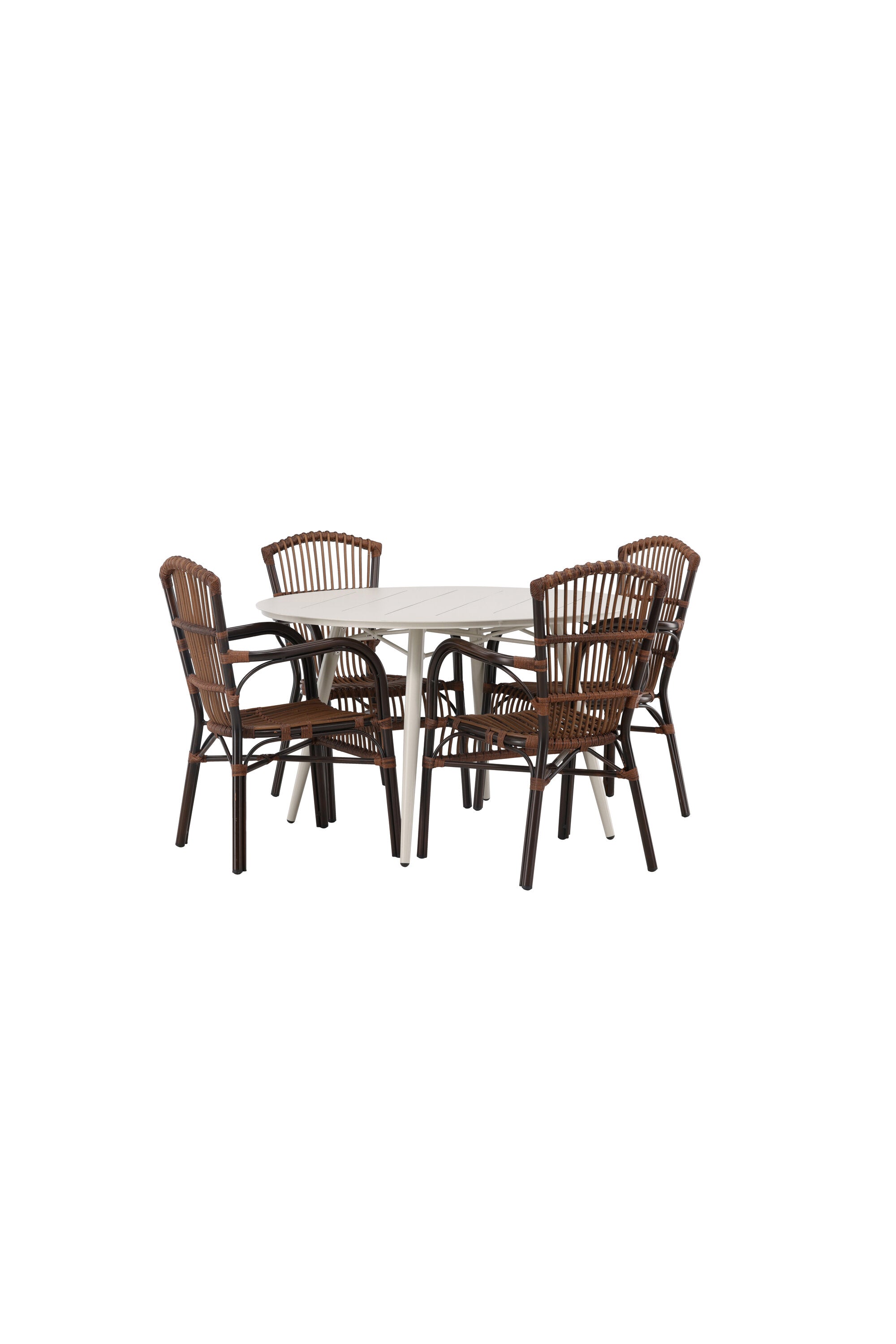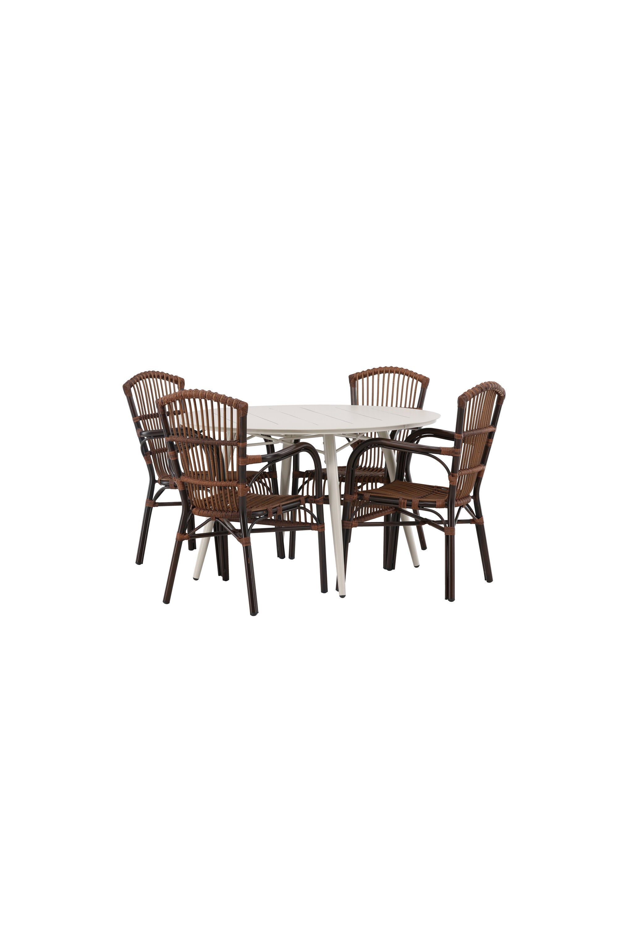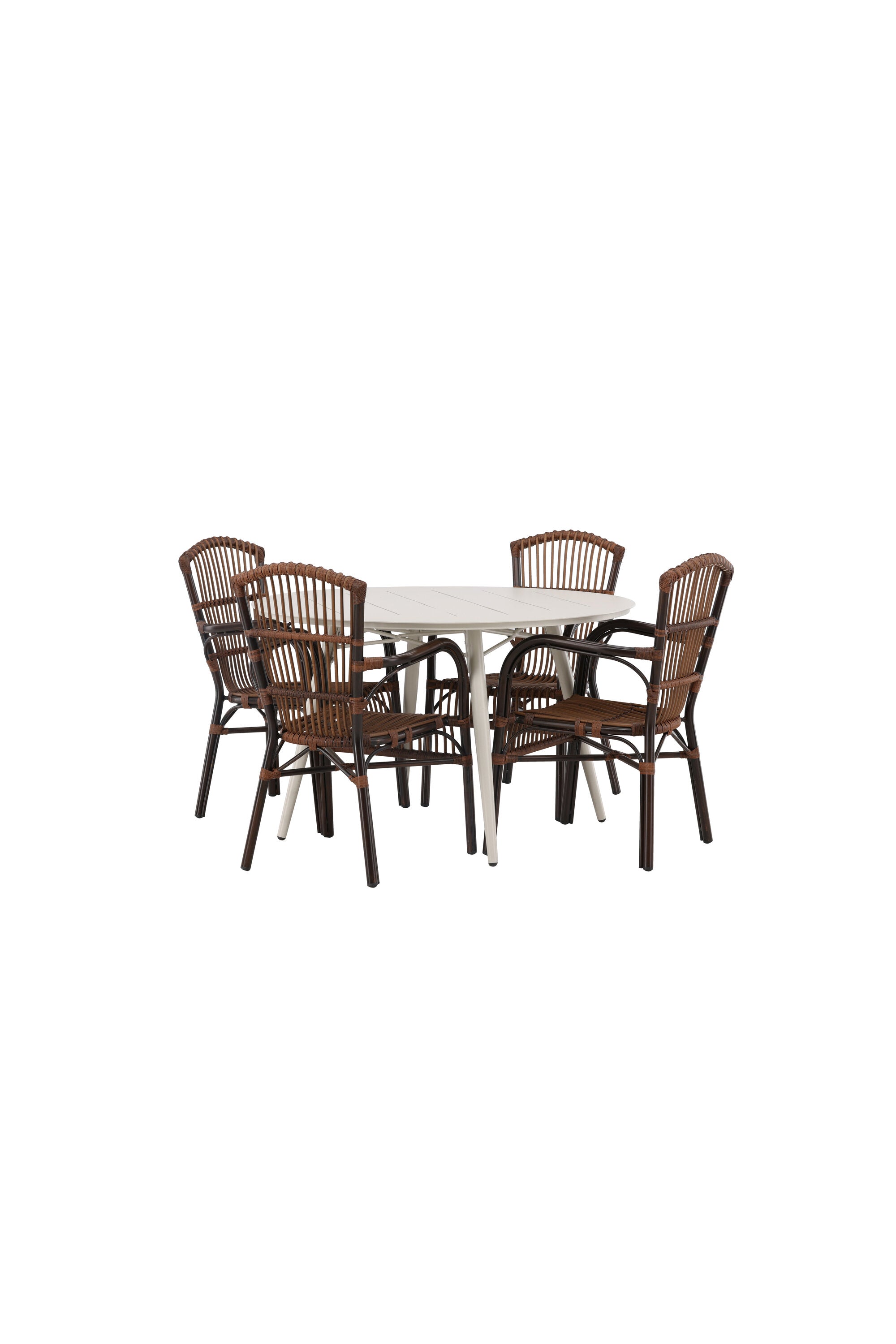 Vytvořte na terase poutač, který zapůsobí na vaše hosty pomocí této předem sestavené jídelní sestavy! Jednoduchý, ale elegantní, kulatý jídelní stůl ze série Lina má svěží design a hřejivou béžovou barvu. Horní deska je tenká s ozdobnými štěrbinami a nohy stolu mírně rozšířené; důsledně vyrobeno z oceli. Zde společně se 4 moderními židlemi ze série Galera. Židle má moderní barvu v ořechu a vkusné provedení v materiálu pletené proutí. Hliníková rámová konstrukce je robustní s vysokými područkami pro extra pohodlí. Prostřete toto léto stůl venku a nechte čas zde, aby byl vrcholem vašeho dne! Průměr stolu: 120 cm.