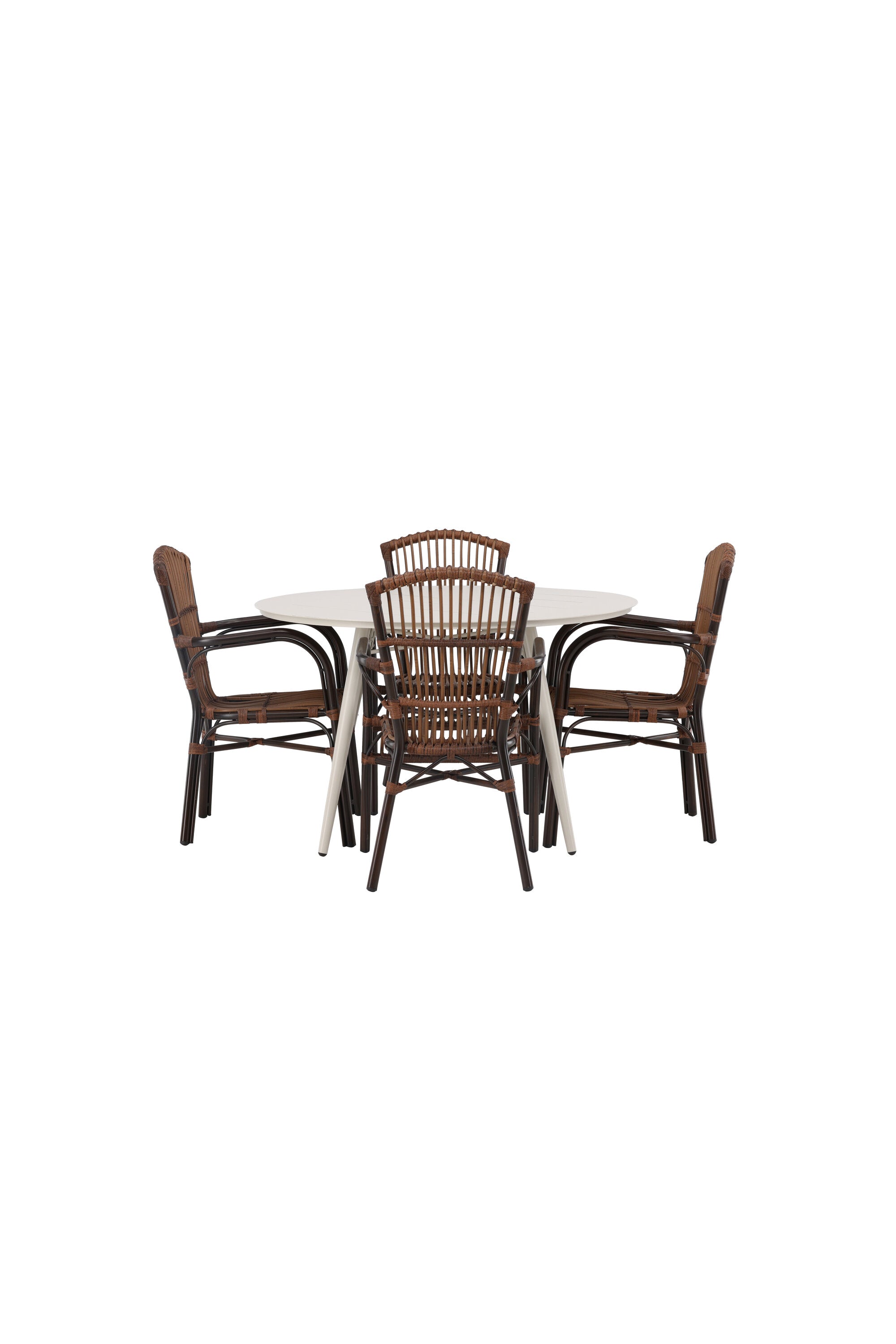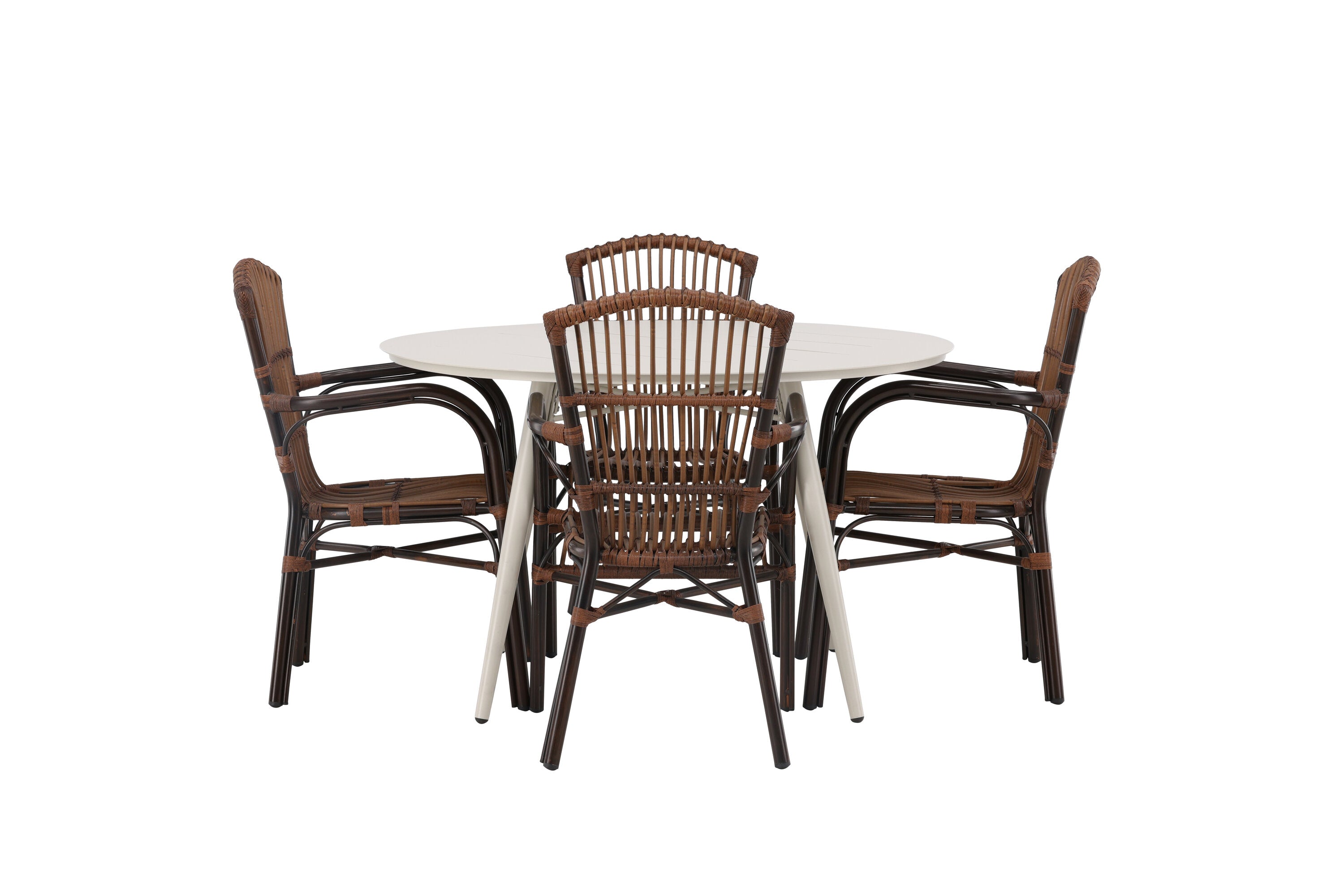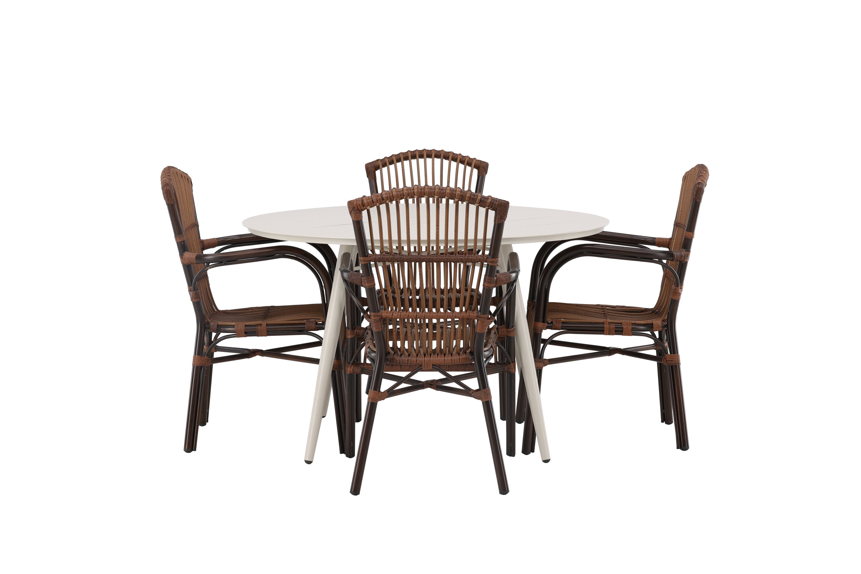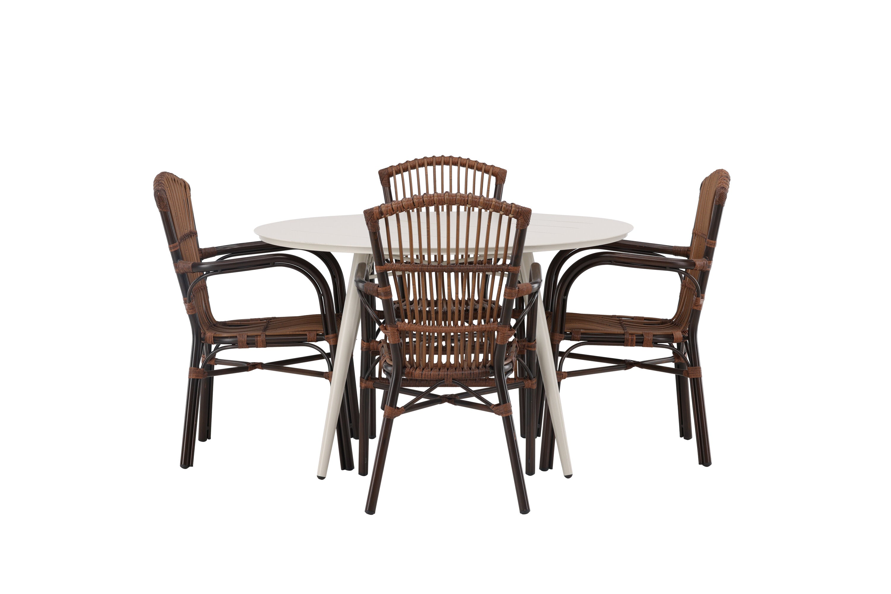 Lina Jídelní stůl - Béžový - Kulatý 120 cm +Galera Jídelní židle Hliník - Hnědá / Proutí _4