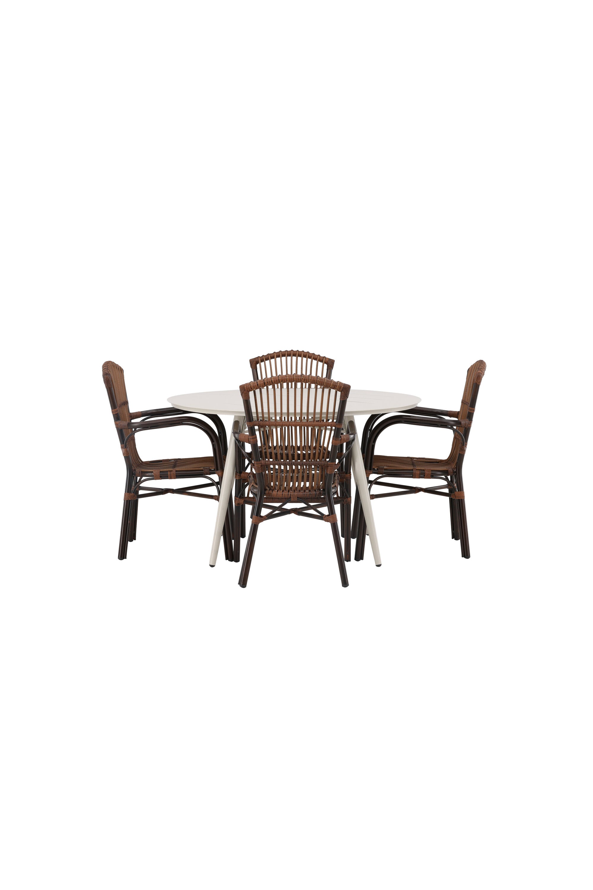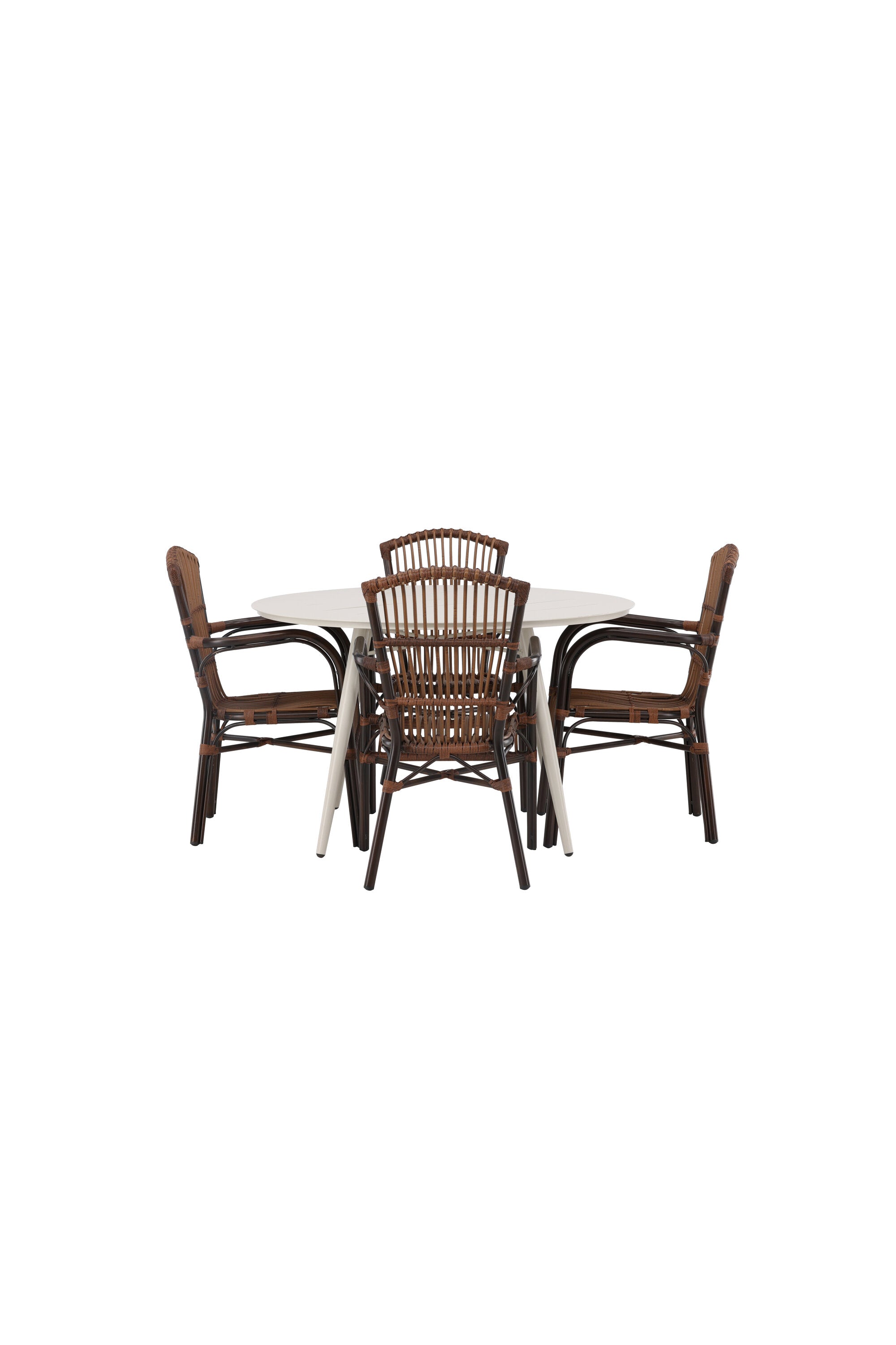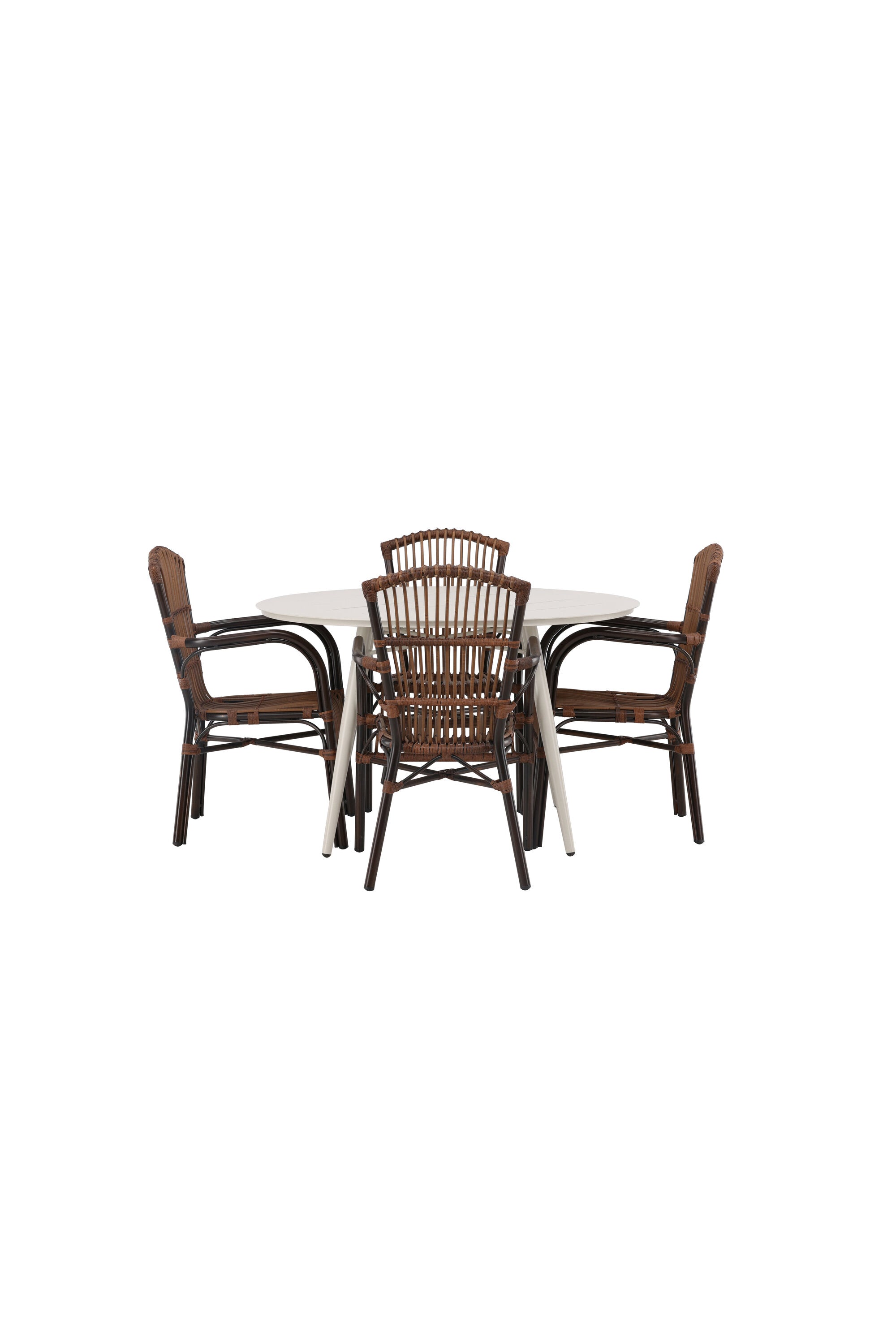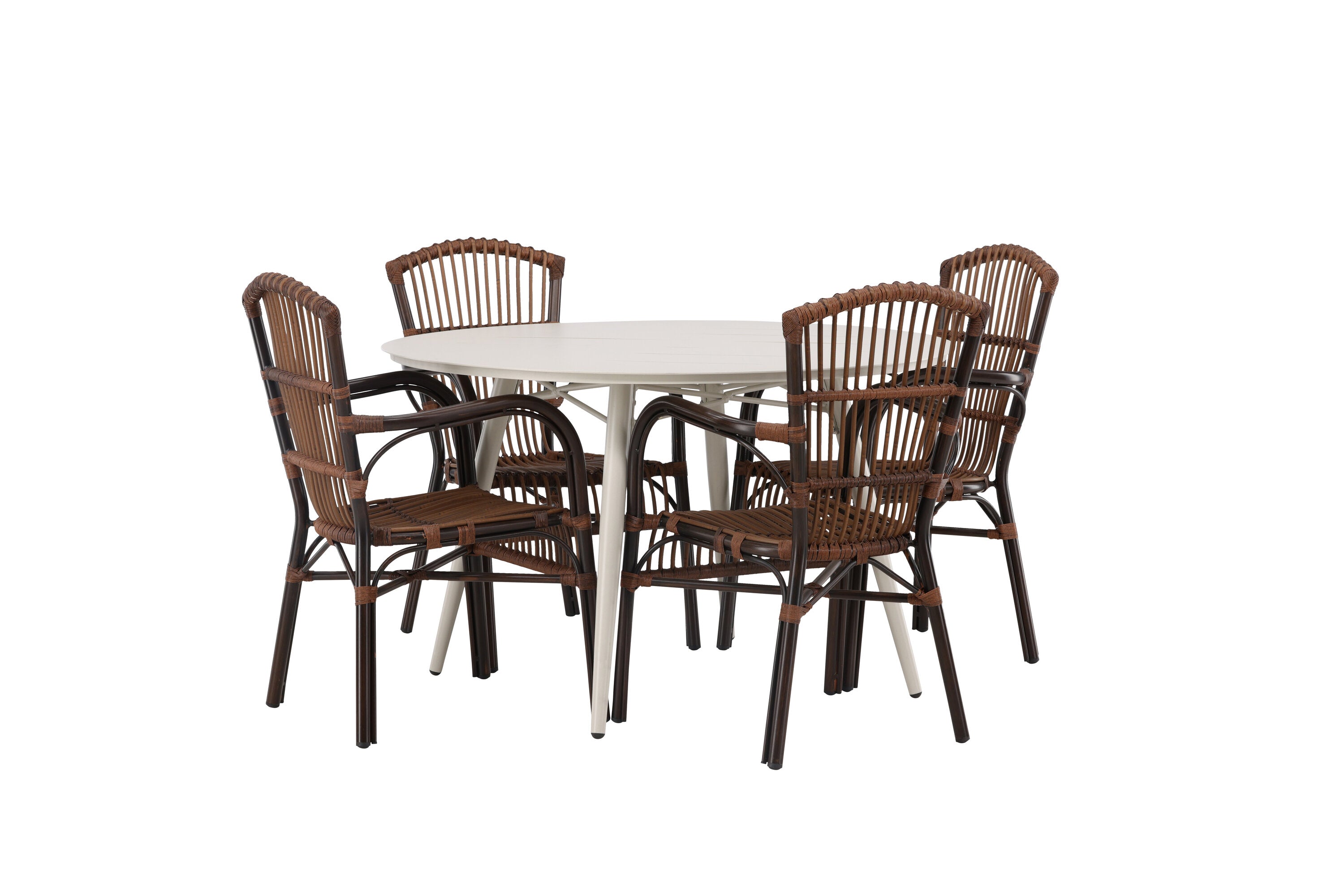 Lina Jídelní stůl - Béžový - Kulatý 120 cm +Galera Jídelní židle Hliník - Hnědá / Proutí _4