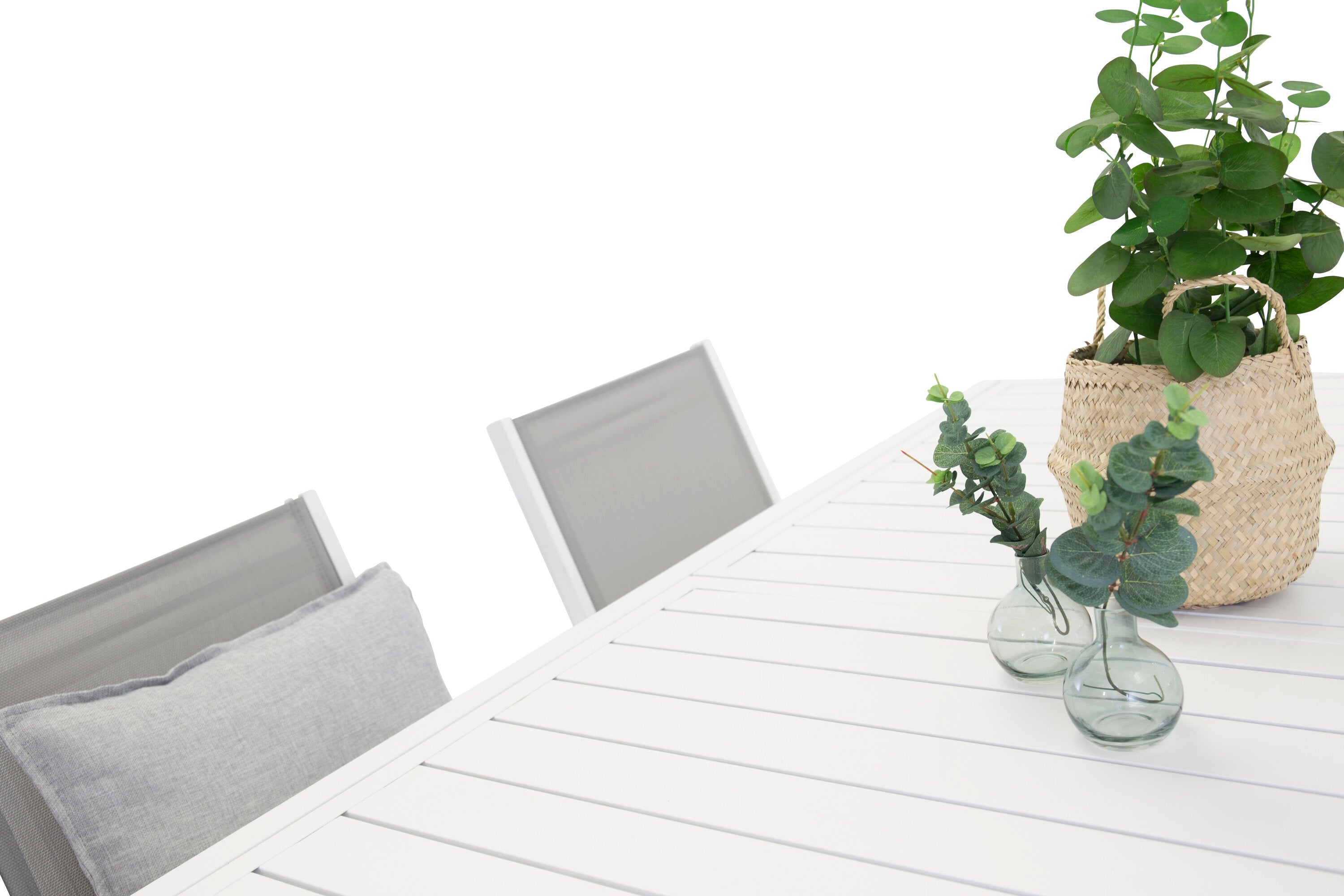 Marbella matbord 160/240*100*H75 - Vit+ Copacabana - Stohovací židle - Bílá Alu/