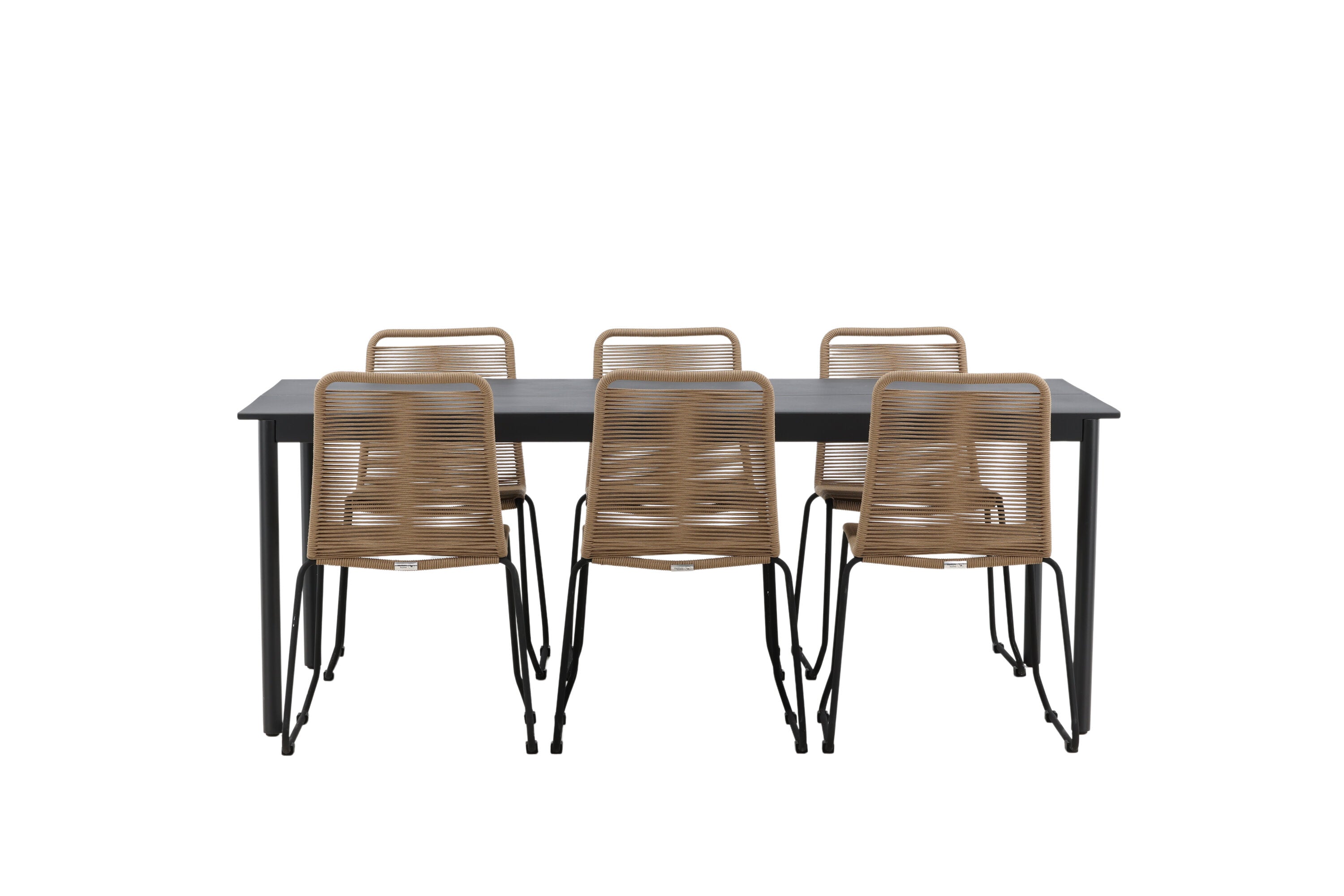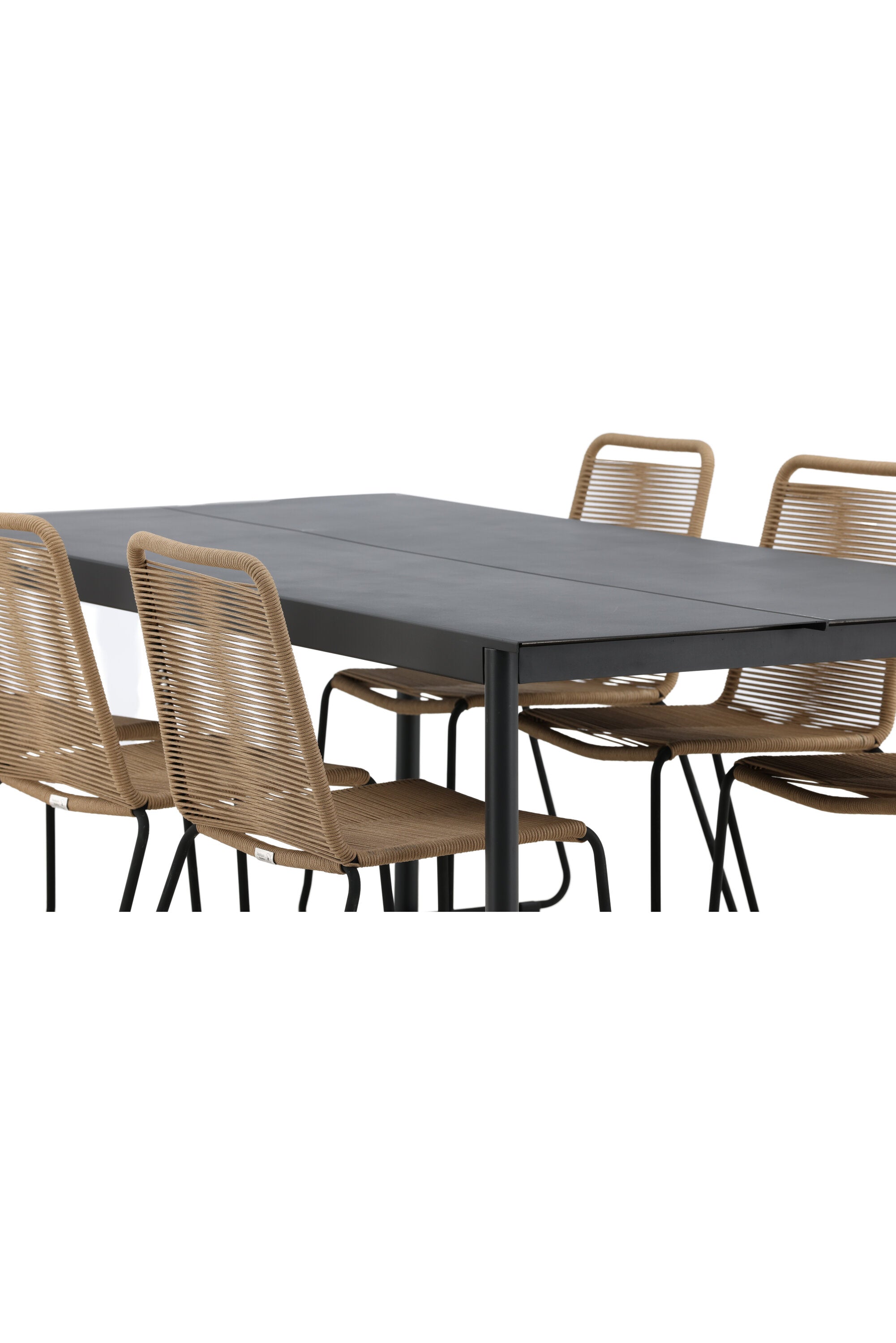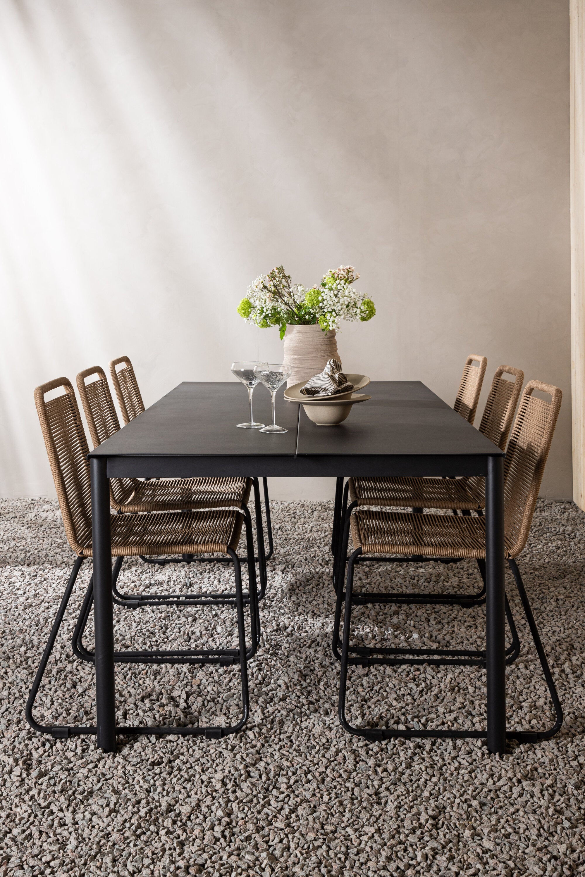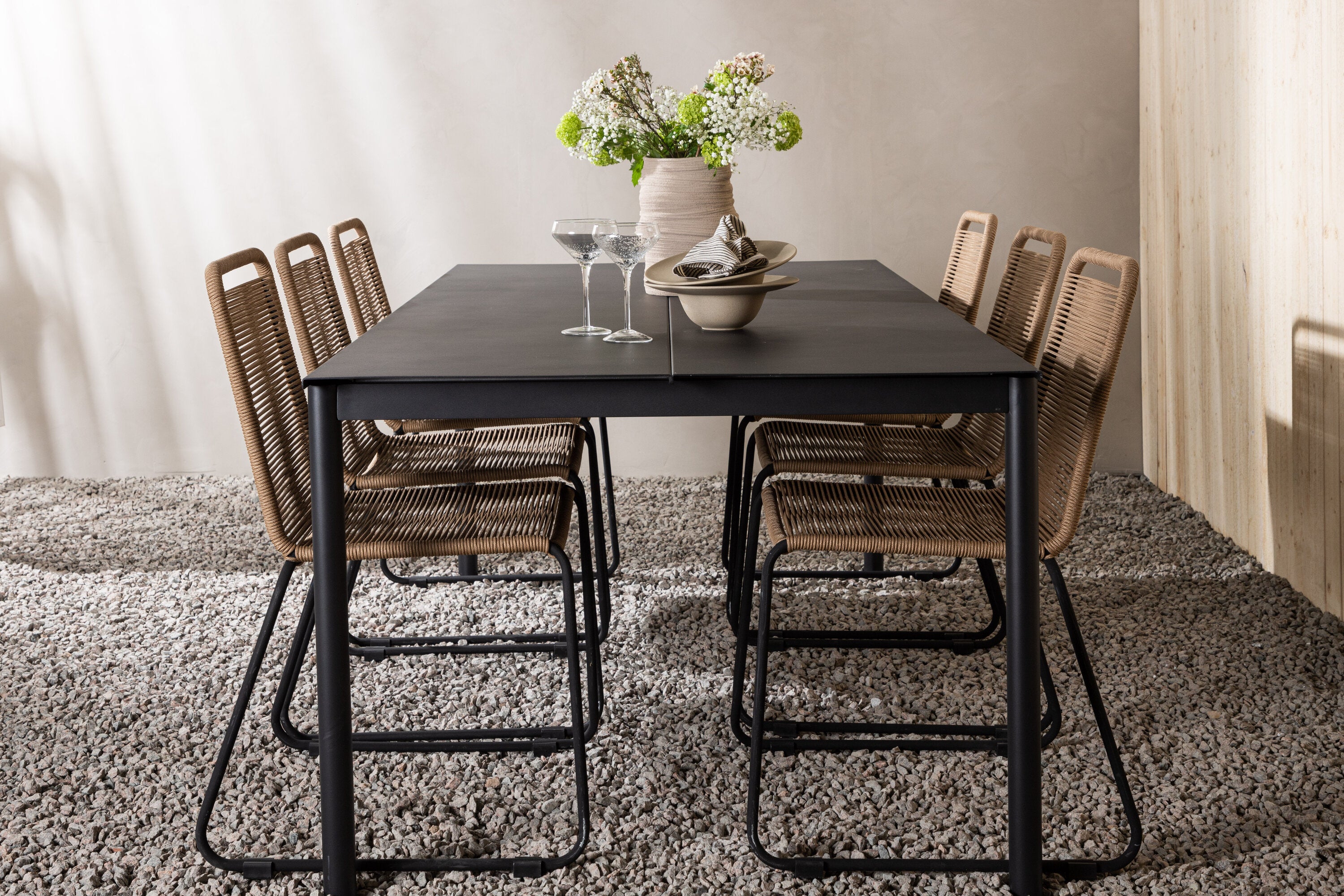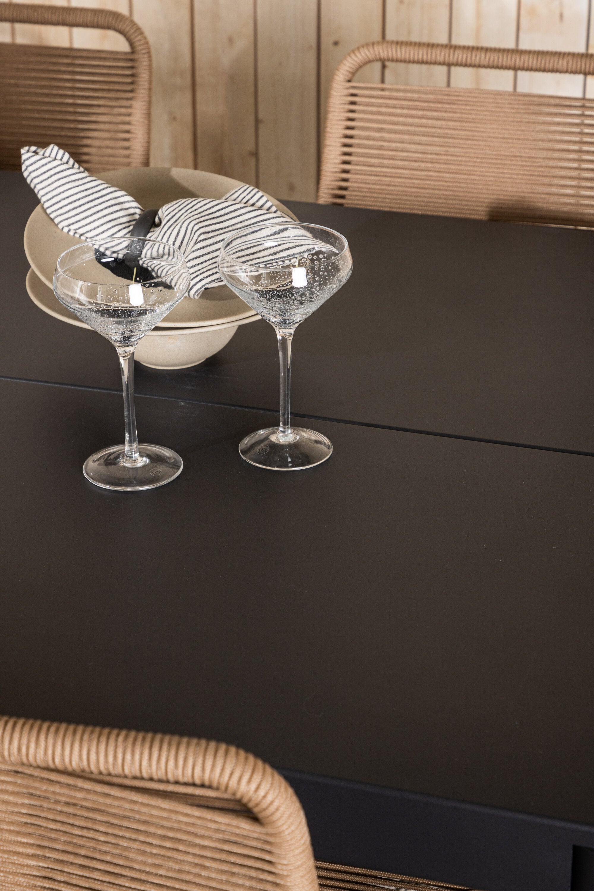 Modena - Jídelní stůl - Černá - Hliník - 200*100 cm _1+ Lindos Stohovací židle - Černá Alu / Latte Lano _6