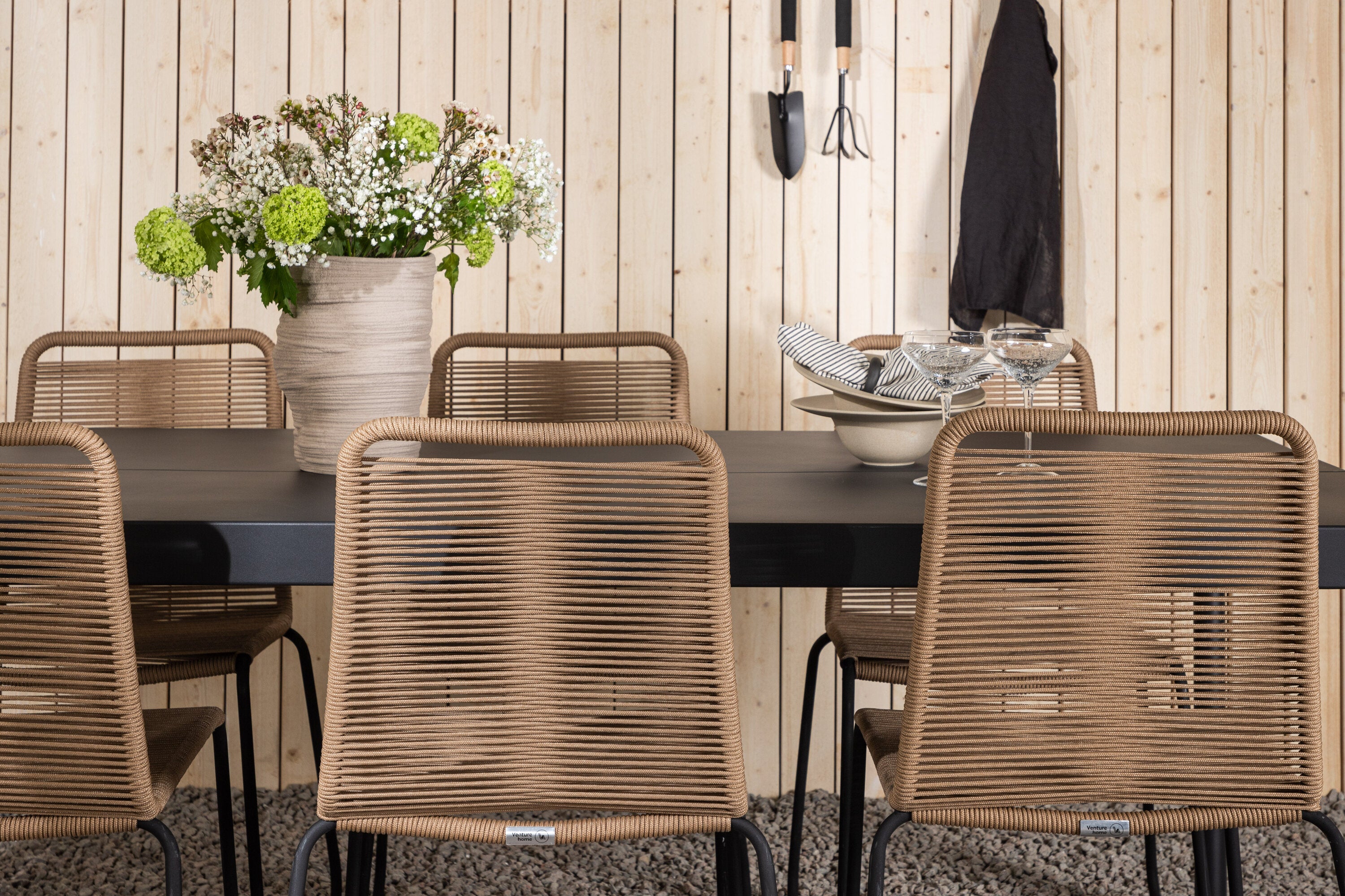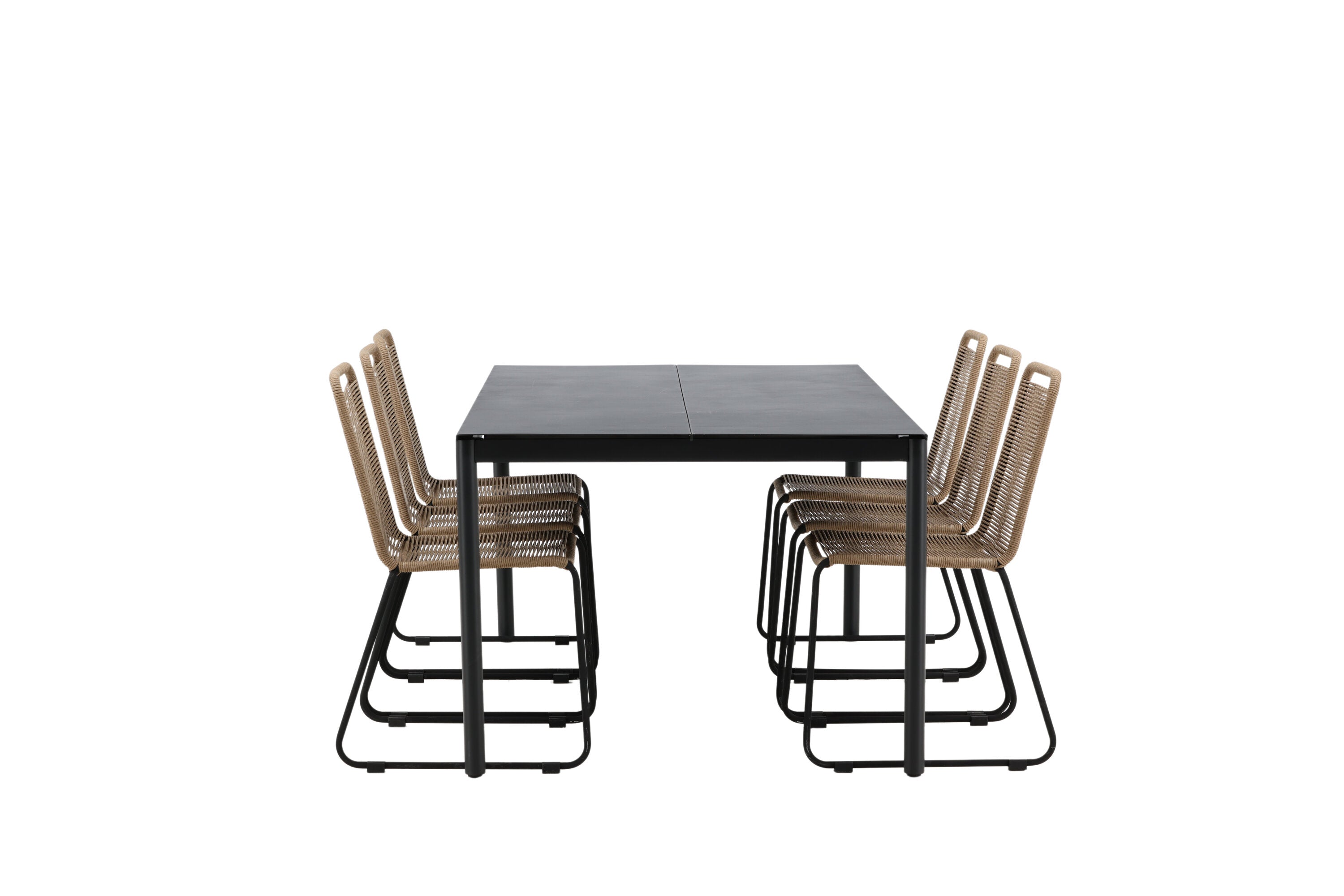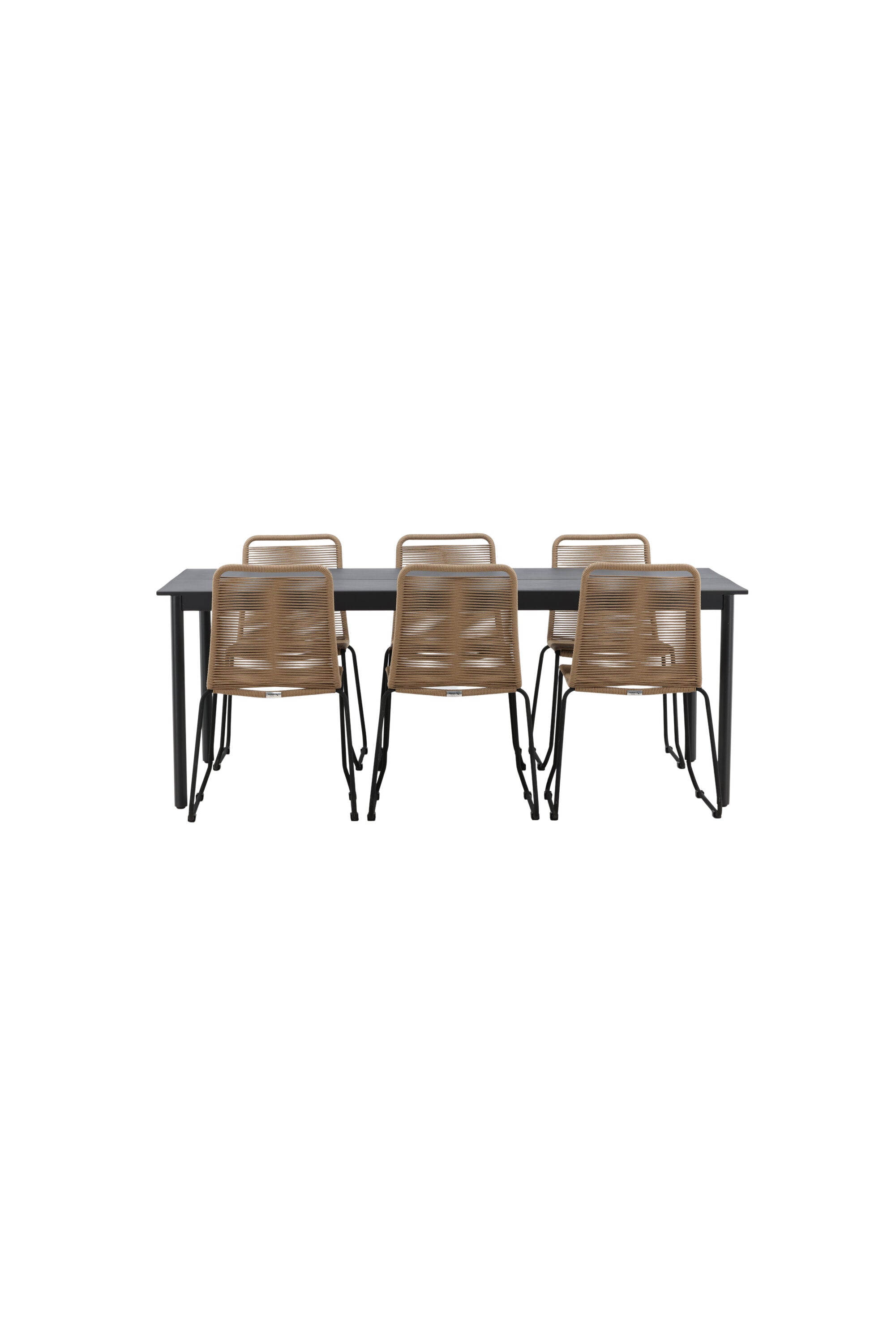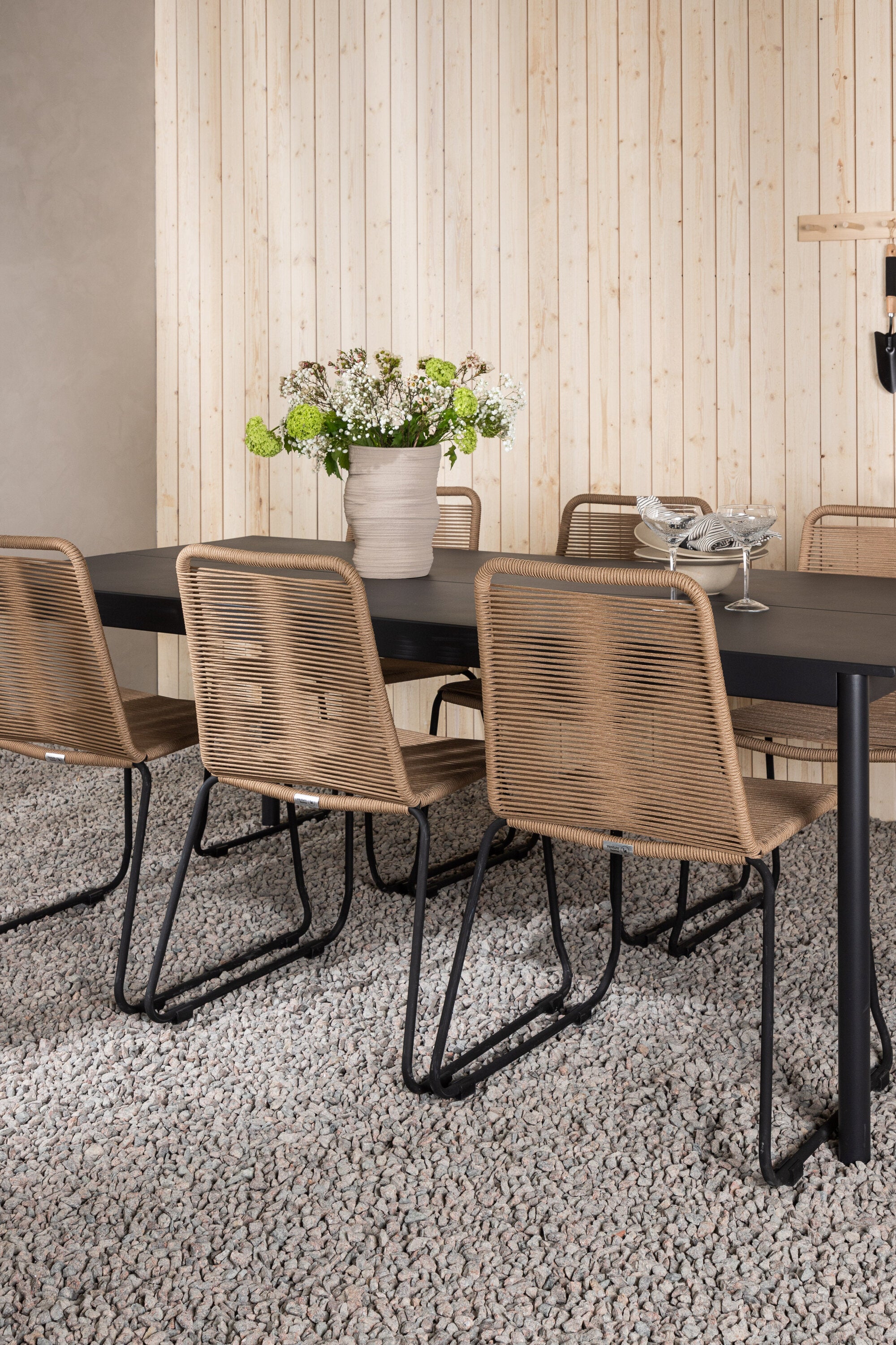 Modena - Jídelní stůl - Černá - Hliník - 200*100 cm _1+ Lindos Stohovací židle - Černá Alu / Latte Lano _6