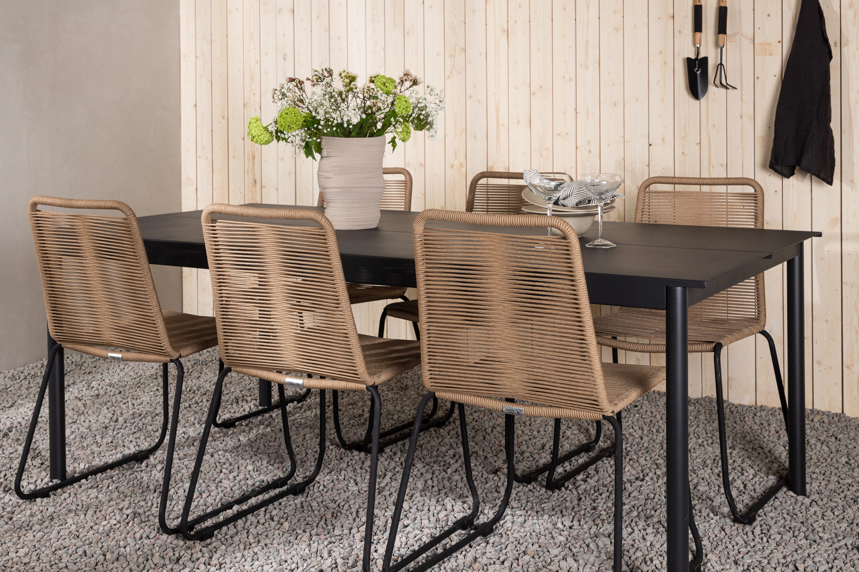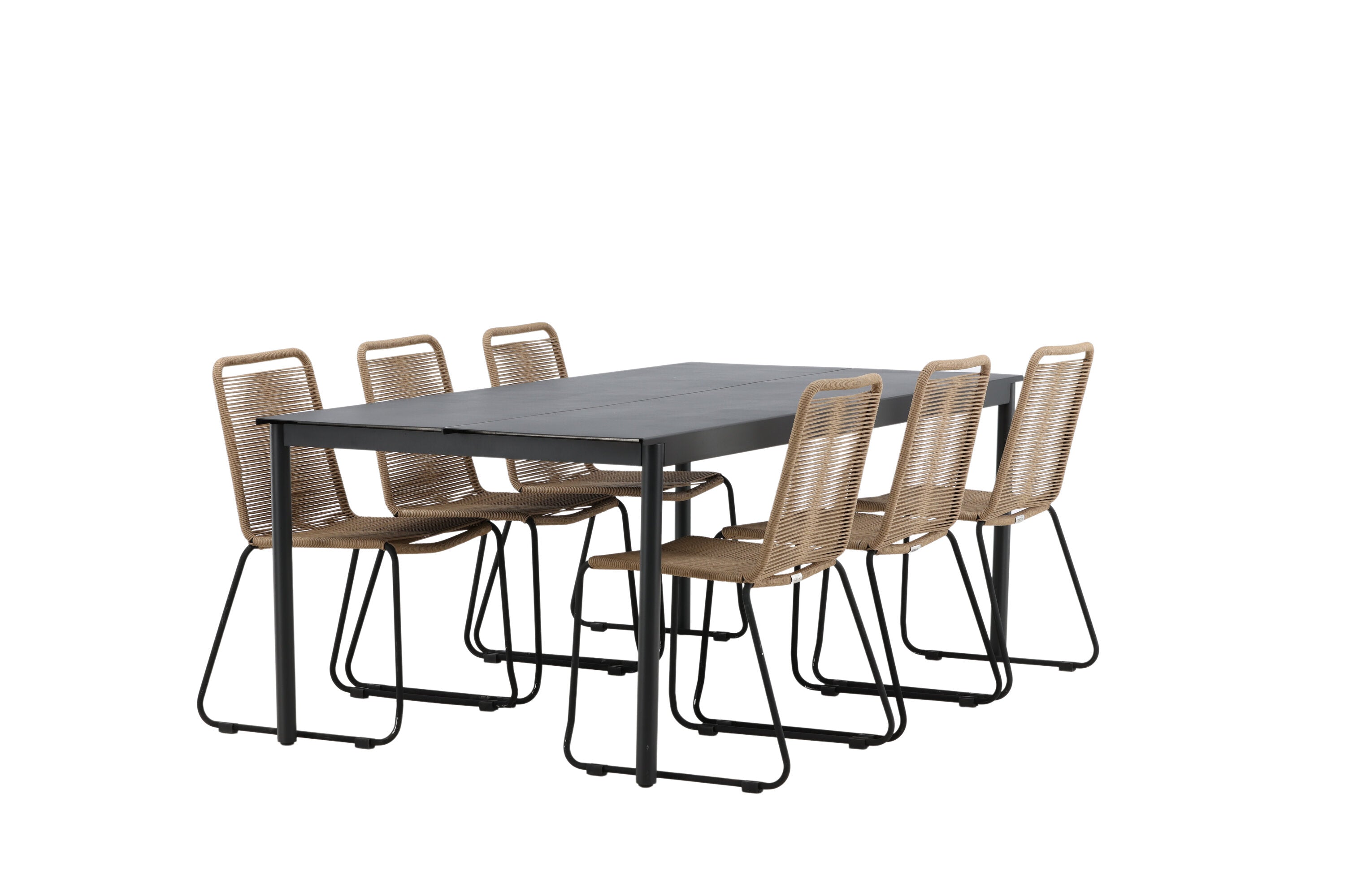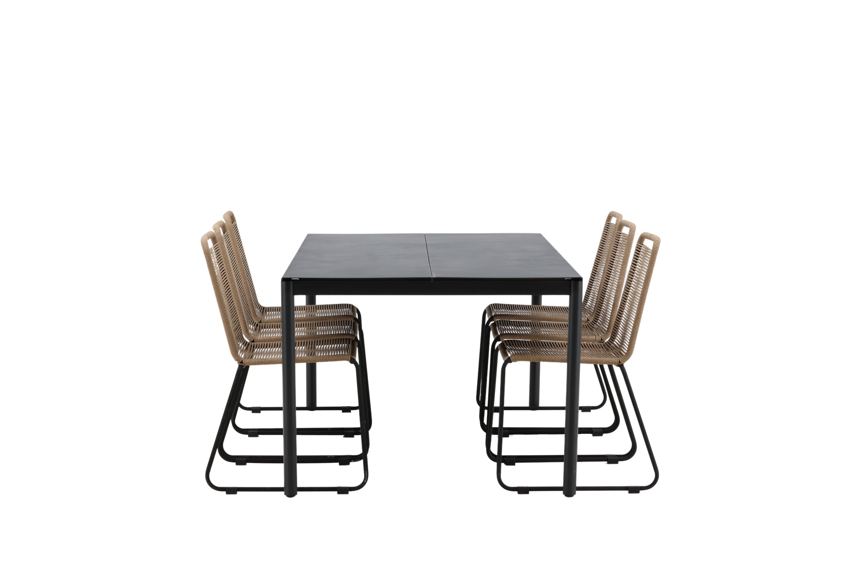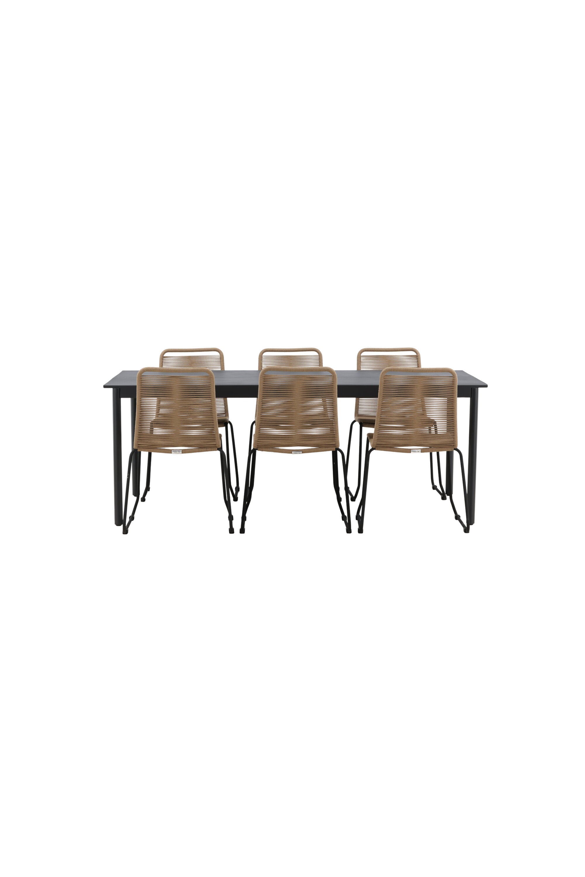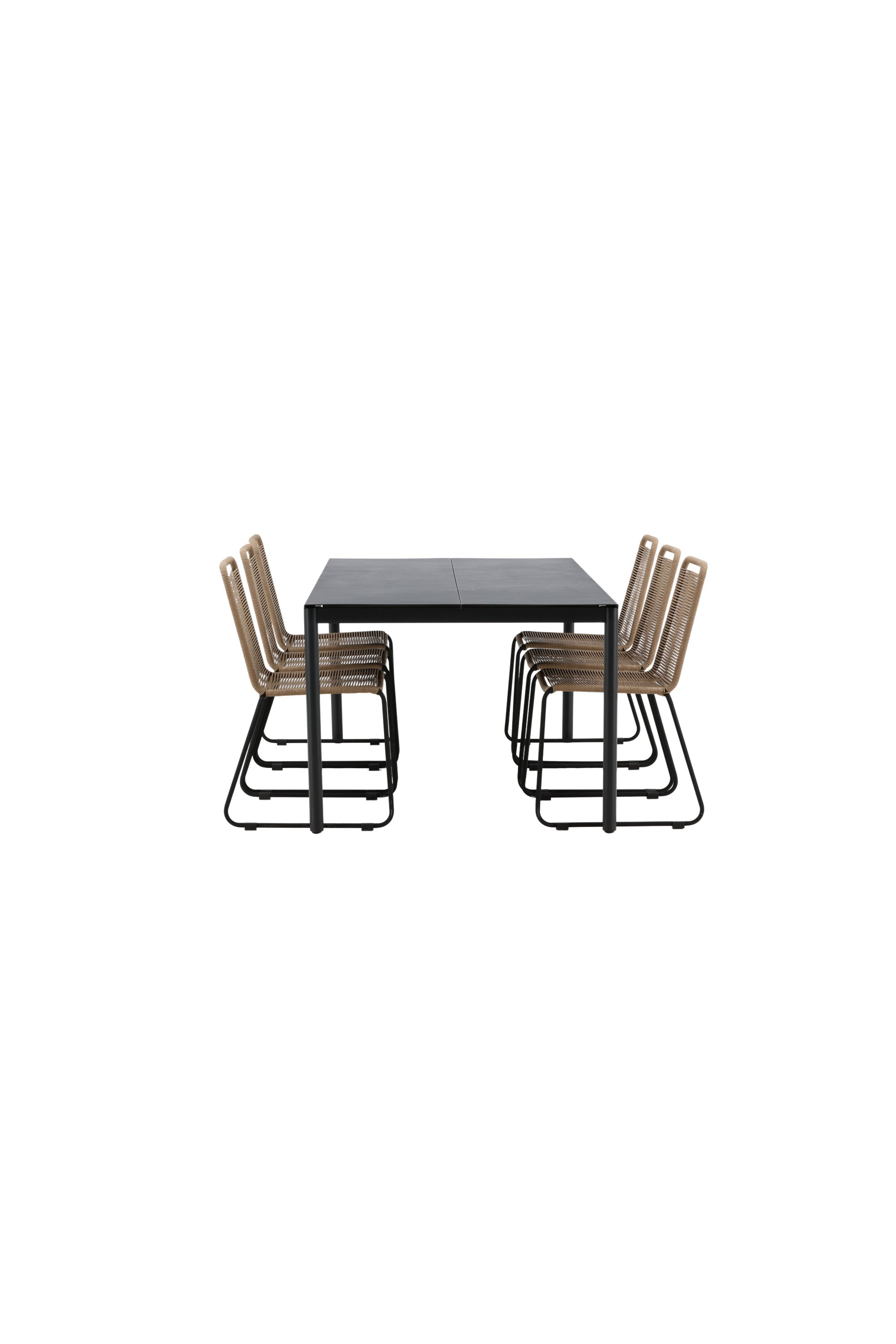 Modena - Jídelní stůl - Černá - Hliník - 200*100 cm _1+ Lindos Stohovací židle - Černá Alu / Latte Lano _6