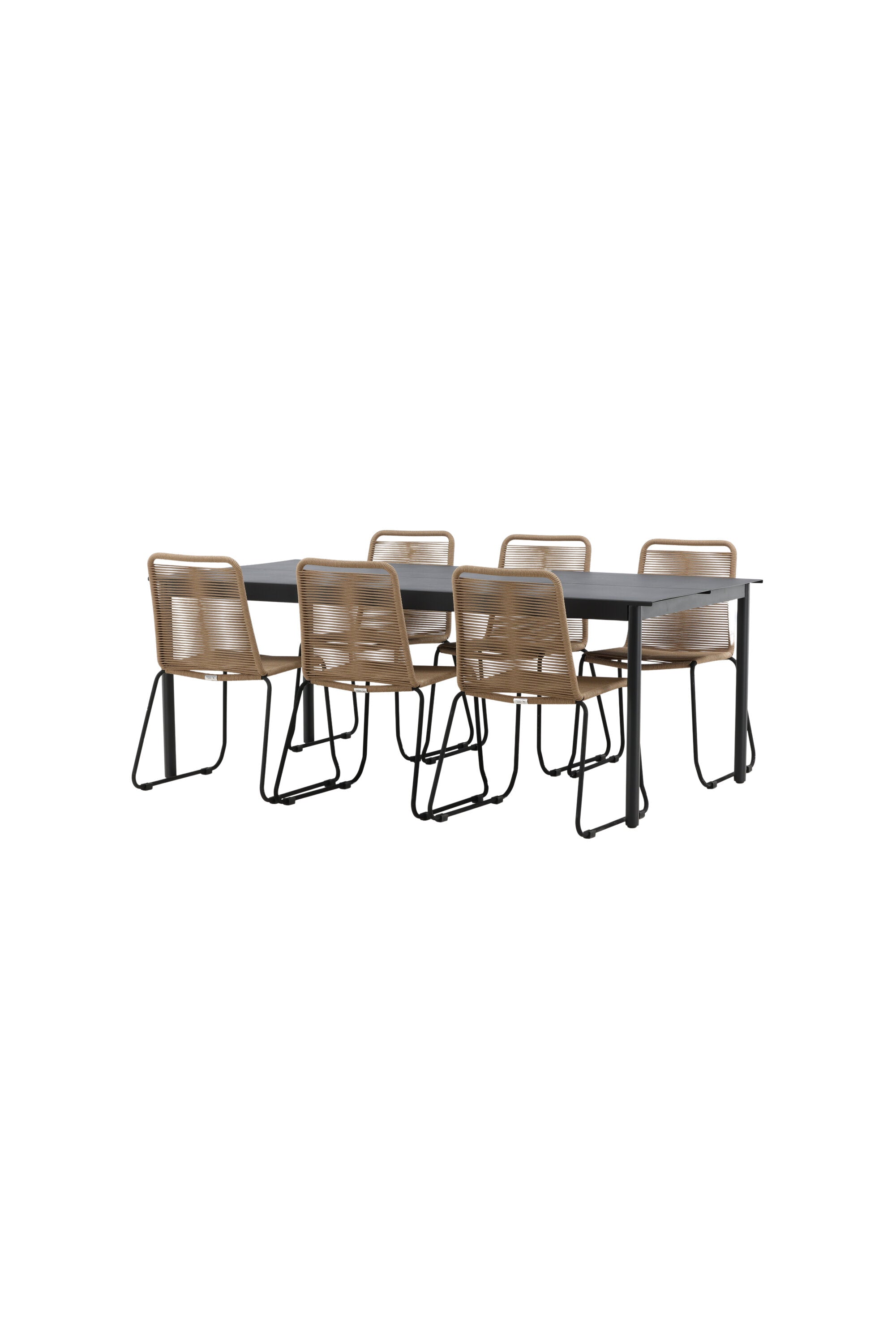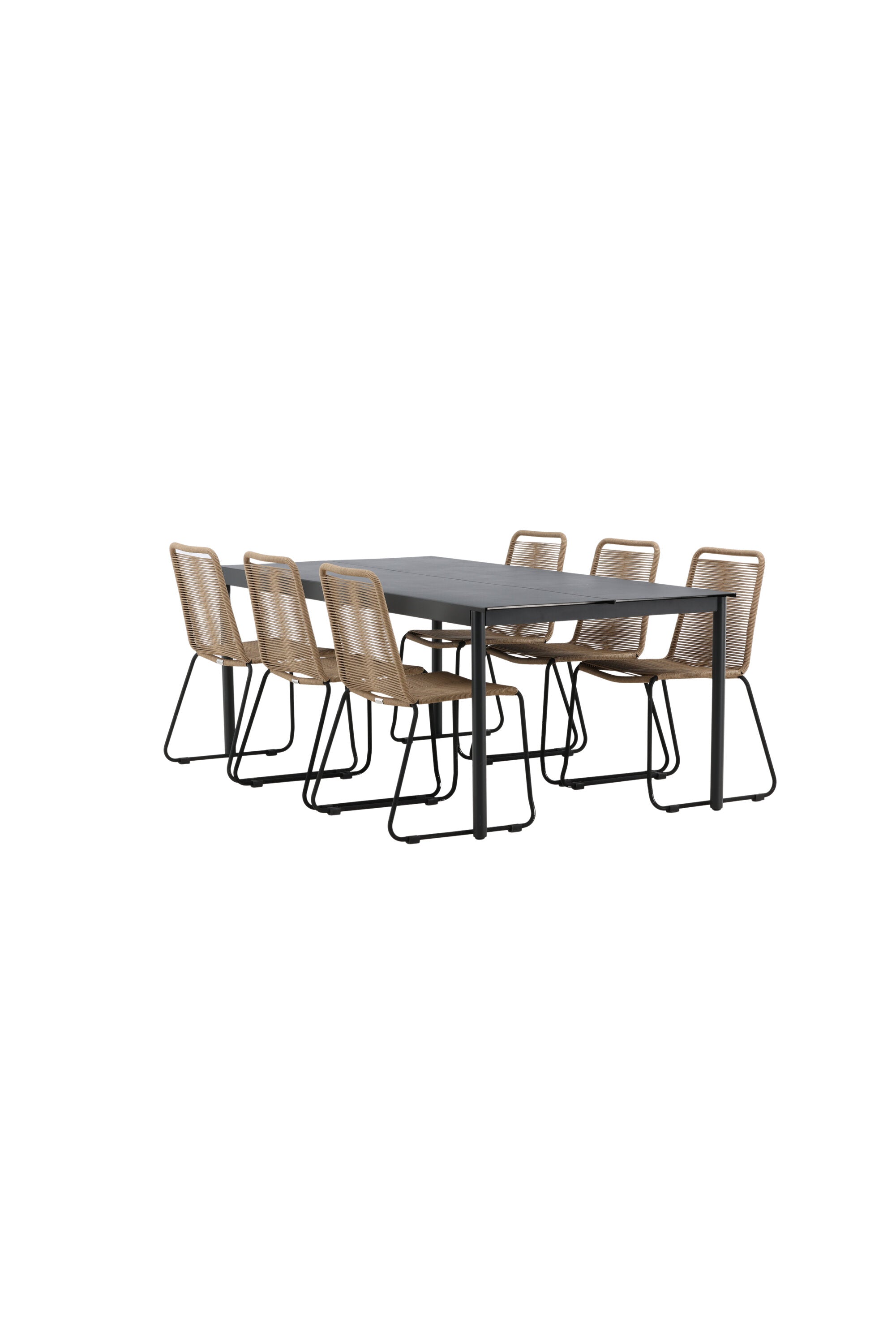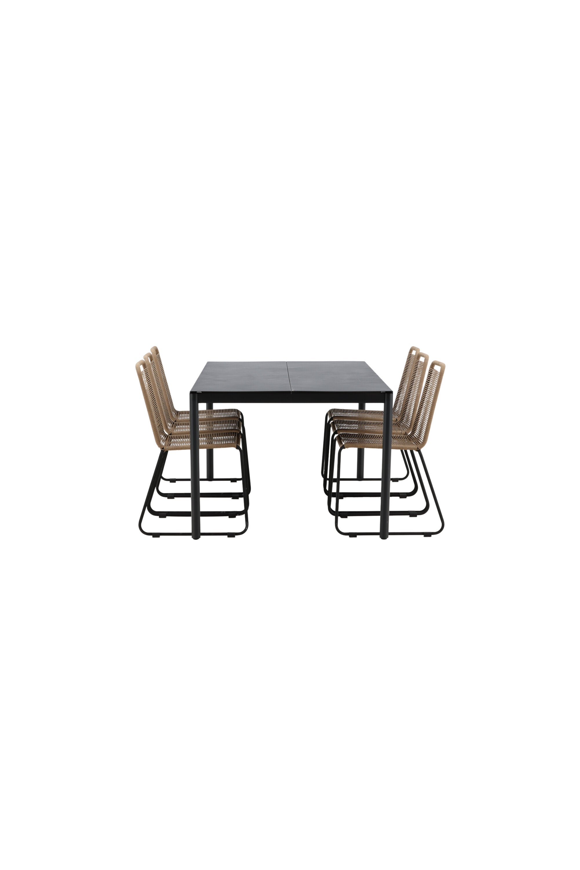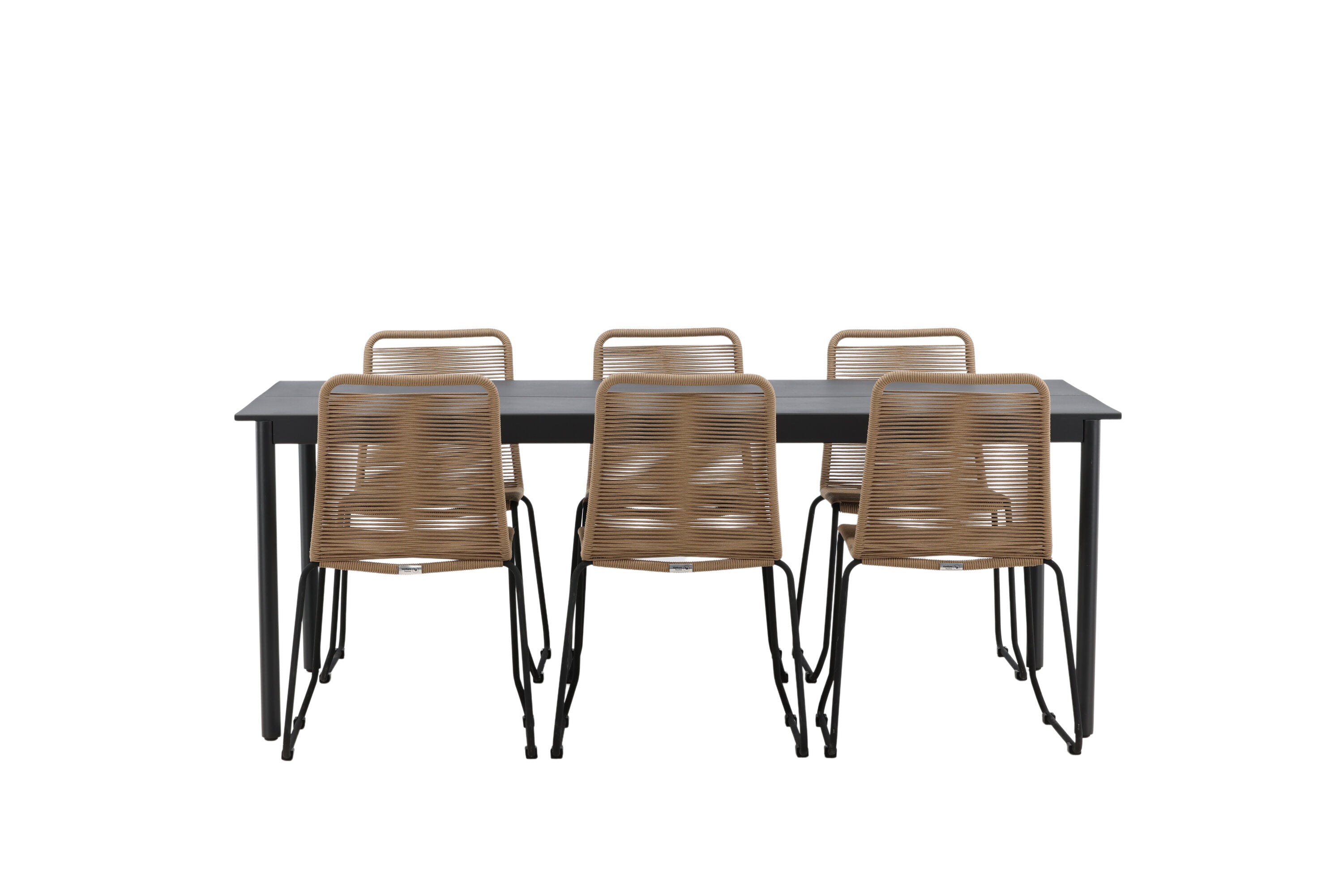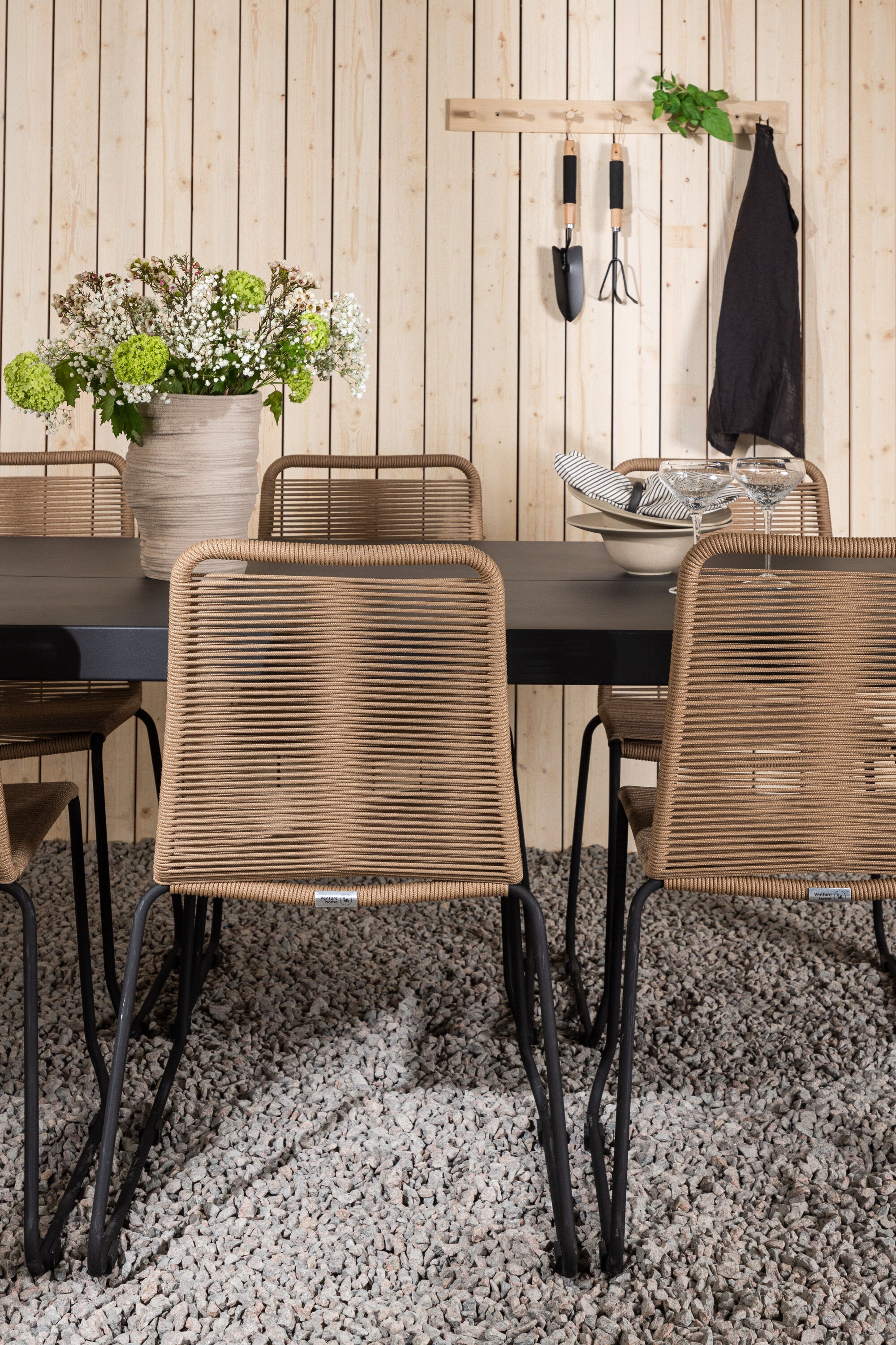 Modena - Jídelní stůl - Černá - Hliník - 200*100 cm _1+ Lindos Stohovací židle - Černá Alu / Latte Lano _6