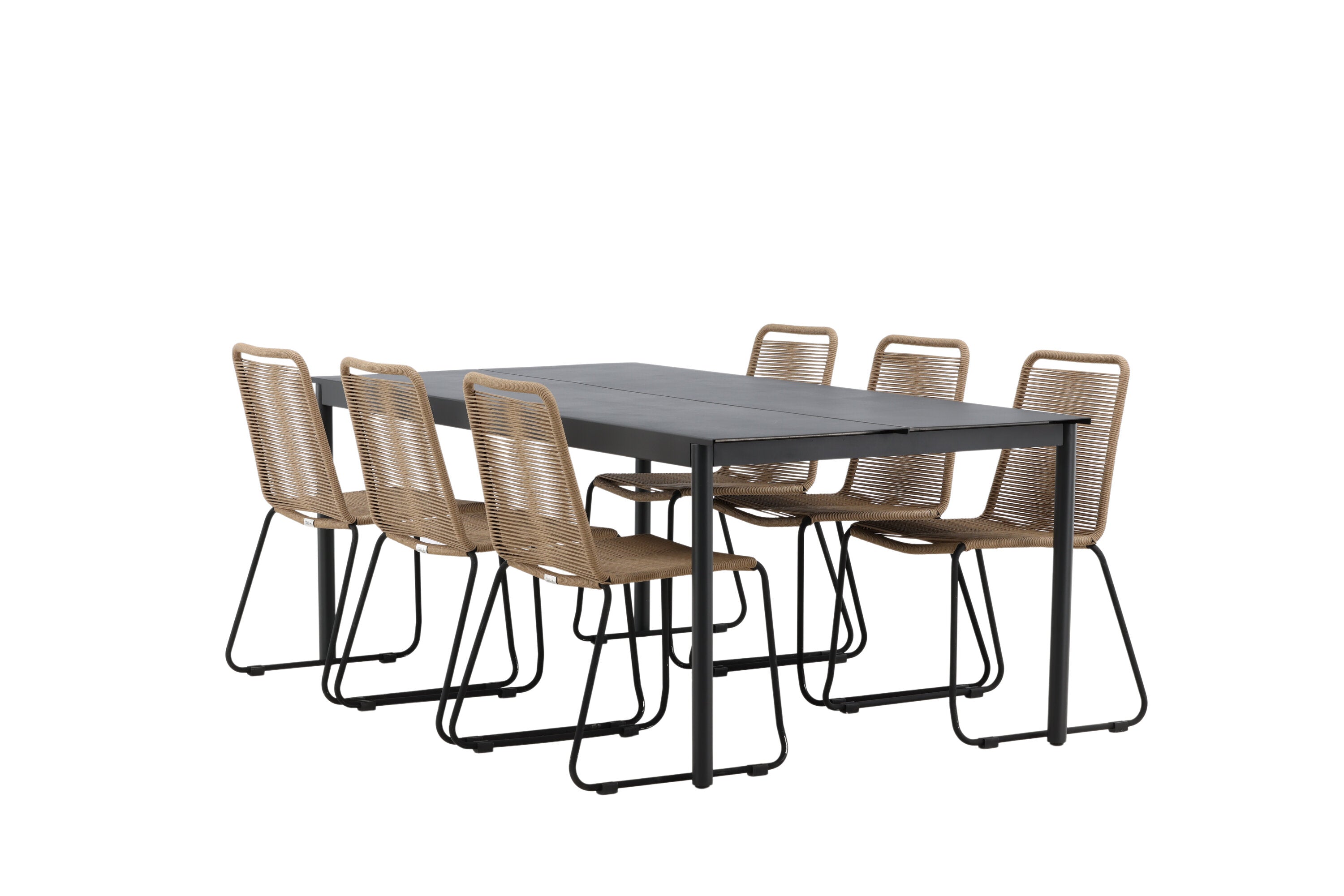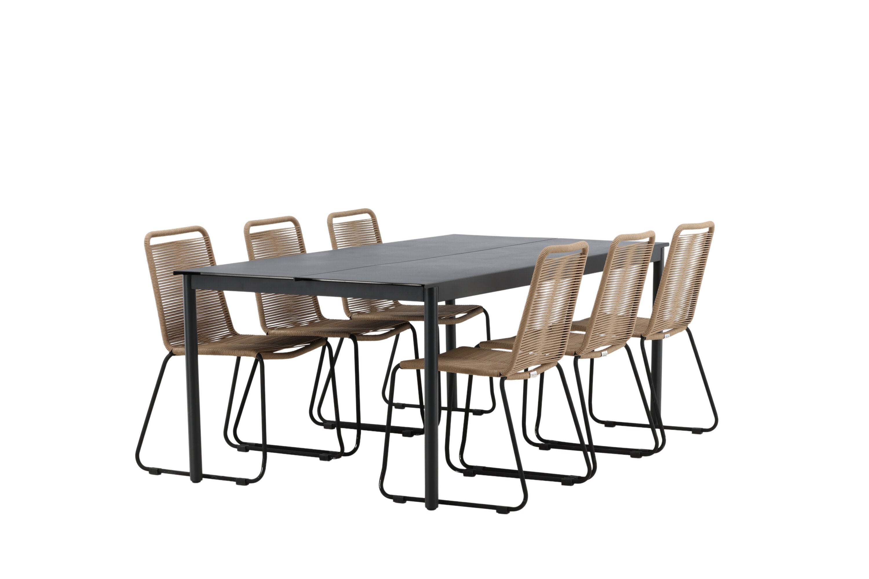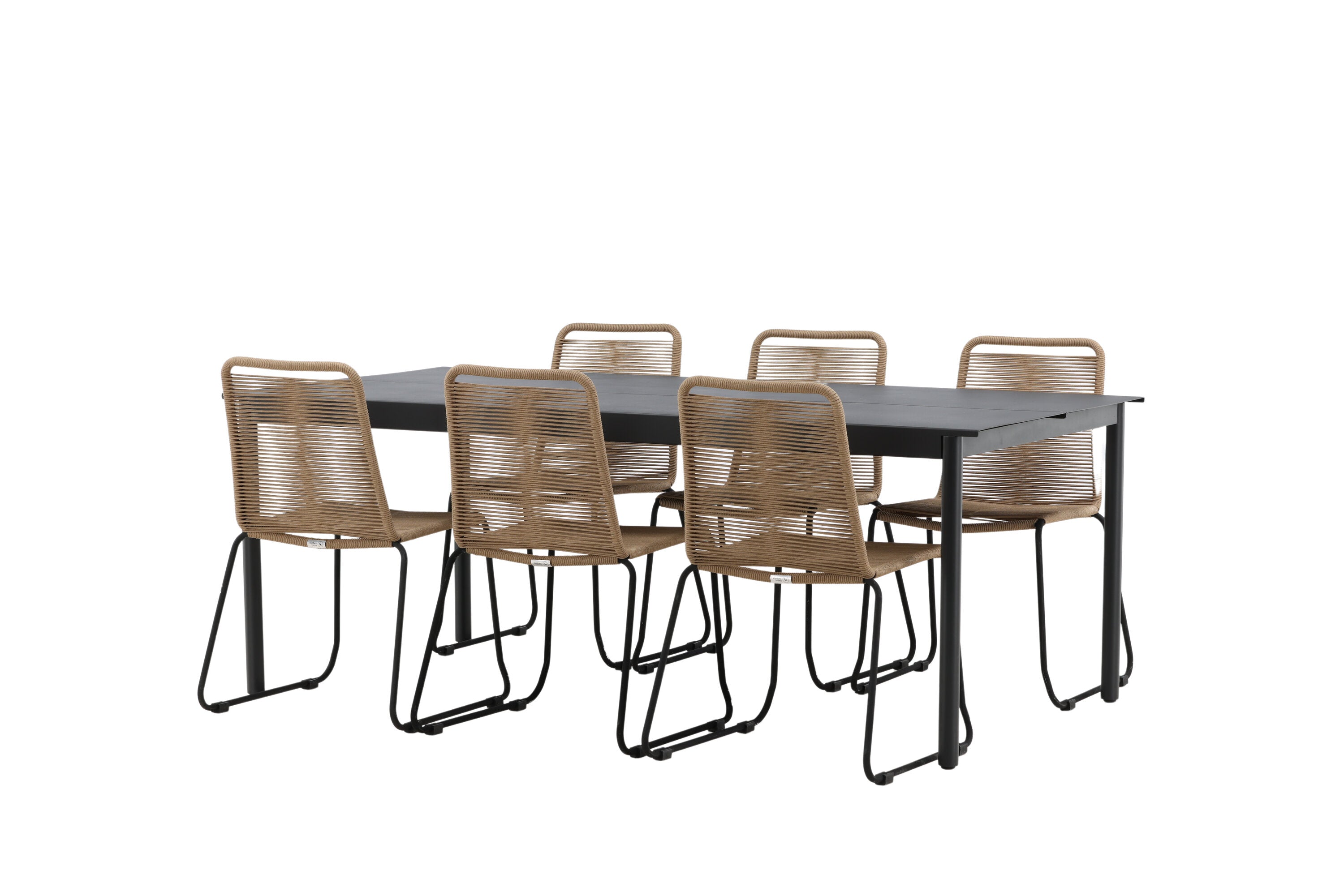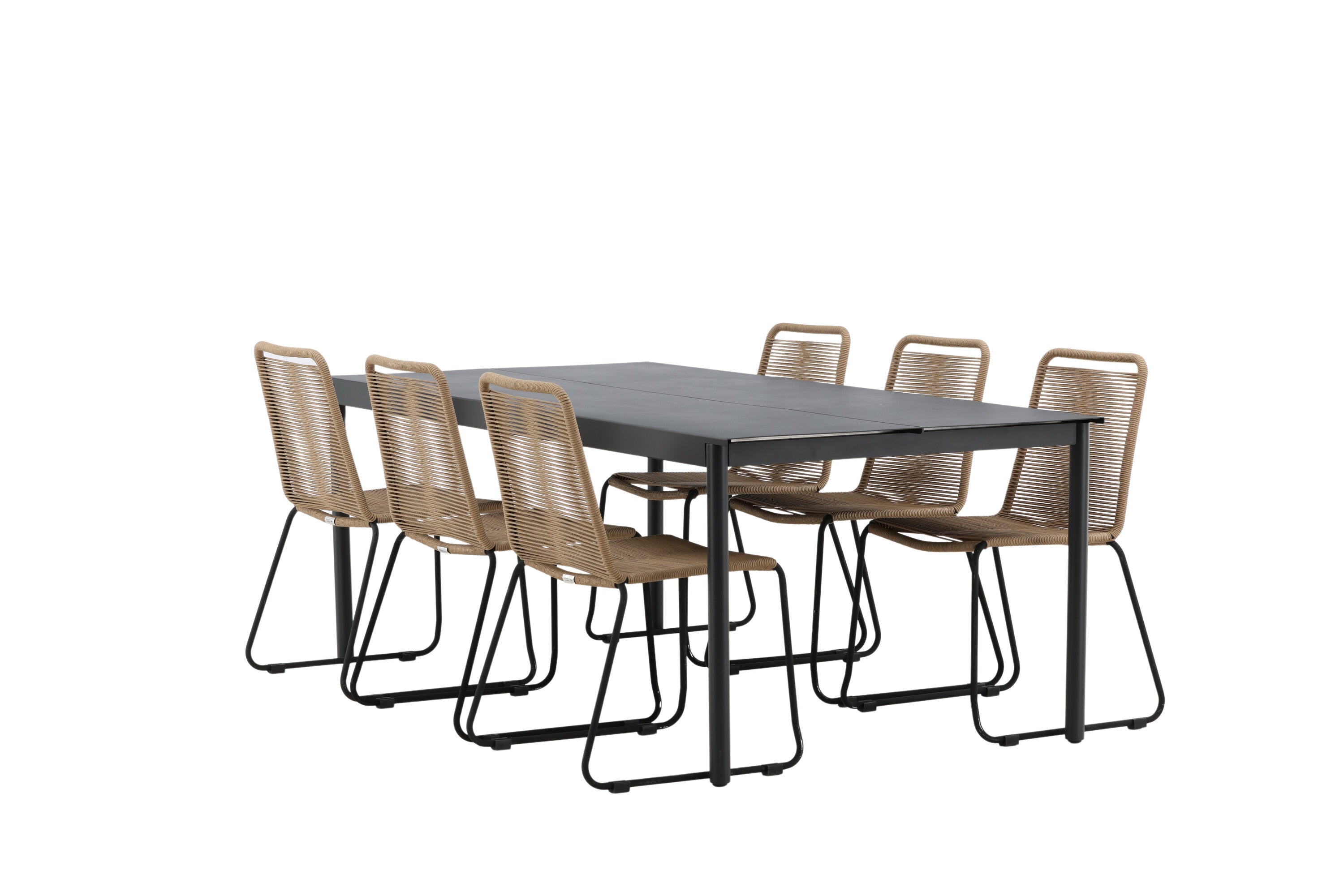 Modena - Jídelní stůl - Černá - Hliník - 200*100 cm _1+ Lindos Stohovací židle - Černá Alu / Latte Lano _6
