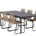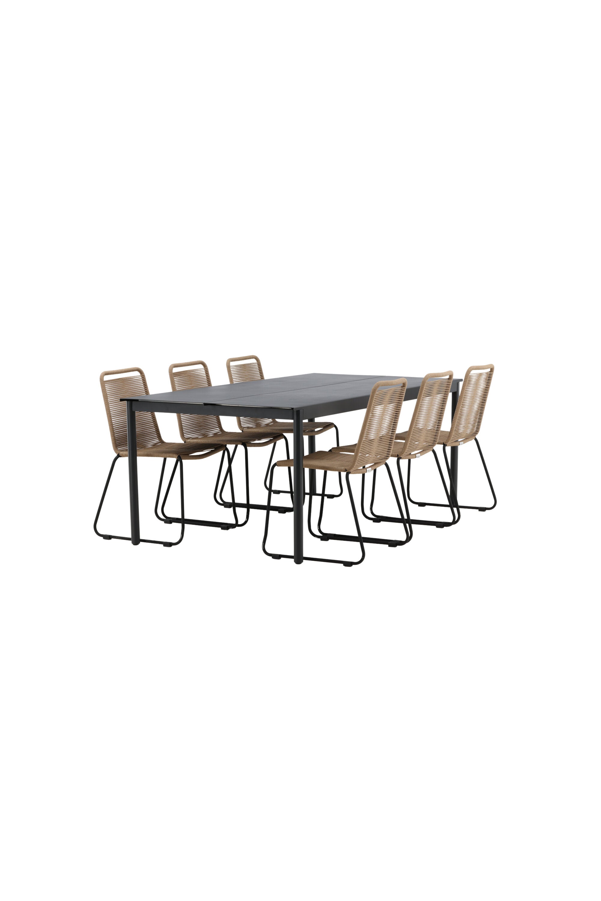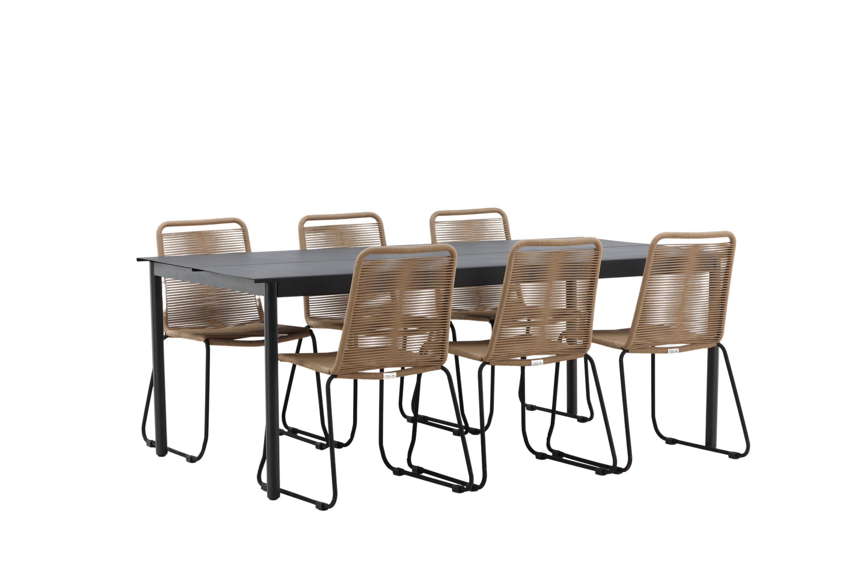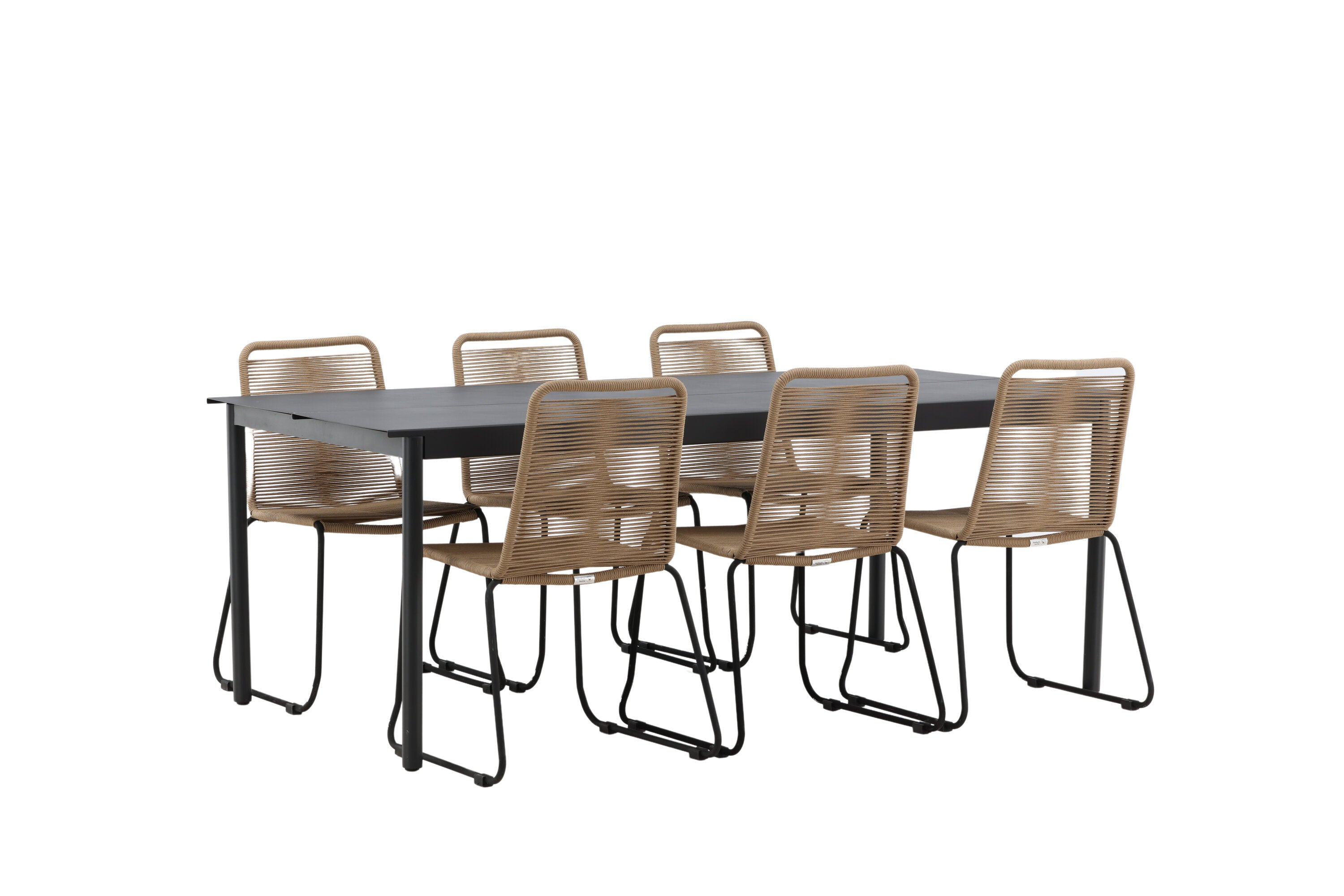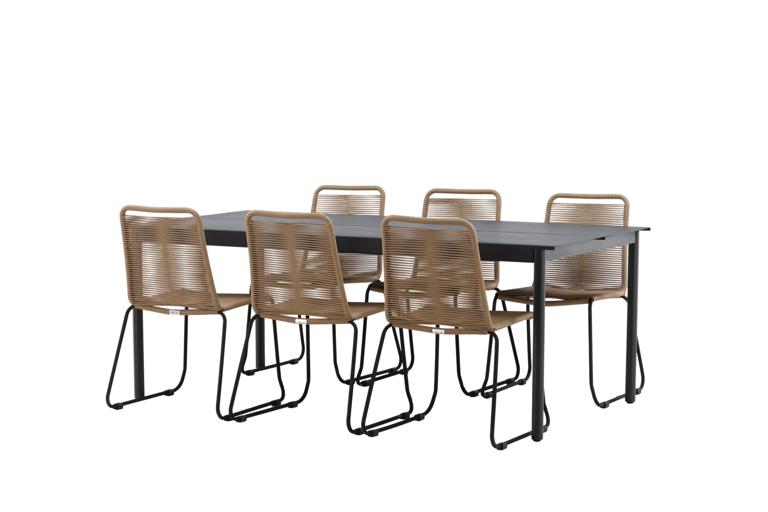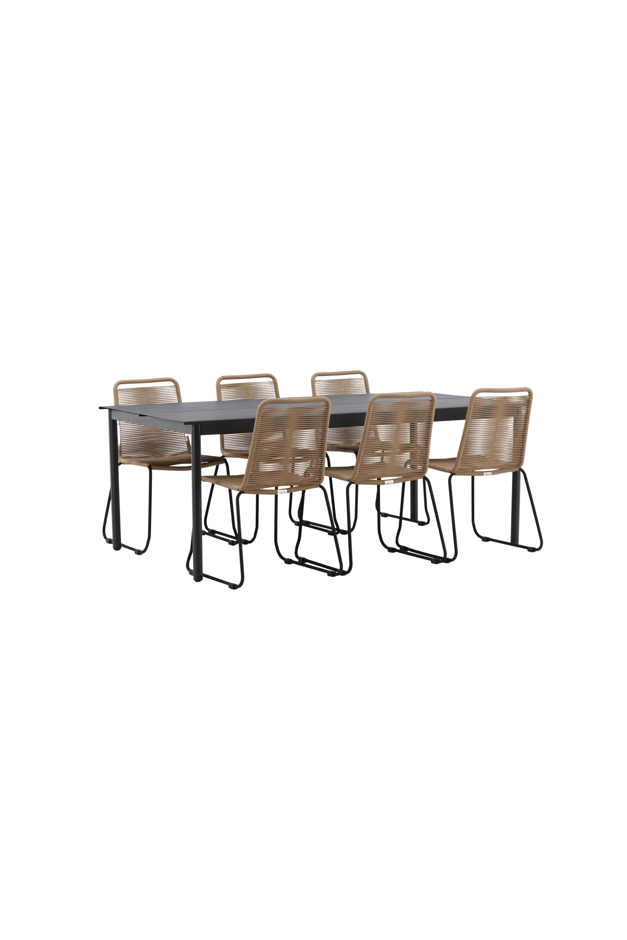 Modena - Jídelní stůl - Černá - Hliník - 200*100 cm _1+ Lindos Stohovací židle - Černá Alu / Latte Lano _6
