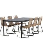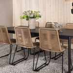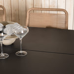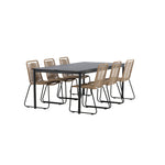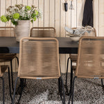 Pozvěte v budoucnu na mnoho společenských akcí! Modena je náš oblíbený jídelní stůl v rovných severských tvarech, který pojme prostor pro mnohé. Stůl má obdélníkovou desku z černého hliníku a válcové nohy v minimalistickém kusu. Zde v módní kombinaci s našimi lahodnými jídelními židlemi Lindos v zemité barvě. Židle jsou stohovatelné pro praktické skladování a jsou vyrobeny z odolného lana v krásné barvě latte. Posaďte se pohodlně a příjemně v příjemné skupině jídel!