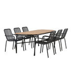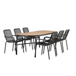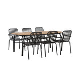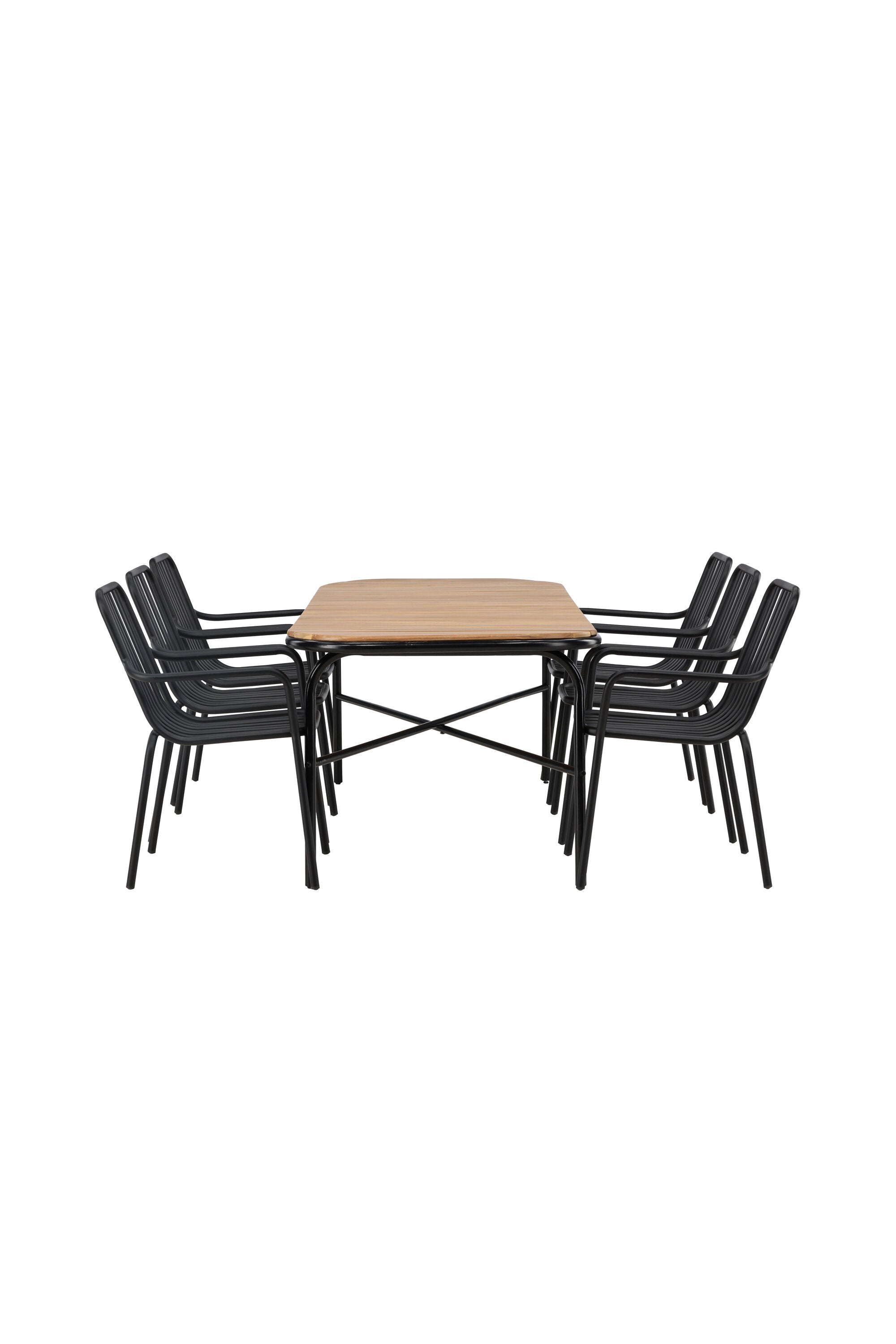 Ocelový jídelní stůl Holmbeck – černá / obdélníková 90*200*75 + hliníková jídelní židle Peking – černá / _6