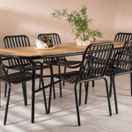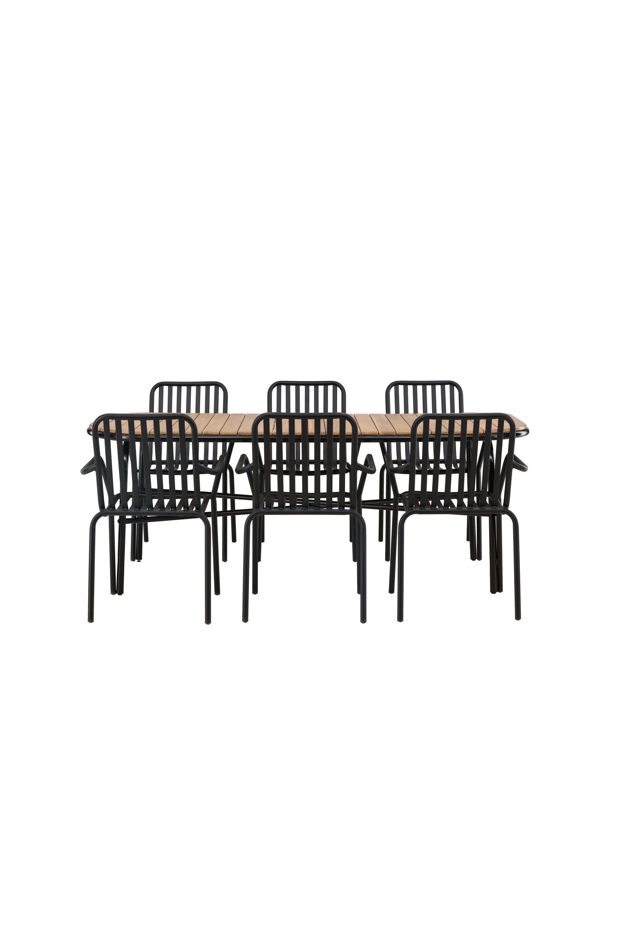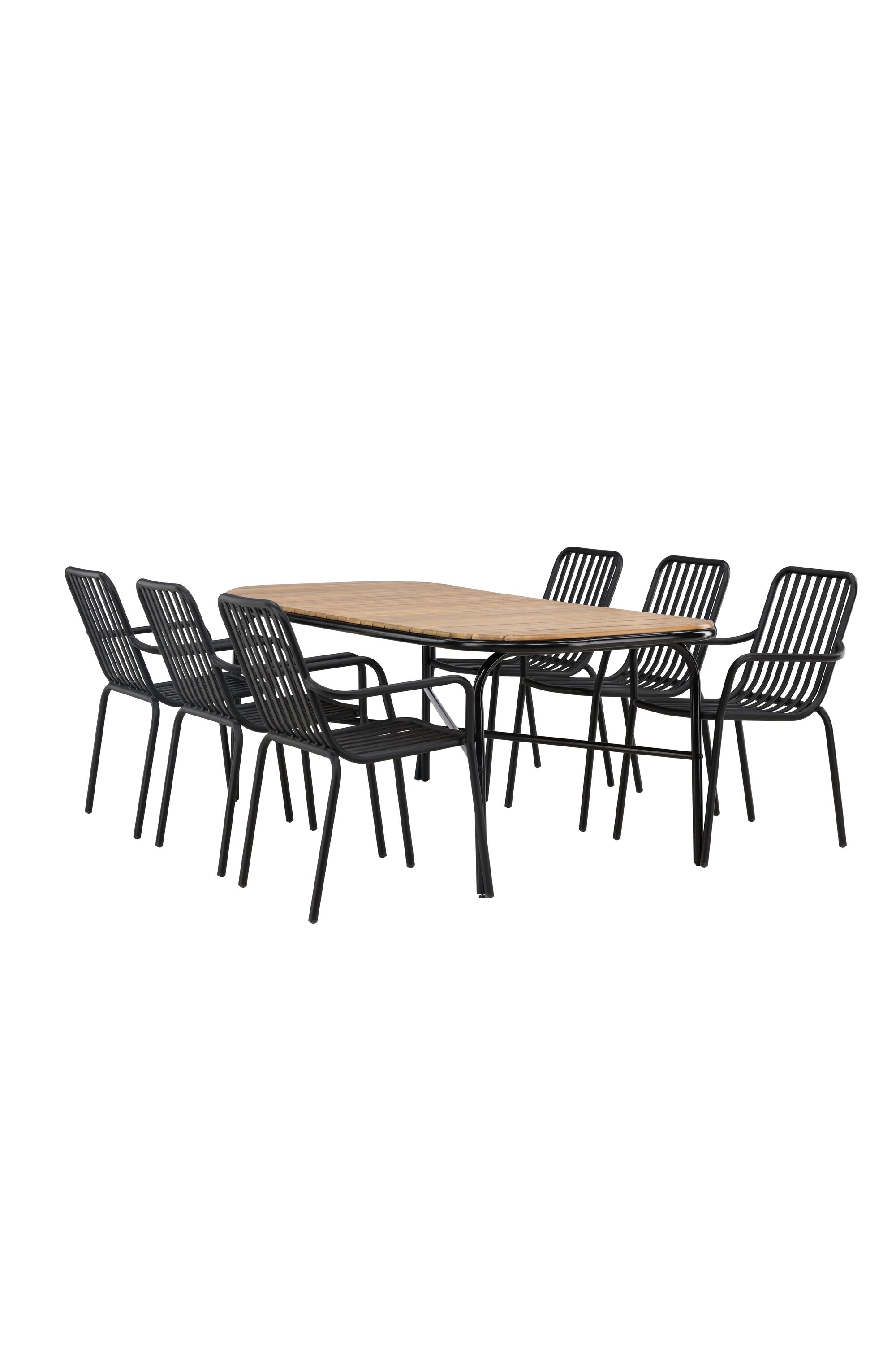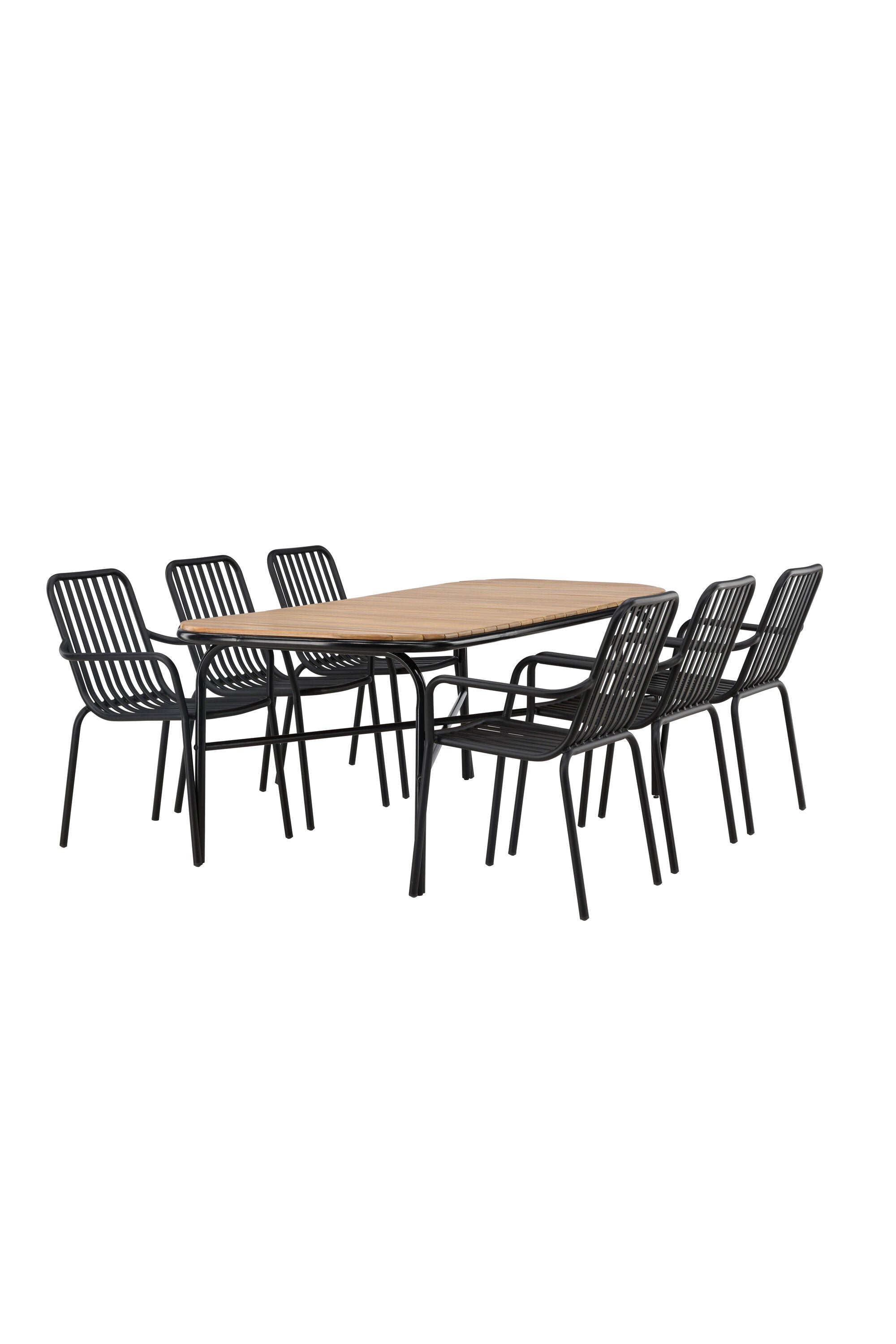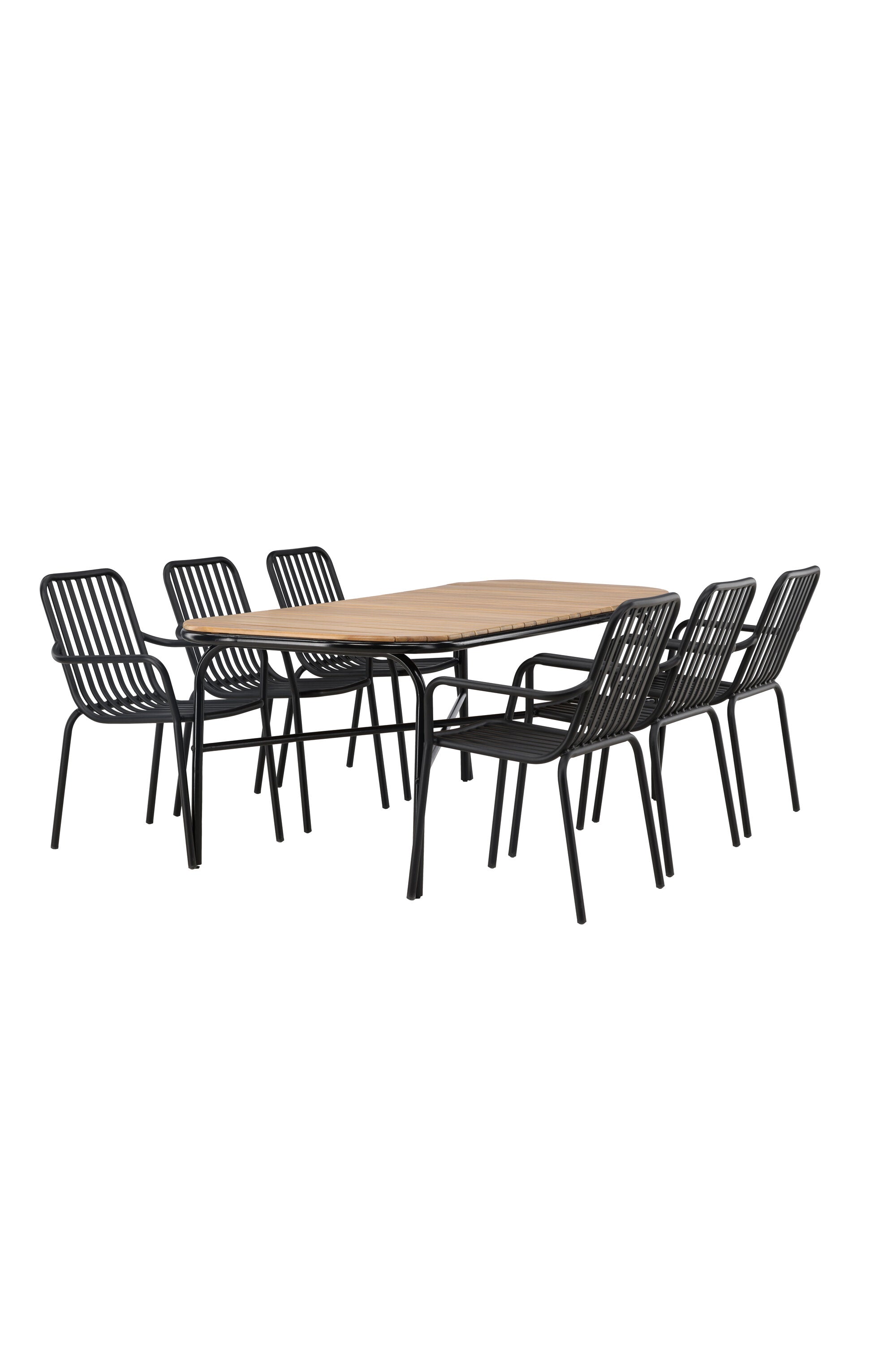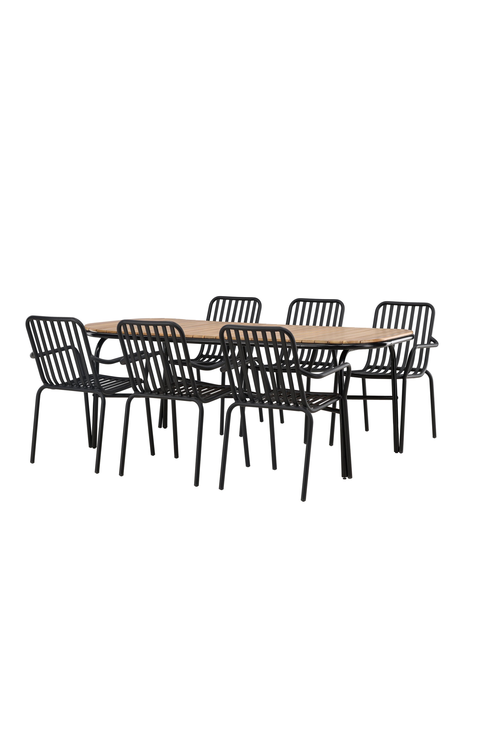 Vítejte doma ve stylové jídelně se všemi okouzlujícími funkcemi! Oblíbený jídelní stůl Holmbeck má obdélníkovou desku z elegantní akácie se zaoblenými hranami a minimalistickou základnu z černé oceli. Zde v dokonalé kombinaci s černými jídelními židlemi ze série Beijing. Díky žebrovanému designu a černé barvě židle působí moderně a nadčasově. Vyrobeno z hliníku, který usnadňuje pohyb a má integrované područky pro větší pohodlí. Nechť je čas zde vrcholem dne! Rozměry stolu: 200 x 90 x 75 cm.