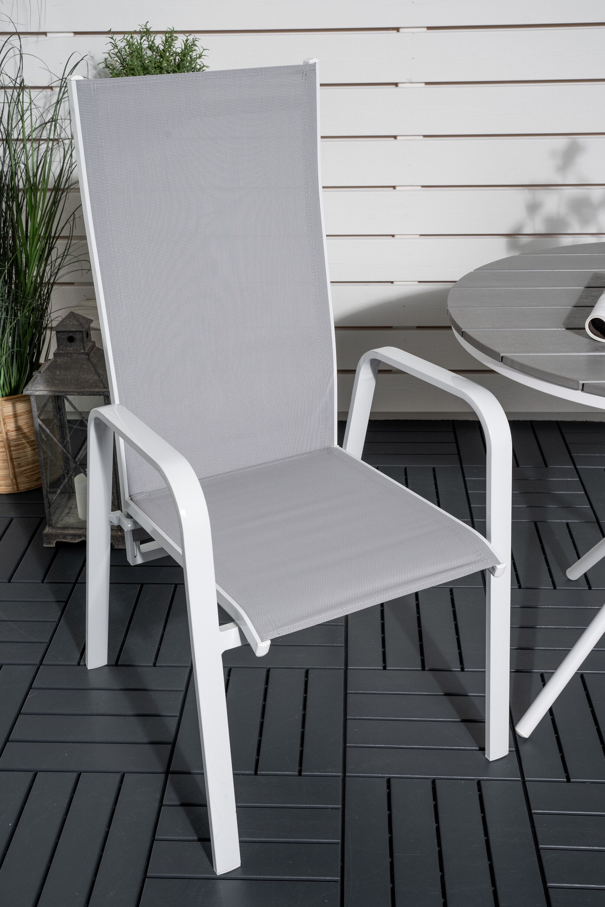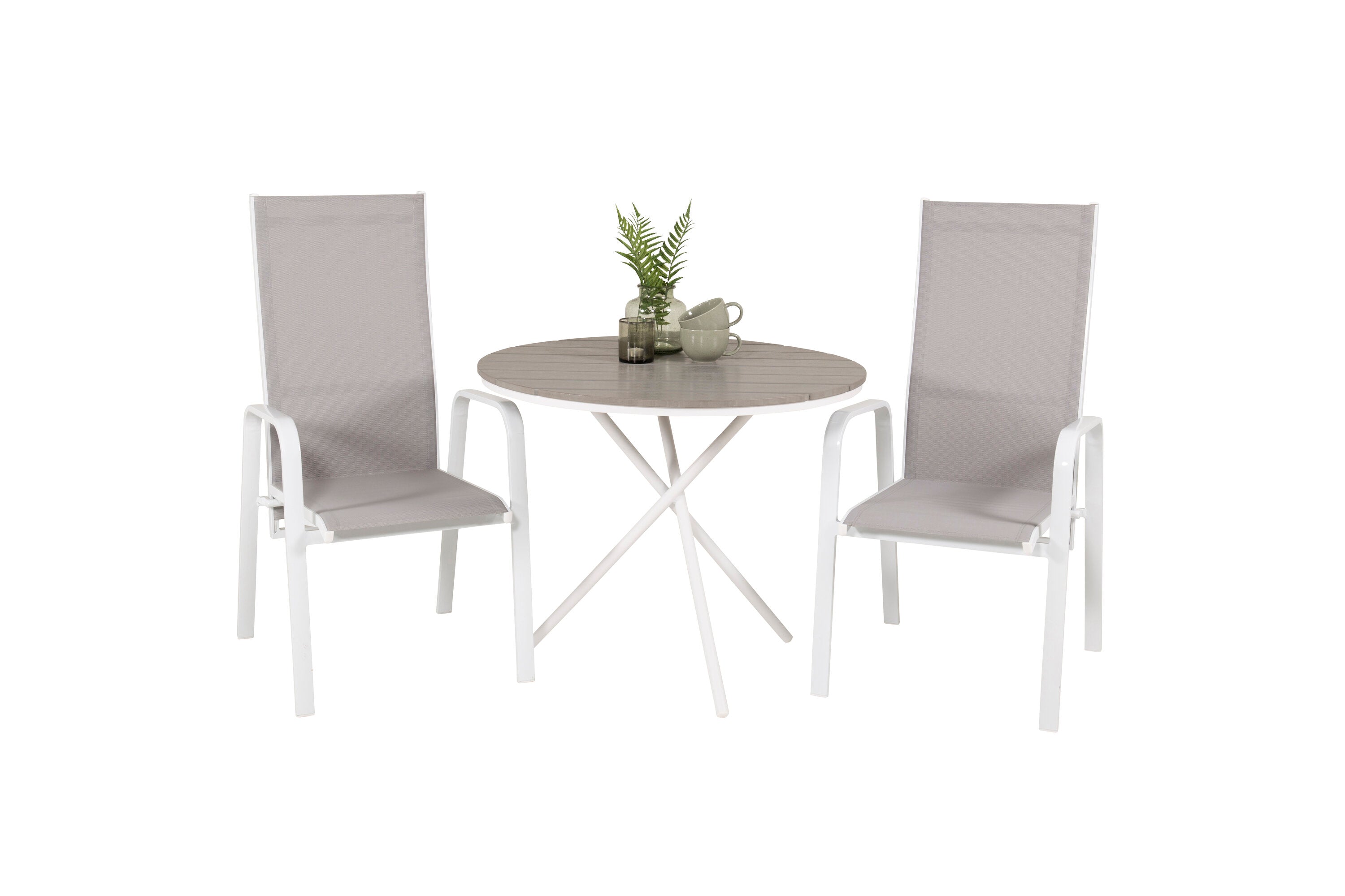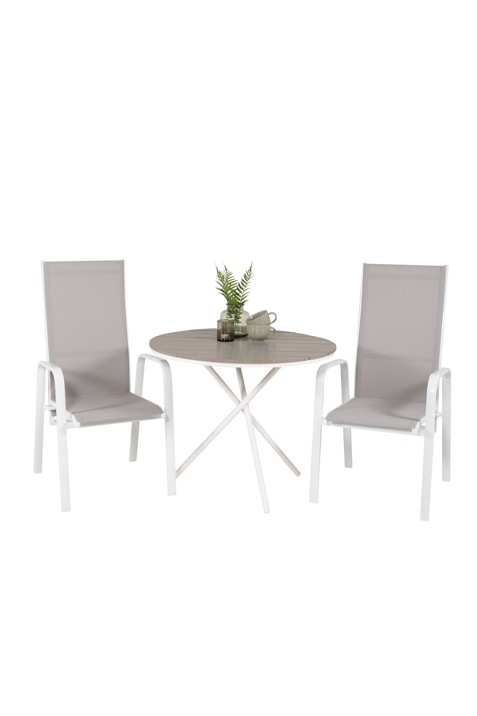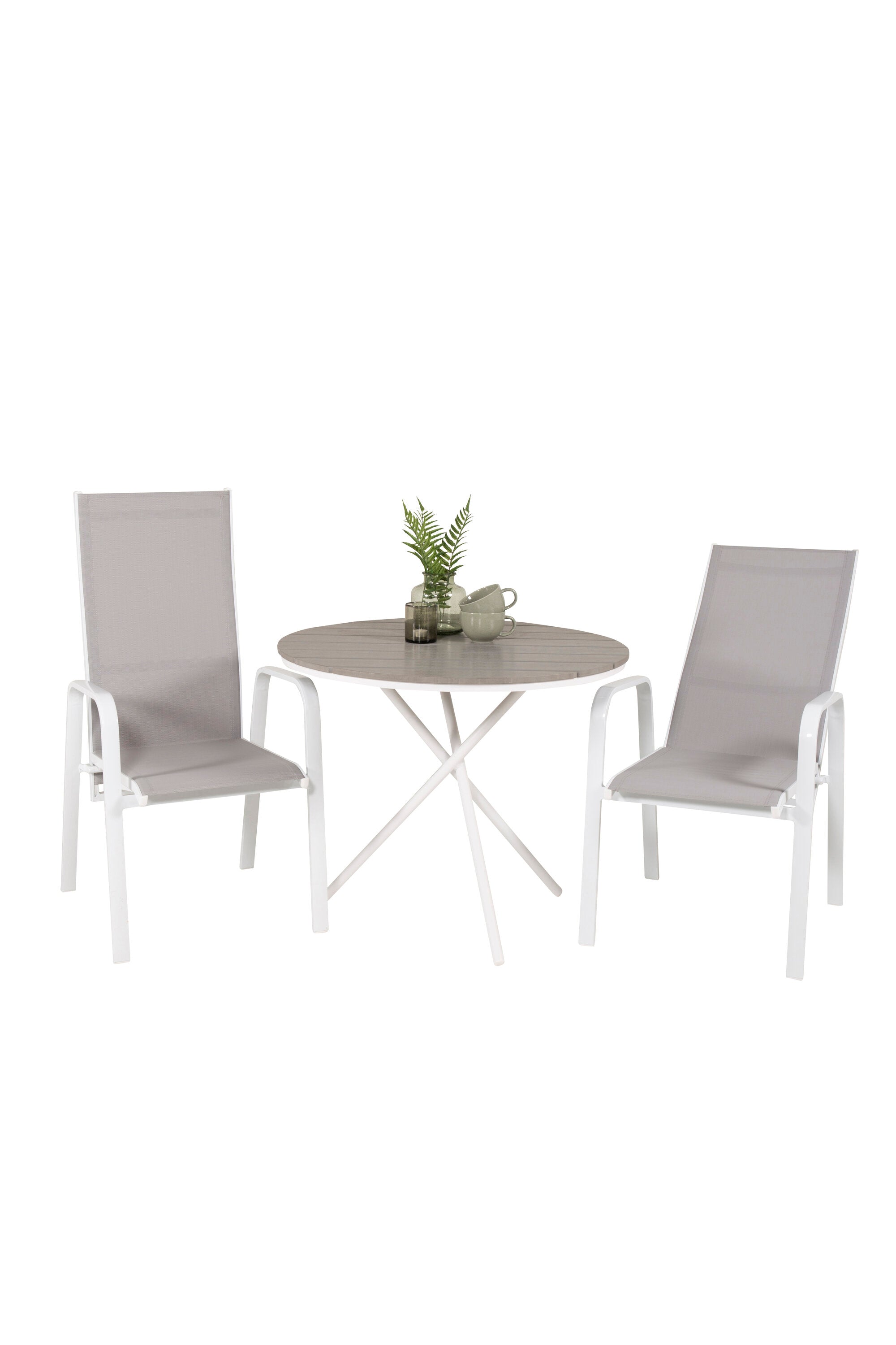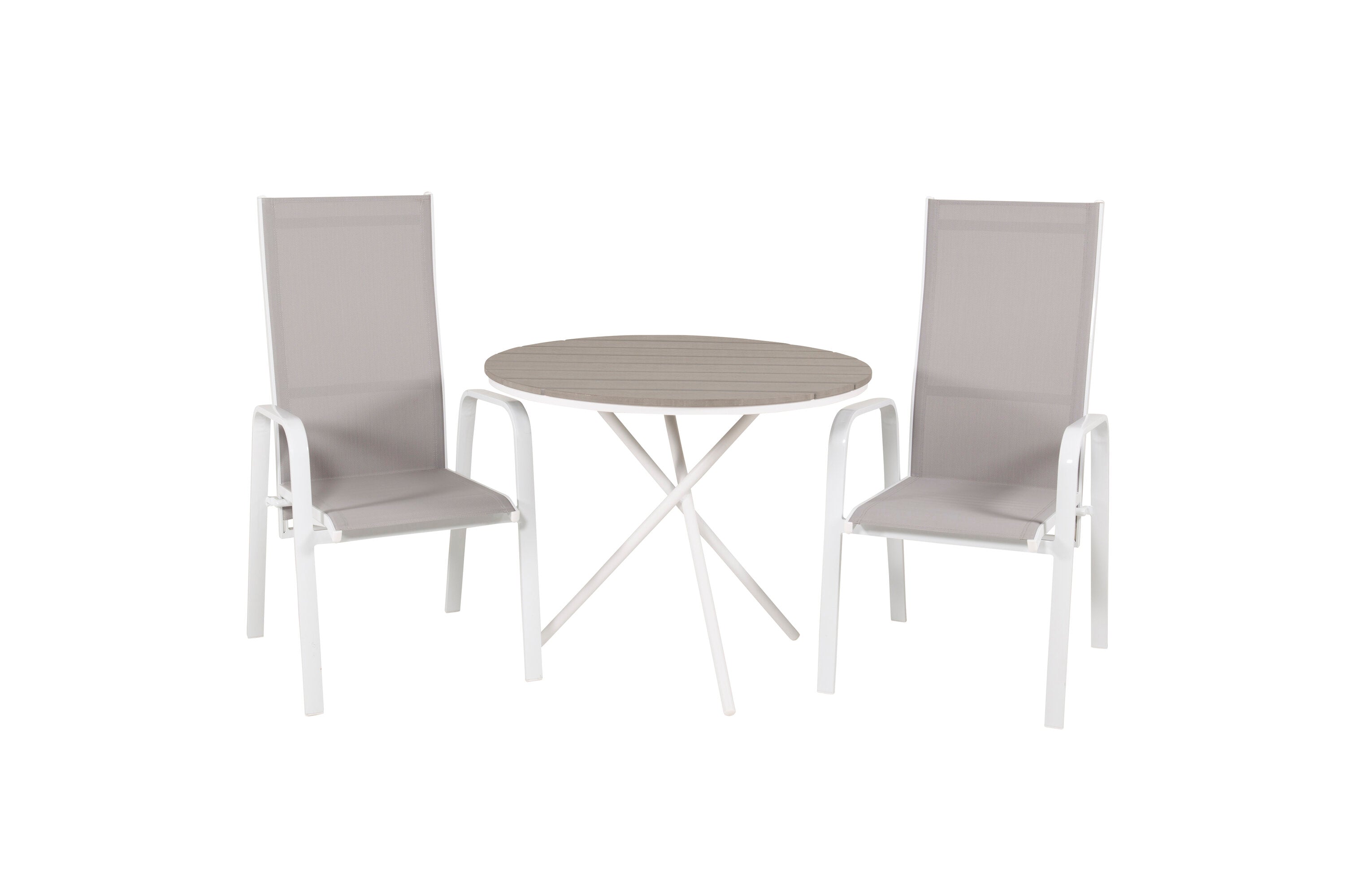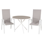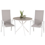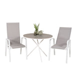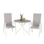 Parma cafébord ø90 - Bílá Alu / Šedá Aintwood+Copacabana Polohovací křeslo (stohovatelné) - Bílá Alu / Šedá Textilene_2