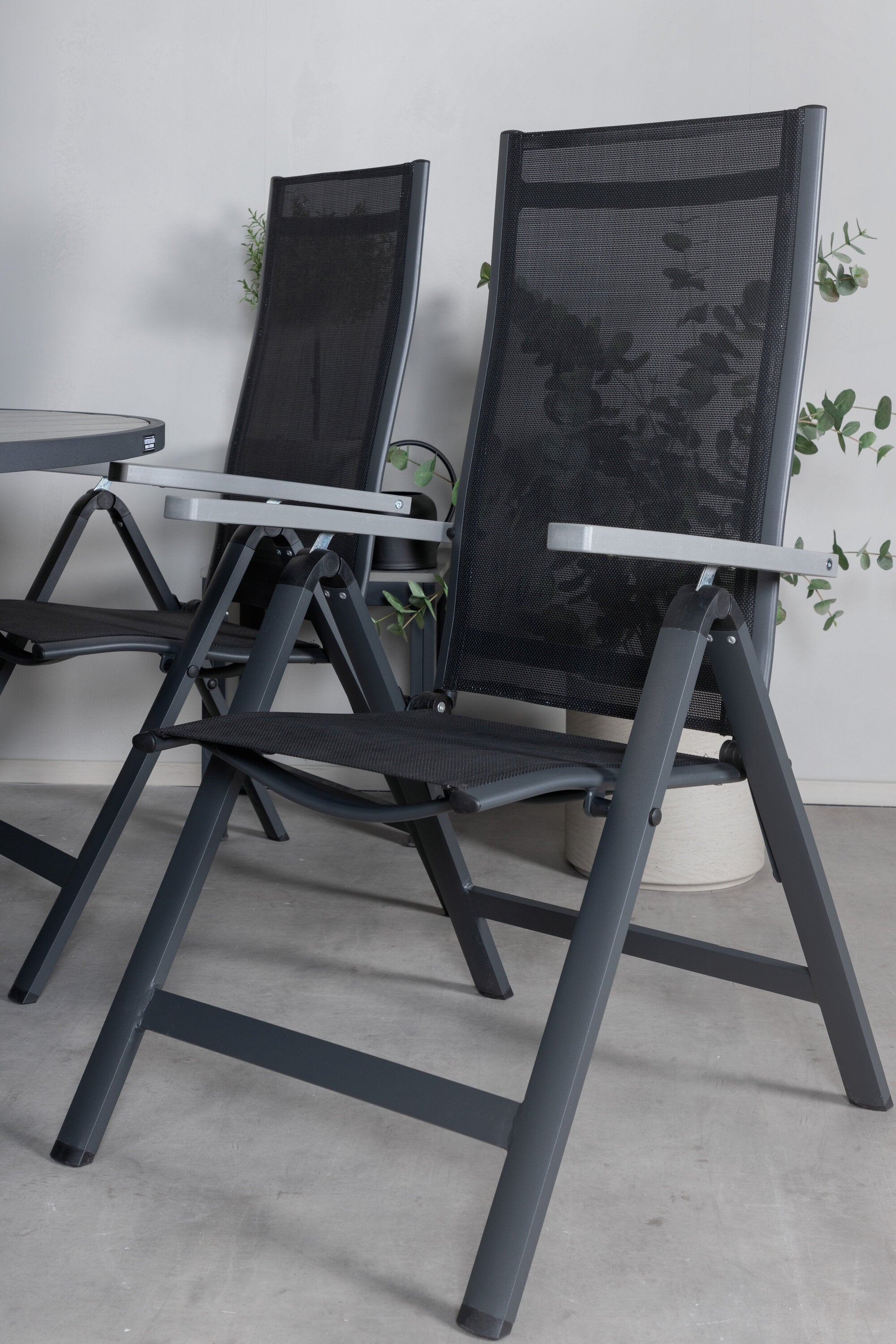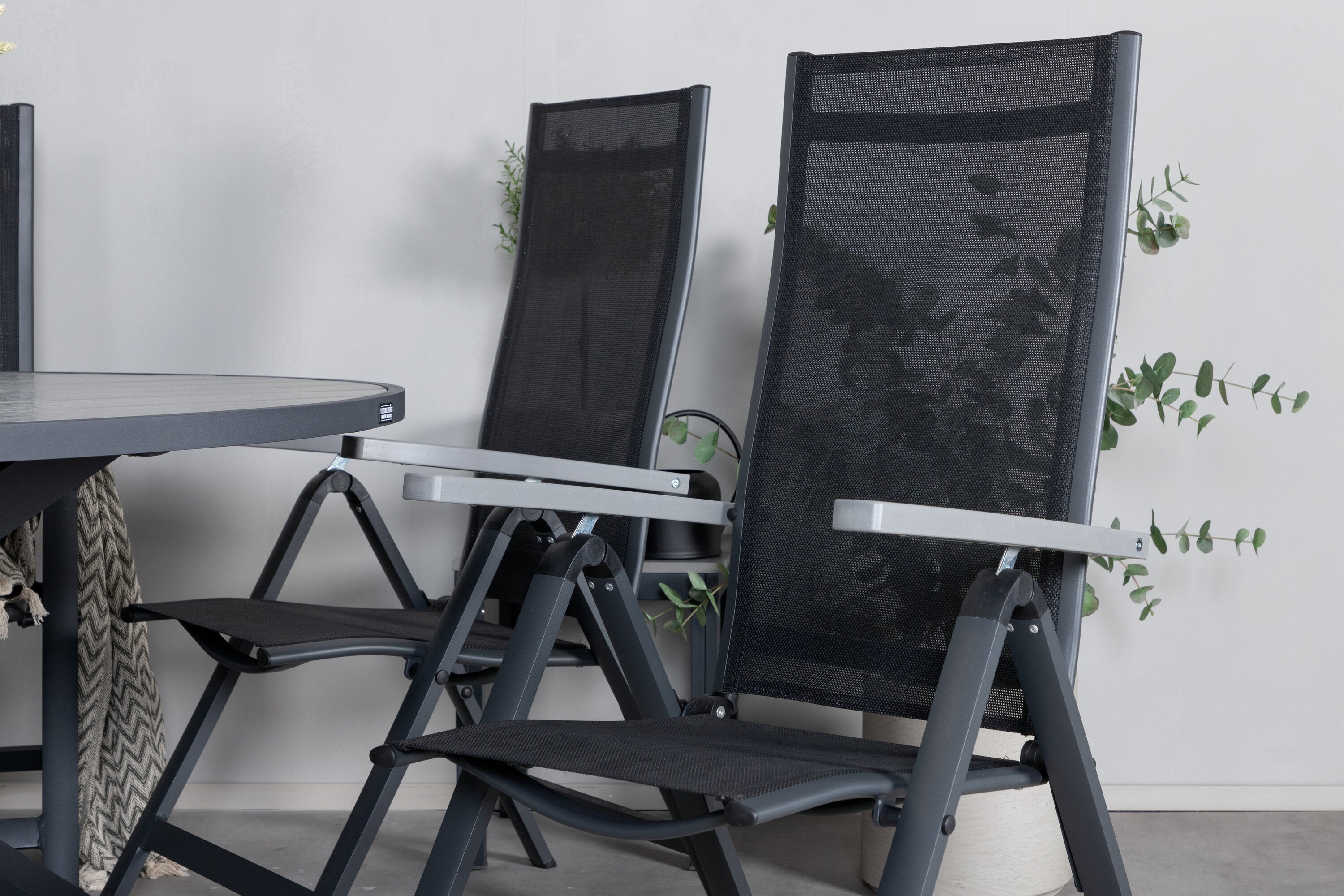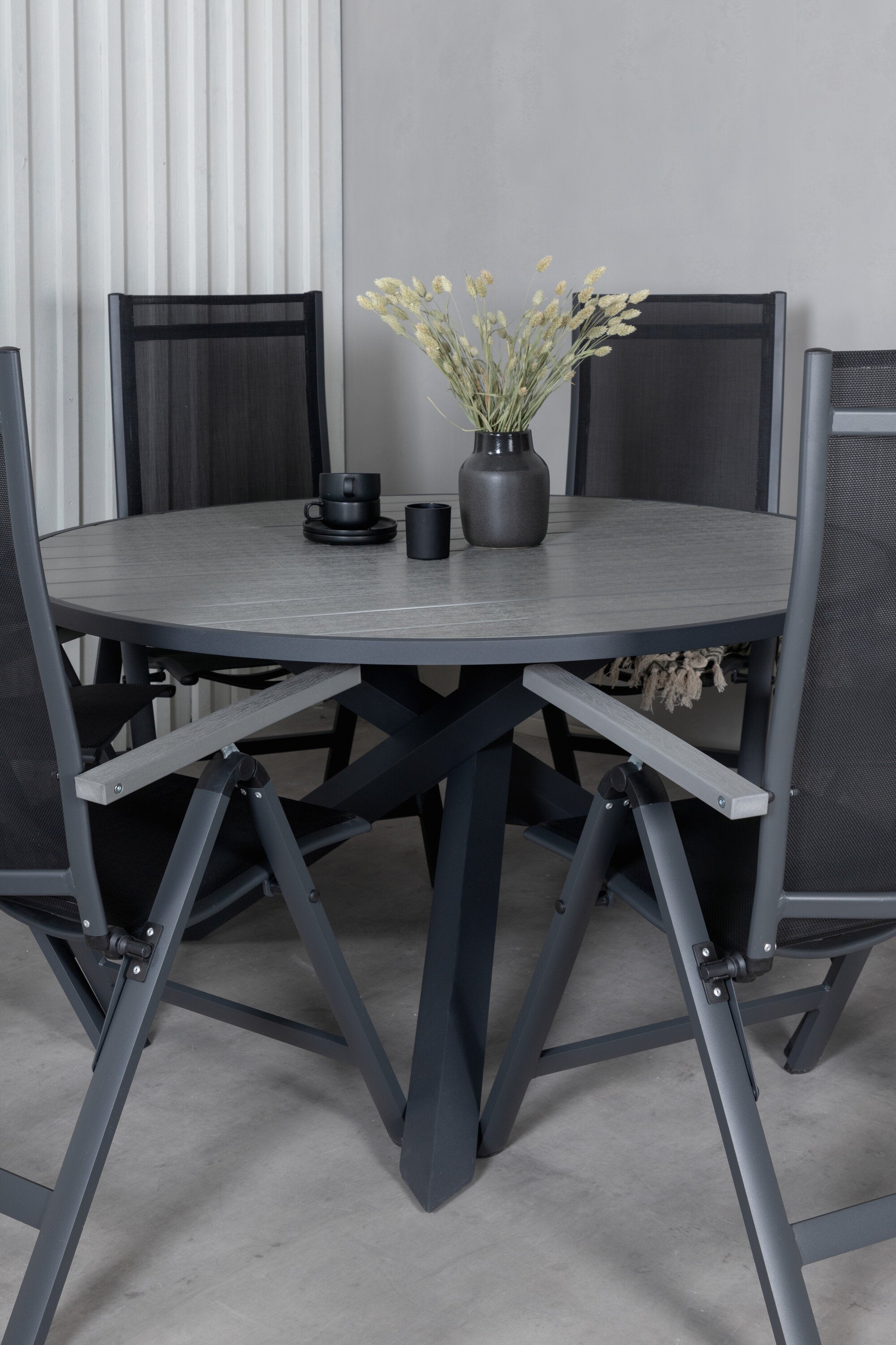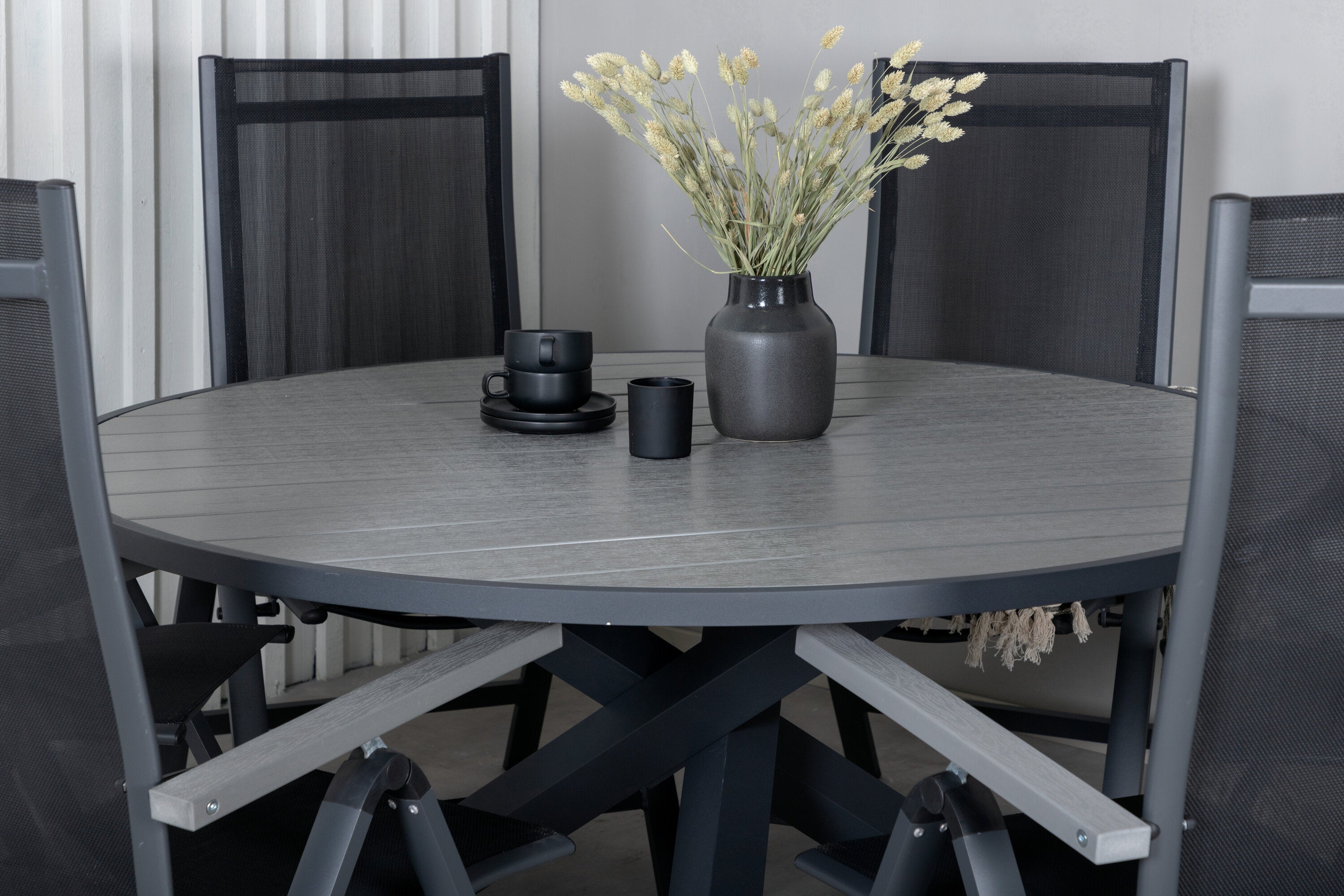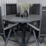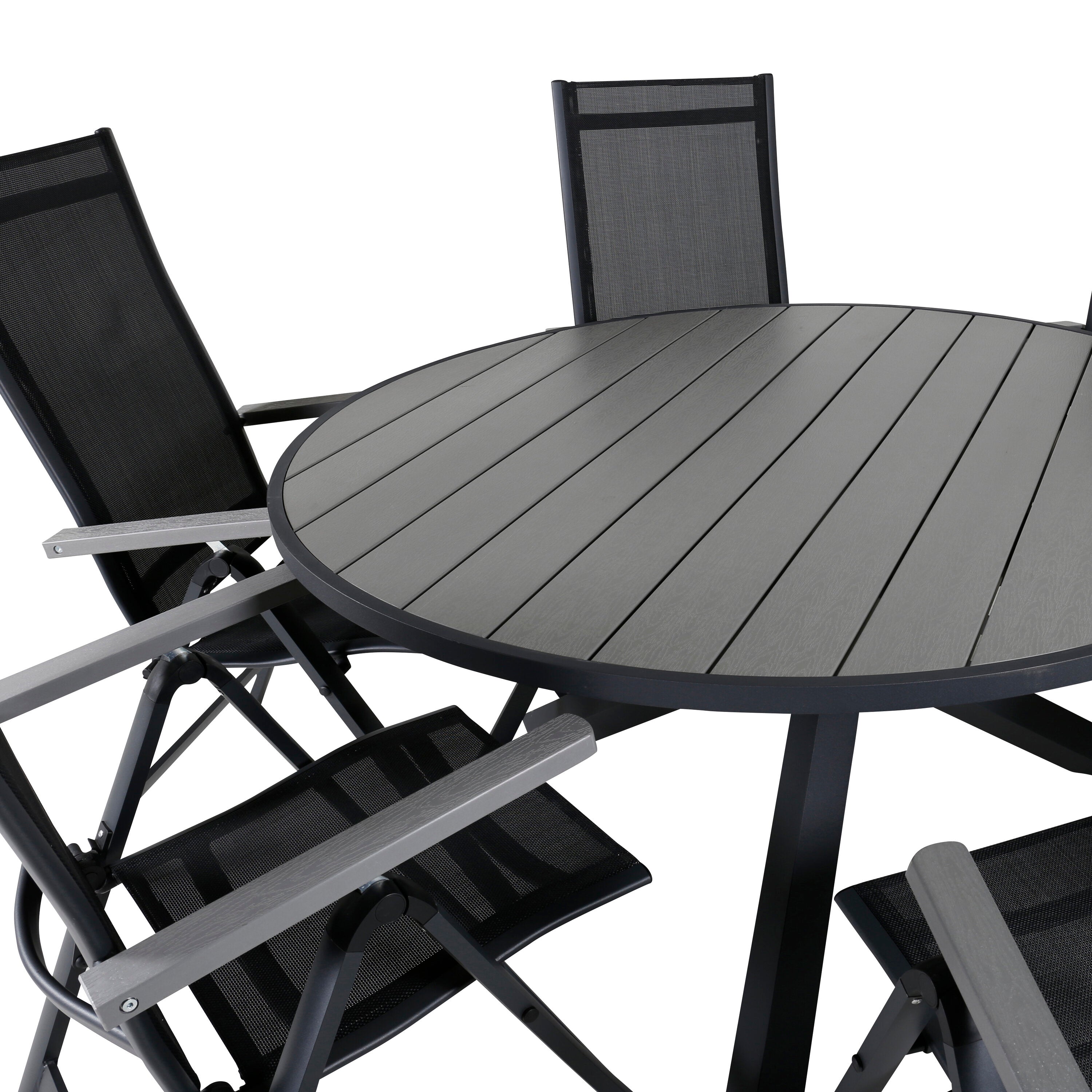 Vytvořte společenskou a příjemnou atmosféru na terase s krásnou kulatou skupinou jídla! Jídelní stůl Parma je kombinován se skládacími židlemi ze série Albany. Nastavte si zádovou opěrku pro optimální pohodlí – zde budete vy i vaši hosté pohodlně sedět několik hodin!