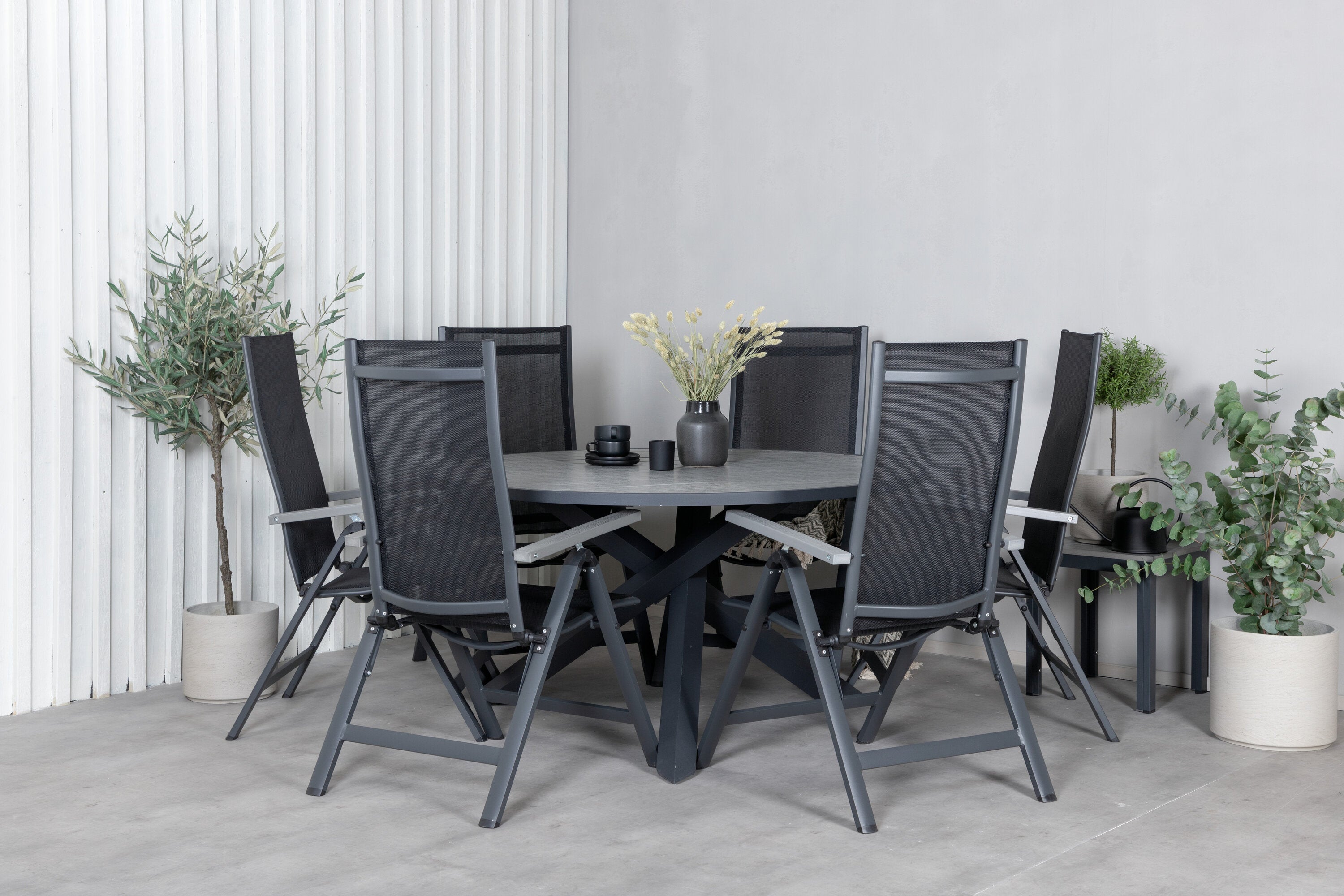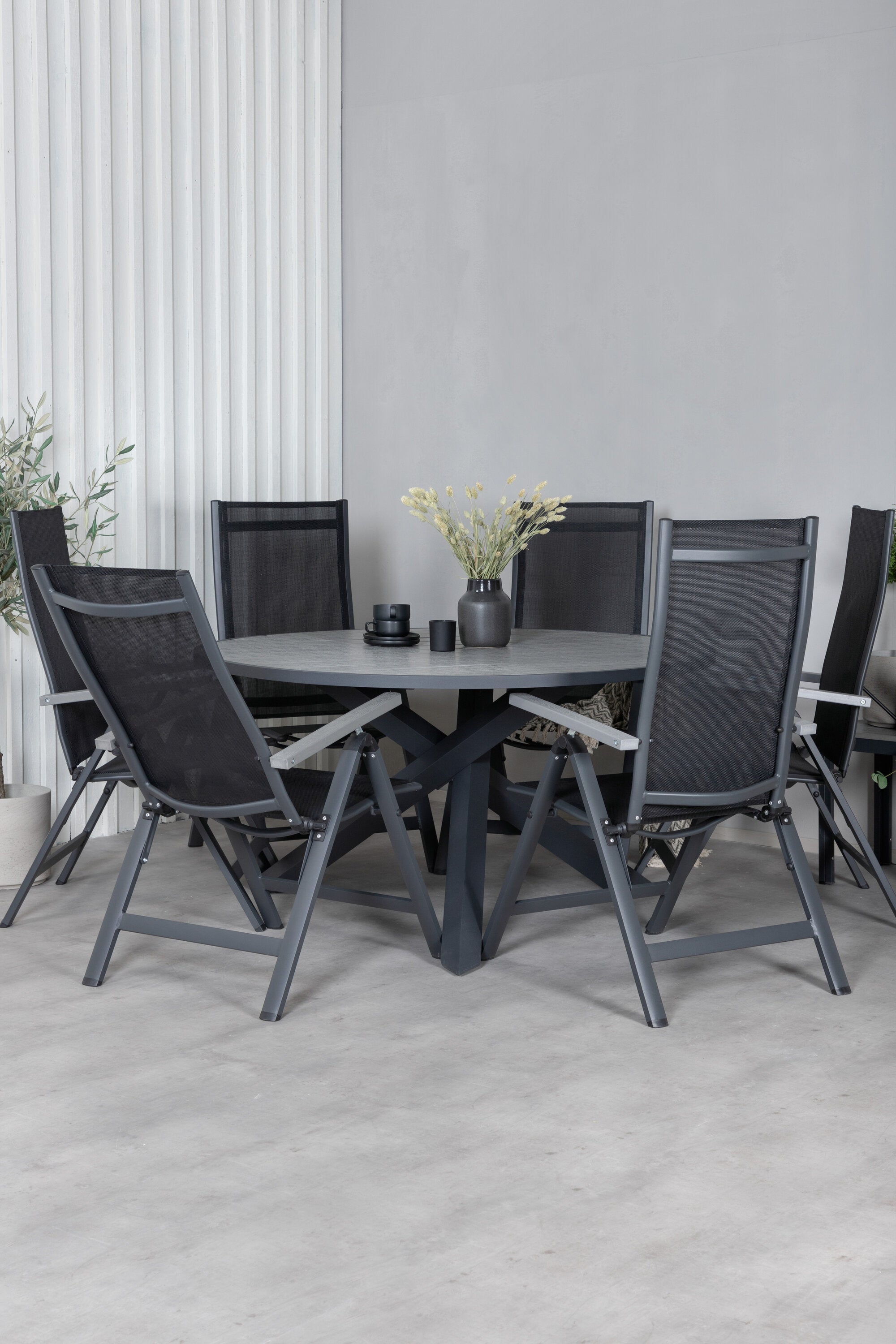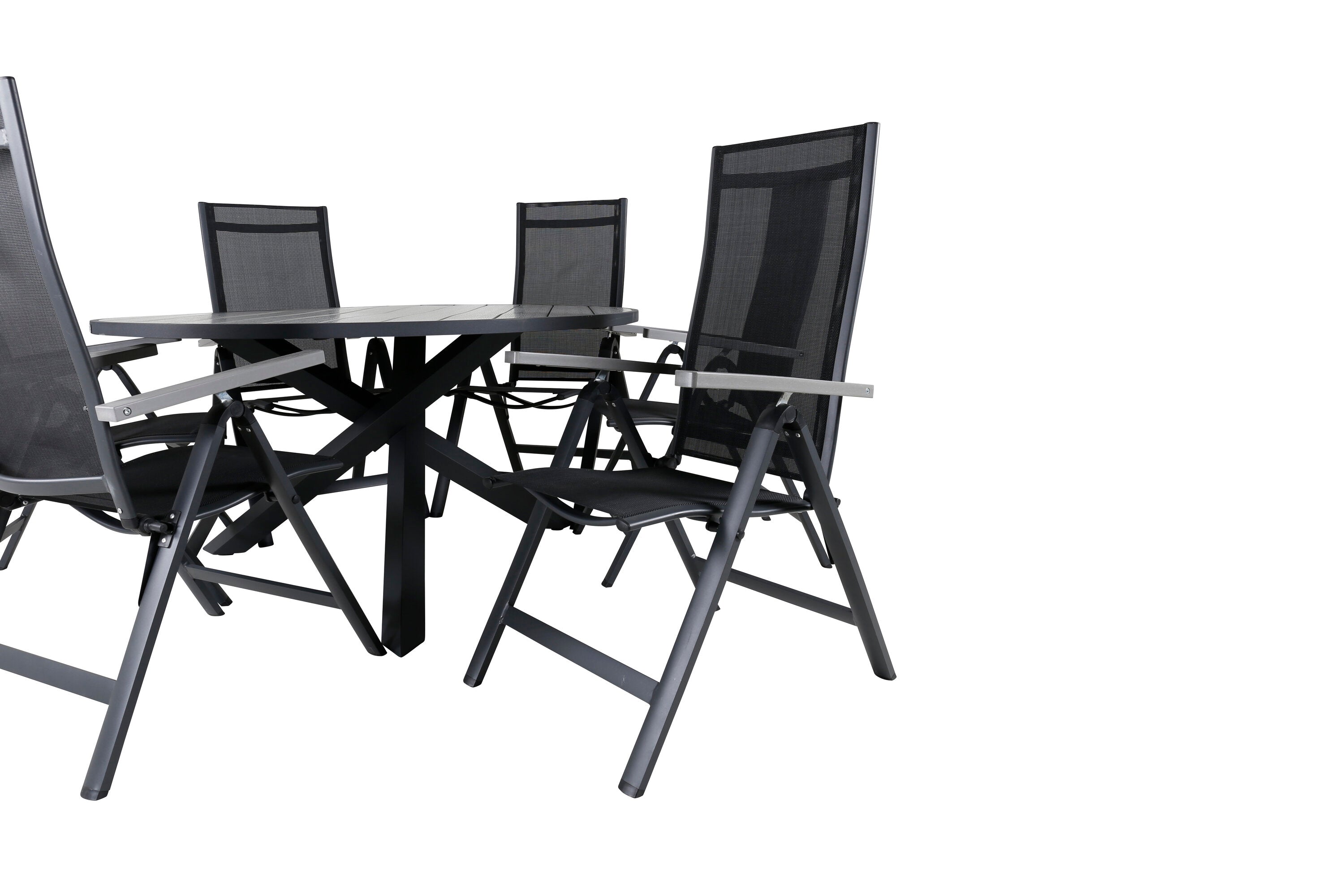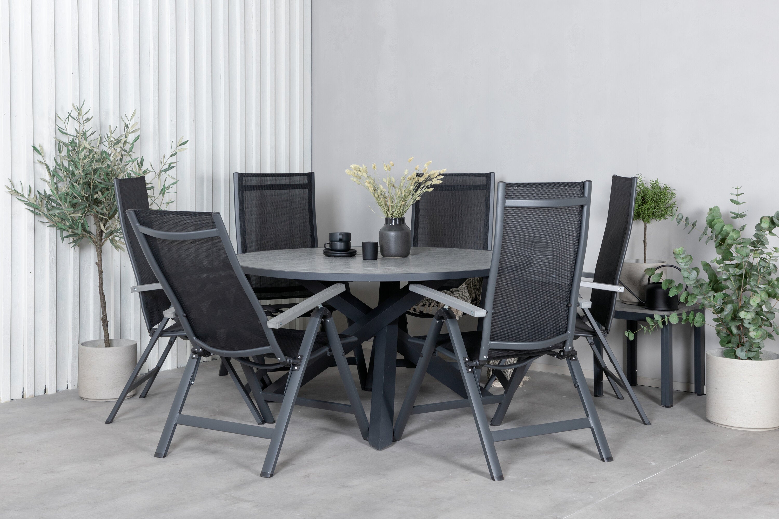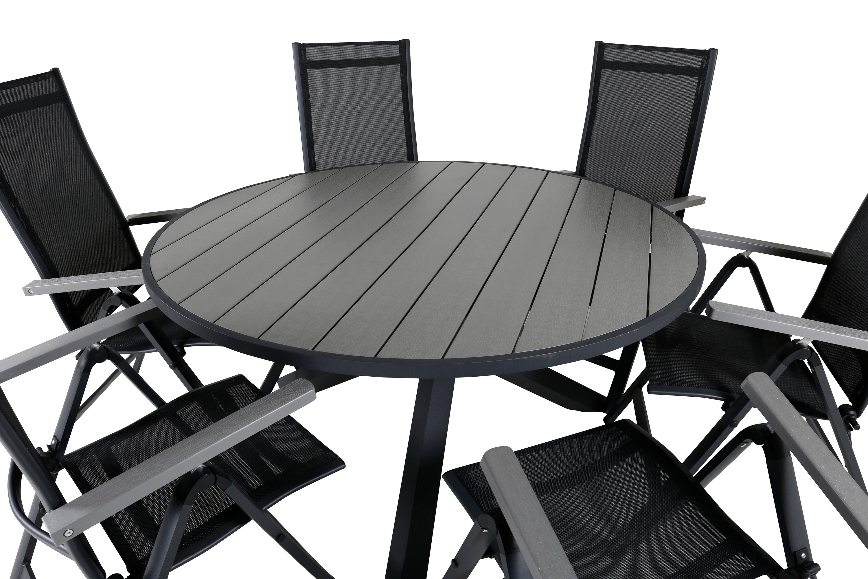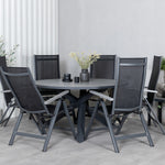 Vytvořte společenskou a příjemnou atmosféru na terase s krásnou kulatou skupinou jídla! Jídelní stůl Parma je kombinován se skládacími židlemi ze série Albany. Nastavte si zádovou opěrku pro optimální pohodlí – zde budete vy i vaši hosté pohodlně sedět několik hodin!