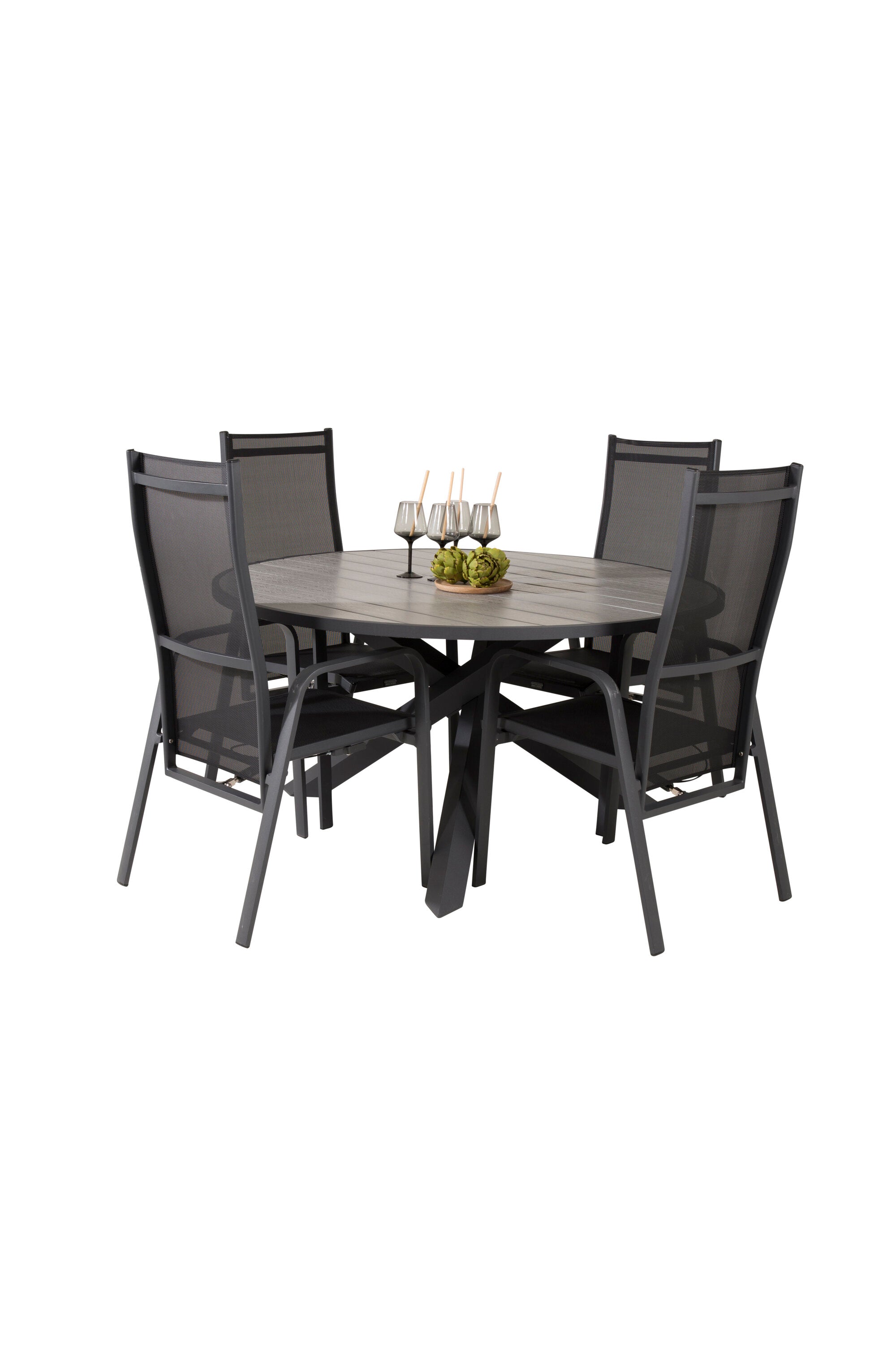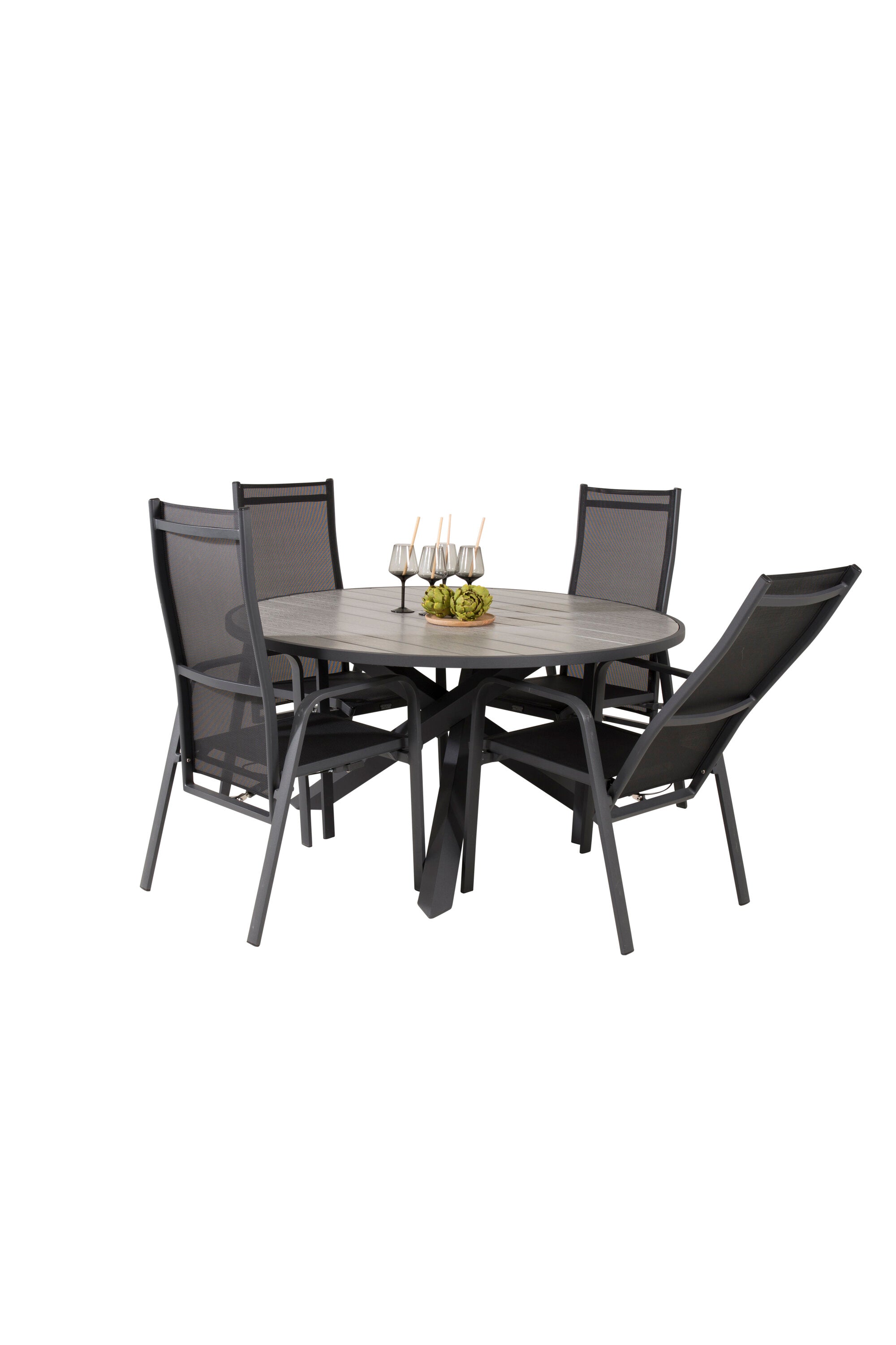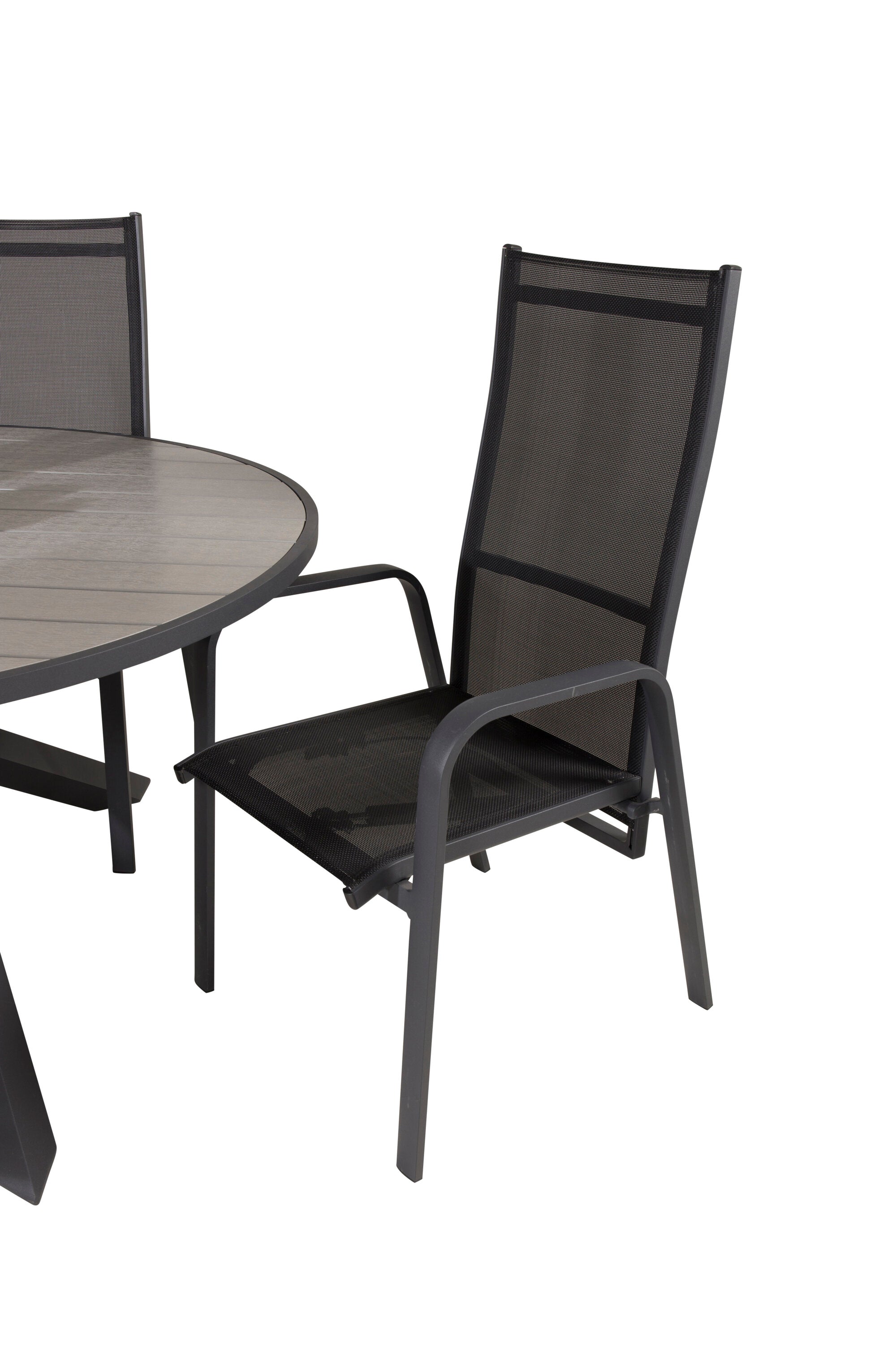Parma - Stůl ø 140 - Black Alu / Grey Aintwood - Copacabana Recliner Chair - Black/Black 4