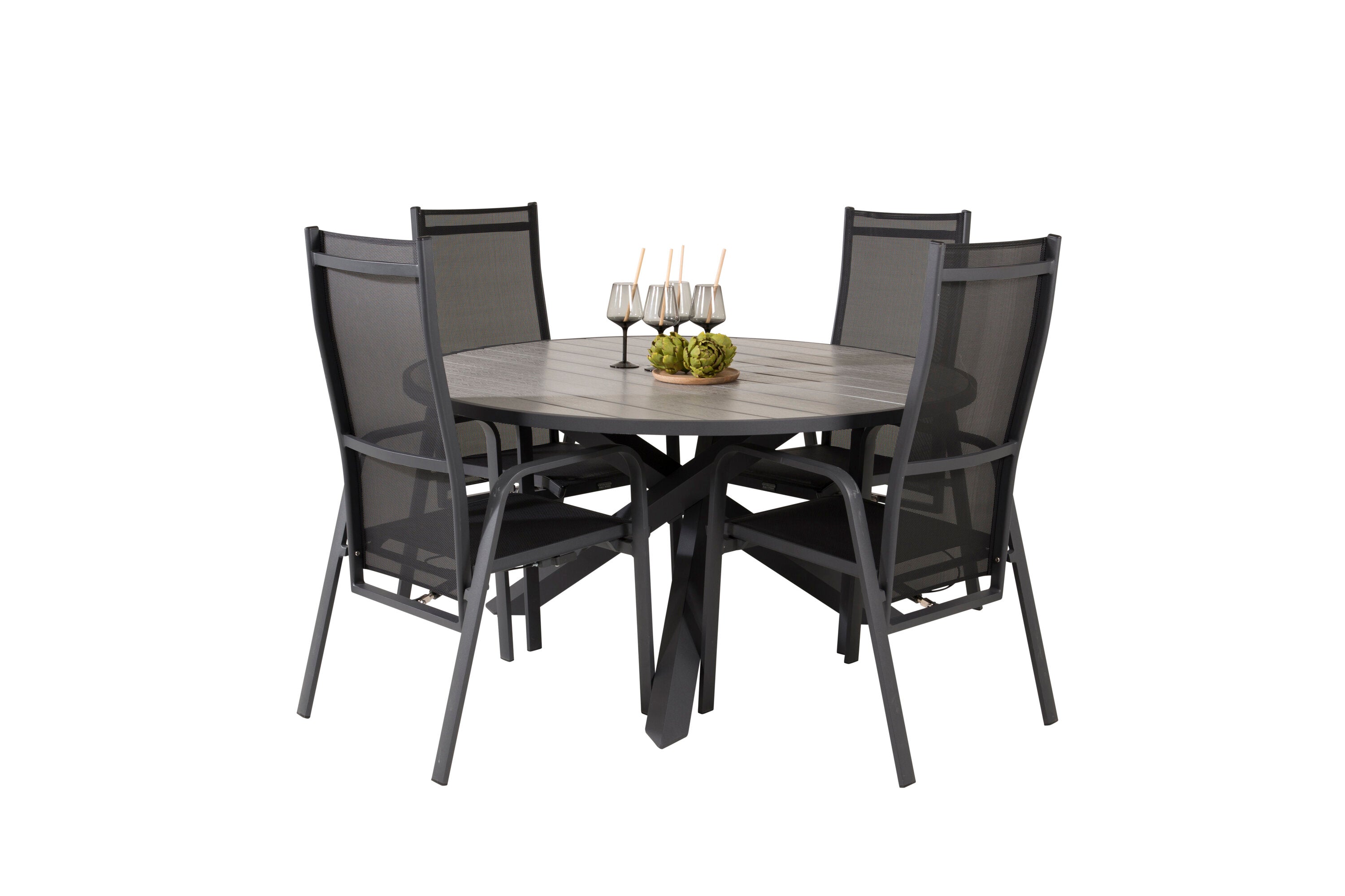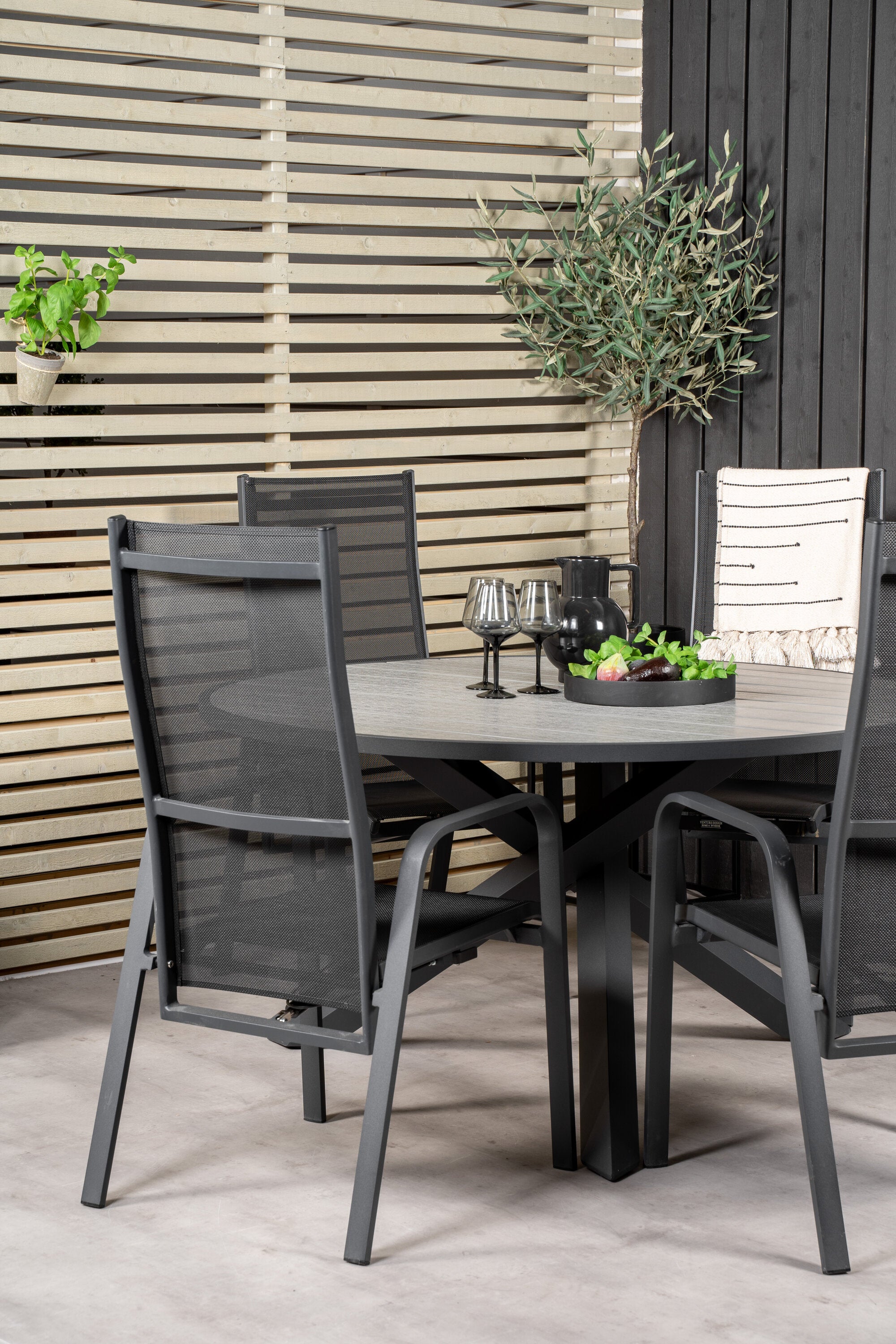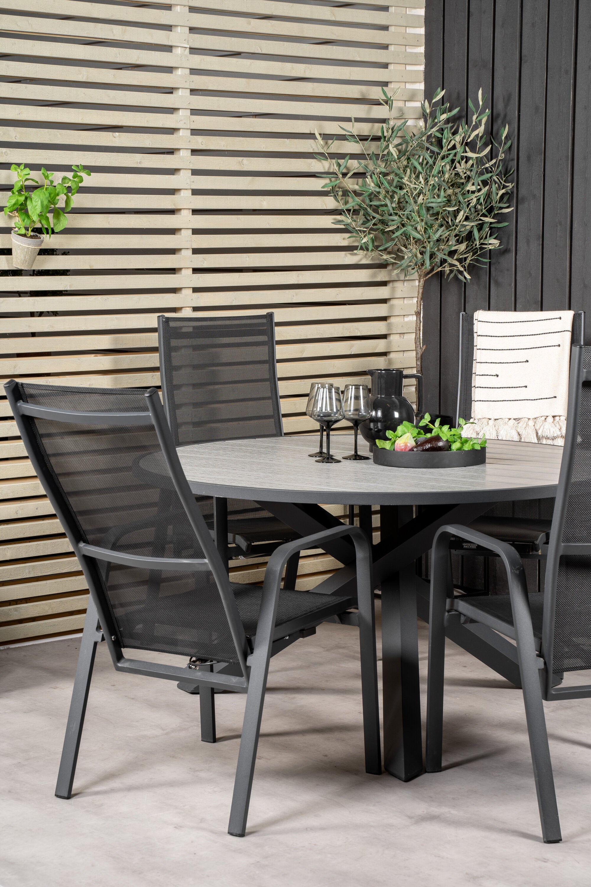 Parma - Stůl ø 140 - Black Alu / Grey Aintwood - Copacabana Recliner Chair - Black/Black 4