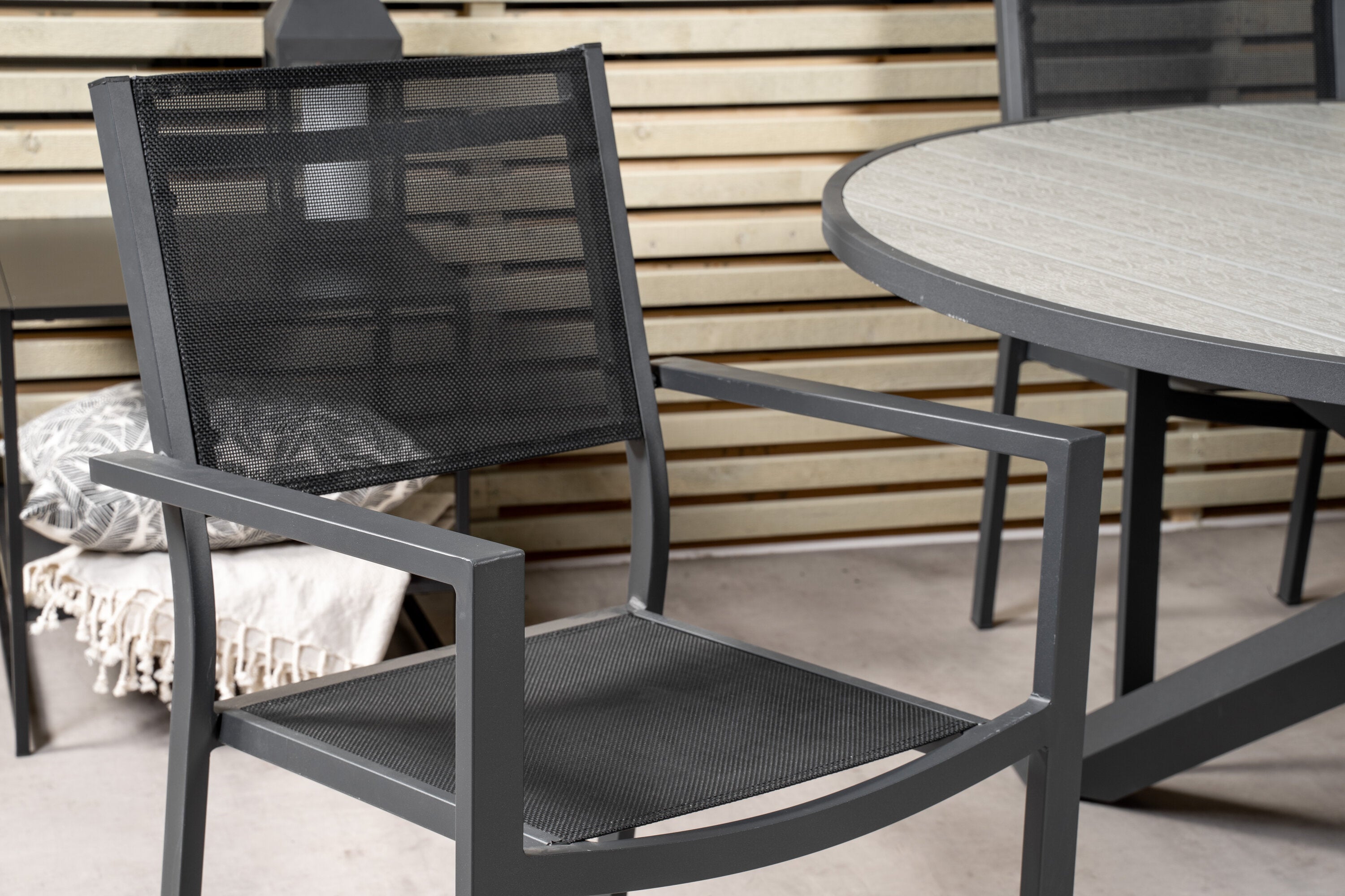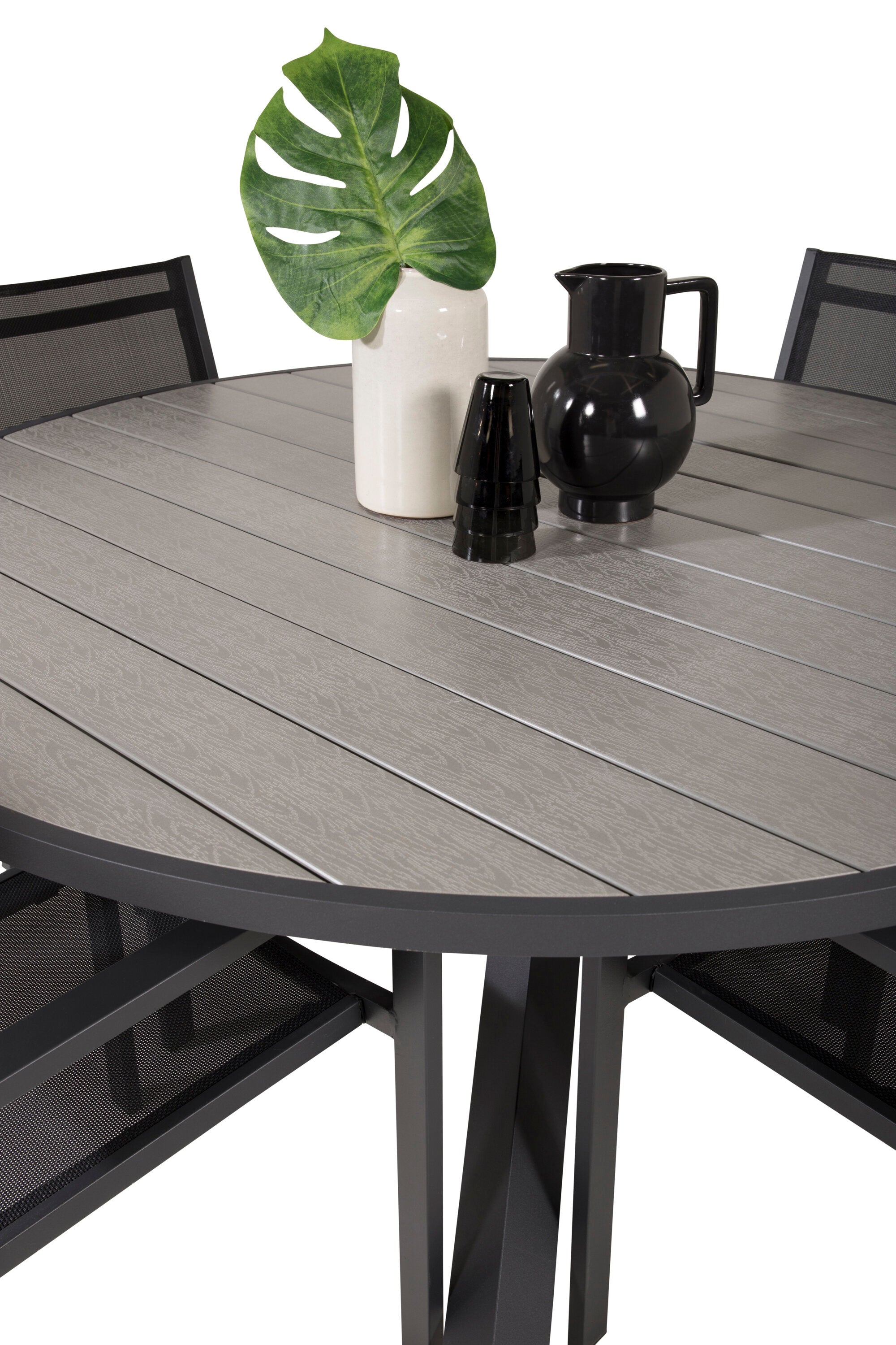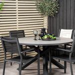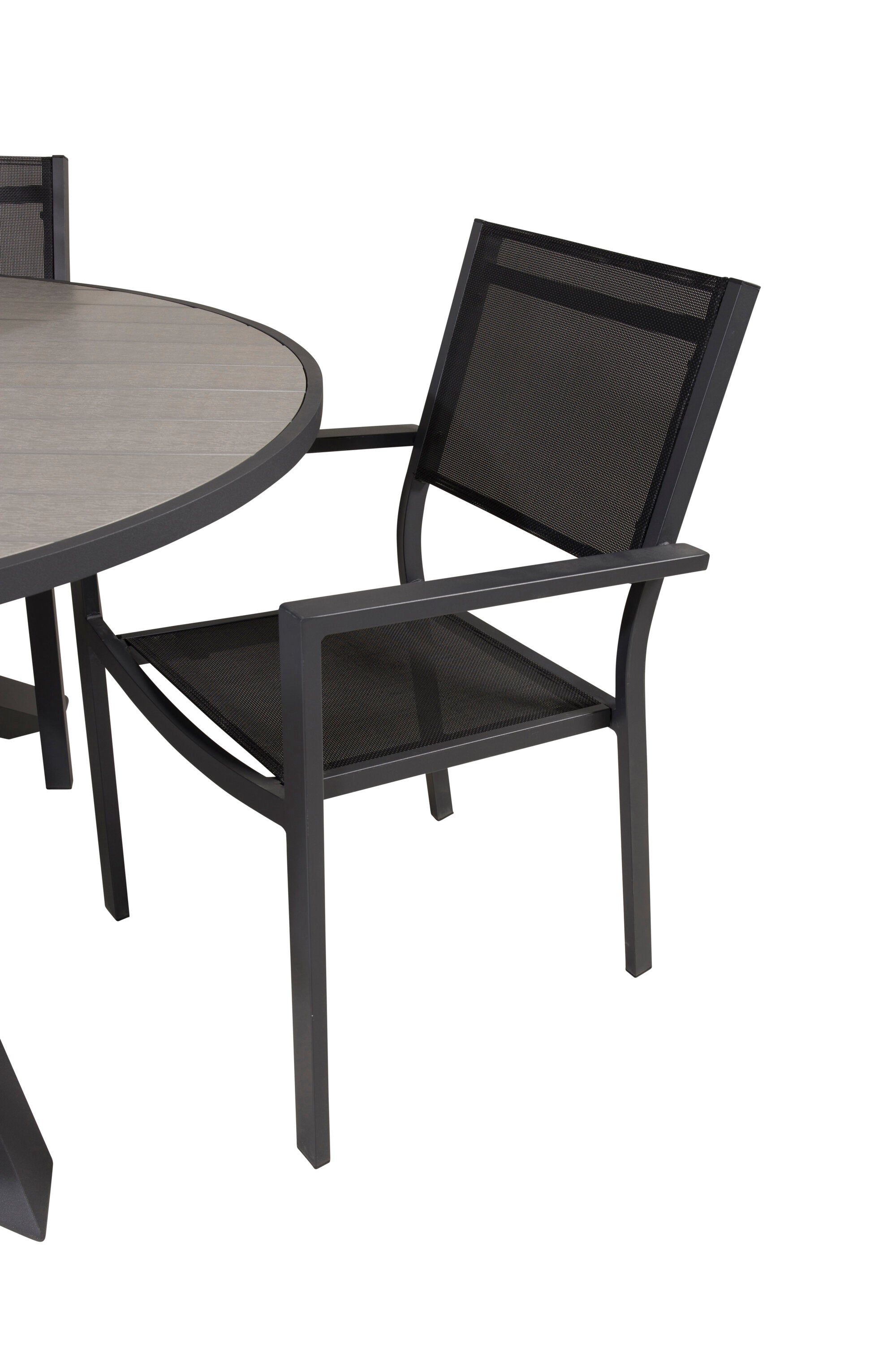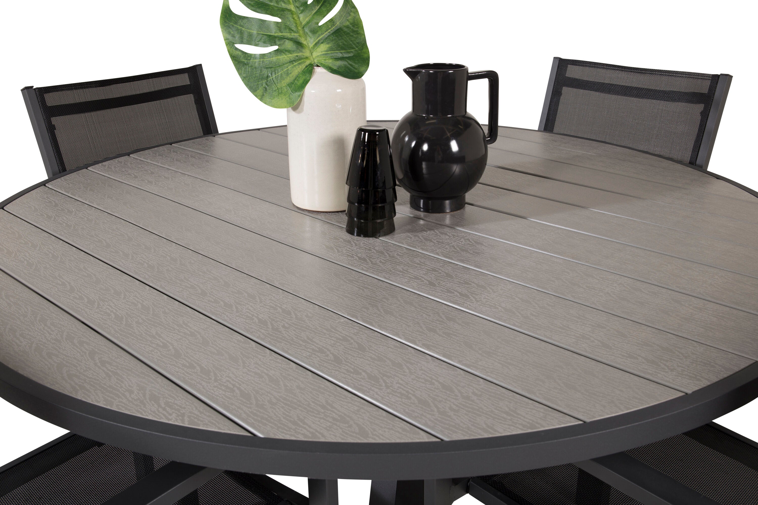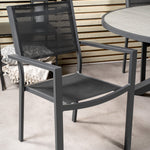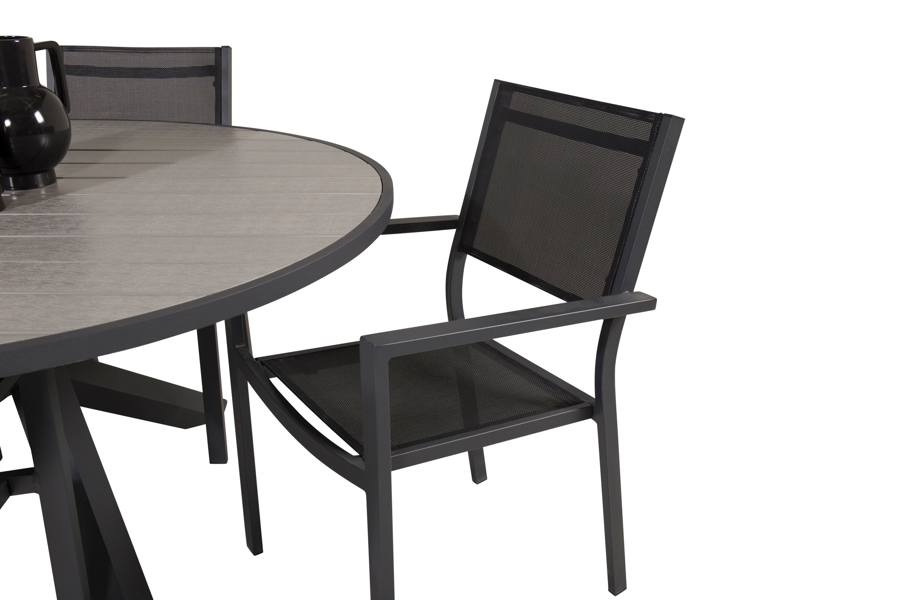 Parma - Stůl ø 140 - Černá Alu / Šedá Aintwood+Copacabana křeslo (stohovatelné) - Černá Alu / Černá Textilene_4