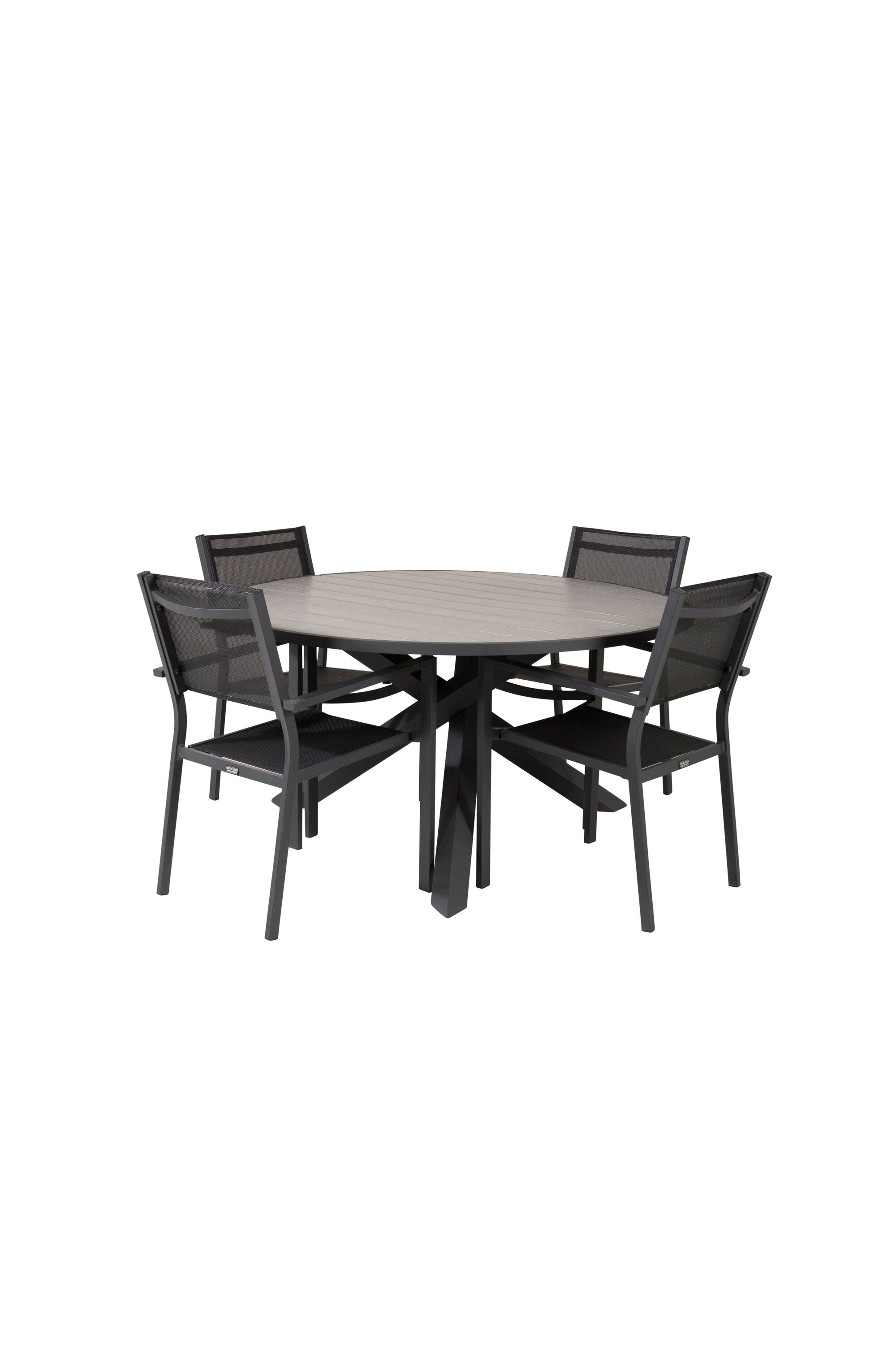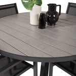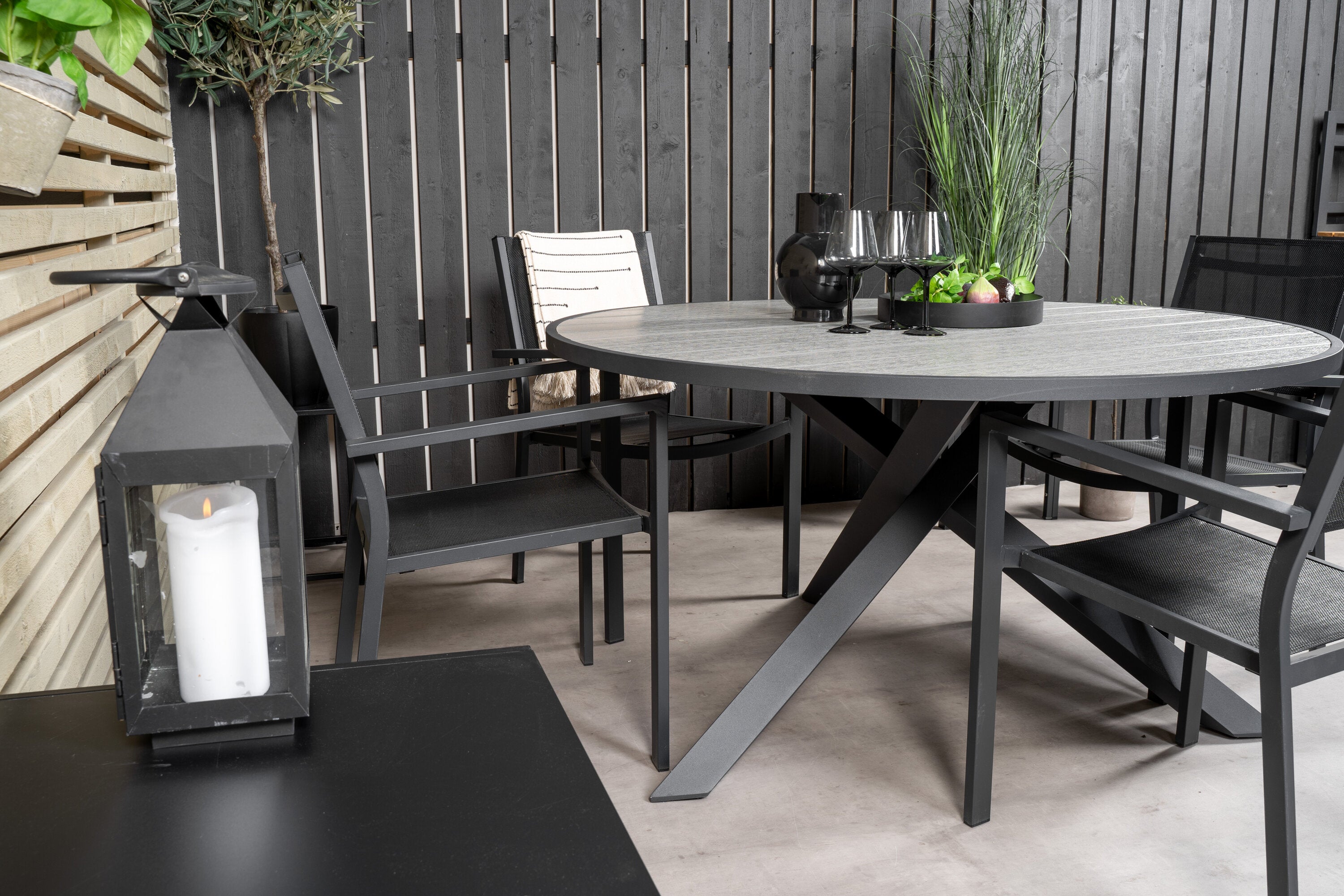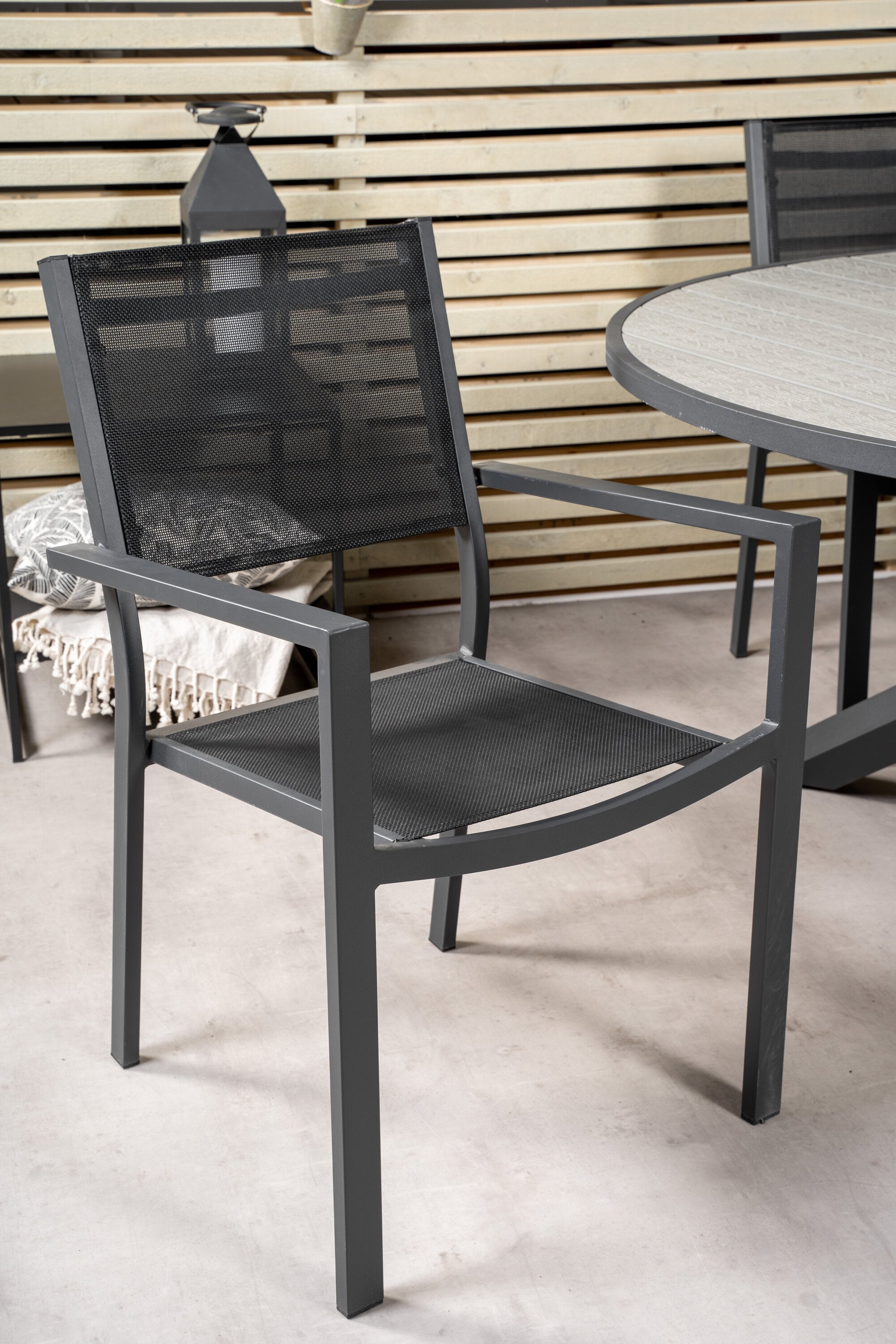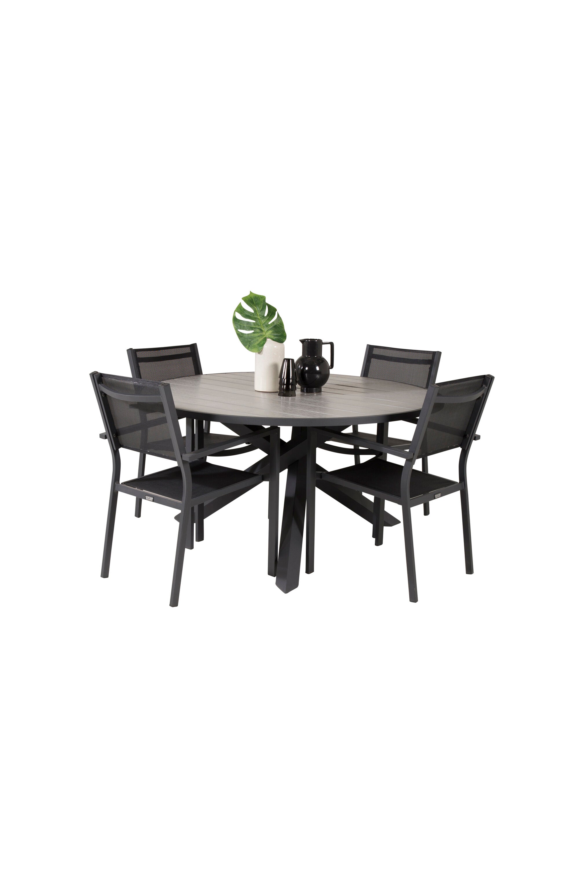 Parma - Stůl ø 140 - Černá Alu / Šedá Aintwood+Copacabana křeslo (stohovatelné) - Černá Alu / Černá Textilene_4