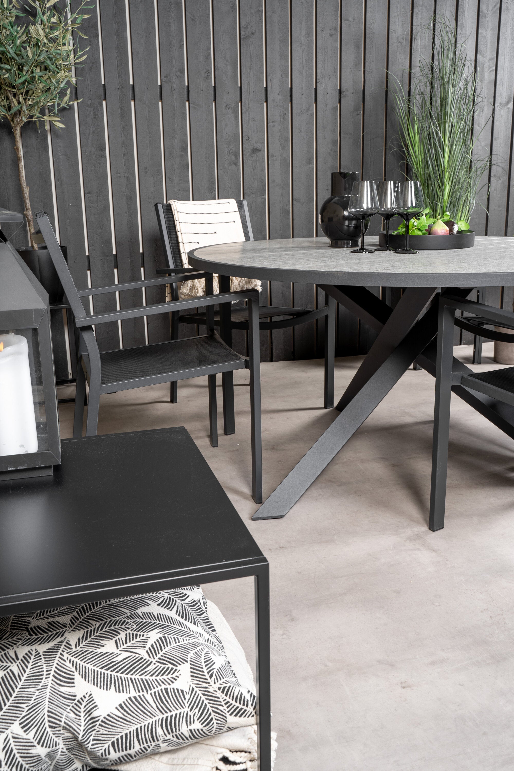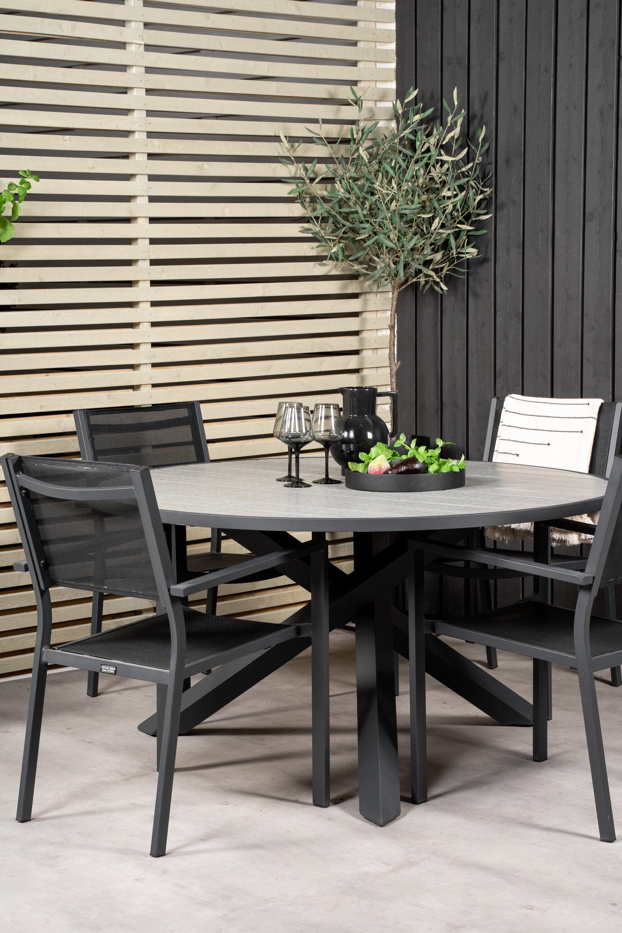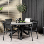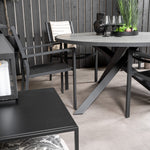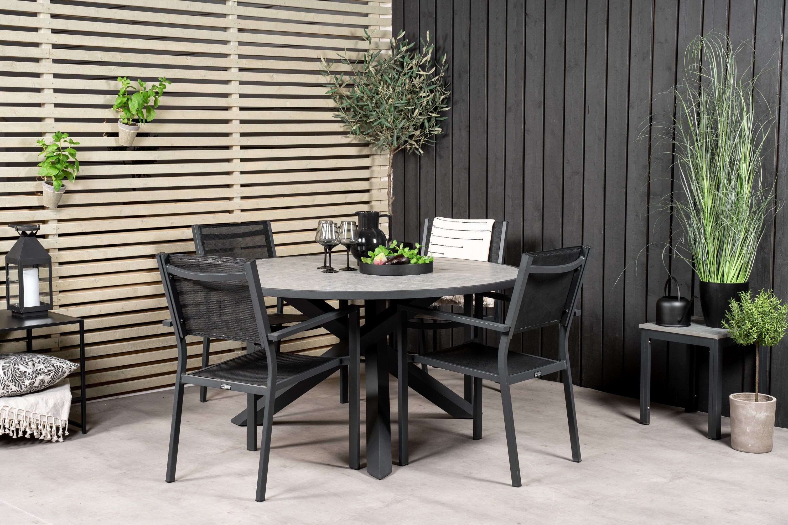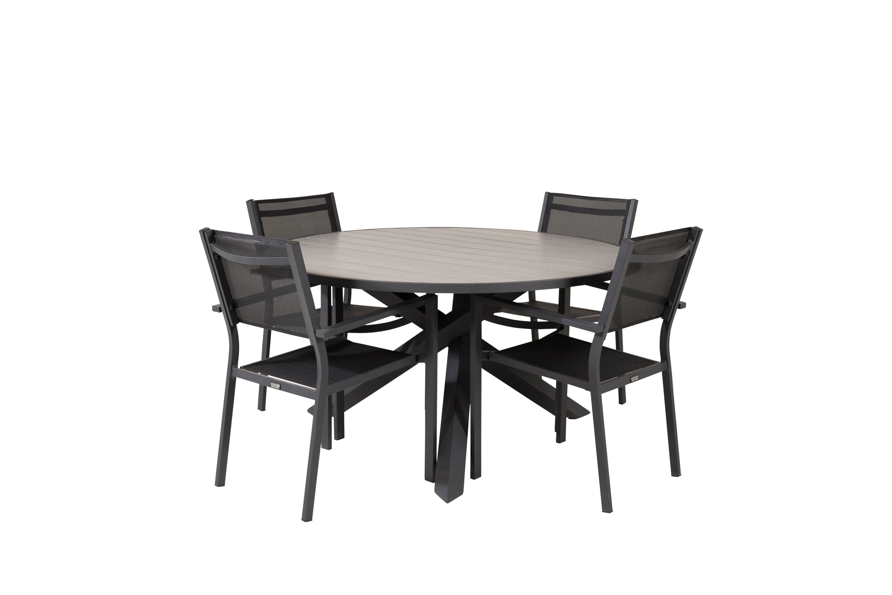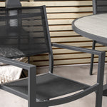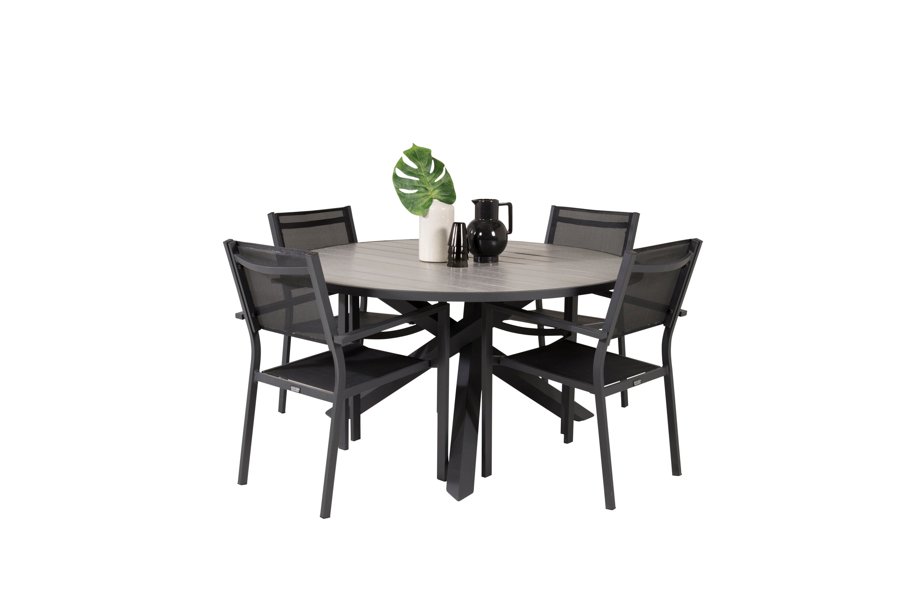 Parma - Stůl ø 140 - Černá Alu / Šedá Aintwood+Copacabana křeslo (stohovatelné) - Černá Alu / Černá Textilene_4