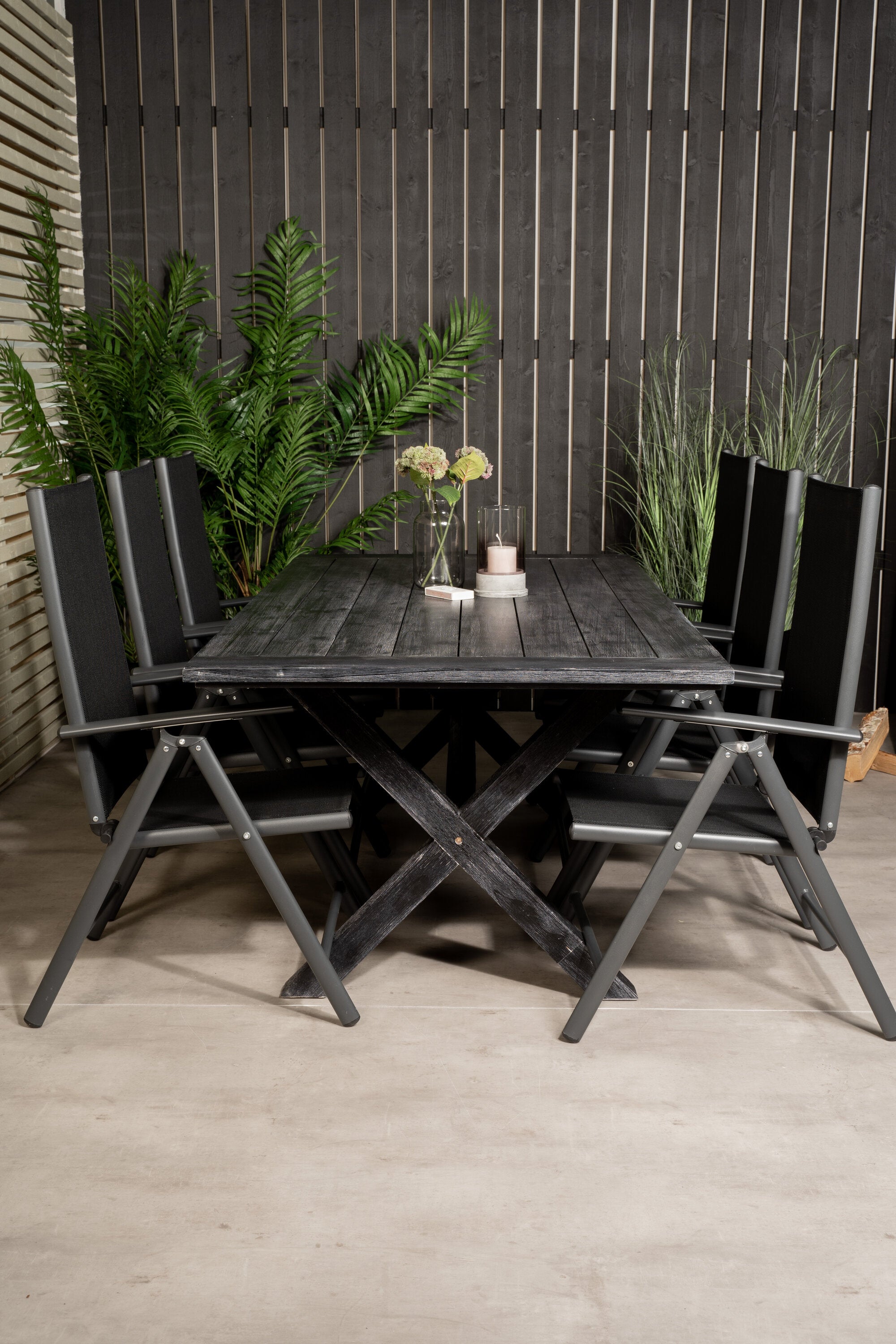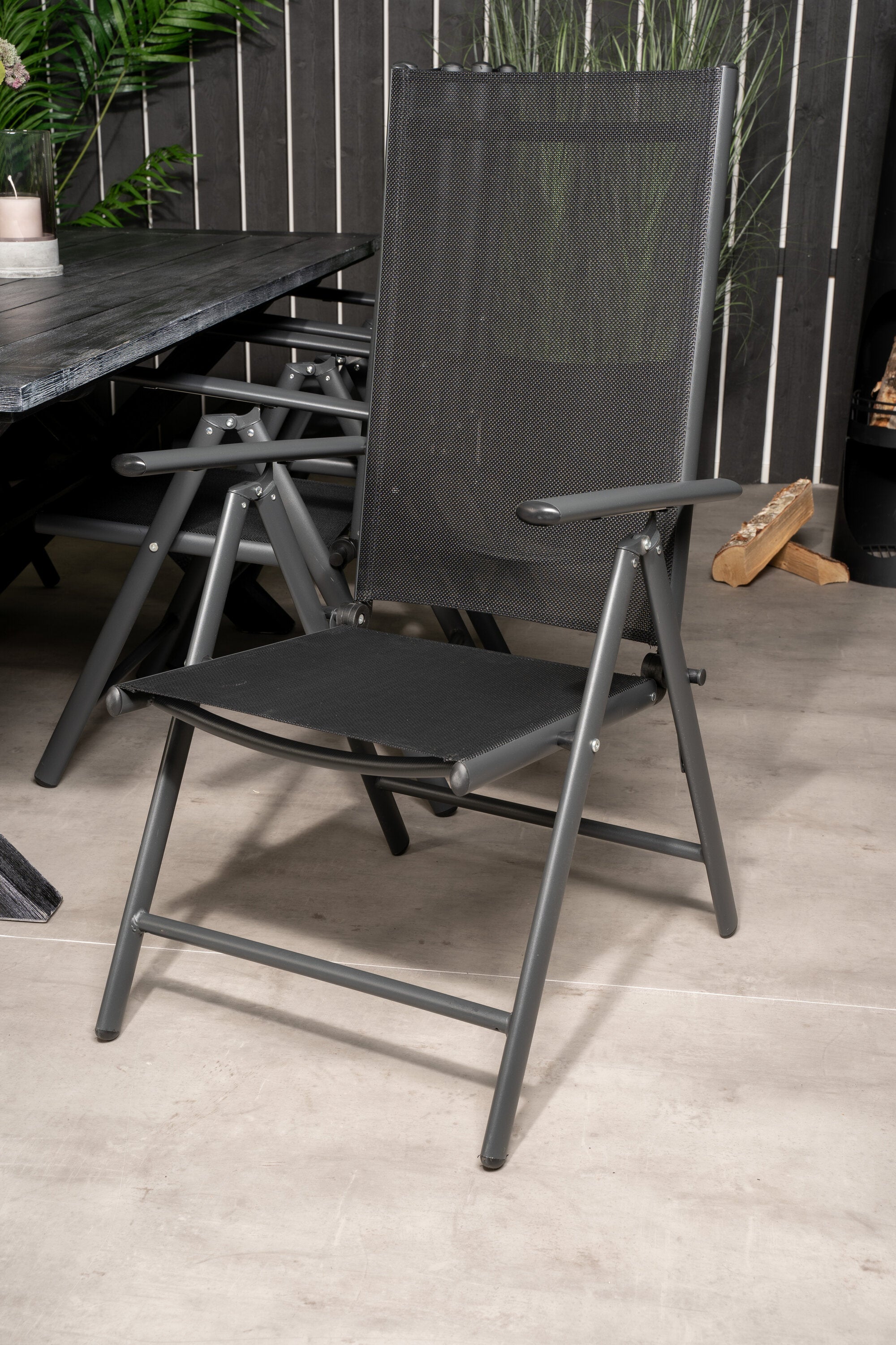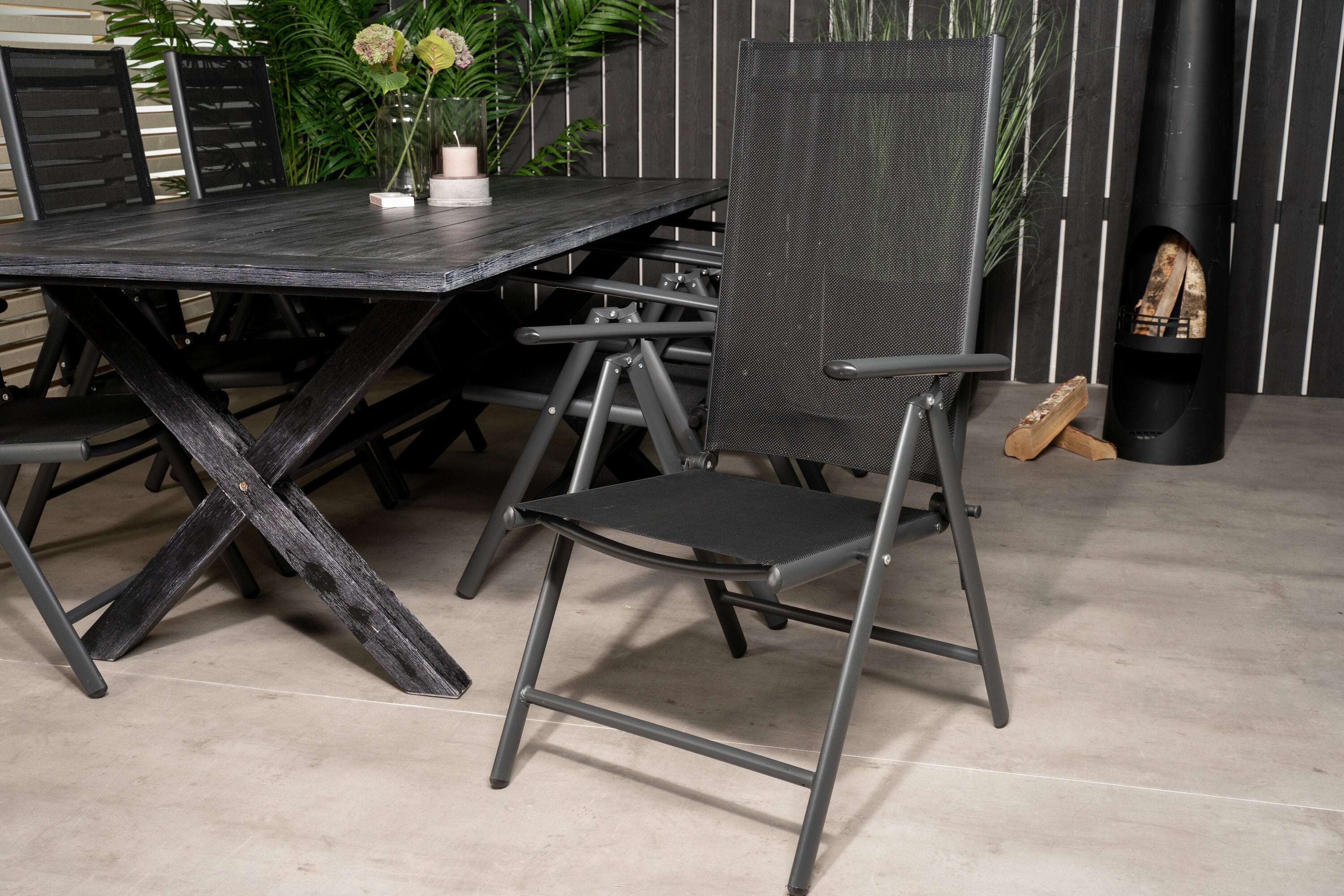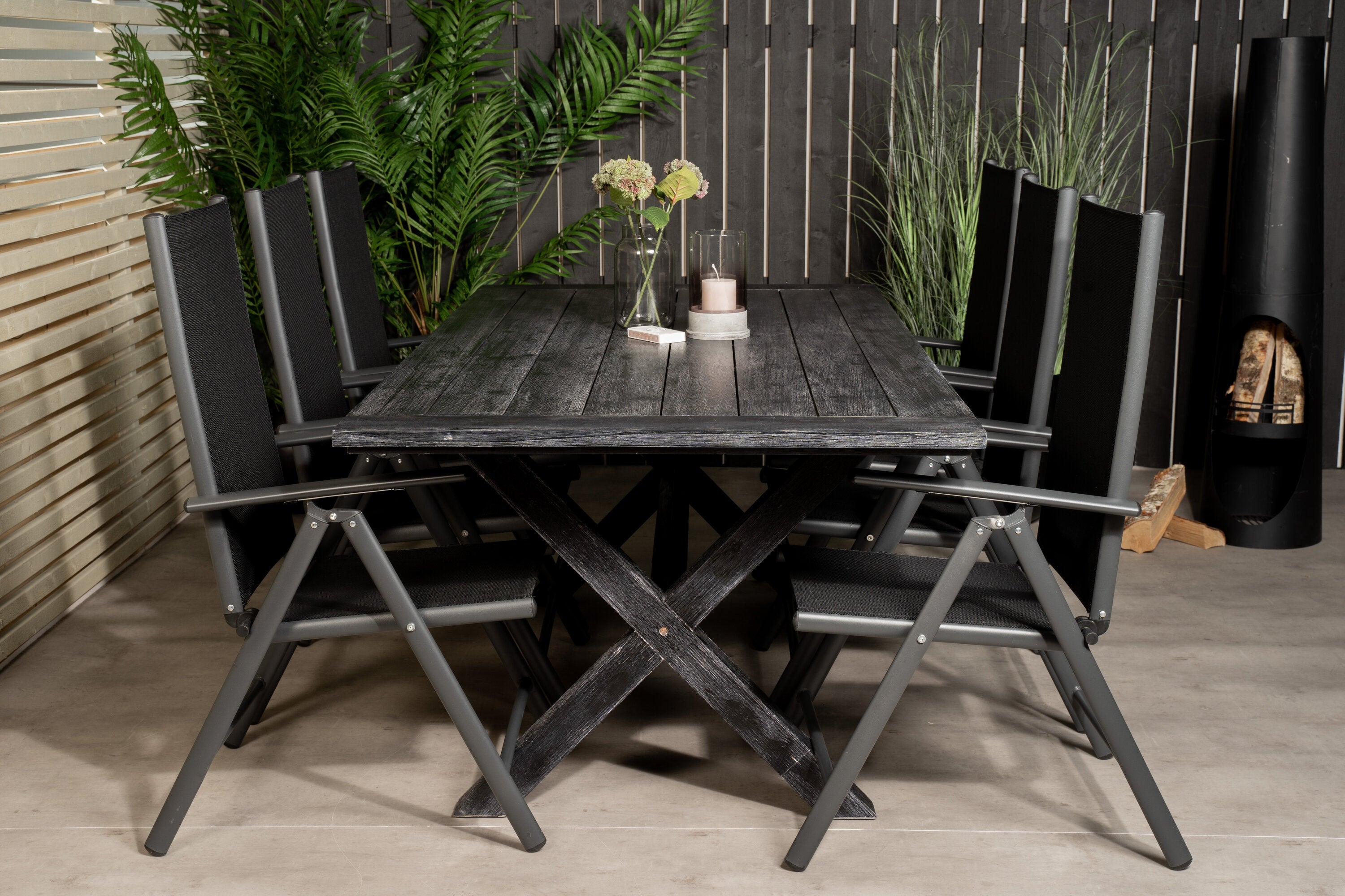 Rives Jídelní stůl 200*100cm - Černá Acacia+Break 5:pos Židle - Black alu / Black Textilene_6