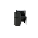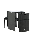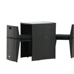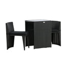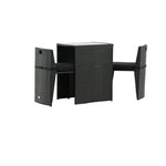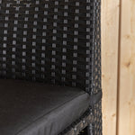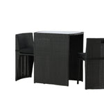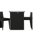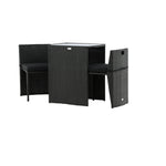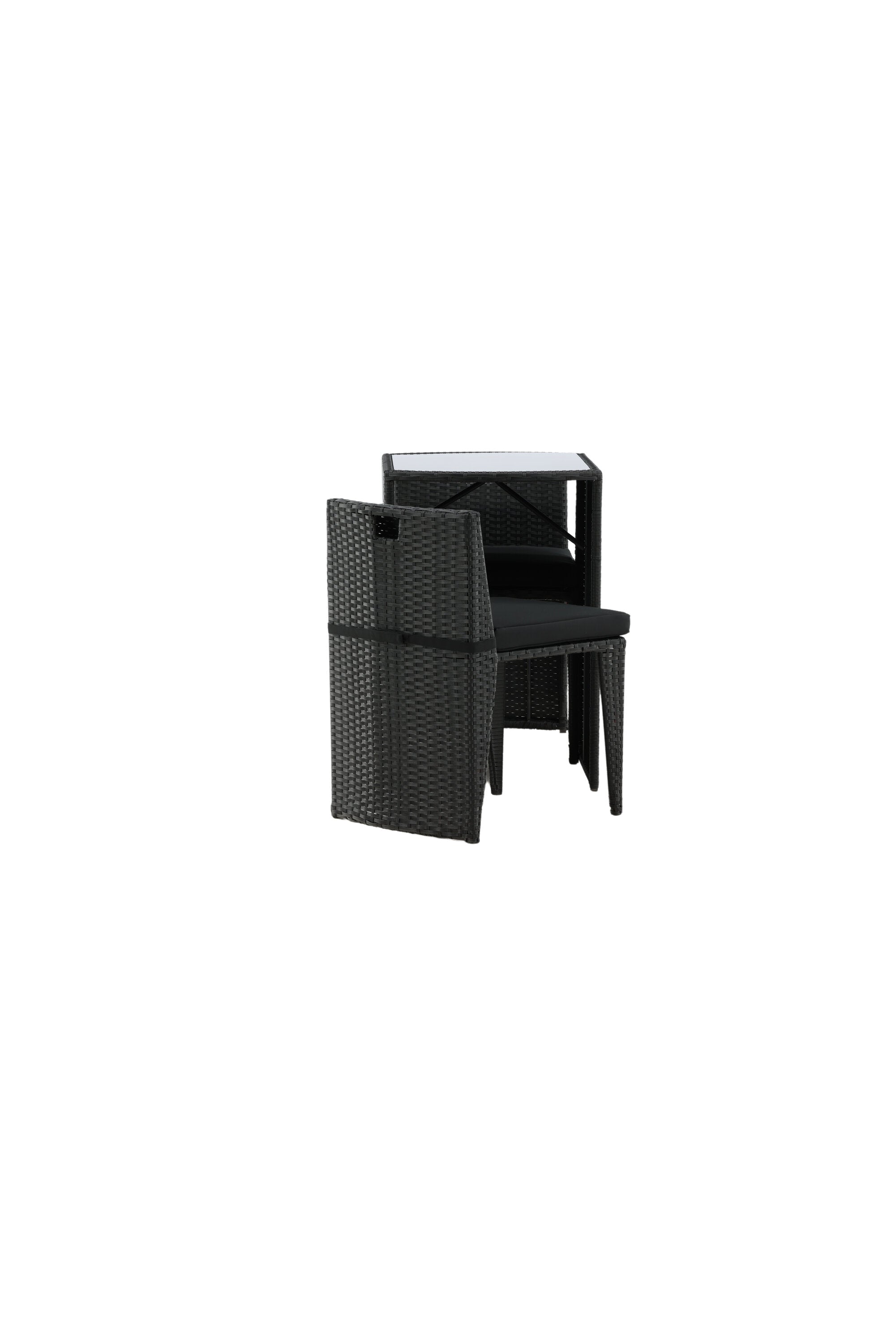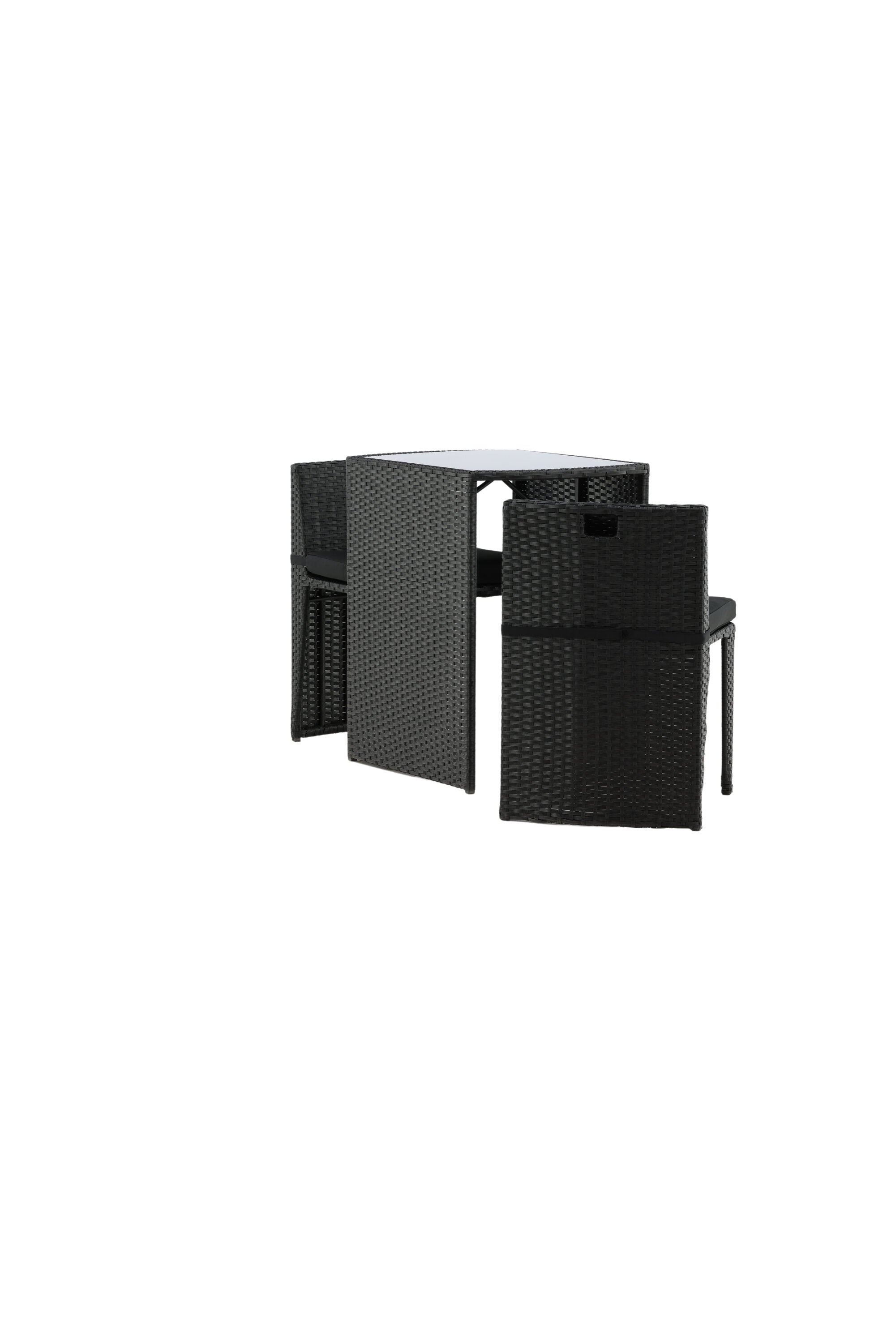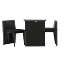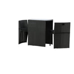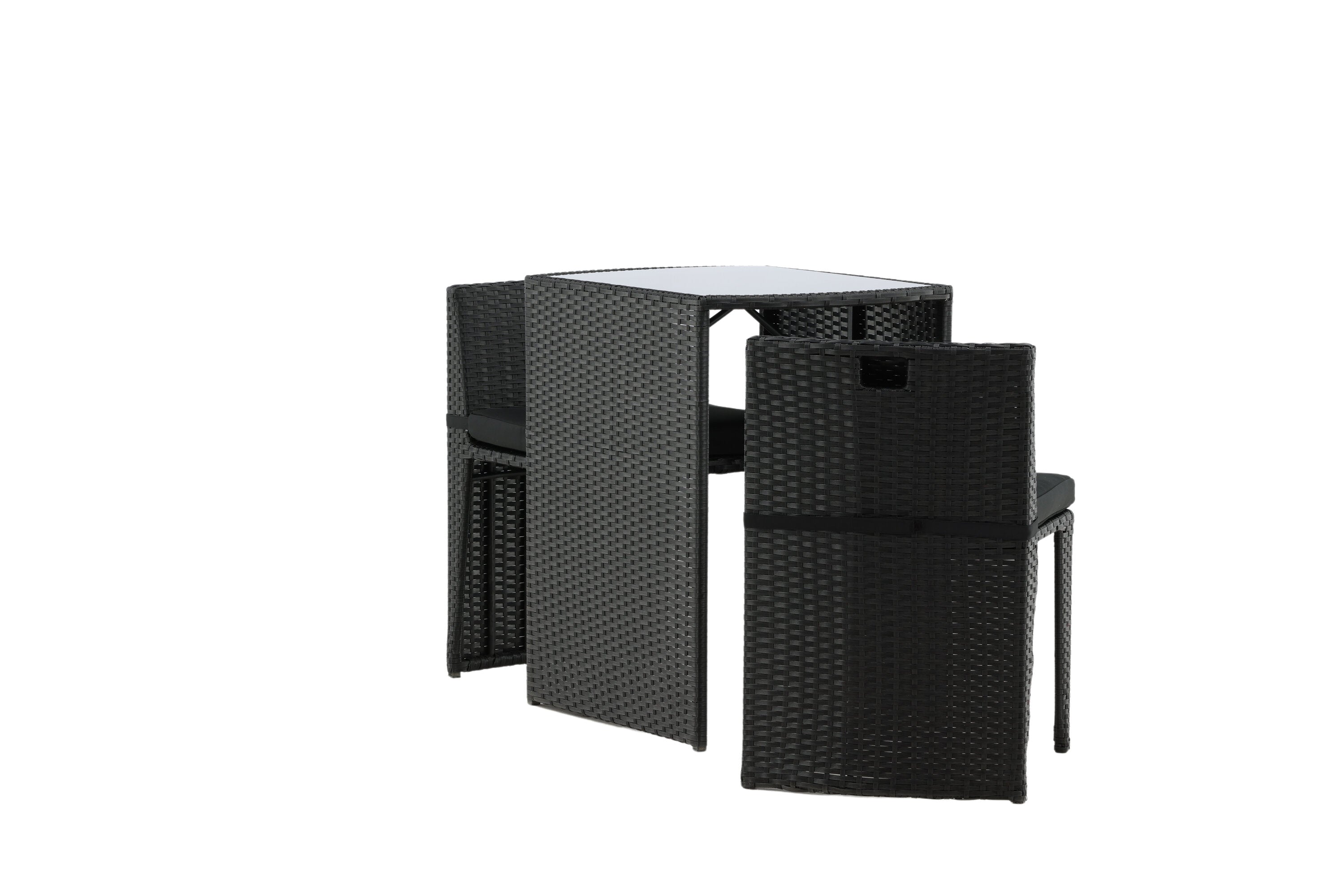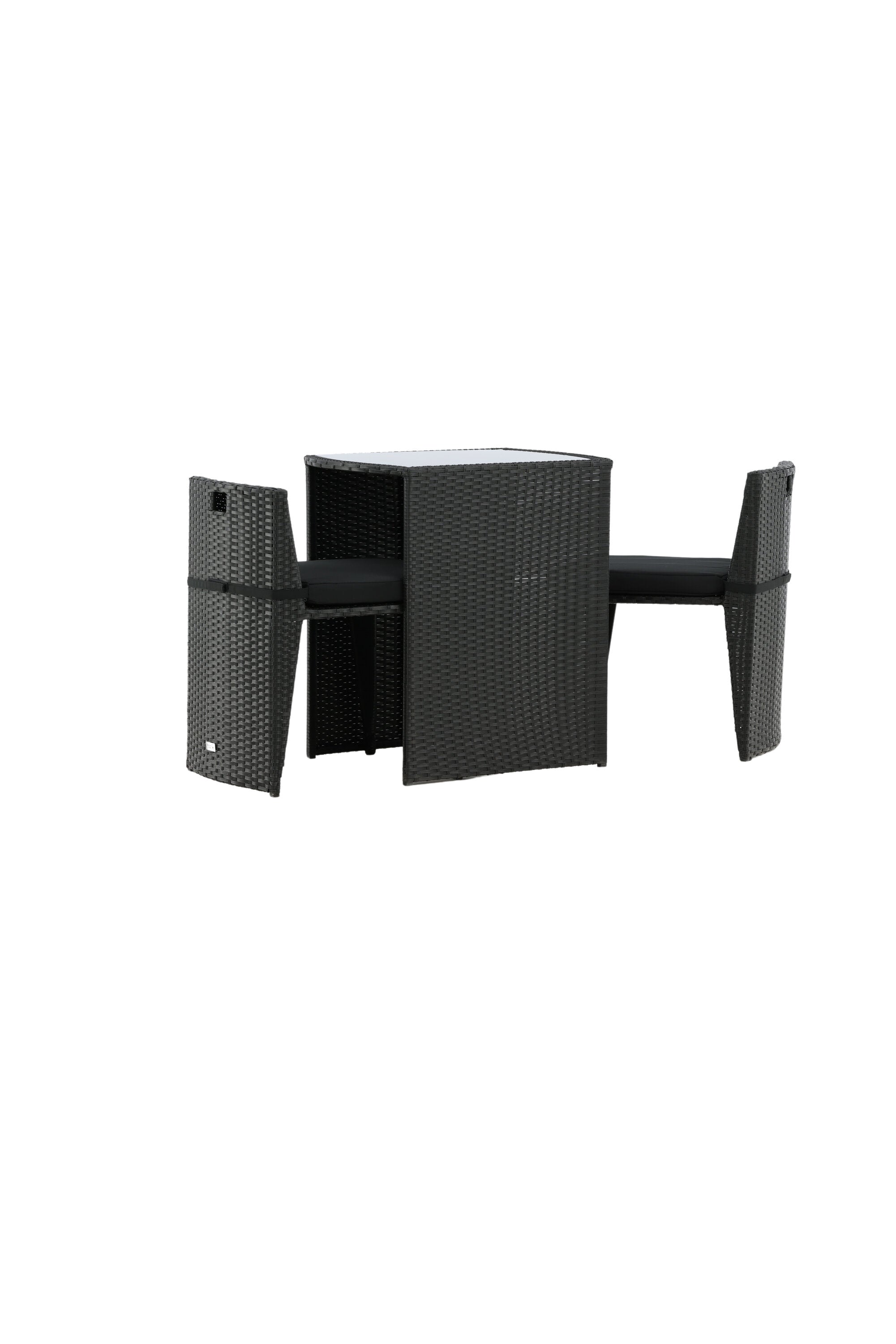 Útulný černý kavárenský set v hezkém designu vyrobený z odolného umělého ratanu, který se perfektně hodí na menší terasu. Kavárenský set se skládá ze dvou židlí a stolu s přidruženou skleněnou deskou, která zastupuje počasí i vítr, úhledné židle jsou dodávány s měkkými sedáky a židle můžete snadno zasunout pod stůl pro snadné skladování a úsporu místa.