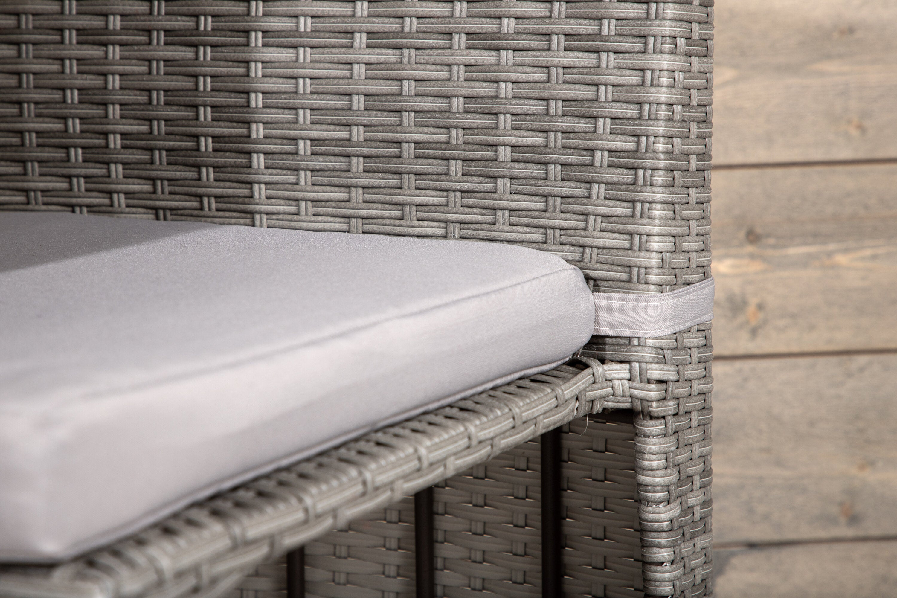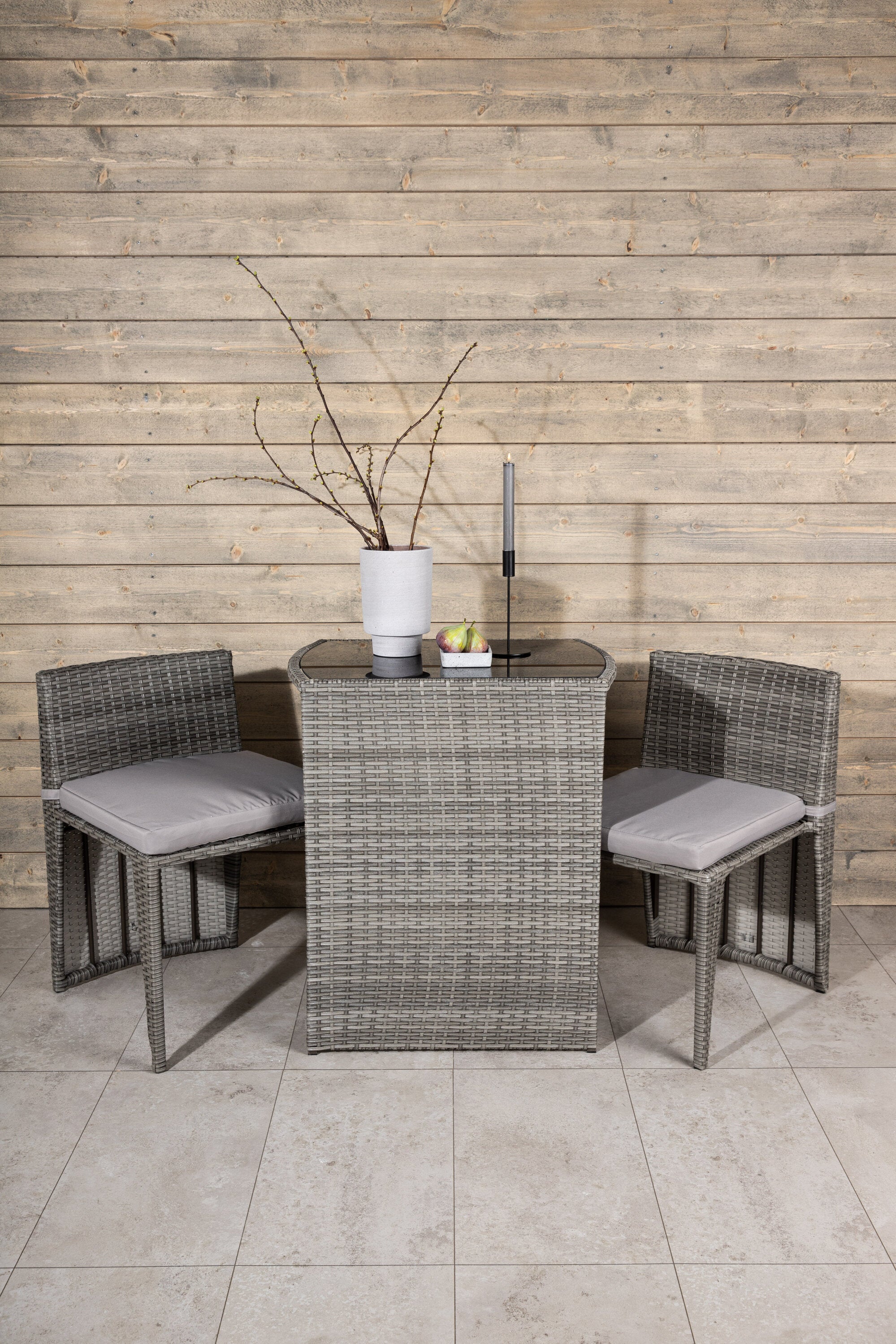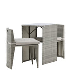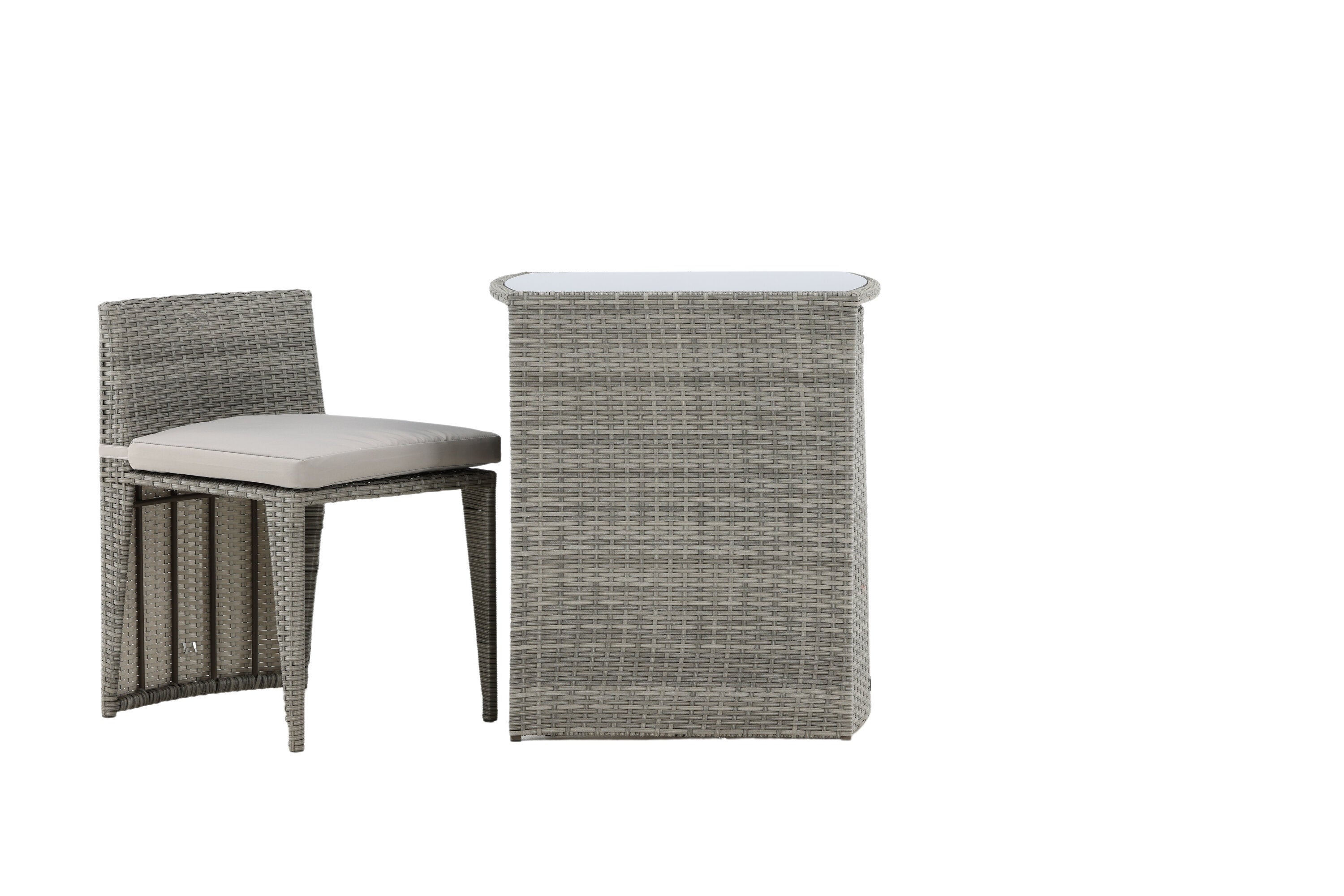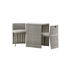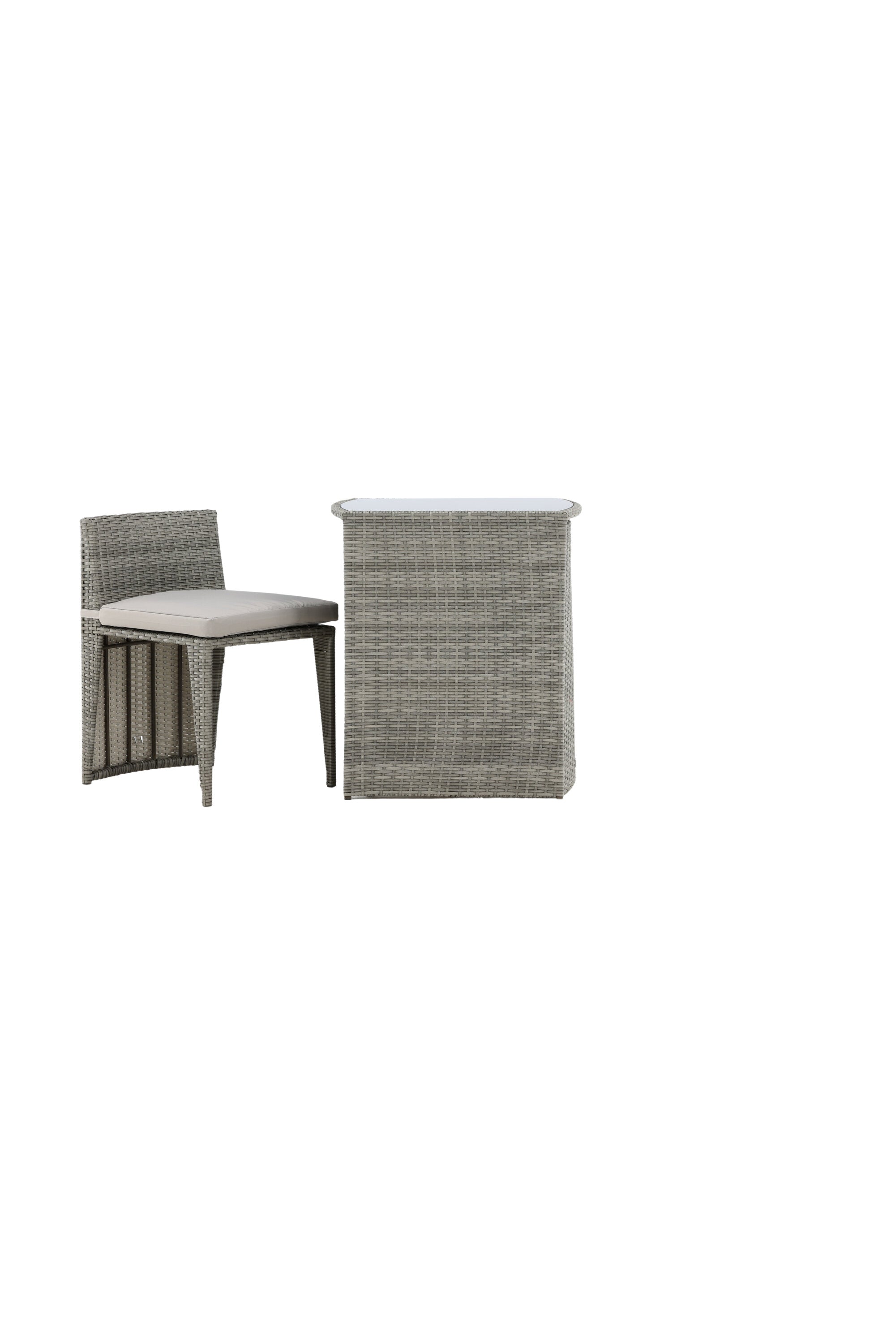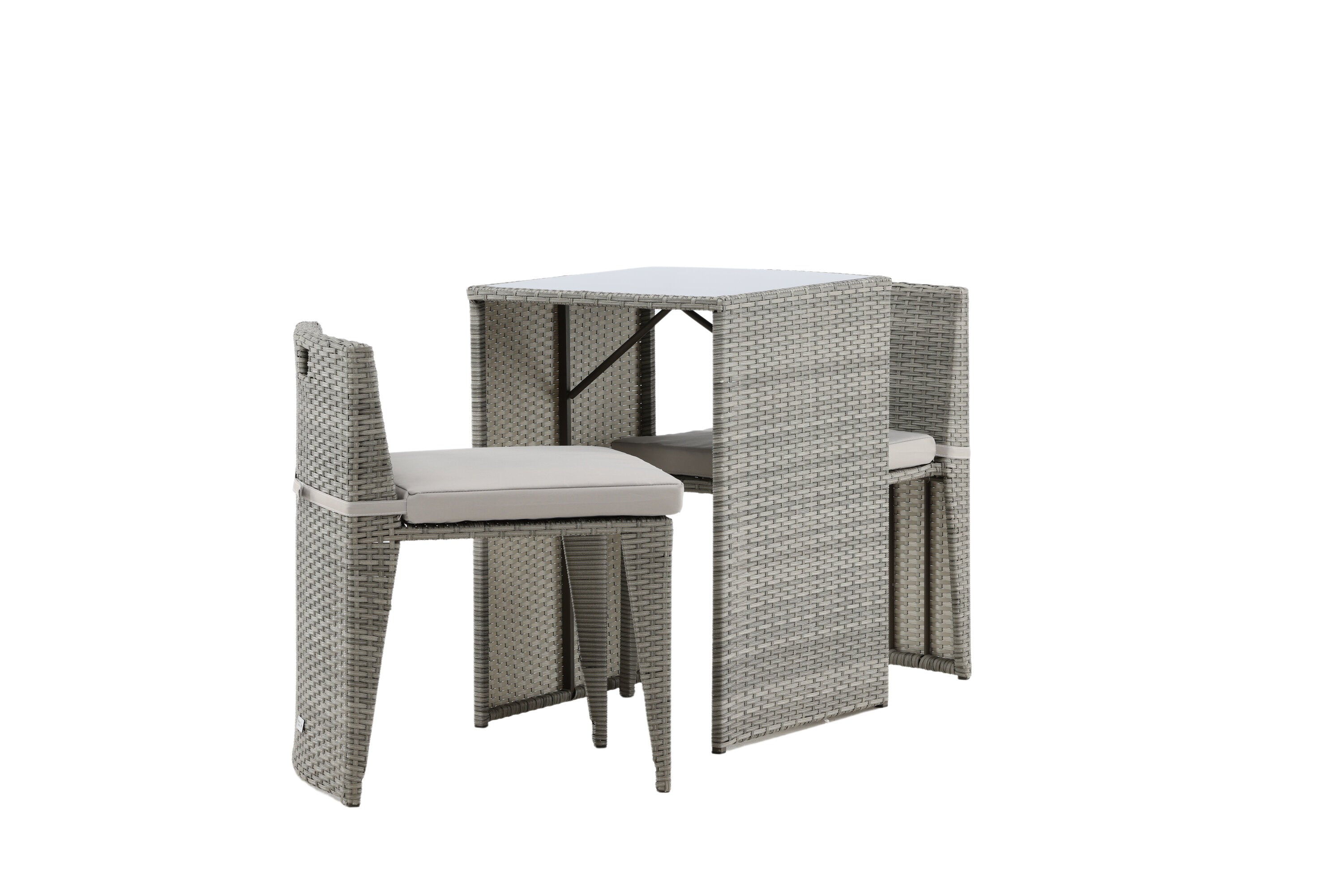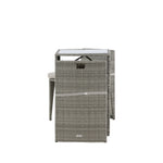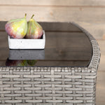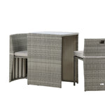 Útulný šedý kavárenský set v hezkém designu vyrobený z odolného umělého ratanu, který se perfektně hodí na menší terasu. Kavárenský set se skládá ze dvou židlí a stolu s přidruženou skleněnou deskou, která zastupuje počasí i vítr, úhledné židle jsou dodávány s měkkými sedáky a židle můžete snadno zasunout pod stůl pro snadné skladování a úsporu místa.