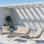 Sedací nábytek je navržen s pevným ocelovým rámem a má sedák ze syntetického ratanu, doplněný stylovými béžovými polštáři, které vás zvou k dlouhým chvilkám odpočinku. Sedací souprava Tina v přírodních a bílých barvách poskytuje trendy a zároveň nadčasový vzhled, který se hodí do většiny prostředí. Díky kombinaci přírodních materiálů a moderního designu je sedací souprava Tina dokonalým řešením pro ty, kteří si chtějí vytvořit pohodlný a stylový venkovní obývací prostor.