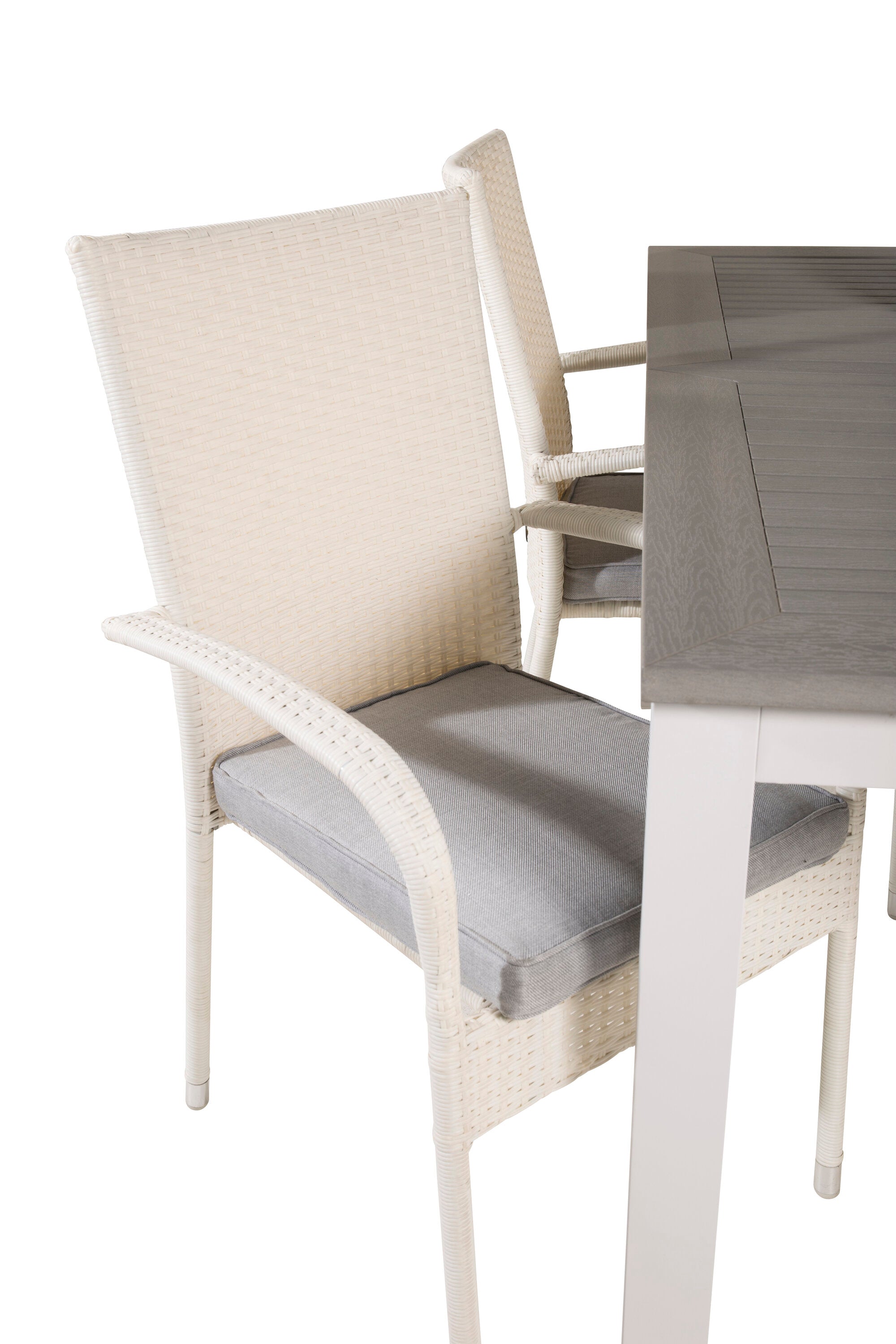 Stůl Albany - 160/240 - Bílá/Šedá - Židle Anna - Bílá 4