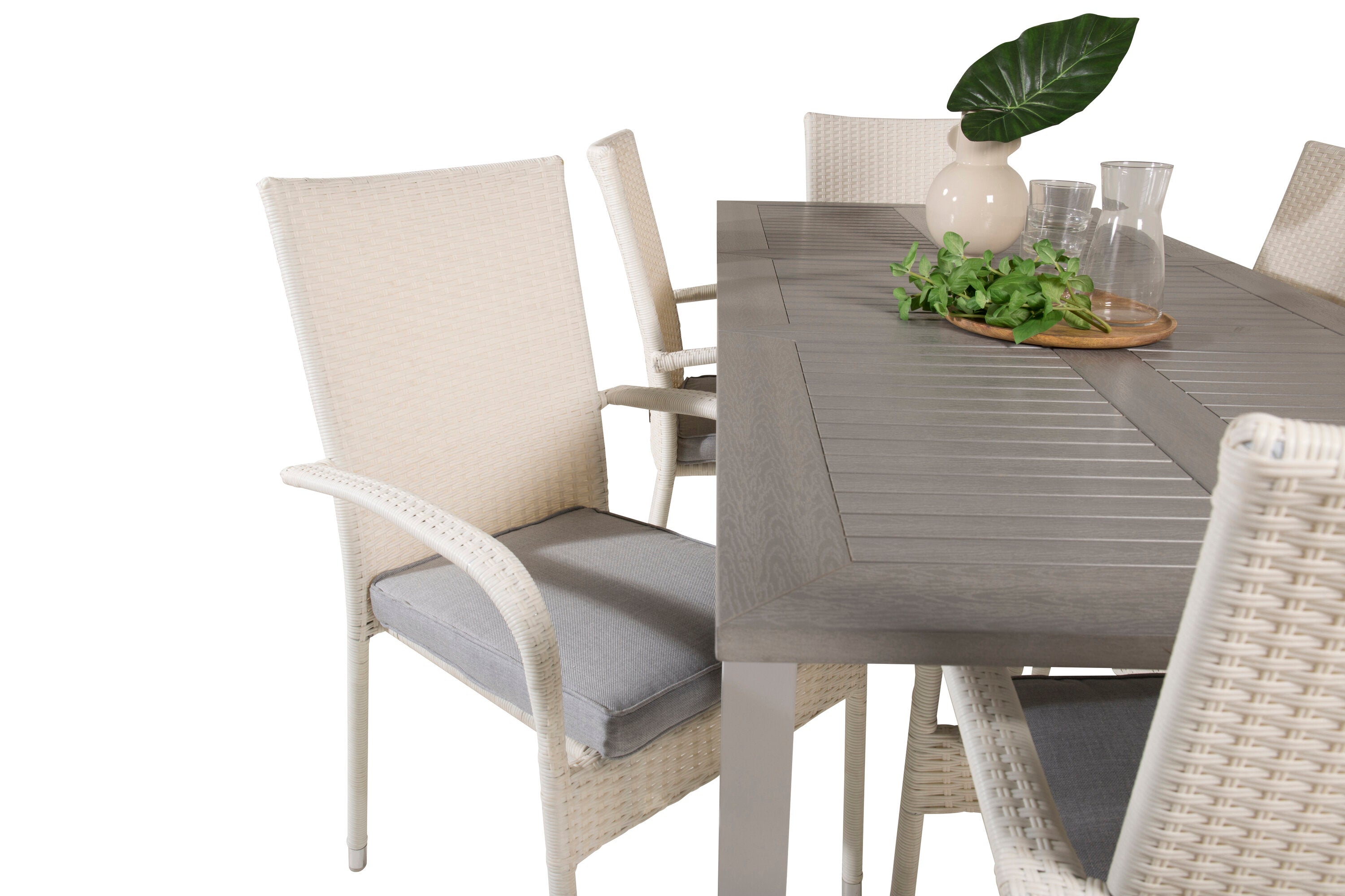 Stůl Albany - 160/240 - Bílá/Šedá - Židle Anna - Bílá 6