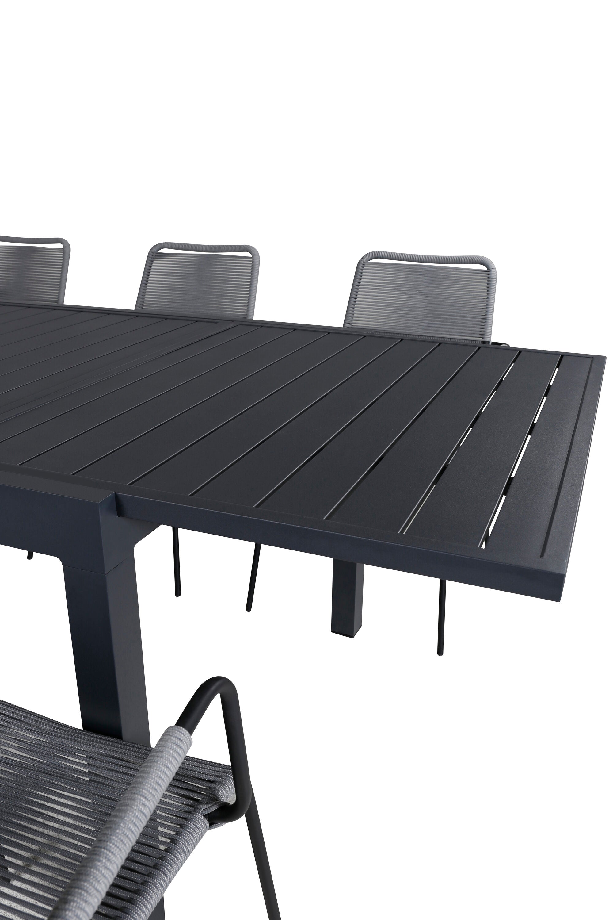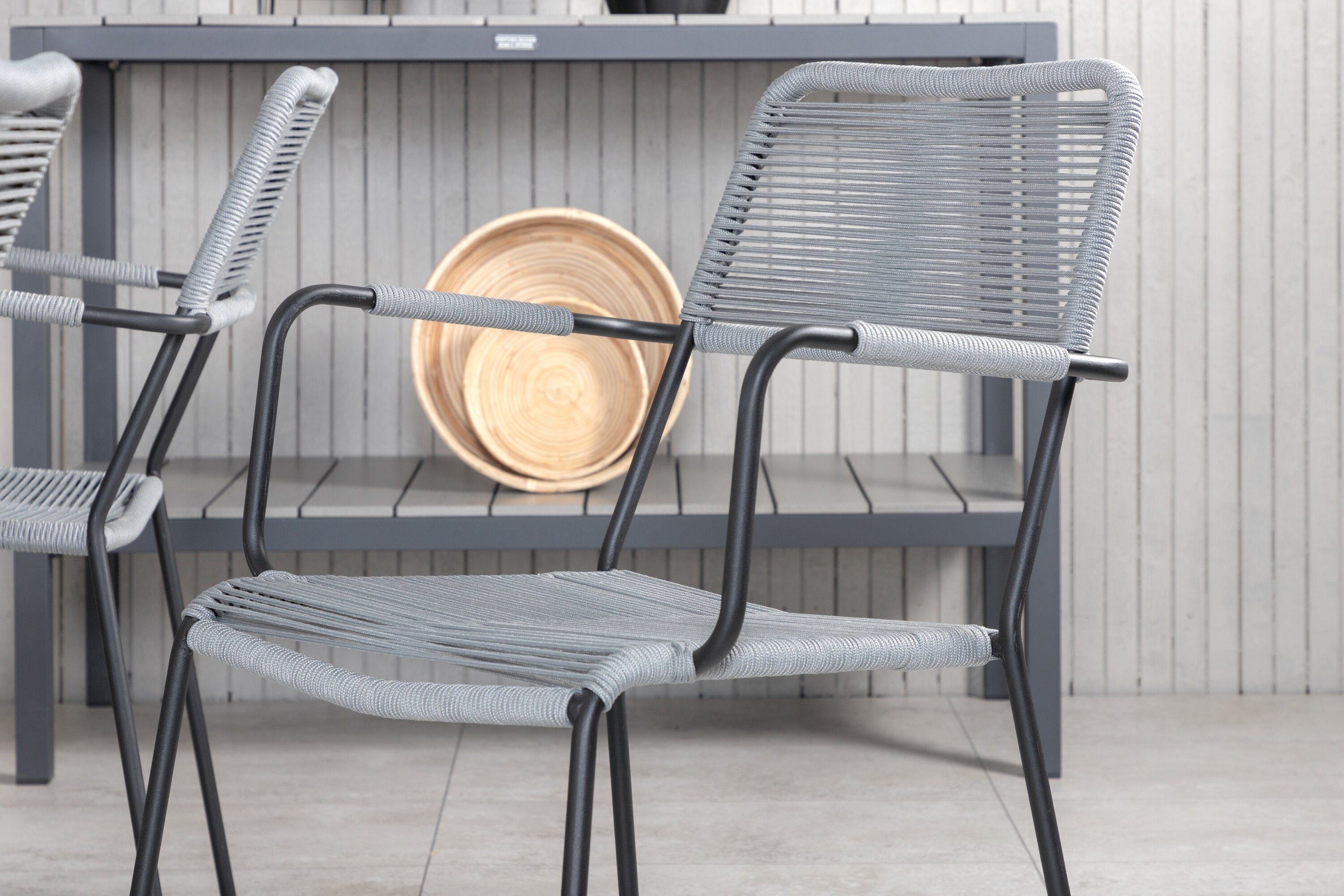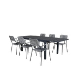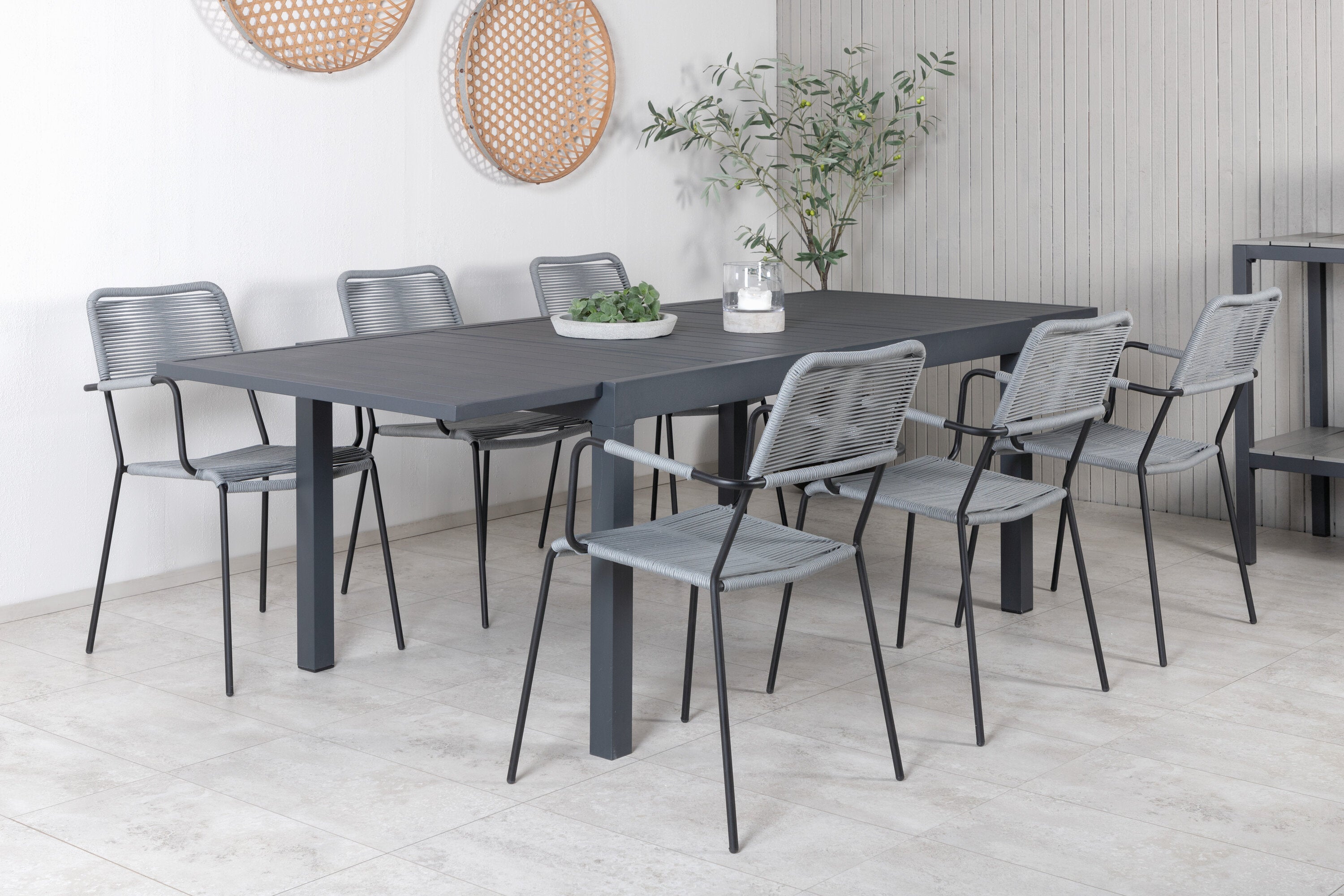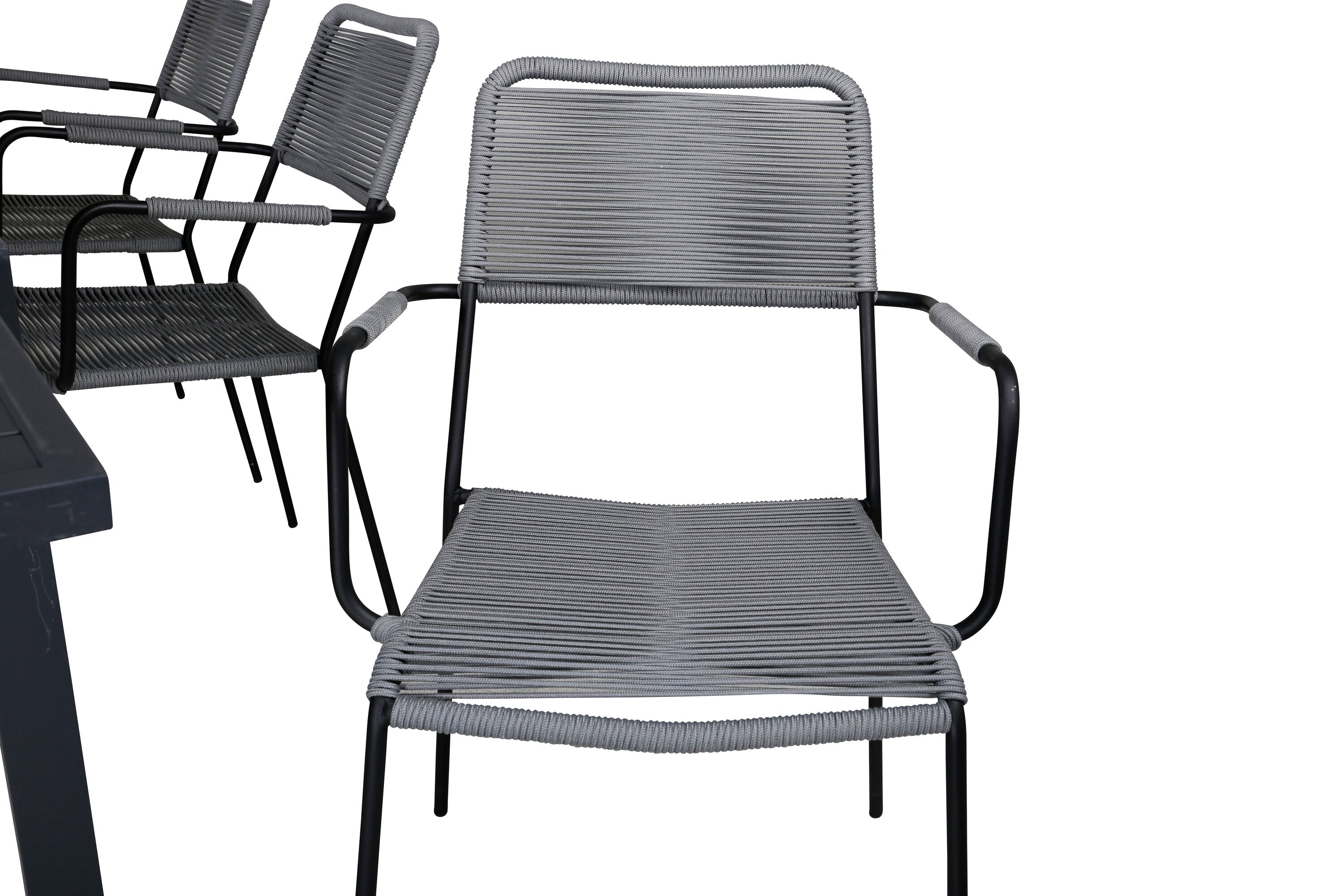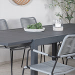 Stůl Marbella 160/240 - Černá/Černá+Křeslo Lindos - Černá Alu / Šedé lano_6