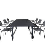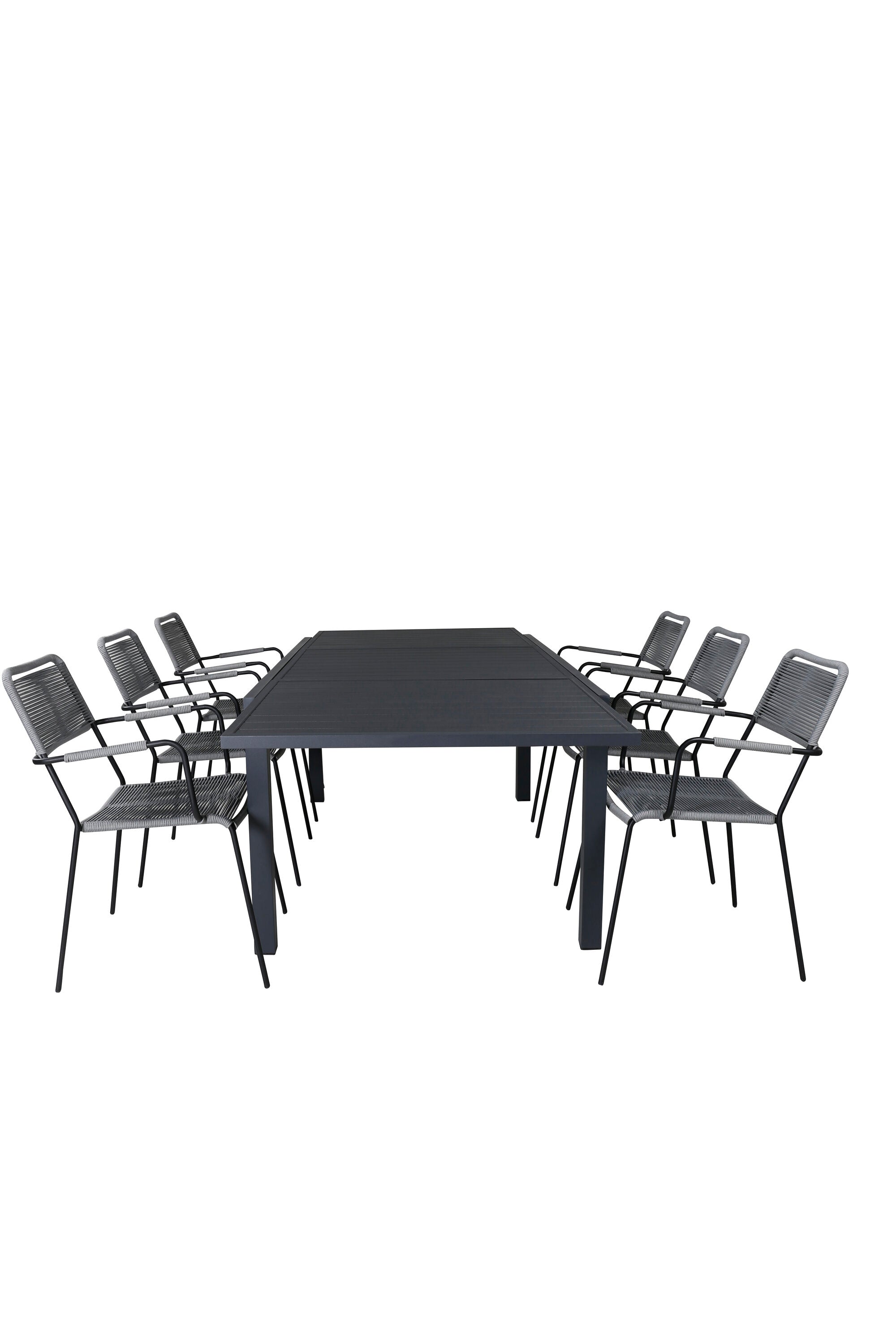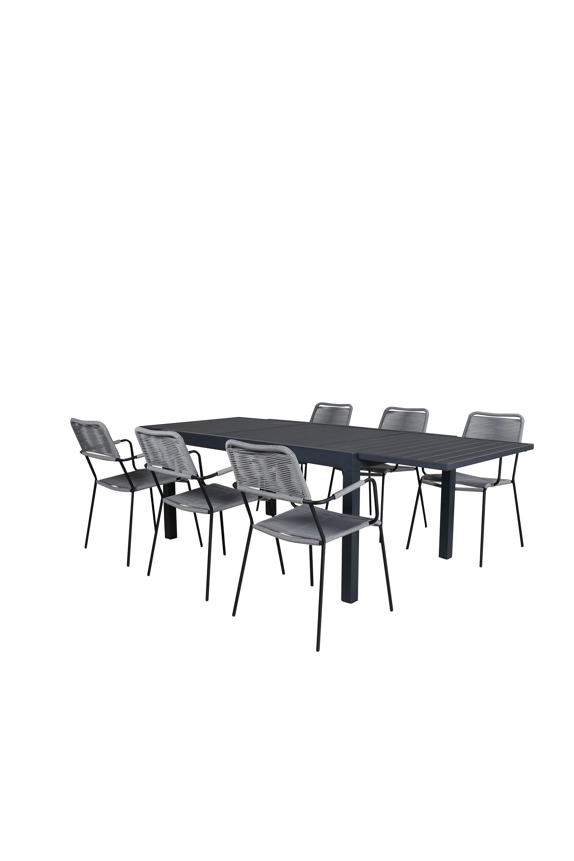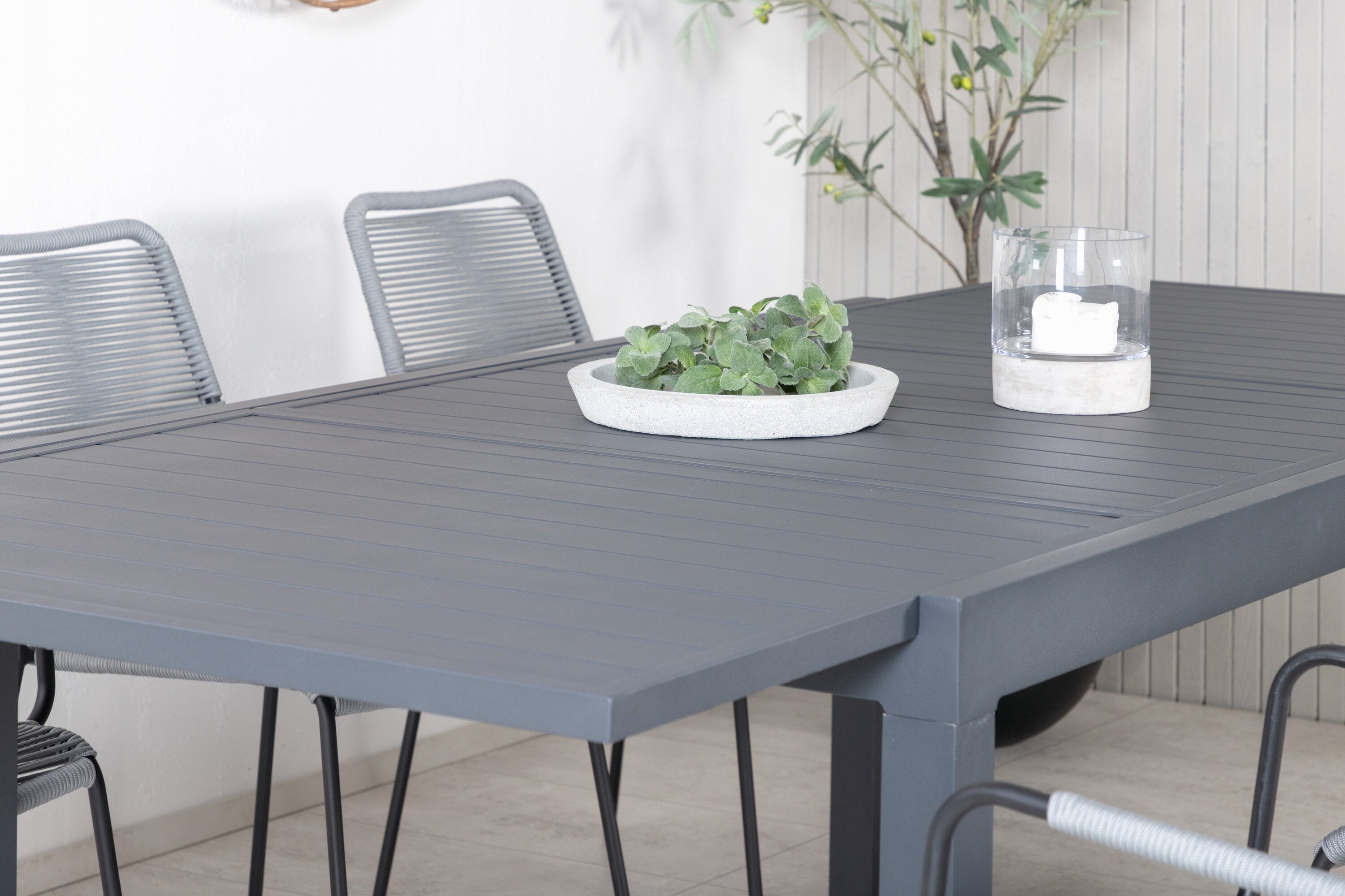 Stůl Marbella 160/240 - Černá/Černá+Křeslo Lindos - Černá Alu / Šedé lano_6